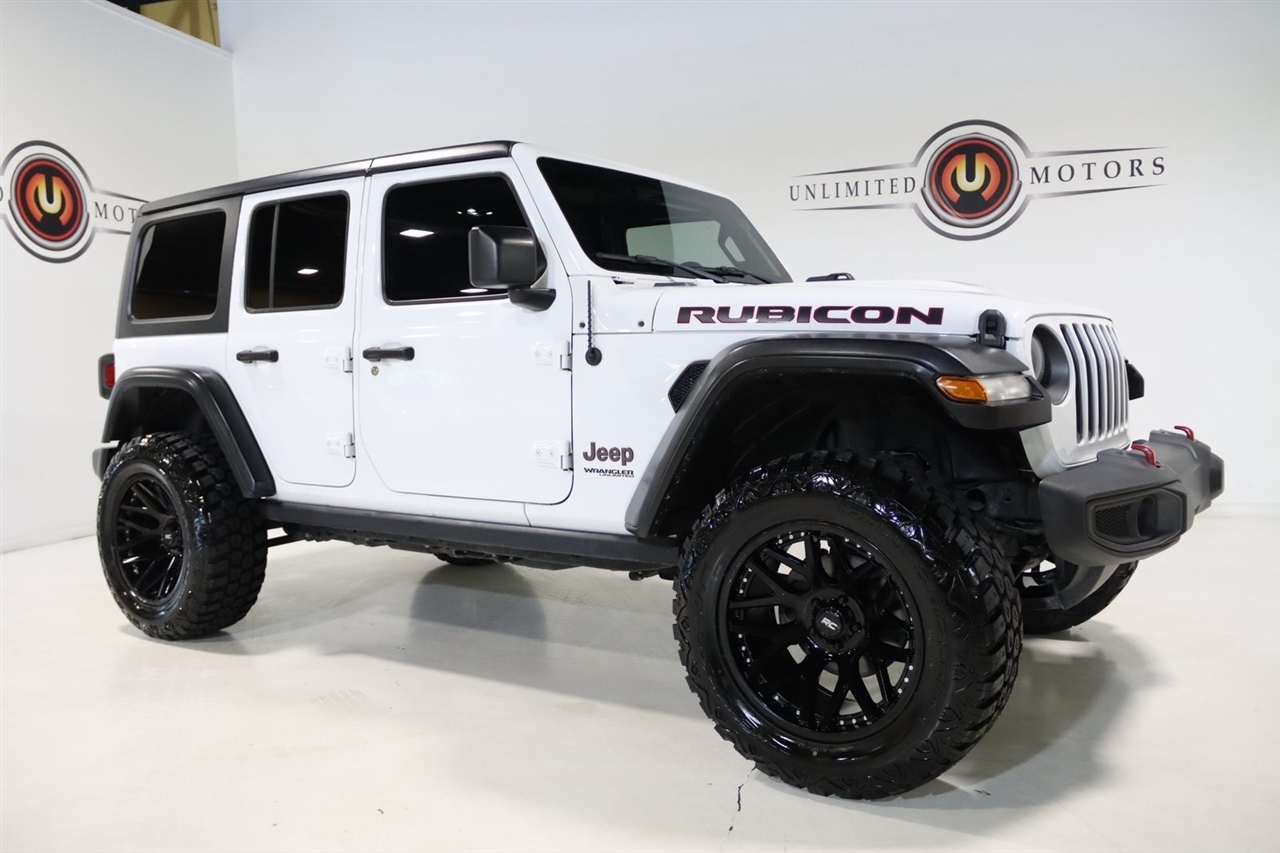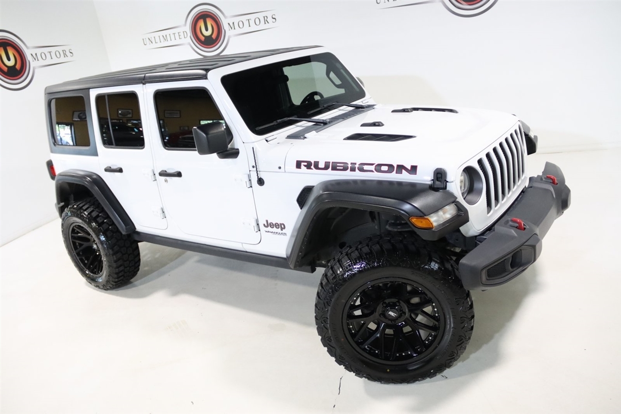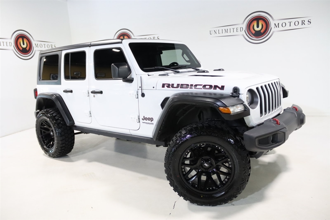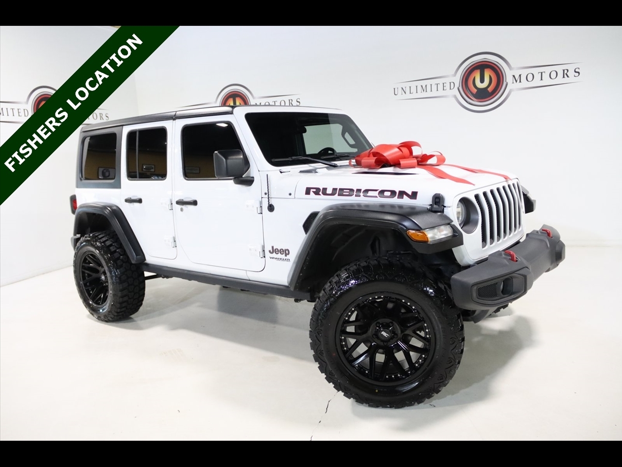 Bluetooth, Back Up Camera, Hard Top, Touch Screen, 4-Wheel Disc Brakes, 4.10 Rear Axle Ratio, 8 Speakers, ABS brakes, Air Conditioning, Alloy wheels, AM/FM radio: SiriusXM, Apple CarPlay/Android Auto, Automatic temperature control, Aux Battery, Brake assist, Compass, Delay-off headlights, Driver door bin, Driver vanity mirror, Dual front impact airbags, Dual front side impact airbags, Electronic Stability Control, Front anti-roll bar, Front Bucket Seats, Front Center Armrest w/Storage, Front dual zone A/C, Front fog lights, Front reading lights, Fully automatic headlights, Garage door transmitter, Heated door mirrors, Illuminated entry, Integrated roll-over protection, Leather steering wheel, Low tire pressure warning, Non-Lock Fuel Cap w/o Discriminator, Occupant sensing airbag, Outside temperature display, Panic alarm, ParkView Rear Back-Up Camera, Passenger door bin, Passenger vanity mirror, Performance Suspension, Power door mirrors, Power steering, Power windows, Premium Cloth Low-Back Bucket Seats, Quick Order Package 22R, Radio data system, Radio: Uconnect 4 w/7 Display, Rear anti-roll bar, Rear reading lights, Remote keyless entry, Security system, Speed control, Split folding rear seat, Steering wheel mounted audio controls, Stop-Start Dual Battery System, Tachometer, Telescoping steering wheel, Tilt steering wheel, Traction control, Trip computer, Variably intermittent wipers, Voltmeter, Wheels: 17 x 7.5 Machined w/Black Pockets.2021 Bright White Clearcoat Jeep 4D Sport Utility Wrangler Unlimited Rubicon 4WD 8-Speed Automatic 2.0L I4 DOHCVisit our website www.iumotors.com to view 100s of newer vehicles, more pictures and info, or to apply for financing. Rates are incredibly low for approved credit. We offer extended warranties, protection packages, and insurance. We assure you the best experience at any of our 4 locations and unbeatable prices and quality. At Unlimited Motors we believe in MARKET VALUE PRICING. We use real-time Internet price comparisons to constantly adjust prices to provide ALL BUYERS The BEST PRICE possible. We do not mark them up, to mark them down! Our entire team is committed to helping you buy a car the way we would want to buy a car! We utilize state-of-the-art technology to constantly monitor pricing trends to offer our shoppers the best competitive pricing, value, and experience. We sell and service all makes and models of Pre-owned / Used Vehicles Used Cars, Used Trucks, Used Sport Utility, Lamborghini, Ferrari, Bentley, Rolls Royce, McLaren, Maserati, Ford, Chevrolet/Chevy, Honda, Toyota, Porsche, Land Rover, Jaguar, INFINITI, Audi, Nissan, Mazda, Hyundai, Chrysler, Jeep, Dodge, Ram, SRT, Mitsubishi, Lexus, Kia, Volkswagen, Mini, BMW, Mercedes, Fiat, Volvo, GMC, Cadillac, Lincoln as well as other brands. Proudly serving these areas of Indianapolis, Fishers, Carmel, Noblesville, Greenwood, Avon, Plainfield, Zionsville, & Brownsburg, Indiana, Midwest. We also serve the entire nation with our seamless and easy online purchasing process, and offer shipping nationwide.Advertised prices DO NOT include Sales Tax, Dealer Fees, Title Processing Charges, and Dealer Pre-installed Products.