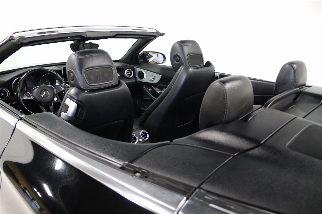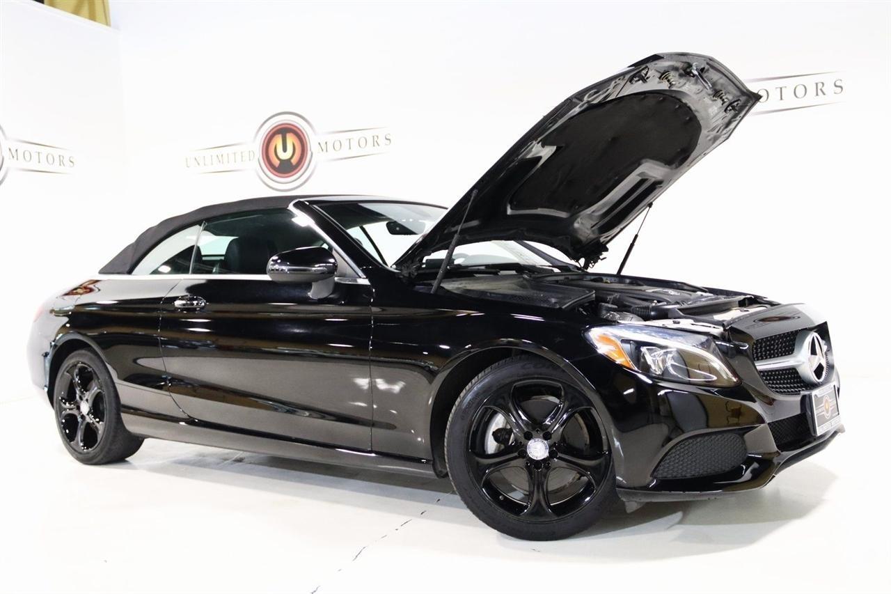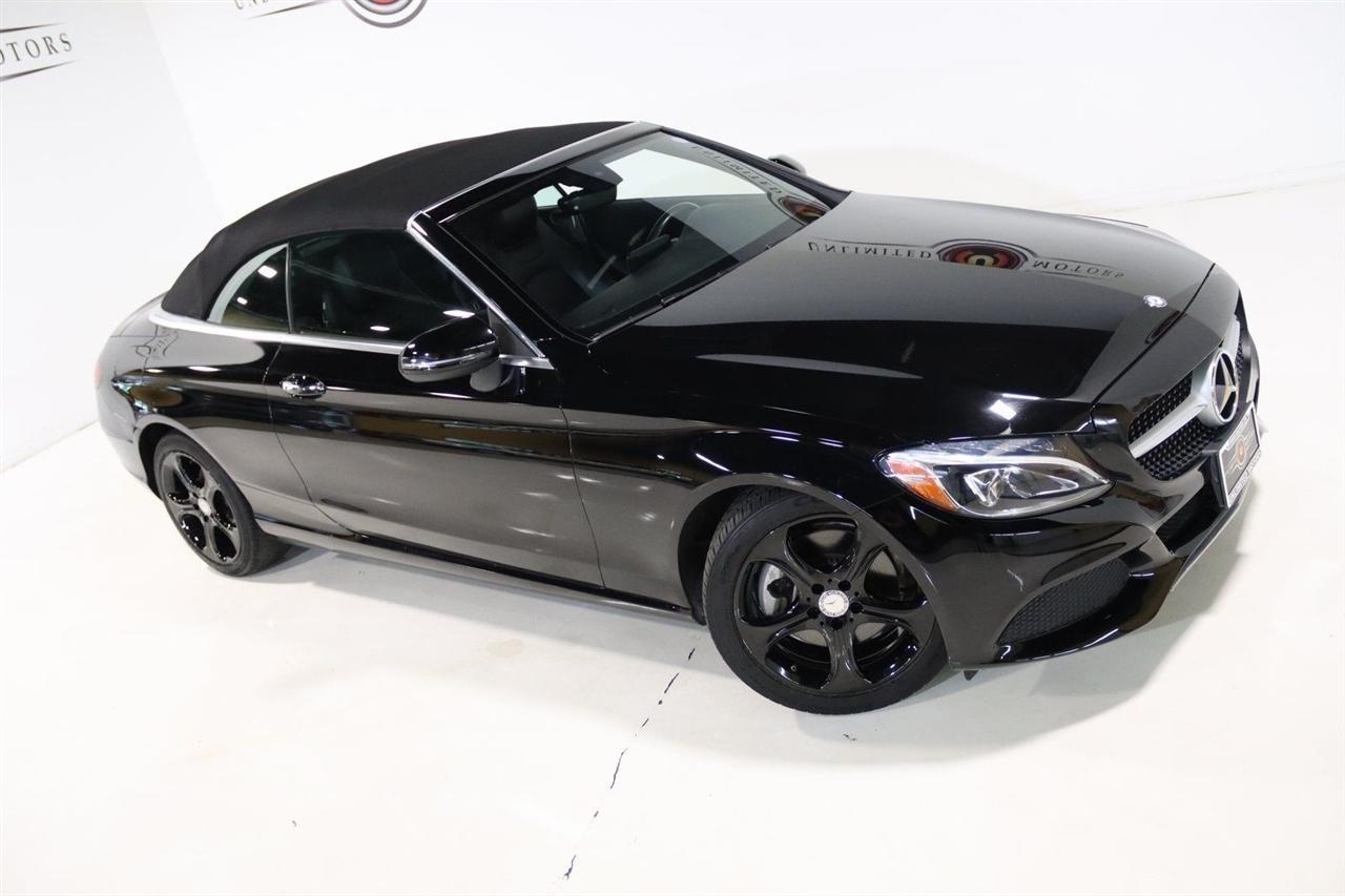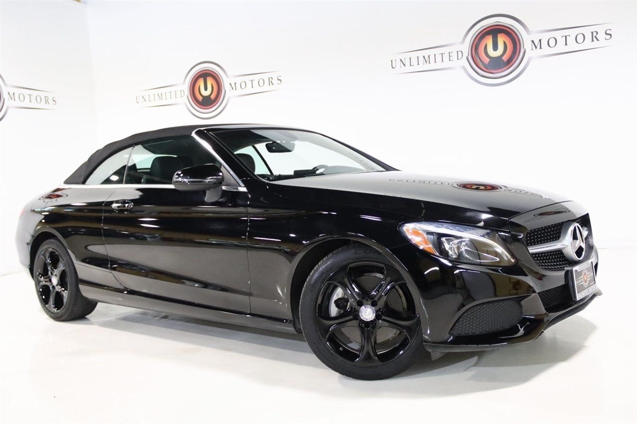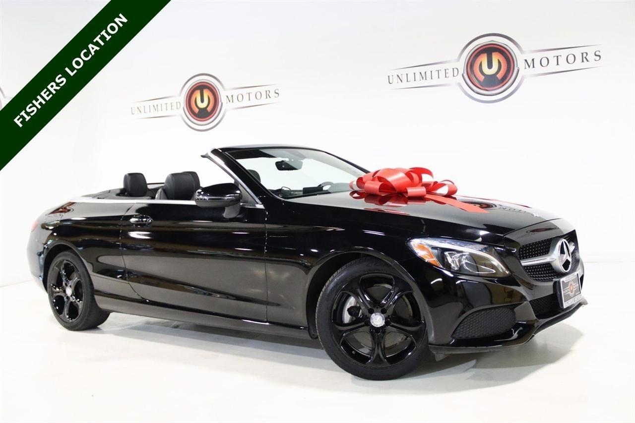 Bluetooth, Back Up Camera, Soft Top, Touch Screen, 18 5-Spoke Alloy Wheels, 4-Way Lumbar Support, 4-Wheel Disc Brakes, 5 Speakers, ABS brakes, Air Conditioning, Alloy wheels, AM/FM radio, Anti-whiplash front head restraints, Auto tilt-away steering wheel, Auto-dimming door mirrors, Auto-dimming Rear-View mirror, Automatic temperature control, Black SoftTop, Brake assist, Bumpers: body-color, CD player, Child-Seat-Sensing Airbag, Compass, Convertible roof lining, Convertible roof wind blocker, Delay-off headlights, Driver door bin, Driver vanity mirror, Dual front impact airbags, Dual front side impact airbags, Electronic Stability Control, Emergency communication system: mbrace2, Extended Mobility Tires, Exterior Parking Camera Rear, Four wheel independent suspension, Front anti-roll bar, Front Bucket Seats, Front Center Armrest, Front dual zone A/C, Front reading lights, Fully automatic headlights, Garage door transmitter: Homelink, Glass rear window, Head restraints memory, Heated door mirrors, Heated front seats, Illuminated entry, Integrated roll-over protection, Knee airbag, Low tire pressure warning, MB-Tex Upholstery, Memory seat, Occupant sensing airbag, Outside temperature display, Overhead airbag, Overhead console, Panic alarm, Passenger door bin, Passenger vanity mirror, Power adjustable front head restraints, Power convertible roof, Power door mirrors, Power driver seat, Power Heated Front Seats w/Driver Seat Memory, Power passenger seat, Power steering, Power windows, Premium audio system: COMAND, Radio data system, Radio: Audio 20 - Radio w/Bluetooth, Rain sensing wipers, Rear anti-roll bar, Rear fog lights, Rear side impact airbag, Rear window defroster, Remote keyless entry, Security system, Single CD Player, Speed control, Speed-sensing steering, Split folding rear seat, Steering wheel memory, Steering wheel mounted audio controls, Tachometer, Telescoping steering wheel, Tilt steering wheel, Traction control, Trip computer, Turn signal indicator mirrors, Variably intermittent wipers, Weather band radio. 22/29 City/Highway MPG Odometer is 29598 miles below market average! Priced below KBB Fair Purchase Price!2017 Black Mercedes-Benz 2D Convertible C-Class C 300 4MATIC 4MATIC 9-Speed Automatic 2.0L I4 TurbochargedAwards: * 2017 IIHS Top Safety PickVisit our website www.iumotors.com to view 100s of newer vehicles, more pictures and info, or to apply for financing. Rates are incredibly low for approved credit. We offer extended warranties, protection packages, and insurance. We assure you the best experience at any of our 4 locations and unbeatable prices and quality. At Unlimited Motors we believe in MARKET VALUE PRICING. We use real-time Internet price comparisons to constantly adjust prices to provide ALL BUYERS The BEST PRICE possible. We do not mark them up, to mark them down! Our entire team is committed to helping you buy a car the way we would want to buy a car! We utilize state-of-the-art technology to constantly monitor pricing trends to offer our shoppers the best competitive pricing, value, and experience. We sell and service all makes and models of Pre-owned / Used Vehicles Used Cars, Used Trucks, Used Sport Utility, Lamborghini, Ferrari, Bentley, Rolls Royce, McLaren, Maserati, Ford, Chevrolet/Chevy, Honda, Toyota, Porsche, Land Rover, Jaguar, INFINITI, Audi, Nissan, Mazda, Hyundai, Chrysler, Jeep, Dodge, Ram, SRT, Mitsubishi, Lexus, Kia, Volkswagen, Mini, BMW, Mercedes, Fiat, Volvo, GMC, Cadillac, Lincoln as well as other brands. Proudly serving these areas of Indianapolis, Fishers, Carmel, Noblesville, Greenwood, Avon, Plainfield, Zionsville, & Brownsburg, Indiana, Midwest. We also serve the entire nation with our seamless and easy online purchasing process, and offer shipping nationwide.Advertised prices DO NOT include Sales Tax, Dealer Fees, Title Processing Charges, and Dealer Pre-installed Products.