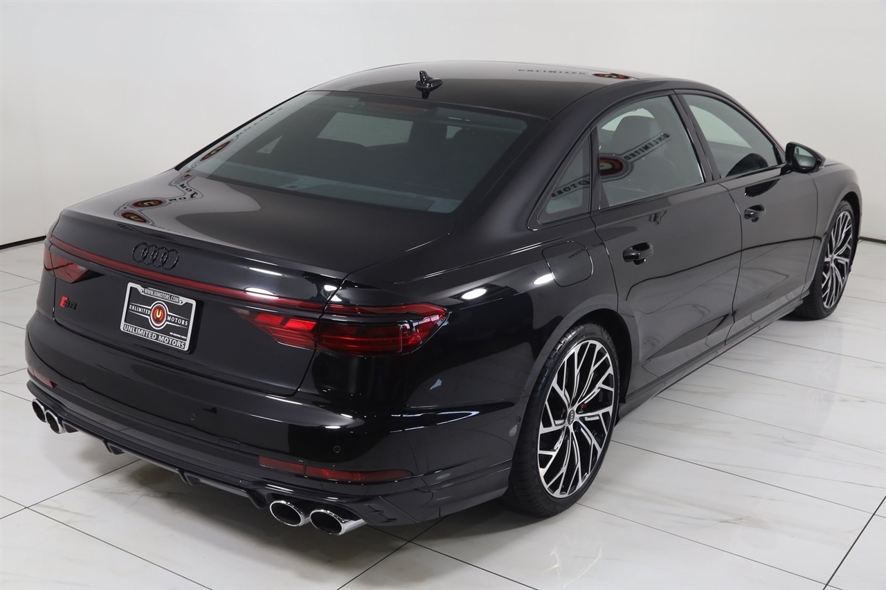 Navigation, Back Up Camera, Bluetooth, Panoramic Roof, Heated Seats, Touch Screen, Cooled Heats, Blind Spot, Heated Steering Wheel, Apple Play, Massage Seats, S8 4.0T quattro, 4D Sedan, 4.0L V8 Turbocharged DOHC 32V LEV3-ULEV125 563hp, 8-Speed Automatic with Tiptronic, quattro, Mythos Black Metallic, Black Leather, Navigation System, Navigation system: MMI Navigation plus. CARFAX One-Owner. Clean CARFAX.2025 Mythos Black Metallic Audi 4D Sedan S8 4.0T quattro quattro 8-Speed Automatic with Tiptronic 4.0L V8 Turbocharged DOHC 32V LEV3-ULEV125 563hpVisit our website www.iumotors.com to view 100s of newer vehicles, more pictures and info, or to apply for financing. Rates are incredibly low for approved credit. We offer extended warranties, protection packages, and insurance. We assure you the best experience at any of our 4 locations and unbeatable prices and quality. At Unlimited Motors we believe in MARKET VALUE PRICING. We use real-time Internet price comparisons to constantly adjust prices to provide ALL BUYERS The BEST PRICE possible. We do not mark them up, to mark them down! Our entire team is committed to helping you buy a car the way we would want to buy a car! We utilize state-of-the-art technology to constantly monitor pricing trends to offer our shoppers the best competitive pricing, value, and experience. We sell and service all makes and models of Pre-owned / Used Vehicles Used Cars, Used Trucks, Used Sport Utility, Lamborghini, Ferrari, Bentley, Rolls Royce, McLaren, Maserati, Ford, Chevrolet/Chevy, Honda, Toyota, Porsche, Land Rover, Jaguar, INFINITI, Audi, Nissan, Mazda, Hyundai, Chrysler, Jeep, Dodge, Ram, SRT, Mitsubishi, Lexus, Kia, Volkswagen, Mini, BMW, Mercedes, Fiat, Volvo, GMC, Cadillac, Lincoln as well as other brands. Proudly serving these areas of Indianapolis, Fishers, Carmel, Noblesville, Greenwood, Avon, Plainfield, Zionsville, & Brownsburg, Indiana, Midwest. We also serve the entire nation with our seamless and easy online purchasing process, and offer shipping nationwide.Advertised prices DO NOT include Sales Tax, Dealer Fees, Title Processing Charges, and Dealer Pre-installed Products.