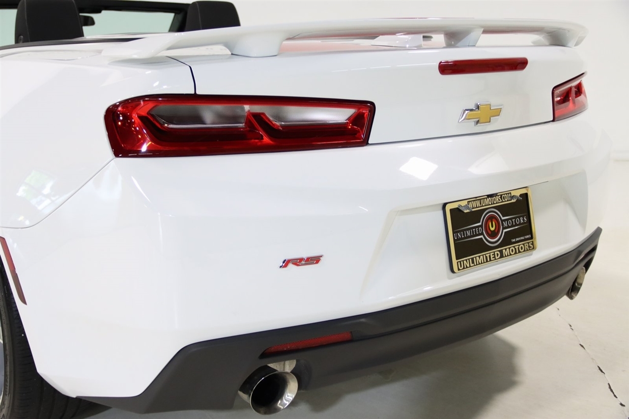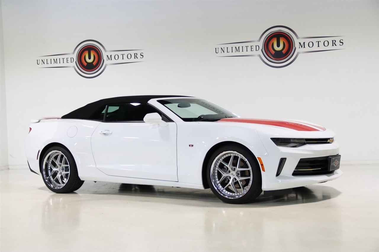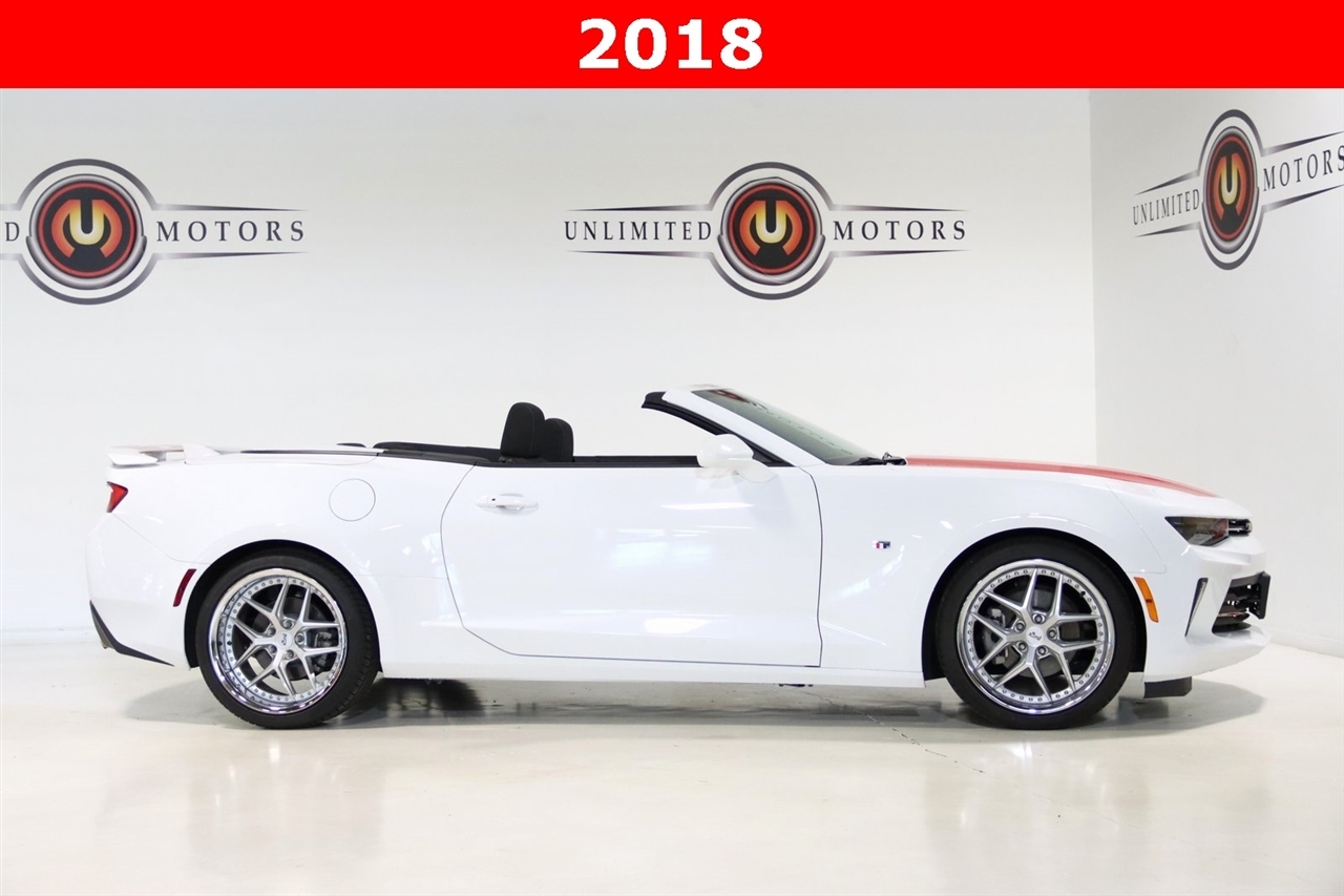 Bluetooth, Back Up Camera, Soft Top, Touch Screen, 2 USB Ports & Auxiliary Input Jack, 2.77 Rear Axle Ratio, 4-Wheel Disc Brakes, 6 Speakers, 6-Speaker Audio System Feature, 6-Way Power Front Passenger Seat Adjuster, 8-Way Power Driver Seat Adjuster, ABS brakes, Air Conditioning, Alloy wheels, AM/FM radio: SiriusXM, Apple CarPlay/Android Auto, Automatic temperature control, Bose Premium 7-Speaker Audio System Feature, Brake assist, Bumpers: body-color, Cloth Seat Trim, Compass, Convertible roof lining, Delay-off headlights, Driver door bin, Driver vanity mirror, Dual front impact airbags, Dual front side impact airbags, Electronic Stability Control, Emergency communication system: OnStar Guidance, Exterior Parking Camera Rear, Four wheel independent suspension, Front anti-roll bar, Front Bucket Seats, Front Center Armrest, Front fog lights, Front reading lights, Front Sport Bucket Seats, Fully automatic headlights, Glass rear window, High-Intensity Discharge Headlamps, Illuminated entry, Knee airbag, Leather Shift Knob, LED Taillamps, Low tire pressure warning, Occupant sensing airbag, Panic alarm, Passenger door bin, Passenger vanity mirror, Power convertible roof, Power door mirrors, Power driver seat, Power passenger seat, Power steering, Power windows, Preferred Equipment Group 1LT, Premium audio system: Chevrolet MyLink, Radio data system, Radio: AM/FM w/Chevrolet MyLink, Radio: Chevrolet MyLink Audio System, Rear anti-roll bar, Rear window defroster, Red Rally Stripes (LPO), Remote keyless entry, RS Package, Security system, SiriusXM Satellite Radio, Speed control, Speed-sensing steering, Spoiler, Steering wheel mounted audio controls, Tachometer, Technology Package, Telescoping steering wheel, Tilt steering wheel, Tire Inflation Kit, Traction control, Trip computer, Variably intermittent wipers, Voltmeter, Wheels: 20 5-Split Spoke Machined-Face Aluminum. CARFAX One-Owner. Clean CARFAX. 19/29 City/Highway MPG Odometer is 45704 miles below market average! Priced below KBB Fair Purchase Price!2018 Summit White Chevrolet 2D Convertible Camaro 1LT RWD 8-Speed Automatic 3.6L V6 DIAwards: * JD Power Dependability Study * Car and Driver 10 Best Cars * 2018 KBB.com 5-Year Cost to Own Awards * 2018 KBB.com 10 Best Used Sports Cars Under $30,000 * 2018 KBB.com 10 Coolest Cars Under $25,000 * 2018 KBB.com 10 Most Awarded BrandsCar and Driver, January 2017.Visit our website www.iumotors.com to view 100s of newer vehicles, more pictures and info, or to apply for financing. Rates are incredibly low for approved credit. We offer extended warranties, protection packages, and insurance. We assure you the best experience at any of our 4 locations and unbeatable prices and quality. At Unlimited Motors we believe in MARKET VALUE PRICING. We use real-time Internet price comparisons to constantly adjust prices to provide ALL BUYERS The BEST PRICE possible. We do not mark them up, to mark them down! Our entire team is committed to helping you buy a car the way we would want to buy a car! We utilize state-of-the-art technology to constantly monitor pricing trends to offer our shoppers the best competitive pricing, value, and experience. We sell and service all makes and models of Pre-owned / Used Vehicles Used Cars, Used Trucks, Used Sport Utility, Lamborghini, Ferrari, Bentley, Rolls Royce, McLaren, Maserati, Ford, Chevrolet/Chevy, Honda, Toyota, Porsche, Land Rover, Jaguar, INFINITI, Audi, Nissan, Mazda, Hyundai, Chrysler, Jeep, Dodge, Ram, SRT, Mitsubishi, Lexus, Kia, Volkswagen, Mini, BMW, Mercedes, Fiat, Volvo, GMC, Cadillac, Lincoln as well as other brands. Proudly serving these areas of Indianapolis, Fishers, Carmel, Noblesville, Greenwood, Avon, Plainfield, Zionsville, & Brownsburg, Indiana, Midwest. We also serve the entire nation with our seamless and easy online purchasing process, and offer shipping nationwide.Advertised prices DO NOT include Sales Tax, Dealer Fees, Title Pr