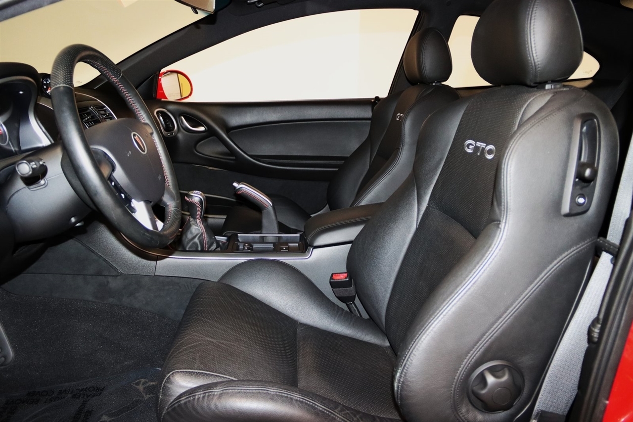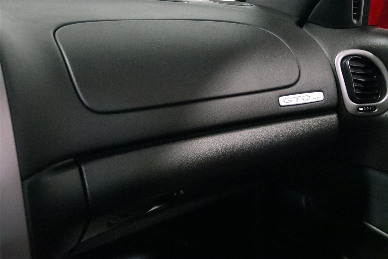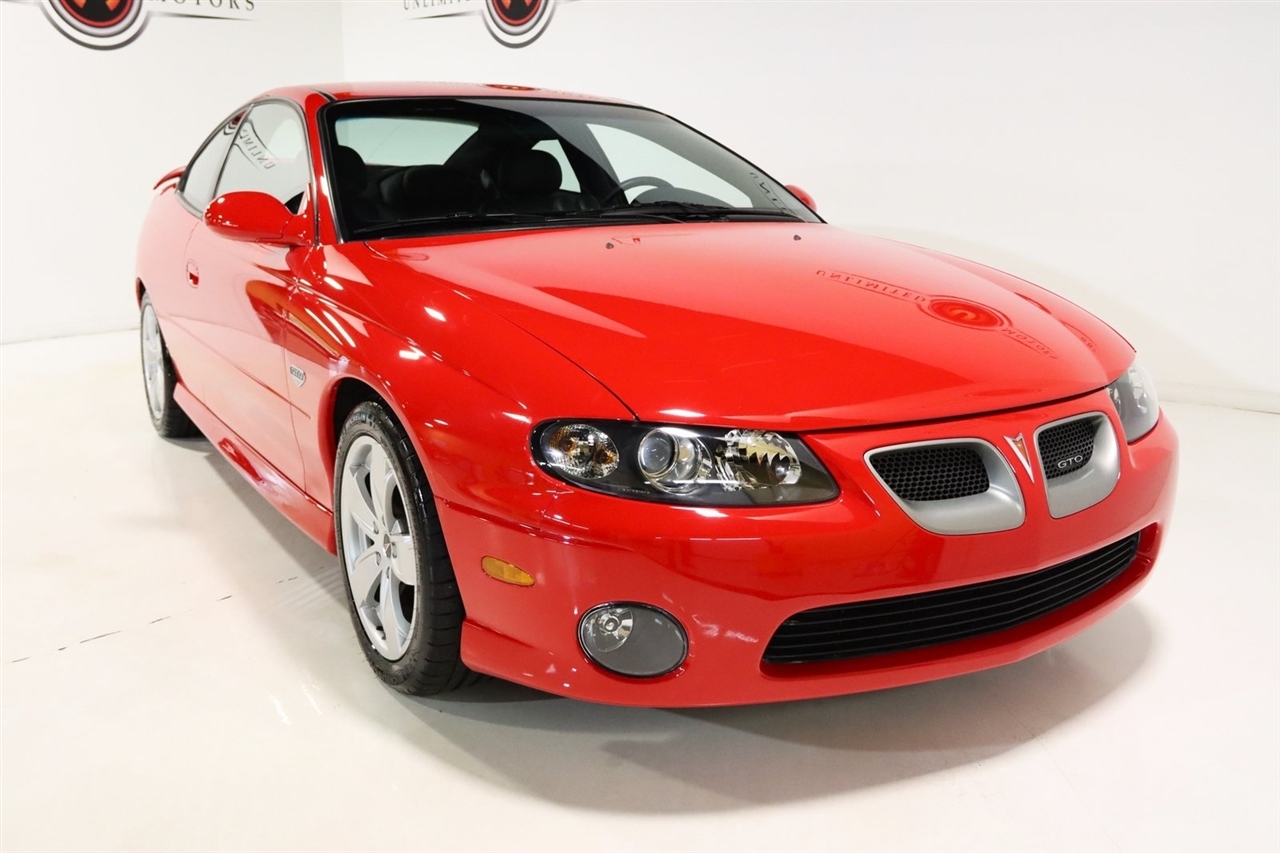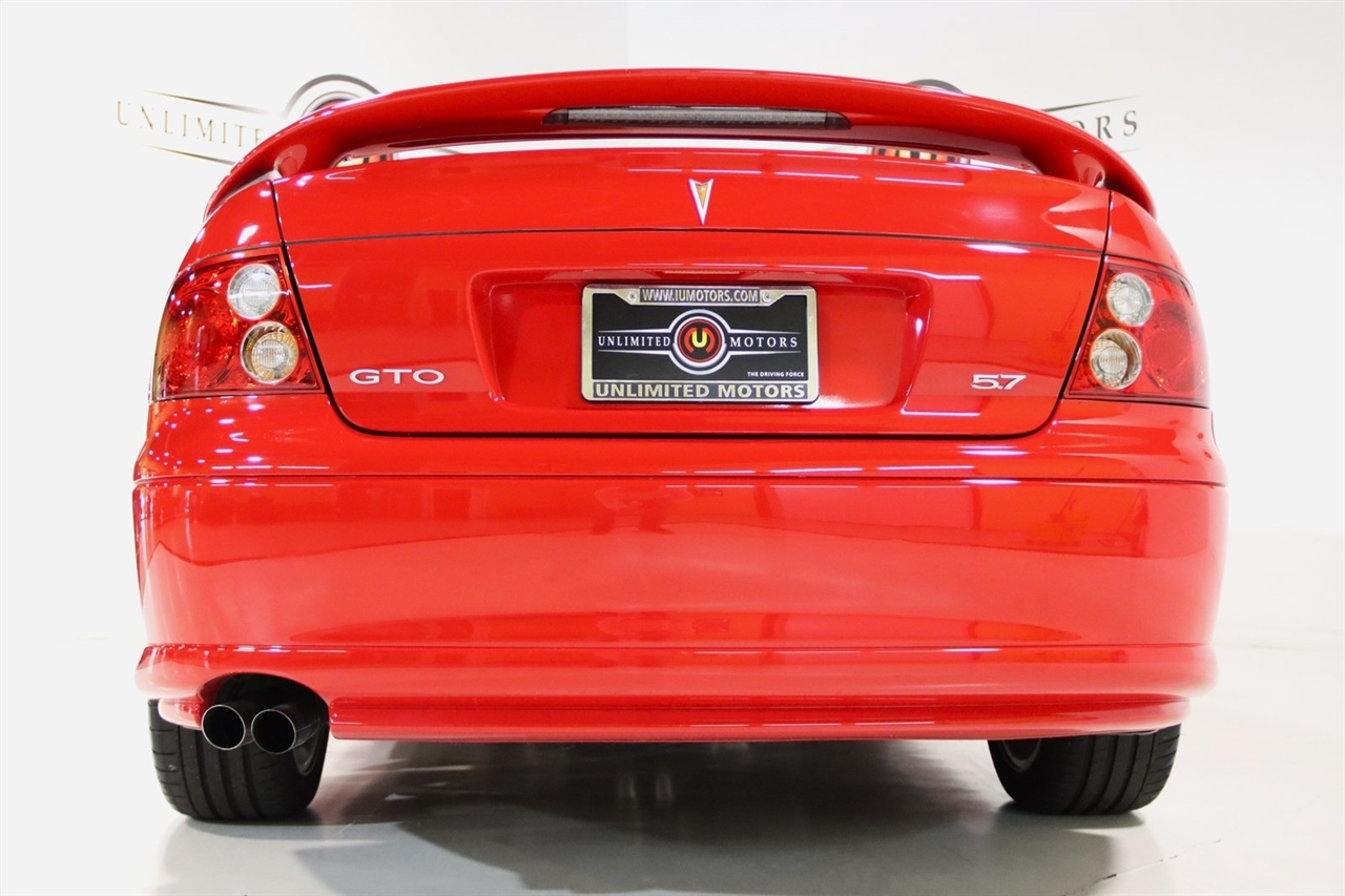 Touch Screen, 10 Speakers, 17 x 8 5-Spoke Aluminum Wheels, 4-Wheel Disc Brakes, ABS brakes, Air Conditioning, Alloy wheels, AM/FM radio, Bumpers: body-color, CD player, Delay-off headlights, Driver door bin, Driver vanity mirror, Dual front impact airbags, ETR AM/FM Stereo w/In-Dash 6-Disc CD Chngr, Four wheel independent suspension, Front & Rear Sport Bucket Seats, Front anti-roll bar, Front Bucket Seats, Front Center Armrest, Front fog lights, Front reading lights, Fully automatic headlights, Illuminated entry, Leather Shift Knob, Passenger door bin, Passenger vanity mirror, Power door mirrors, Power driver seat, Power passenger seat, Power steering, Power windows, Premium audio system: Blaupunkt, Radio data system, Rear anti-roll bar, Rear window defroster, Remote keyless entry, Security system, Speed control, Split folding rear seat, Spoiler, Steering wheel mounted audio controls, Tachometer, Telescoping steering wheel, Tilt steering wheel, Traction control, Trip computer, Variably intermittent wipers. Clean CARFAX. 17/29 City/Highway MPG2004 Torrid Red Pontiac 2D Coupe GTO RWD 6-Speed Manual 5.7L V8 SFI AluminumVisit our website www.iumotors.com to view 100s of newer vehicles, more pictures and info, or to apply for financing. Rates are incredibly low for approved credit. We offer extended warranties, protection packages, and insurance. We assure you the best experience at any of our 4 locations and unbeatable prices and quality. At Unlimited Motors we believe in MARKET VALUE PRICING. We use real-time Internet price comparisons to constantly adjust prices to provide ALL BUYERS The BEST PRICE possible. We do not mark them up, to mark them down! Our entire team is committed to helping you buy a car the way we would want to buy a car! We utilize state-of-the-art technology to constantly monitor pricing trends to offer our shoppers the best competitive pricing, value, and experience. We sell and service all makes and models of Pre-owned / Used Vehicles Used Cars, Used Trucks, Used Sport Utility, Lamborghini, Ferrari, Bentley, Rolls Royce, McLaren, Maserati, Ford, Chevrolet/Chevy, Honda, Toyota, Porsche, Land Rover, Jaguar, INFINITI, Audi, Nissan, Mazda, Hyundai, Chrysler, Jeep, Dodge, Ram, SRT, Mitsubishi, Lexus, Kia, Volkswagen, Mini, BMW, Mercedes, Fiat, Volvo, GMC, Cadillac, Lincoln as well as other brands. Proudly serving these areas of Indianapolis, Fishers, Carmel, Noblesville, Greenwood, Avon, Plainfield, Zionsville, & Brownsburg, Indiana, Midwest. We also serve the entire nation with our seamless and easy online purchasing process, and offer shipping nationwide.Advertised prices DO NOT include Sales Tax, Dealer Fees, Title Processing Charges, and Dealer Pre-installed Products.