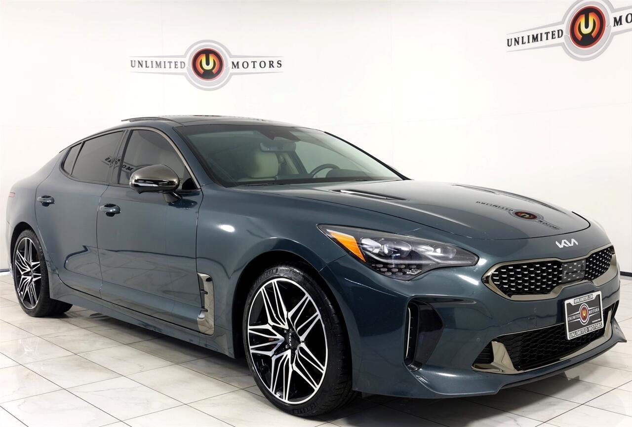 Navigation, Back Up Camera, Sunroof, Bluetooth, Touch Screen, Heated Seats, Heated Steering Wheel, Power Lift Gate. Priced below KBB Fair Purchase Price!2023 Ascot Green Kia 4D Sedan Stinger GT2 AWD 8-Speed Automatic 3.3L V6 DGIVisit our website www.iumotors.com to view 100s of newer vehicles, more pictures and info, or to apply for financing. Rates are incredibly low for approved credit. We offer extended warranties, protection packages, and insurance. We assure you the best experience at any of our 4 locations and unbeatable prices and quality. At Unlimited Motors we believe in MARKET VALUE PRICING. We use real-time Internet price comparisons to constantly adjust prices to provide ALL BUYERS The BEST PRICE possible. We do not mark them up, to mark them down! Our entire team is committed to helping you buy a car the way we would want to buy a car! We utilize state-of-the-art technology to constantly monitor pricing trends to offer our shoppers the best competitive pricing, value, and experience. We sell and service all makes and models of Pre-owned / Used Vehicles Used Cars, Used Trucks, Used Sport Utility, Lamborghini, Ferrari, Bentley, Rolls Royce, McLaren, Maserati, Ford, Chevrolet/Chevy, Honda, Toyota, Porsche, Land Rover, Jaguar, INFINITI, Audi, Nissan, Mazda, Hyundai, Chrysler, Jeep, Dodge, Ram, SRT, Mitsubishi, Lexus, Kia, Volkswagen, Mini, BMW, Mercedes, Fiat, Volvo, GMC, Cadillac, Lincoln as well as other brands. Proudly serving these areas of Indianapolis, Fishers, Carmel, Noblesville, Greenwood, Avon, Plainfield, Zionsville, & Brownsburg, Indiana, Midwest. We also serve the entire nation with our seamless and easy online purchasing process, and offer shipping nationwide.Advertised prices DO NOT include Sales Tax, Dealer Fees, Title Processing Charges, and Dealer Pre-installed Products.