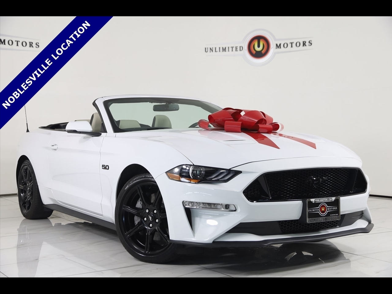 4x4, AWD, Back Up Camera, Bluetooth, Heated Seats, Push Button Start, Soft Top, and much more ..., Touch Screen, Mustang GT Premium, 2D Convertible, 5.0L V8 Ti-VCT, 10-Speed Automatic, RWD, Oxford White, Ceramic Leather.2019 Ford Mustang GT Premium 2D Convertible 10-Speed Automatic 5.0L V8 Ti-VCTClean CARFAX. Awards: * JD Power Vehicle Dependability Study (VDS) * 2019 KBB.com 10 Coolest Cars Under $30,000Visit our website www.iumotors.com to view 100s of newer vehicles, more pictures and info, or to apply for financing. Rates are incredibly low for approved credit. We offer extended warranties, protection packages, and insurance. We assure you the best experience at any of our 4 locations and unbeatable prices and quality. At Unlimited Motors we believe in MARKET VALUE PRICING. We use real-time Internet price comparisons to constantly adjust prices to provide ALL BUYERS The BEST PRICE possible. We do not mark them up, to mark them down! Our entire team is committed to helping you buy a car the way we would want to buy a car! We utilize state-of-the-art technology to constantly monitor pricing trends to offer our shoppers the best competitive pricing, value, and experience. We sell and service all makes and models of Pre-owned / Used Vehicles Used Cars, Used Trucks, Used Sport Utility, Lamborghini, Ferrari, Bentley, Rolls Royce, McLaren, Maserati, Ford, Chevrolet/Chevy, Honda, Toyota, Porsche, Land Rover, Jaguar, INFINITI, Audi, Nissan, Mazda, Hyundai, Chrysler, Jeep, Dodge, Ram, SRT, Mitsubishi, Lexus, Kia, Volkswagen, Mini, BMW, Mercedes, Fiat, Volvo, GMC, Cadillac, Lincoln as well as other brands. Proudly serving these areas of Indianapolis, Fishers, Carmel, Noblesville, Greenwood, Avon, Plainfield, Zionsville, & Brownsburg, Indiana, Midwest. We also serve the entire nation with our seamless and easy online purchasing process, and offer shipping nationwide.Advertised prices DO NOT include Sales Tax, Dealer Fees, Title Processing Charges, and Dealer Pre-installed Products.