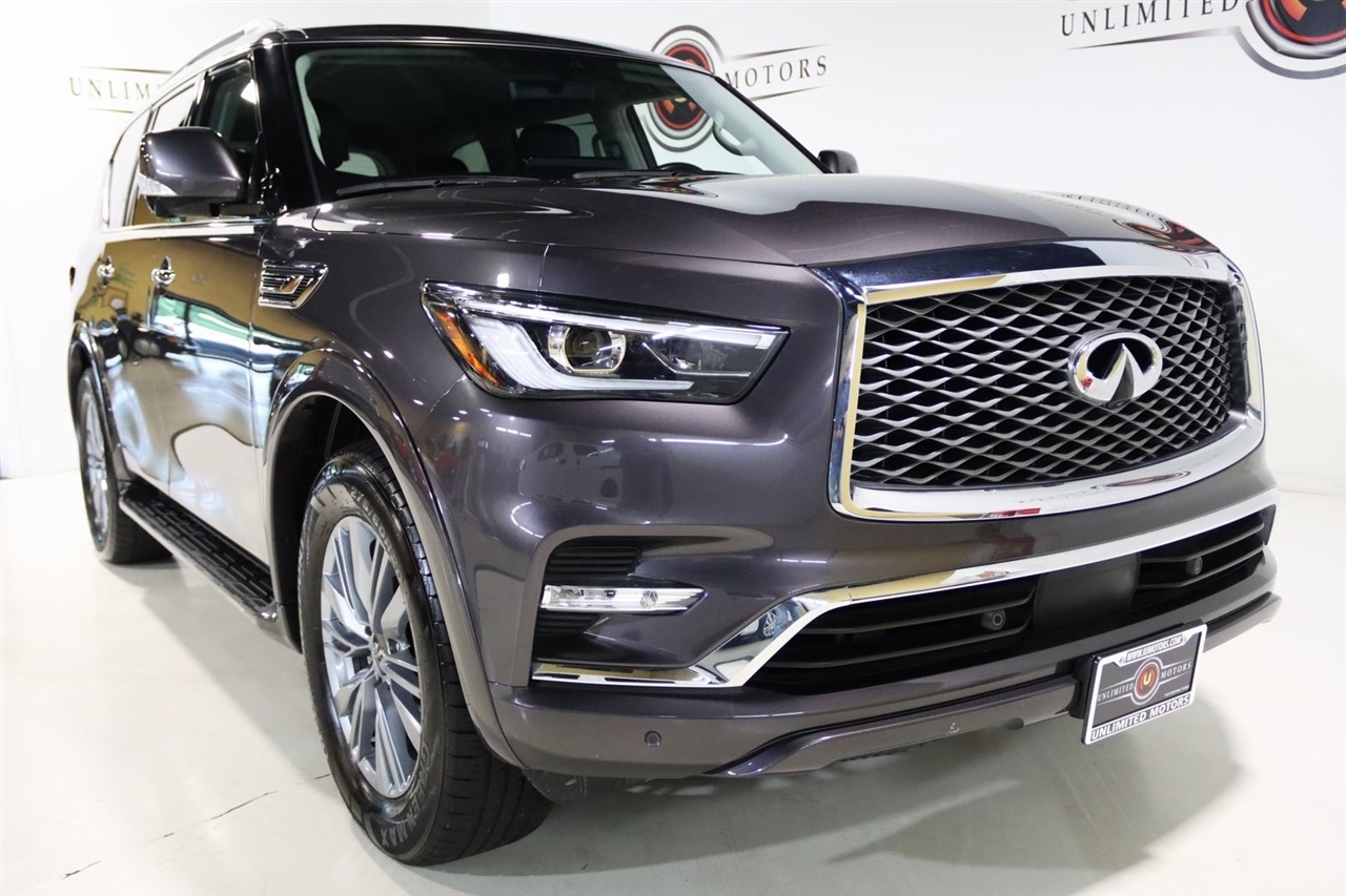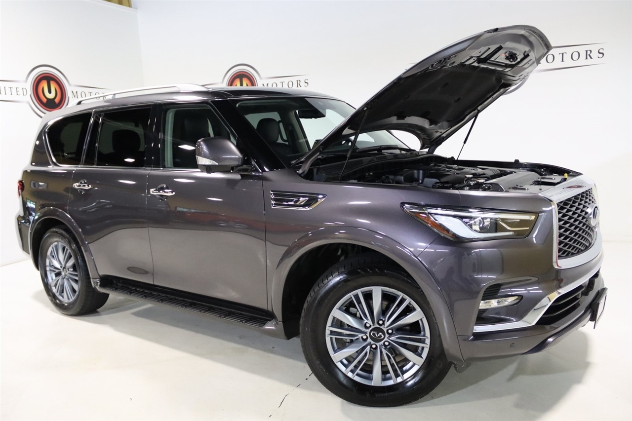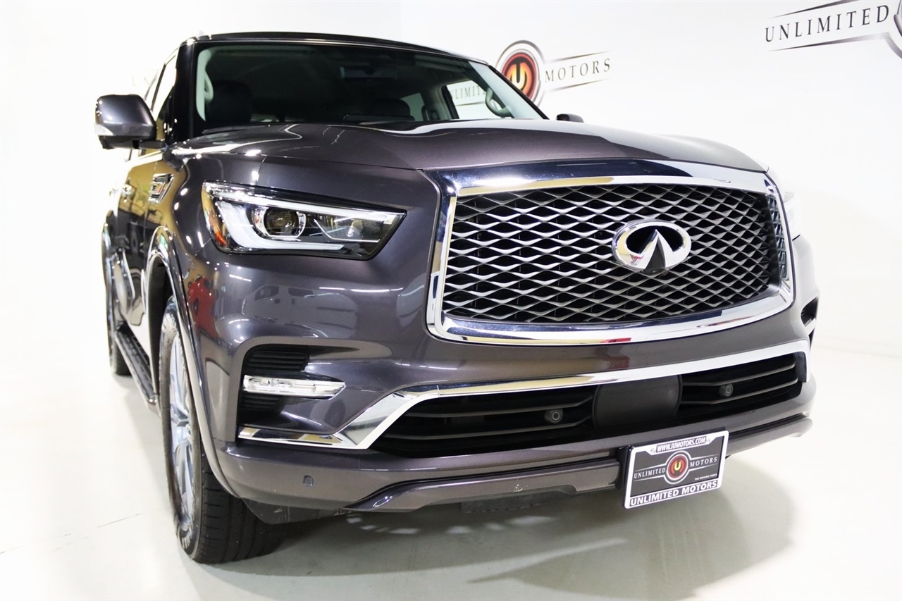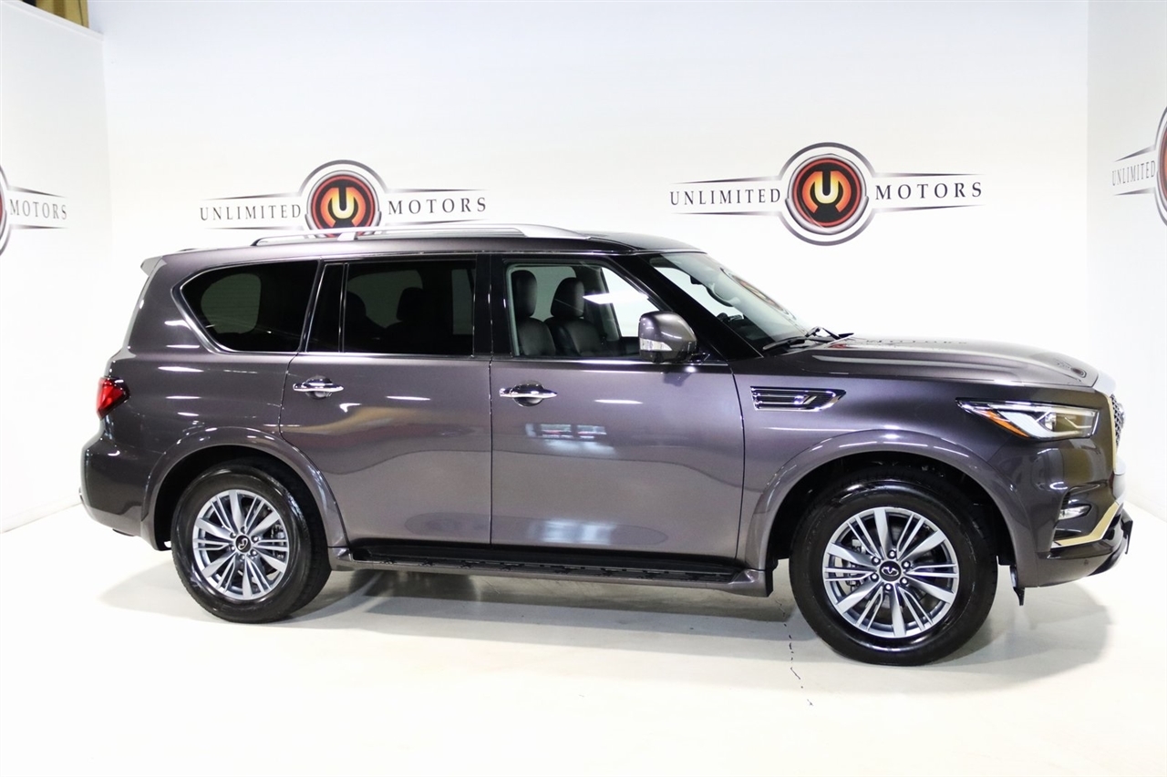 Navigation, Bluetooth, Back Up Camera, Sun/Moon Roof, 3rd Row, Heated Seats, Touch Screen, 13 Speakers, 2.937 Axle Ratio, 20 Aluminum Alloy Wheels, 3rd row seats: bench, 4-Wheel Disc Brakes, ABS brakes, Air Conditioning, Alloy wheels, AM/FM radio: SiriusXM, Anti-whiplash front head restraints, Apple CarPlay/Android Auto, Auto High-beam Headlights, Auto tilt-away steering wheel, Auto-dimming door mirrors, Auto-dimming Rear-View mirror, Auto-leveling suspension, Automatic temperature control, Brake assist, Bumpers: body-color, Compass, Delay-off headlights, Driver door bin, Driver vanity mirror, Dual front impact airbags, Dual front side impact airbags, Electronic Stability Control, Emergency communication system: INFINITI InTouch, Four wheel independent suspension, Front anti-roll bar, Front Bucket Seats, Front Center Armrest, Front dual zone A/C, Front fog lights, Front reading lights, Fully automatic headlights, Garage door transmitter: HomeLink, Heated door mirrors, Heated Front Bucket Seats, Heated front seats, Heated steering wheel, Illuminated entry, Leather Shift Knob, Leather steering wheel, Leather-Appointed Seats, Low tire pressure warning, Memory seat, Navigation System, Navigation system: INFINITI InTouch Navigation, Occupant sensing airbag, Outside temperature display, Overhead airbag, Overhead console, Panic alarm, Passenger door bin, Passenger vanity mirror, Power door mirrors, Power driver seat, Power Liftgate, Power moonroof, Power passenger seat, Power steering, Power windows, Radio data system, Radio: Bose Premium Audio System w/13 Speakers, Rain sensing wipers, Rear air conditioning, Rear anti-roll bar, Rear reading lights, Rear seat center armrest, Rear window defroster, Rear window wiper, Reclining 3rd row seat, Remote keyless entry, Security system, Speed control, Speed-sensing steering, Split folding rear seat, Spoiler, Steering wheel memory, Steering wheel mounted audio controls, Tachometer, Telescoping steering wheel, Tilt steering wheel, Traction control, Trip computer, Turn signal indicator mirrors, Variably intermittent wipers, Voltmeter. CARFAX One-Owner. Odometer is 14239 miles below market average! Priced below KBB Fair Purchase Price!2024 Anthracite Gray INFINITI 4D Sport Utility QX80 LUXE 4WD 7-Speed Automatic 5.6L V8Visit our website www.iumotors.com to view 100s of newer vehicles, more pictures and info, or to apply for financing. Rates are incredibly low for approved credit. We offer extended warranties, protection packages, and insurance. We assure you the best experience at any of our 4 locations and unbeatable prices and quality. At Unlimited Motors we believe in MARKET VALUE PRICING. We use real-time Internet price comparisons to constantly adjust prices to provide ALL BUYERS The BEST PRICE possible. We do not mark them up, to mark them down! Our entire team is committed to helping you buy a car the way we would want to buy a car! We utilize state-of-the-art technology to constantly monitor pricing trends to offer our shoppers the best competitive pricing, value, and experience. We sell and service all makes and models of Pre-owned / Used Vehicles Used Cars, Used Trucks, Used Sport Utility, Lamborghini, Ferrari, Bentley, Rolls Royce, McLaren, Maserati, Ford, Chevrolet/Chevy, Honda, Toyota, Porsche, Land Rover, Jaguar, INFINITI, Audi, Nissan, Mazda, Hyundai, Chrysler, Jeep, Dodge, Ram, SRT, Mitsubishi, Lexus, Kia, Volkswagen, Mini, BMW, Mercedes, Fiat, Volvo, GMC, Cadillac, Lincoln as well as other brands. Proudly serving these areas of Indianapolis, Fishers, Carmel, Noblesville, Greenwood, Avon, Plainfield, Zionsville, & Brownsburg, Indiana, Midwest. We also serve the entire nation with our seamless and easy online purchasing process, and offer shipping nationwide.Advertised prices DO NOT include Sales Tax, Dealer Fees, Title Processing Charges, and Dealer Pre-installed Products.