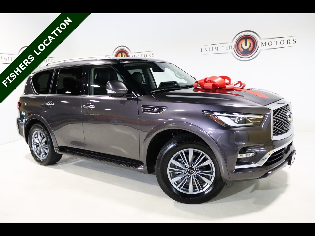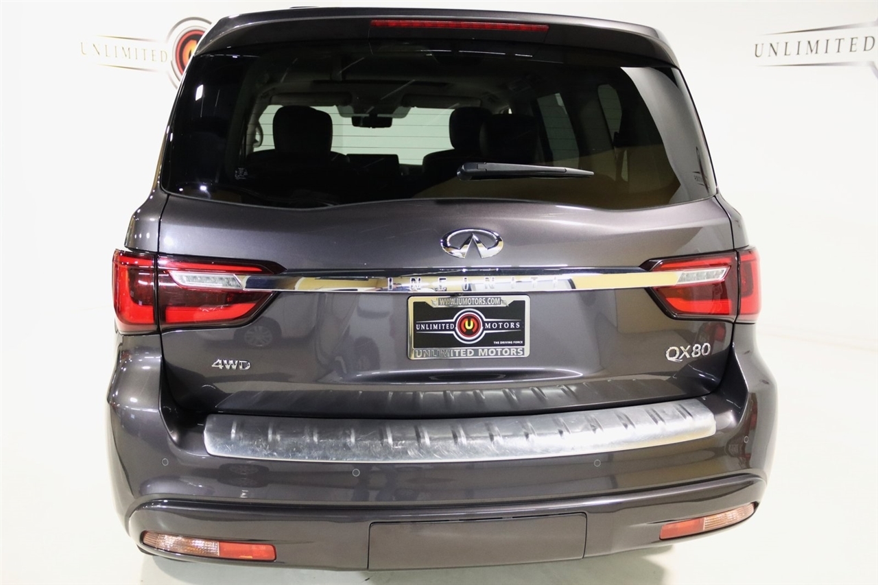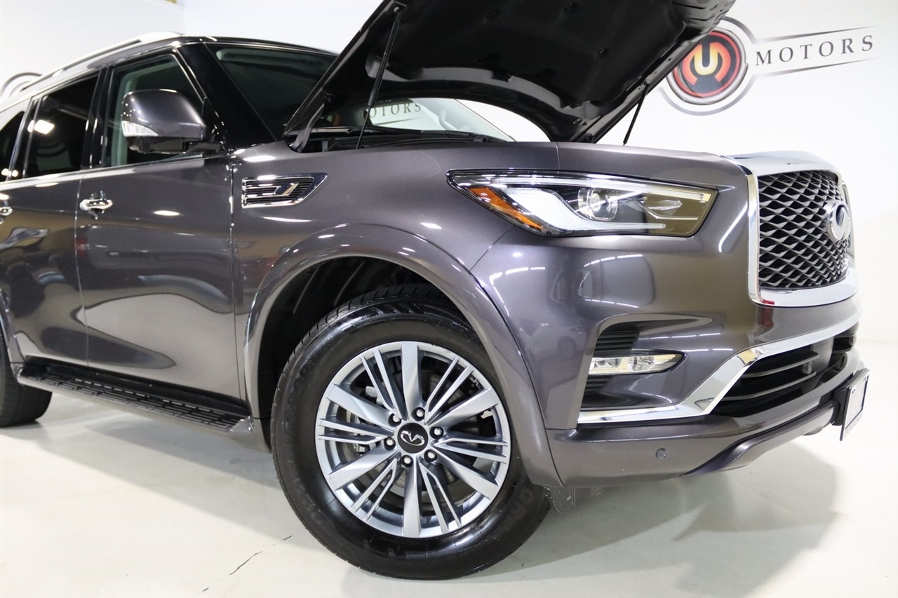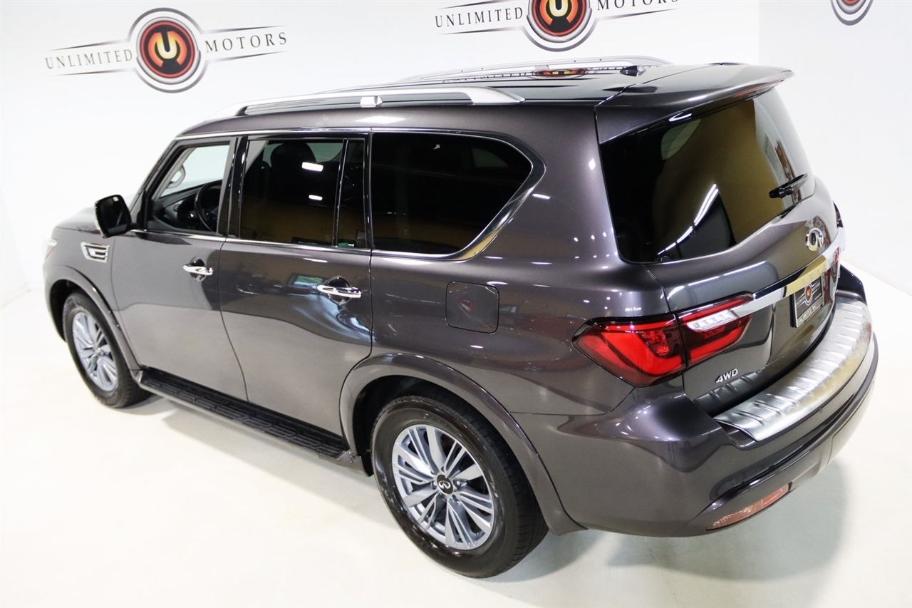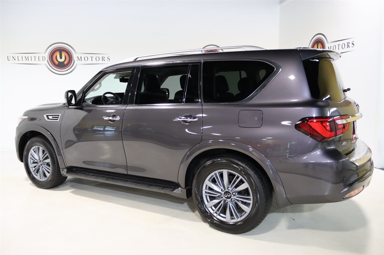 Navigation, Bluetooth, Back Up Camera, Sun/Moon Roof, 3rd Row, Heated Seats, Touch Screen, 13 Speakers, 2.937 Axle Ratio, 20 Aluminum Alloy Wheels, 3rd row seats: bench, 4-Wheel Disc Brakes, ABS brakes, Air Conditioning, Alloy wheels, AM/FM radio: SiriusXM, Anti-whiplash front head restraints, Apple CarPlay/Android Auto, Auto High-beam Headlights, Auto tilt-away steering wheel, Auto-dimming door mirrors, Auto-dimming Rear-View mirror, Auto-leveling suspension, Automatic temperature control, Brake assist, Bumpers: body-color, Compass, Delay-off headlights, Driver door bin, Driver vanity mirror, Dual front impact airbags, Dual front side impact airbags, Electronic Stability Control, Emergency communication system: INFINITI InTouch, Four wheel independent suspension, Front anti-roll bar, Front Bucket Seats, Front Center Armrest, Front dual zone A/C, Front fog lights, Front reading lights, Fully automatic headlights, Garage door transmitter: HomeLink, Heated door mirrors, Heated Front Bucket Seats, Heated front seats, Heated steering wheel, Illuminated entry, Leather Shift Knob, Leather steering wheel, Leather-Appointed Seats, Low tire pressure warning, Memory seat, Navigation System, Navigation system: INFINITI InTouch Navigation, Occupant sensing airbag, Outside temperature display, Overhead airbag, Overhead console, Panic alarm, Passenger door bin, Passenger vanity mirror, Power door mirrors, Power driver seat, Power Liftgate, Power moonroof, Power passenger seat, Power steering, Power windows, Radio data system, Radio: Bose Premium Audio System w/13 Speakers, Rain sensing wipers, Rear air conditioning, Rear anti-roll bar, Rear reading lights, Rear seat center armrest, Rear window defroster, Rear window wiper, Reclining 3rd row seat, Remote keyless entry, Security system, Speed control, Speed-sensing steering, Split folding rear seat, Spoiler, Steering wheel memory, Steering wheel mounted audio controls, Tachometer, Telescoping steering wheel, Tilt steering wheel, Traction control, Trip computer, Turn signal indicator mirrors, Variably intermittent wipers, Voltmeter. CARFAX One-Owner. Odometer is 14239 miles below market average! Priced below KBB Fair Purchase Price!2024 Anthracite Gray INFINITI 4D Sport Utility QX80 LUXE 4WD 7-Speed Automatic 5.6L V8Visit our website www.iumotors.com to view 100s of newer vehicles, more pictures and info, or to apply for financing. Rates are incredibly low for approved credit. We offer extended warranties, protection packages, and insurance. We assure you the best experience at any of our 4 locations and unbeatable prices and quality. At Unlimited Motors we believe in MARKET VALUE PRICING. We use real-time Internet price comparisons to constantly adjust prices to provide ALL BUYERS The BEST PRICE possible. We do not mark them up, to mark them down! Our entire team is committed to helping you buy a car the way we would want to buy a car! We utilize state-of-the-art technology to constantly monitor pricing trends to offer our shoppers the best competitive pricing, value, and experience. We sell and service all makes and models of Pre-owned / Used Vehicles Used Cars, Used Trucks, Used Sport Utility, Lamborghini, Ferrari, Bentley, Rolls Royce, McLaren, Maserati, Ford, Chevrolet/Chevy, Honda, Toyota, Porsche, Land Rover, Jaguar, INFINITI, Audi, Nissan, Mazda, Hyundai, Chrysler, Jeep, Dodge, Ram, SRT, Mitsubishi, Lexus, Kia, Volkswagen, Mini, BMW, Mercedes, Fiat, Volvo, GMC, Cadillac, Lincoln as well as other brands. Proudly serving these areas of Indianapolis, Fishers, Carmel, Noblesville, Greenwood, Avon, Plainfield, Zionsville, & Brownsburg, Indiana, Midwest. We also serve the entire nation with our seamless and easy online purchasing process, and offer shipping nationwide.Advertised prices DO NOT include Sales Tax, Dealer Fees, Title Processing Charges, and Dealer Pre-installed Products.