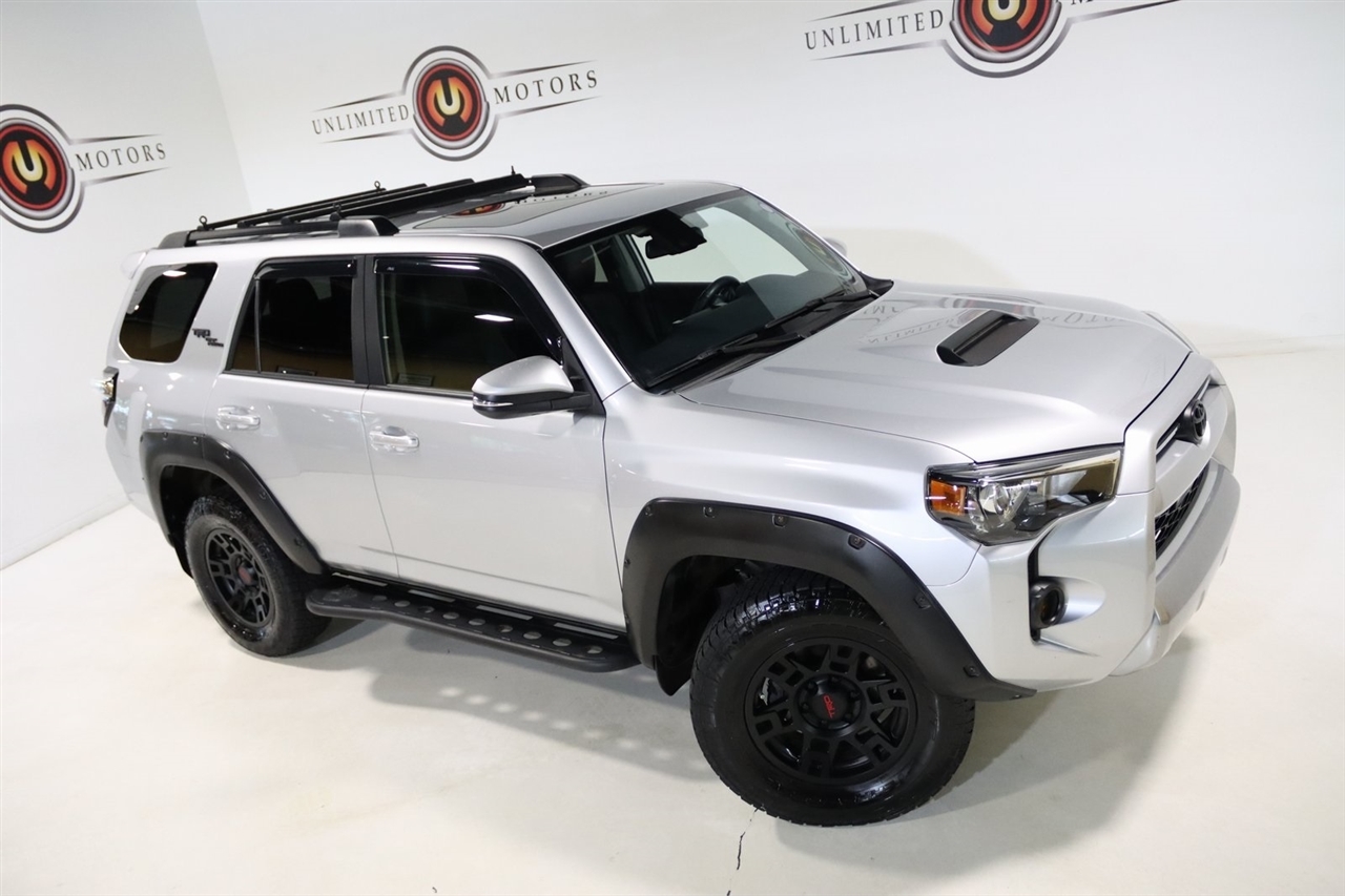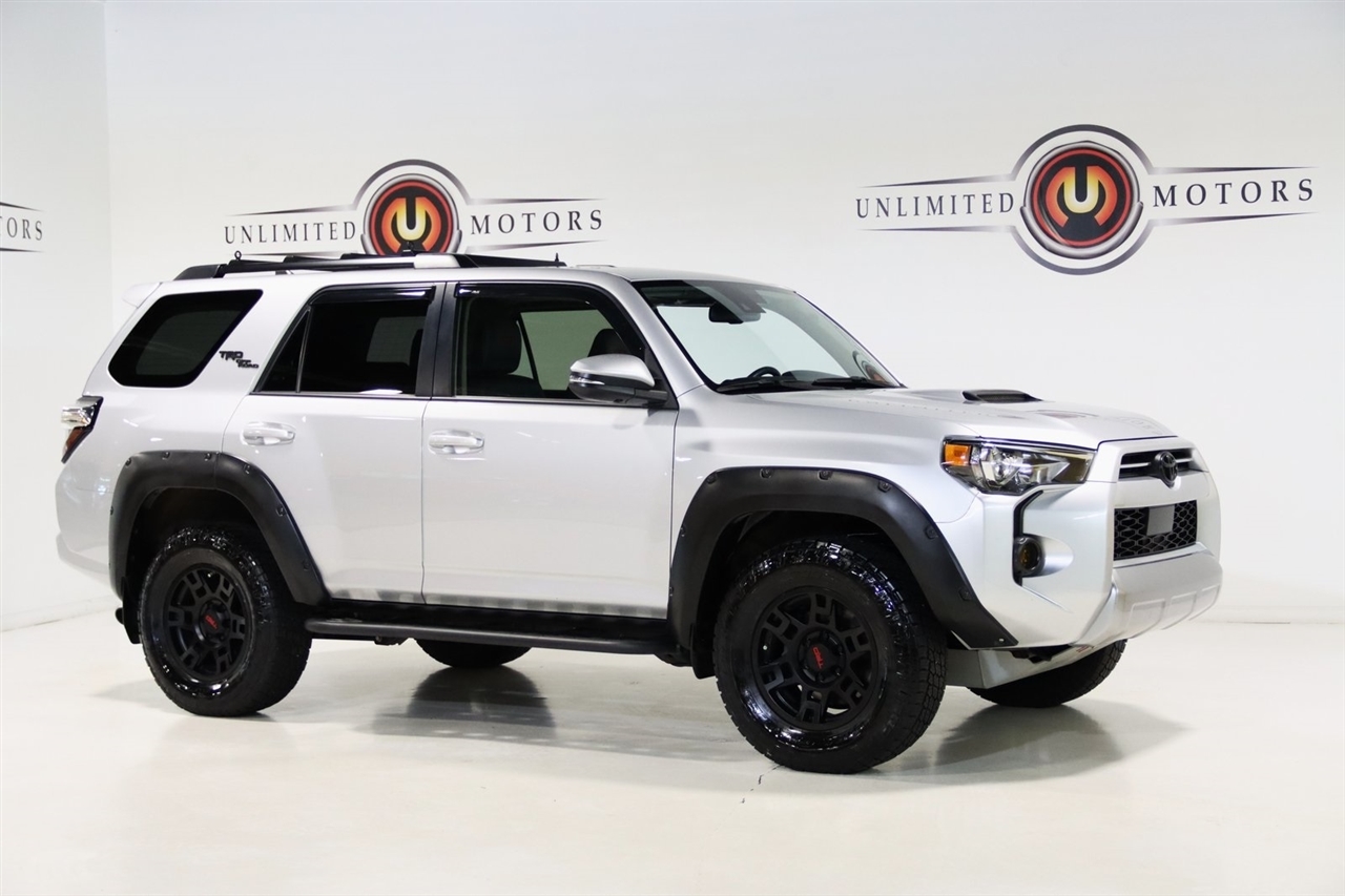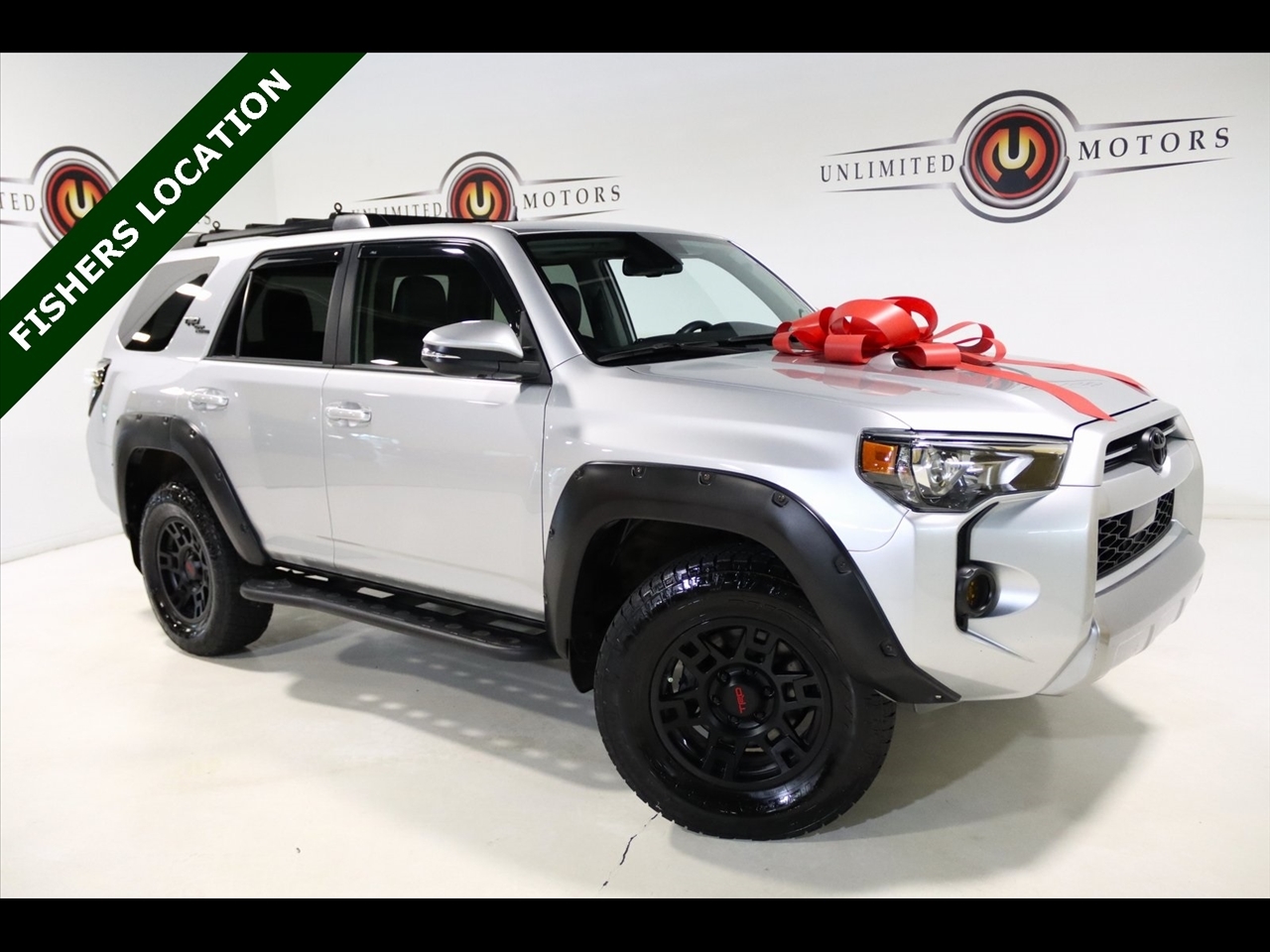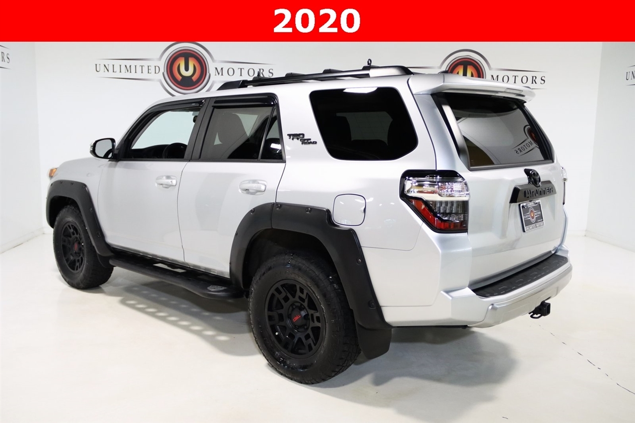 Navigation, Bluetooth, Back Up Camera, Sun/Moon Roof, Towing, Luggage Rack, Heated Seats, 3.727 Axle Ratio, 4-Wheel Disc Brakes, 8 Speakers, ABS brakes, Active Cruise Control, Air Conditioning, Alloy wheels, AM/FM radio: SiriusXM, Anti-whiplash front head restraints, Apple CarPlay/Android Auto, Auto High-beam Headlights, Auto-dimming Rear-View mirror, Black Roof Rails, Body Color Heated Mirrors, Brake assist, Bumpers: body-color, Compass, Driver door bin, Driver vanity mirror, Dual front impact airbags, Dual front side impact airbags, Electronic Stability Control, Emergency communication system: Safety Connect with 1-year trial, Exterior Parking Camera Rear, Front anti-roll bar, Front Bucket Seats, Front Center Armrest, Front fog lights, Front reading lights, Front wheel independent suspension, Garage Door Opener, Garage door transmitter: HomeLink, Heated door mirrors, Heated Front Bucket Seats, Heated front seats, Illuminated entry, Knee airbag, Leather Shift Knob, Low tire pressure warning, Navigation System, Occupant sensing airbag, Outside temperature display, Overhead airbag, Overhead console, Panic alarm, Passenger door bin, Passenger vanity mirror, Power door mirrors, Power driver seat, Power passenger seat, Power steering, Power windows, Radio: Premium Audio w/Dynamic Navigation, Rear anti-roll bar, Rear seat center armrest, Rear window defroster, Rear window wiper, Remote keyless entry, Roof rack: rails only, Security system, Softex Synthetic Leather Seat Trim, Speed control, Speed-sensing steering, Split folding rear seat, Spoiler, Steering wheel mounted audio controls, Tachometer, Telescoping steering wheel, Tilt steering wheel, Traction control, Trip computer, Turn signal indicator mirrors, Variably intermittent wipers, Wheels: 17 x 7.5 7-Spoke Unique Off-Road Alloy. Clean CARFAX. Odometer is 40004 miles below market average!2020 Classic Silver Metallic Toyota 4D Sport Utility 4Runner TRD Off-Road Premium 4WD 5-Speed Automatic with Overdrive 4.0L V6 SMPI DOHCVisit our website www.iumotors.com to view 100s of newer vehicles, more pictures and info, or to apply for financing. Rates are incredibly low for approved credit. We offer extended warranties, protection packages, and insurance. We assure you the best experience at any of our 4 locations and unbeatable prices and quality. At Unlimited Motors we believe in MARKET VALUE PRICING. We use real-time Internet price comparisons to constantly adjust prices to provide ALL BUYERS The BEST PRICE possible. We do not mark them up, to mark them down! Our entire team is committed to helping you buy a car the way we would want to buy a car! We utilize state-of-the-art technology to constantly monitor pricing trends to offer our shoppers the best competitive pricing, value, and experience. We sell and service all makes and models of Pre-owned / Used Vehicles Used Cars, Used Trucks, Used Sport Utility, Lamborghini, Ferrari, Bentley, Rolls Royce, McLaren, Maserati, Ford, Chevrolet/Chevy, Honda, Toyota, Porsche, Land Rover, Jaguar, INFINITI, Audi, Nissan, Mazda, Hyundai, Chrysler, Jeep, Dodge, Ram, SRT, Mitsubishi, Lexus, Kia, Volkswagen, Mini, BMW, Mercedes, Fiat, Volvo, GMC, Cadillac, Lincoln as well as other brands. Proudly serving these areas of Indianapolis, Fishers, Carmel, Noblesville, Greenwood, Avon, Plainfield, Zionsville, & Brownsburg, Indiana, Midwest. We also serve the entire nation with our seamless and easy online purchasing process, and offer shipping nationwide.Advertised prices DO NOT include Sales Tax, Dealer Fees, Title Processing Charges, and Dealer Pre-installed Products.