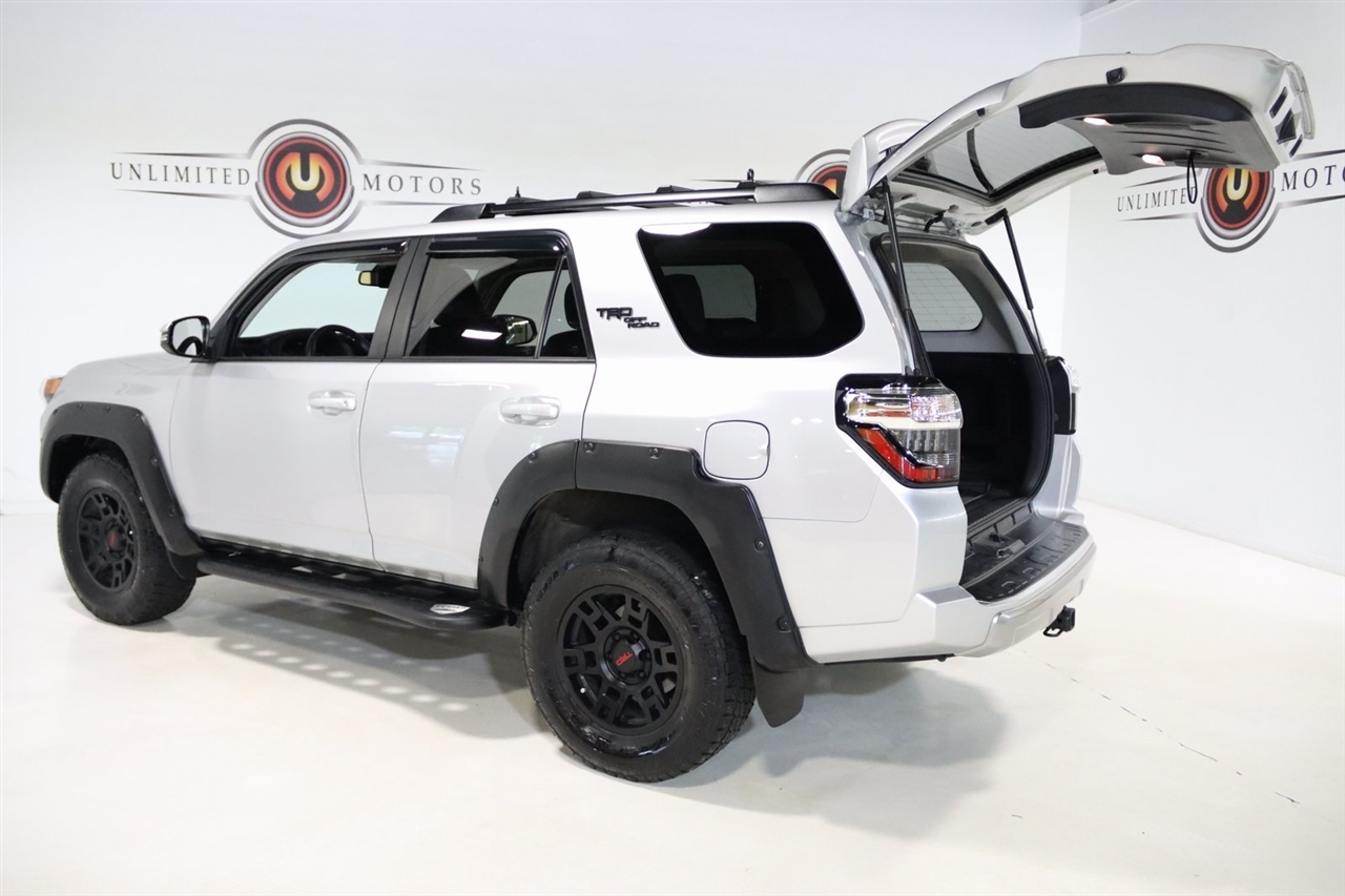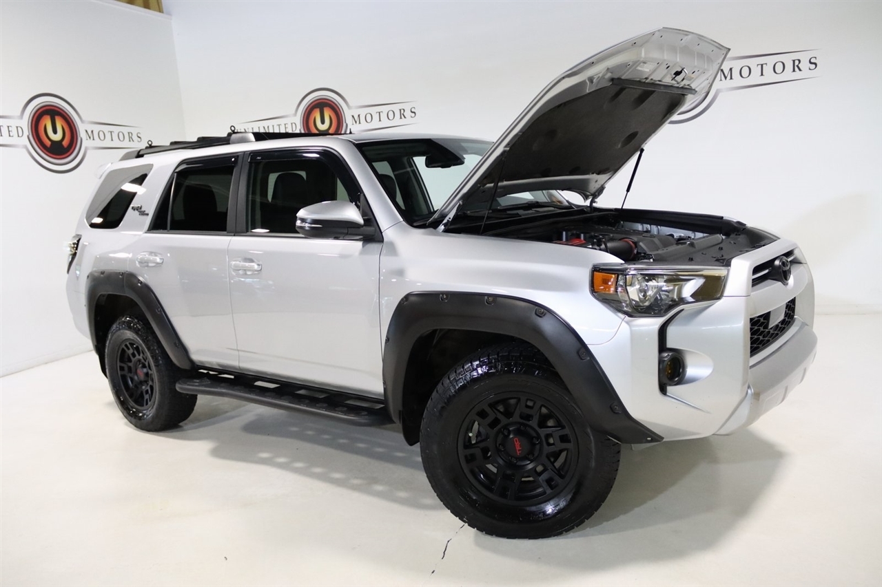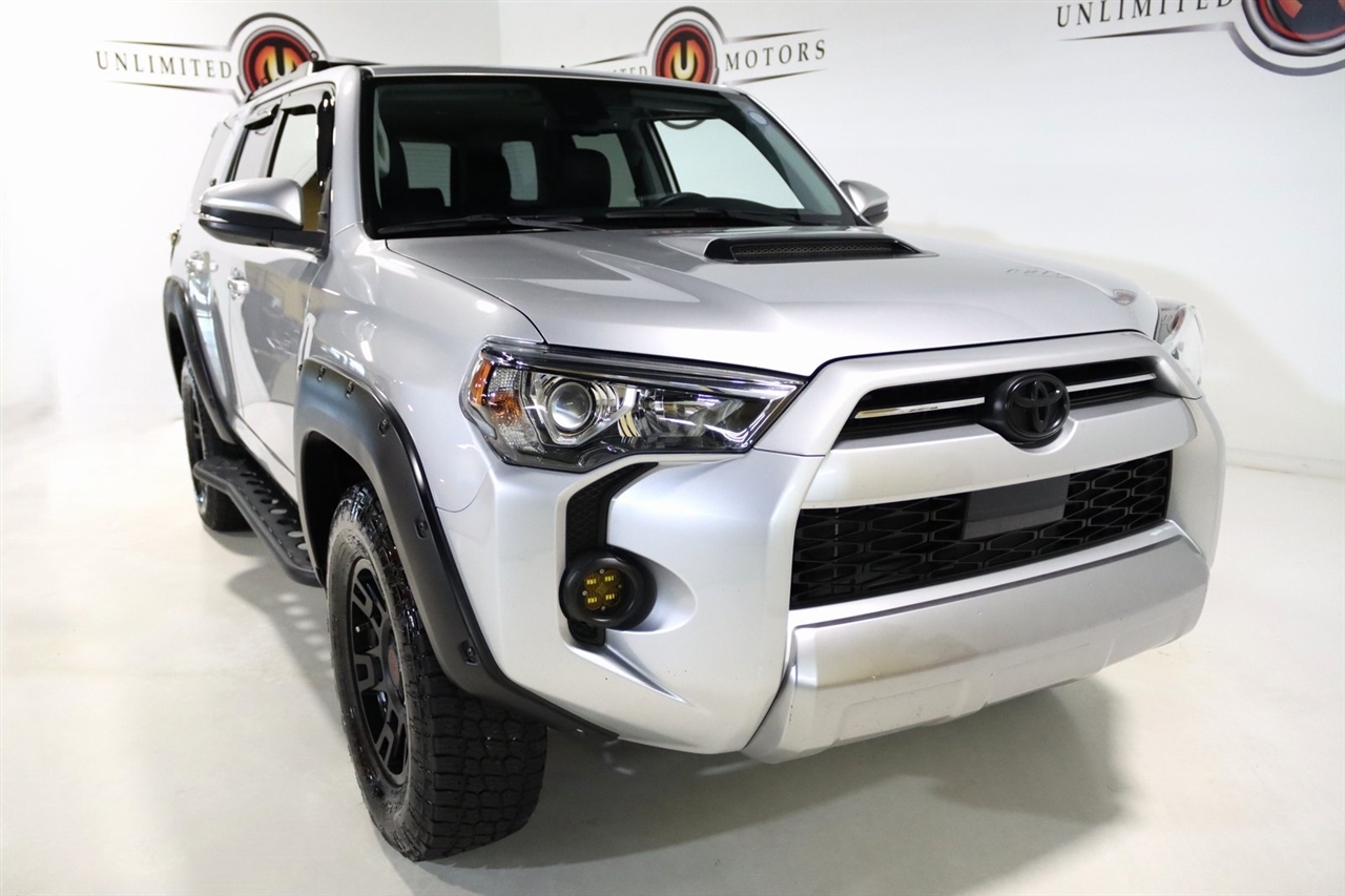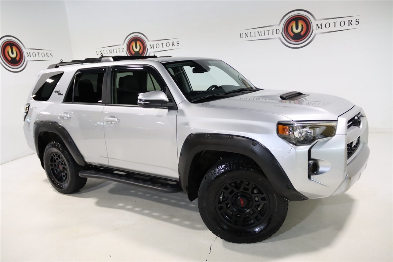 Navigation, Bluetooth, Back Up Camera, Sun/Moon Roof, Towing, Luggage Rack, Heated Seats, 3.727 Axle Ratio, 4-Wheel Disc Brakes, 8 Speakers, ABS brakes, Active Cruise Control, Air Conditioning, Alloy wheels, AM/FM radio: SiriusXM, Anti-whiplash front head restraints, Apple CarPlay/Android Auto, Auto High-beam Headlights, Auto-dimming Rear-View mirror, Black Roof Rails, Body Color Heated Mirrors, Brake assist, Bumpers: body-color, Compass, Driver door bin, Driver vanity mirror, Dual front impact airbags, Dual front side impact airbags, Electronic Stability Control, Emergency communication system: Safety Connect with 1-year trial, Exterior Parking Camera Rear, Front anti-roll bar, Front Bucket Seats, Front Center Armrest, Front fog lights, Front reading lights, Front wheel independent suspension, Garage Door Opener, Garage door transmitter: HomeLink, Heated door mirrors, Heated Front Bucket Seats, Heated front seats, Illuminated entry, Knee airbag, Leather Shift Knob, Low tire pressure warning, Navigation System, Occupant sensing airbag, Outside temperature display, Overhead airbag, Overhead console, Panic alarm, Passenger door bin, Passenger vanity mirror, Power door mirrors, Power driver seat, Power passenger seat, Power steering, Power windows, Radio: Premium Audio w/Dynamic Navigation, Rear anti-roll bar, Rear seat center armrest, Rear window defroster, Rear window wiper, Remote keyless entry, Roof rack: rails only, Security system, Softex Synthetic Leather Seat Trim, Speed control, Speed-sensing steering, Split folding rear seat, Spoiler, Steering wheel mounted audio controls, Tachometer, Telescoping steering wheel, Tilt steering wheel, Traction control, Trip computer, Turn signal indicator mirrors, Variably intermittent wipers, Wheels: 17 x 7.5 7-Spoke Unique Off-Road Alloy. Clean CARFAX. Odometer is 40004 miles below market average!2020 Classic Silver Metallic Toyota 4D Sport Utility 4Runner TRD Off-Road Premium 4WD 5-Speed Automatic with Overdrive 4.0L V6 SMPI DOHCVisit our website www.iumotors.com to view 100s of newer vehicles, more pictures and info, or to apply for financing. Rates are incredibly low for approved credit. We offer extended warranties, protection packages, and insurance. We assure you the best experience at any of our 4 locations and unbeatable prices and quality. At Unlimited Motors we believe in MARKET VALUE PRICING. We use real-time Internet price comparisons to constantly adjust prices to provide ALL BUYERS The BEST PRICE possible. We do not mark them up, to mark them down! Our entire team is committed to helping you buy a car the way we would want to buy a car! We utilize state-of-the-art technology to constantly monitor pricing trends to offer our shoppers the best competitive pricing, value, and experience. We sell and service all makes and models of Pre-owned / Used Vehicles Used Cars, Used Trucks, Used Sport Utility, Lamborghini, Ferrari, Bentley, Rolls Royce, McLaren, Maserati, Ford, Chevrolet/Chevy, Honda, Toyota, Porsche, Land Rover, Jaguar, INFINITI, Audi, Nissan, Mazda, Hyundai, Chrysler, Jeep, Dodge, Ram, SRT, Mitsubishi, Lexus, Kia, Volkswagen, Mini, BMW, Mercedes, Fiat, Volvo, GMC, Cadillac, Lincoln as well as other brands. Proudly serving these areas of Indianapolis, Fishers, Carmel, Noblesville, Greenwood, Avon, Plainfield, Zionsville, & Brownsburg, Indiana, Midwest. We also serve the entire nation with our seamless and easy online purchasing process, and offer shipping nationwide.Advertised prices DO NOT include Sales Tax, Dealer Fees, Title Processing Charges, and Dealer Pre-installed Products.
