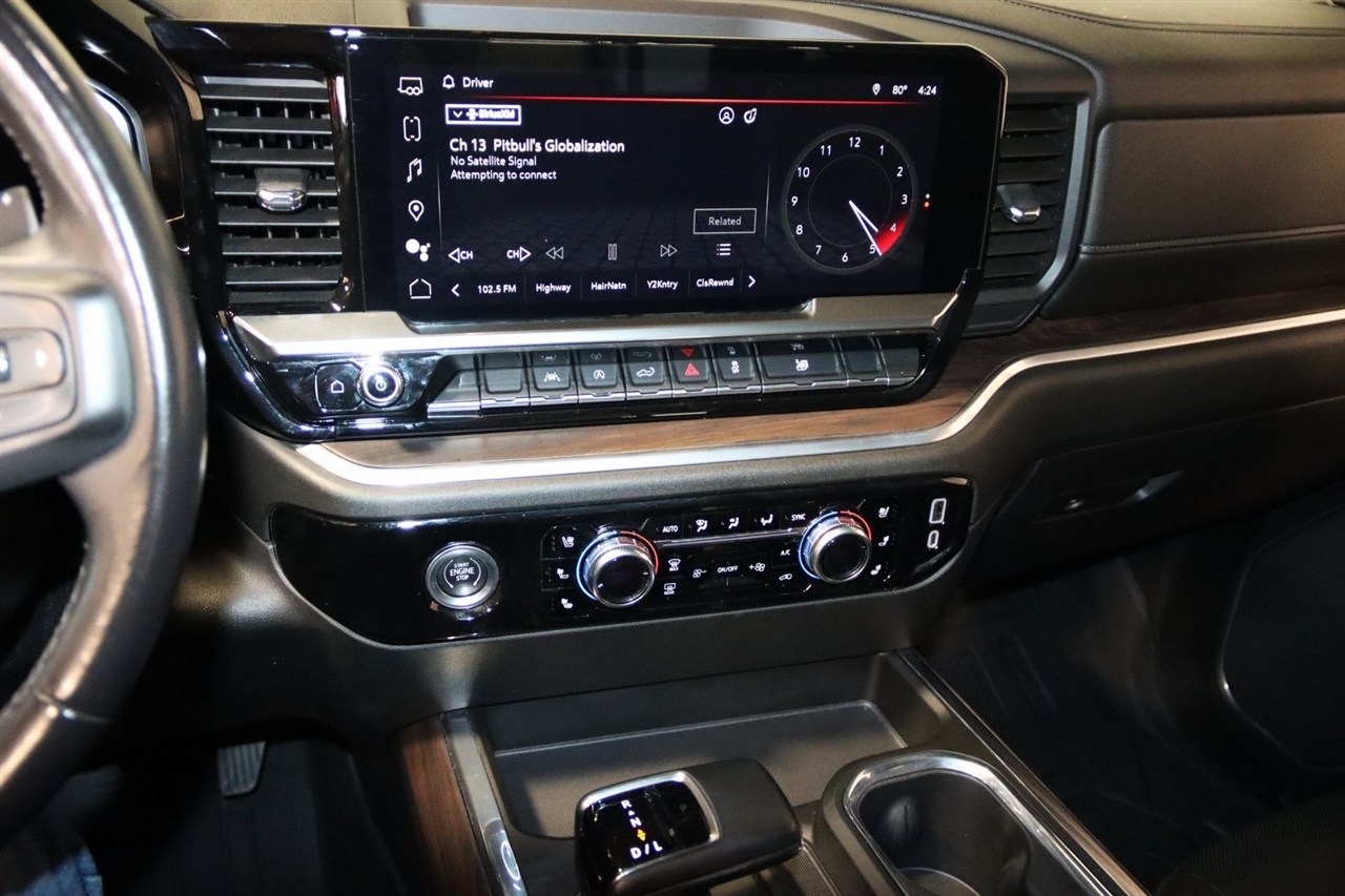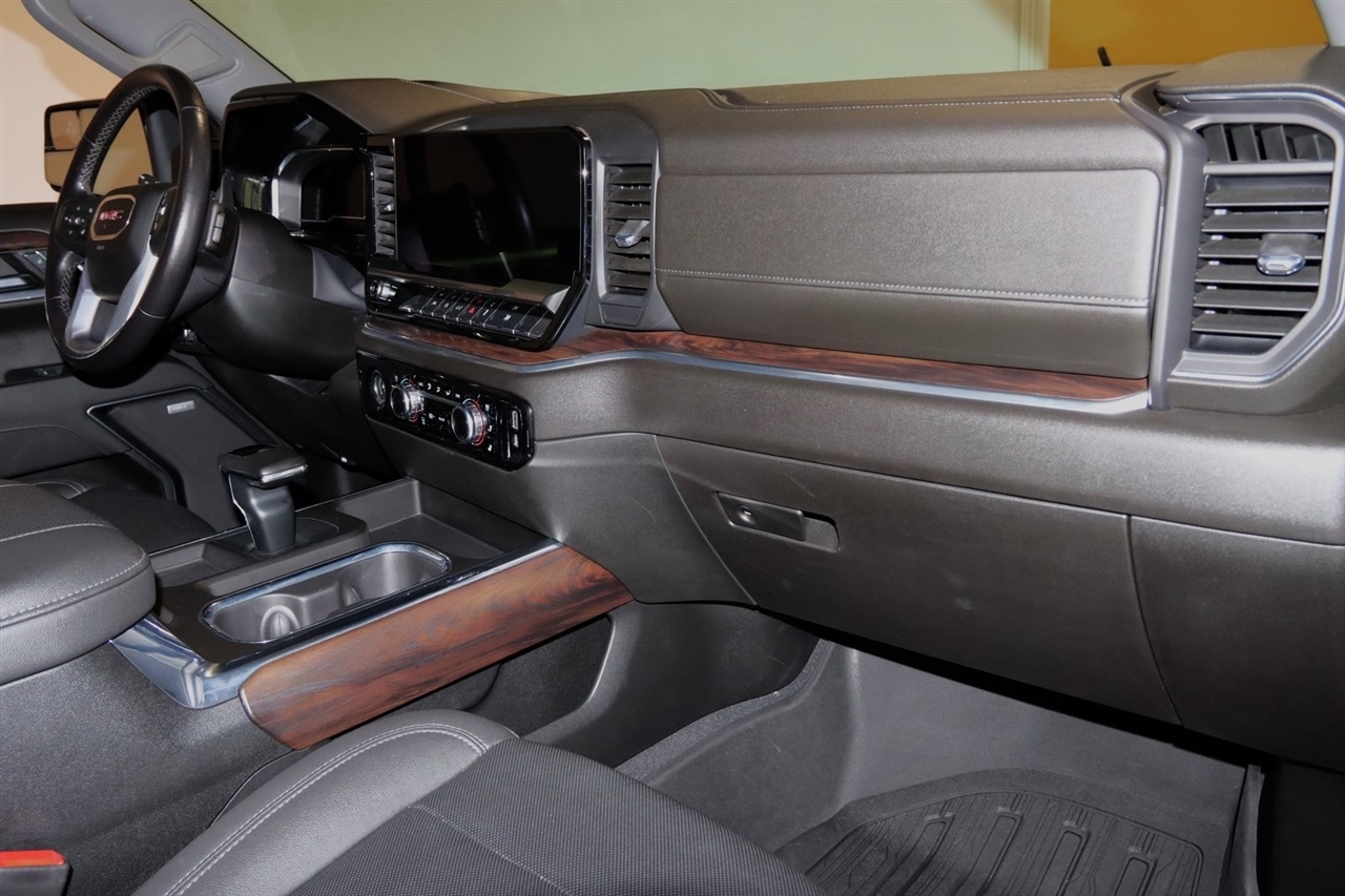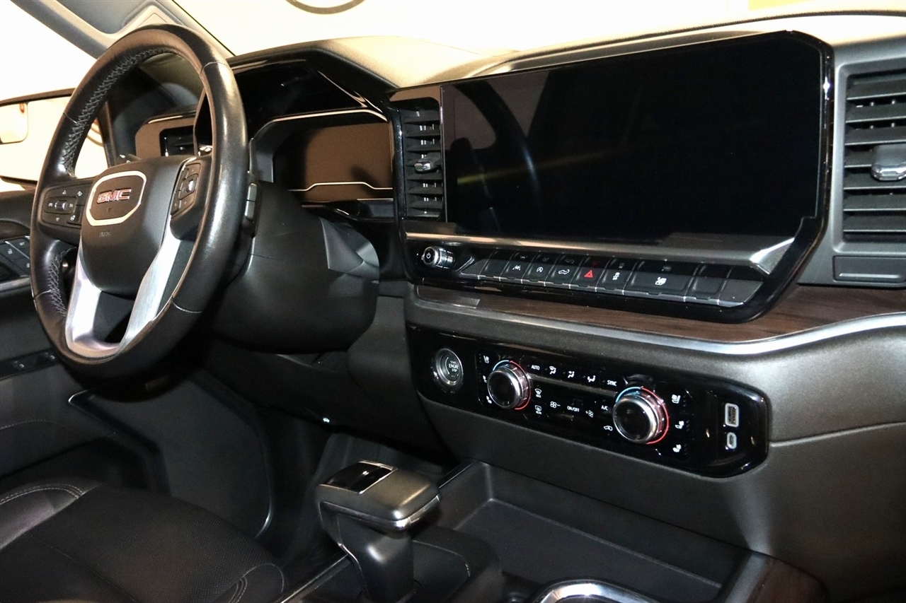 Navigation, Bluetooth, Back Up Camera, Sun/Moon Roof, Towing, Heated Seats, Touch Screen, 10-Way Power Driver Seat Adjuster w/Lumbar, 10-Way Power Passenger Seat Adjuster w/Lumbar, 120-Volt Bed Mounted Power Outlet, 120-Volt Instrument Panel Power Outlet, 170 Amp Alternator, 2 Charge/Data USB Ports, 2 Charge/Data USB Ports Inside Center Console, 2 Type-C Charge-Only Rear USB Ports, 220 Amp Alternator, 3.23 Rear Axle Ratio, 4-Wheel Disc Brakes, 6 Speakers, 6-Speaker Audio System Feature, ABS brakes, Adaptive Cruise Control, Air Conditioning, AM/FM radio, Apple CarPlay/Android Auto, Auto High-beam Headlights, Auto-dimming door mirrors, Auto-dimming Rear-View mirror, Auto-Locking Rear Differential, Automatic Emergency Braking, Automatic temperature control, Auxiliary External Transmission Oil Cooler, Brake assist, Buckle to Drive, Bumpers: chrome, Chrome Header & Chrome Grille Insert Bars, Chrome Wheel To Wheel Assist Steps, Color-Keyed Carpeting Floor Covering, Compass, Deep-Tinted Glass, Delay-off headlights, Driver door bin, Driver Memory, Driver vanity mirror, Dual front impact airbags, Dual front side impact airbags, Electric Rear-Window Defogger, Electrical Steering Column Lock, Electronic Precision Shift, Electronic Stability Control, Emergency communication system: OnStar and GMC connected services capable, Engine Block Heater, Floor-Mounted Center Console, Following Distance Indicator, Forward Collision Alert, Front 40/20/40 Split-Bench Seat, Front anti-roll bar, Front Bucket Seats, Front Center Armrest w/Storage, Front dual zone A/C, Front fog lights, Front Frame-Mounted Black Recovery Hooks, Front Pedestrian Braking, Front Rainsensing Wipers, Front reading lights, Front wheel independent suspension, Fully automatic headlights, GMC Connected Access Capable, HD Rear Vision Camera, Heated 2nd Row Outboard Seats, Heated door mirrors, Heated Driver & Front Outboard Passenger Seating, Heated front seats, Heated steering wheel, High Capacity Suspension Package, Hitch Guidance, Illuminated entry, IntelliBeam Automatic High Beam On/Off, Keyless Open & Start, Lane Keep Assist w/Lane Departure Warning, LED Cargo Area Lighting, Low tire pressure warning, Manual Tilt-Wheel & Telescoping Steering Column, Memory seat, Navigation System, Not Equipped w/Steering Column Lock, Occupant sensing airbag, OnStar & GMC Connected Services Capable, Outside temperature display, Overhead airbag, Overhead console, Panic alarm, Passenger door bin, Passenger vanity mirror, Perf Leather-Appointed Front Outboard Seat Trim, Perimeter Lighting, Power Door Locks, Power door mirrors, Power driver seat, Power Front Passenger Windows w/Express Up/Down, Power Front Windows w/Driver Express Up/Down, Power passenger seat, Power Rake & Telescoping Steering Column, Power Rear Windows w/Express Down, Power Sliding Rear Window w/Rear Defogger, Power steering, Power Sunroof, Power windows, Preferred Equipment Group 4SA, Premium audio system: GMC Infotainment System, Premium Bose 7-Speaker Sound System, Push Button Start, Radio data system, Radio: Premium GMC Infotainment Audio System, Rain sensing wipers, Rear reading lights, Rear seat center armrest, Rear step bumper, Rear Wheelhouse Liners, Rear window defroster, Remote keyless entry, Remote Vehicle Starter System, Security system, SiriusXM w/360L, SLT Convenience Package, SLT Preferred Package, Speed control, Speed-sensing steering, Split folding rear seat, Spray-On Pickup Bed Liner w/GMC Logo, Standard Suspension Package, Steering Wheel Audio Controls, Steering wheel mounted audio controls, Tachometer, Telescoping steering wheel, Theft Deterrent System (Unauthorized Entry), Tilt steering wheel, Traction control, Trailering Package, Trip computer, Universal Home Remote, Variably intermittent wipers, Ventilated Driver & Front Passenger Seats, Voltmeter, Wi-Fi Hotspot Capable, Wireless Charging, Wireless Phone Projection. Clean CARFAX. 22/27 City/Highway MPG Odometer is 9882 miles below market average!2023