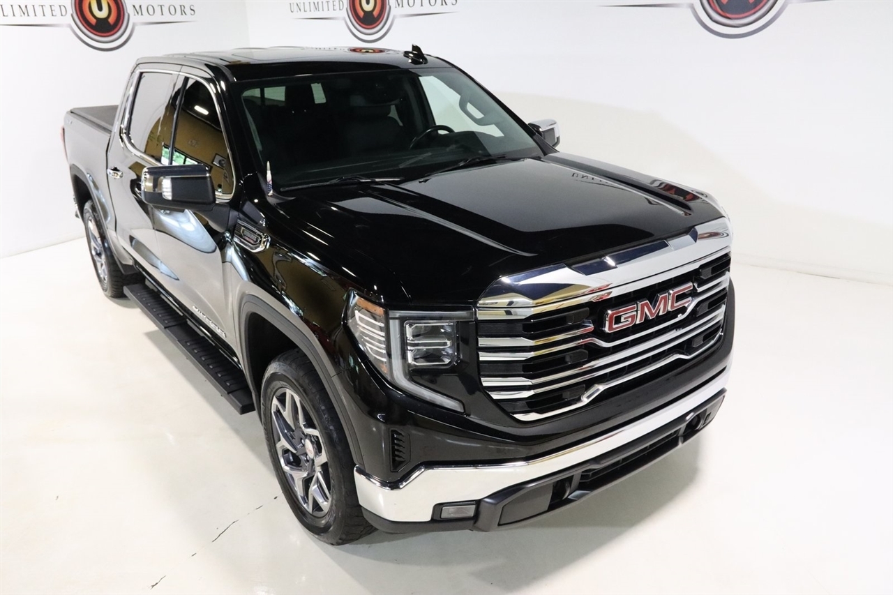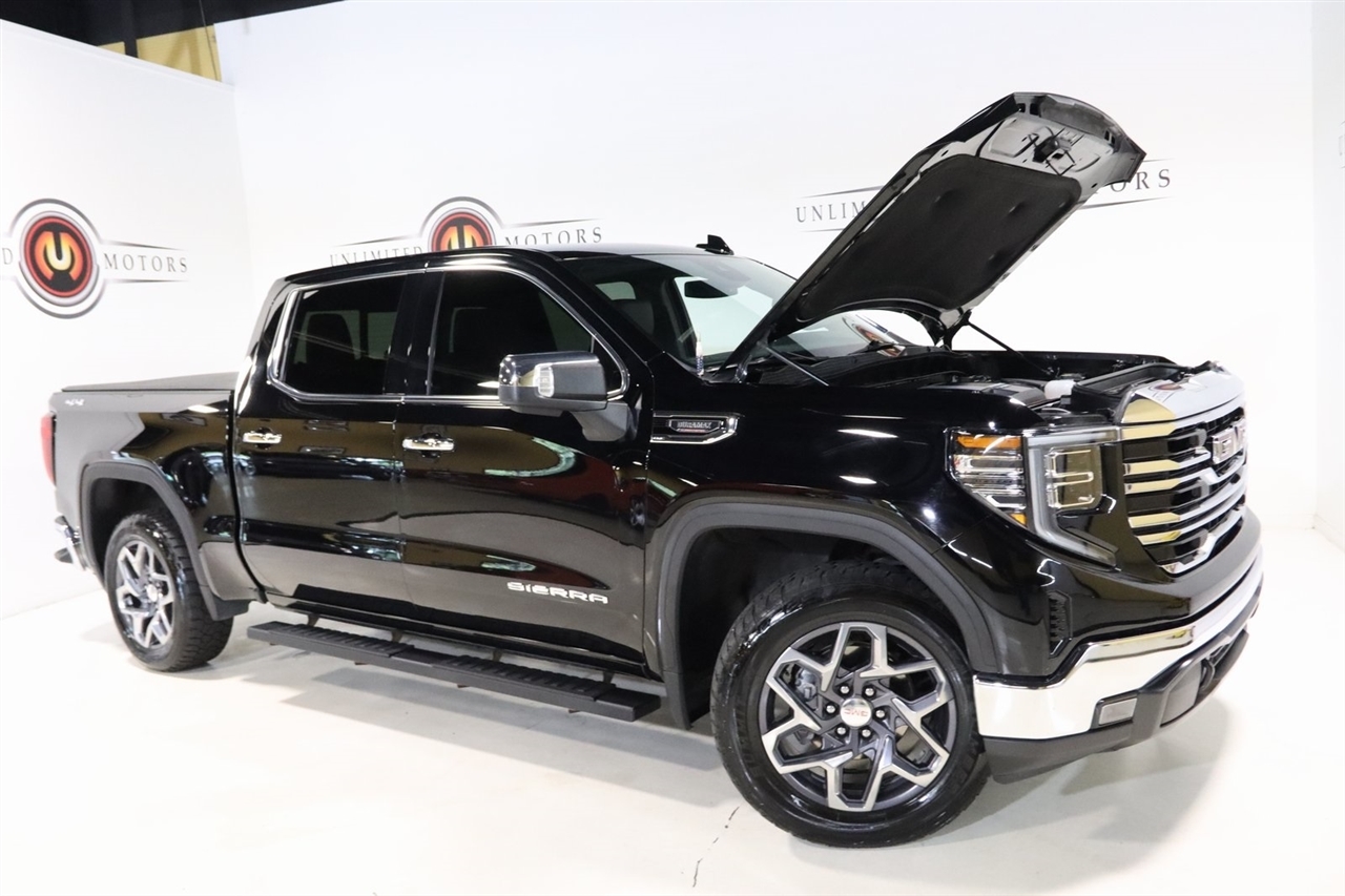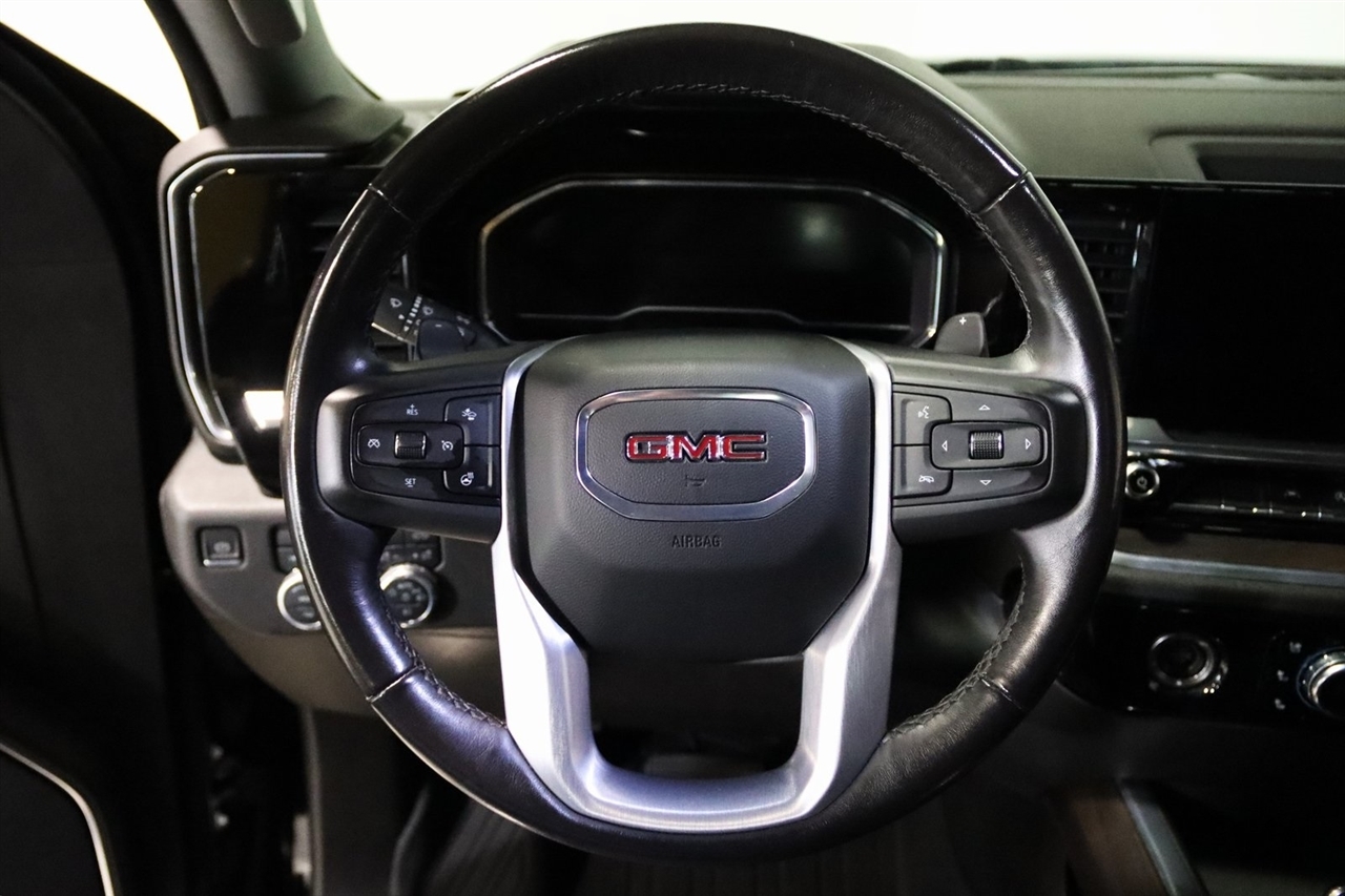 Navigation, Bluetooth, Back Up Camera, Sun/Moon Roof, Towing, Heated Seats, Touch Screen, 10-Way Power Driver Seat Adjuster w/Lumbar, 10-Way Power Passenger Seat Adjuster w/Lumbar, 120-Volt Bed Mounted Power Outlet, 120-Volt Instrument Panel Power Outlet, 170 Amp Alternator, 2 Charge/Data USB Ports, 2 Charge/Data USB Ports Inside Center Console, 2 Type-C Charge-Only Rear USB Ports, 220 Amp Alternator, 3.23 Rear Axle Ratio, 4-Wheel Disc Brakes, 6 Speakers, 6-Speaker Audio System Feature, ABS brakes, Adaptive Cruise Control, Air Conditioning, AM/FM radio, Apple CarPlay/Android Auto, Auto High-beam Headlights, Auto-dimming door mirrors, Auto-dimming Rear-View mirror, Auto-Locking Rear Differential, Automatic Emergency Braking, Automatic temperature control, Auxiliary External Transmission Oil Cooler, Brake assist, Buckle to Drive, Bumpers: chrome, Chrome Header & Chrome Grille Insert Bars, Chrome Wheel To Wheel Assist Steps, Color-Keyed Carpeting Floor Covering, Compass, Deep-Tinted Glass, Delay-off headlights, Driver door bin, Driver Memory, Driver vanity mirror, Dual front impact airbags, Dual front side impact airbags, Electric Rear-Window Defogger, Electrical Steering Column Lock, Electronic Precision Shift, Electronic Stability Control, Emergency communication system: OnStar and GMC connected services capable, Engine Block Heater, Floor-Mounted Center Console, Following Distance Indicator, Forward Collision Alert, Front 40/20/40 Split-Bench Seat, Front anti-roll bar, Front Bucket Seats, Front Center Armrest w/Storage, Front dual zone A/C, Front fog lights, Front Frame-Mounted Black Recovery Hooks, Front Pedestrian Braking, Front Rainsensing Wipers, Front reading lights, Front wheel independent suspension, Fully automatic headlights, GMC Connected Access Capable, HD Rear Vision Camera, Heated 2nd Row Outboard Seats, Heated door mirrors, Heated Driver & Front Outboard Passenger Seating, Heated front seats, Heated steering wheel, High Capacity Suspension Package, Hitch Guidance, Illuminated entry, IntelliBeam Automatic High Beam On/Off, Keyless Open & Start, Lane Keep Assist w/Lane Departure Warning, LED Cargo Area Lighting, Low tire pressure warning, Manual Tilt-Wheel & Telescoping Steering Column, Memory seat, Navigation System, Not Equipped w/Steering Column Lock, Occupant sensing airbag, OnStar & GMC Connected Services Capable, Outside temperature display, Overhead airbag, Overhead console, Panic alarm, Passenger door bin, Passenger vanity mirror, Perf Leather-Appointed Front Outboard Seat Trim, Perimeter Lighting, Power Door Locks, Power door mirrors, Power driver seat, Power Front Passenger Windows w/Express Up/Down, Power Front Windows w/Driver Express Up/Down, Power passenger seat, Power Rake & Telescoping Steering Column, Power Rear Windows w/Express Down, Power Sliding Rear Window w/Rear Defogger, Power steering, Power Sunroof, Power windows, Preferred Equipment Group 4SA, Premium audio system: GMC Infotainment System, Premium Bose 7-Speaker Sound System, Push Button Start, Radio data system, Radio: Premium GMC Infotainment Audio System, Rain sensing wipers, Rear reading lights, Rear seat center armrest, Rear step bumper, Rear Wheelhouse Liners, Rear window defroster, Remote keyless entry, Remote Vehicle Starter System, Security system, SiriusXM w/360L, SLT Convenience Package, SLT Preferred Package, Speed control, Speed-sensing steering, Split folding rear seat, Spray-On Pickup Bed Liner w/GMC Logo, Standard Suspension Package, Steering Wheel Audio Controls, Steering wheel mounted audio controls, Tachometer, Telescoping steering wheel, Theft Deterrent System (Unauthorized Entry), Tilt steering wheel, Traction control, Trailering Package, Trip computer, Universal Home Remote, Variably intermittent wipers, Ventilated Driver & Front Passenger Seats, Voltmeter, Wi-Fi Hotspot Capable, Wireless Charging, Wireless Phone Projection. Clean CARFAX. 22/27 City/Highway MPG Odometer is 9882 miles below market average!2023