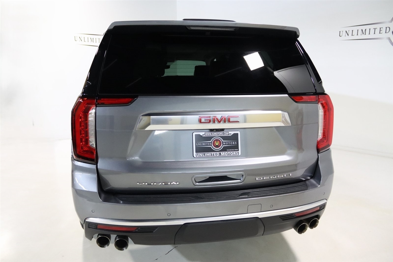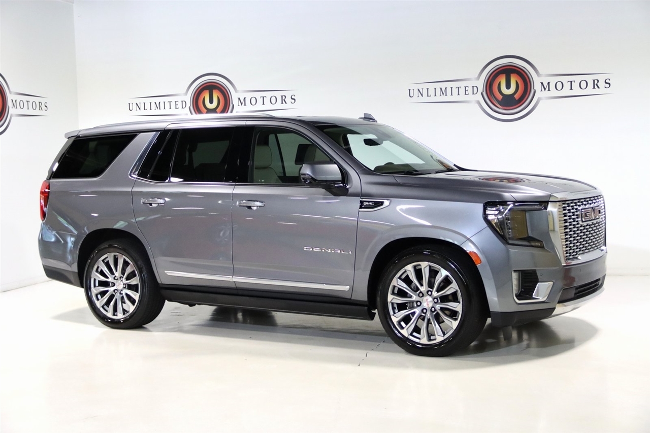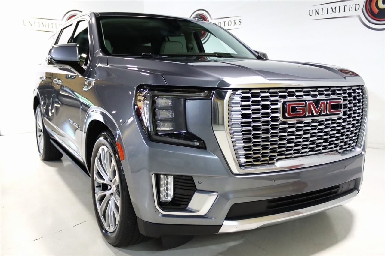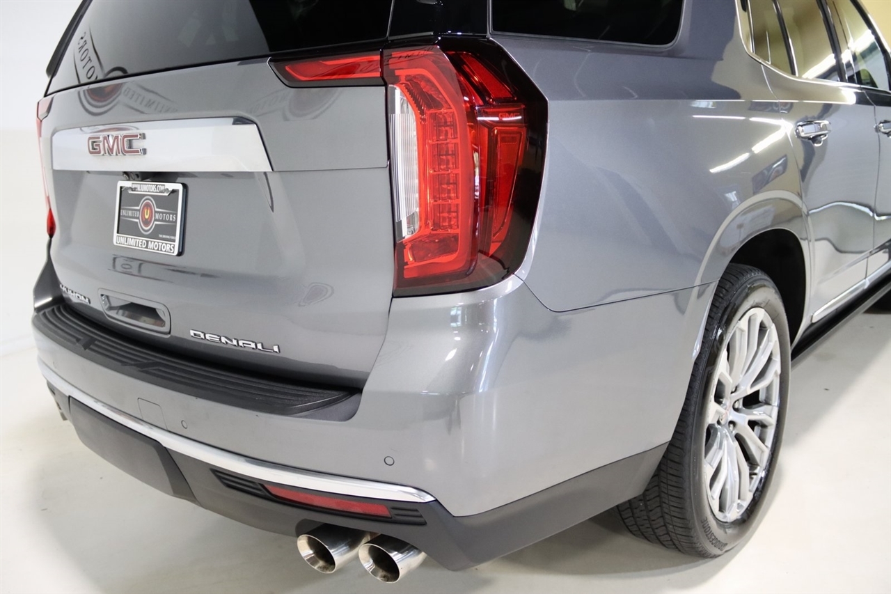 Navigation, Bluetooth, Back Up Camera, Entertainment, Panoramic Roof, 3rd Row, Heated Seats, Touch Screen, 12-Way Power Seat Adjusters, 14 Speakers, 15 Diagonal Multi-Color Head-Up Display, 2 Presets For Outside Rearview Mirrors, 3.23 Rear Axle Ratio, 3rd Row 60/40 Power-Folding Split-Bench Seat, 3rd row seats: split-bench, 4-Wheel Disc Brakes, ABS brakes, Adaptive suspension, Advanced Technology Package, Air Conditioning, Alloy wheels, AM/FM radio: SiriusXM with 360L, Apple CarPlay/Android Auto, Auto High-beam Headlights, Auto-dimming door mirrors, Auto-dimming Rear-View mirror, Auto-leveling suspension, Automatic Emergency Braking, Automatic temperature control, Bodyside moldings, Bose 14-Speaker Surround w/CenterPoint, Brake assist, Bright Front & Rear Door Sill Plates, Bumpers: body-color, Chrome Door Handles w/Body-Color Strip, Compass, Delay-off headlights, Denali Ultimate Package, Driver door bin, Driver vanity mirror, Dual Exhaust System, Dual front impact airbags, Dual front side impact airbags, Dual-Pane Panoramic Power Sunroof, Electronic Stability Control, Emergency communication system: OnStar and GMC connected services capable, Following Distance Indicator, Forward Collision Alert, Four wheel independent suspension, Front anti-roll bar, Front Bucket Seats, Front Center Armrest, Front dual zone A/C, Front fog lights, Front Pedestrian Braking, Front reading lights, Fully automatic headlights, Galvano Bodyside Moldings, Garage door transmitter, Hands-Free Power Programmable Rear Liftgate, HD Radio, HD Surround Vision, Heads-Up Display, Heated & Ventilated Driver & Front Passenger Seats, Heated 2nd Row Outboard Position Seats, Heated Automatic Steering Wheel, Heated door mirrors, Heated Driver & Front Passenger Seats, Heated front seats, Heated rear seats, Heated steering wheel, Hill Descent Control, Illuminated entry, Inside Rear-View Auto-Dimming Mirror, IntelliBeam Automatic High Beam On/Off, Lane Change Alert w/Side Blind Zone Alert, Lane Keep Assist w/Lane Departure Warning, Leather steering wheel, Low tire pressure warning, Magnetic Ride Control Suspension, Memory seat, Navigation System, Occupant sensing airbag, Outside Heated Power-Adjustable Mirrors, Outside temperature display, Overhead airbag, Overhead console, Panic alarm, Passenger door bin, Passenger vanity mirror, Perforated Leather Seating Surfaces, Power door mirrors, Power driver seat, Power Liftgate, Power passenger seat, Power Release 2nd Row Bucket Seats, Power steering, Power Tilt & Telescopic Steering Column, Power windows, Power-Retractable Assist Steps, Premium Capability Package w/Active Response 4WD, Radio: AM/FM/SiriusXM w/Navigation, Rain sensing wipers, Rear air conditioning, Rear anti-roll bar, Rear Cross Traffic Alert, Rear Pedestrian Alert, Rear reading lights, Rear Seat Media System, Rear window defroster, Rear window wiper, Remote keyless entry, Roof rack: rails only, Security system, SiriusXM w/360L, Speed control, Speed-sensing steering, Split folding rear seat, Spoiler, Steering wheel memory, Steering wheel mounted audio controls, Tachometer, Telescoping steering wheel, Tilt steering wheel, Traction control, Trip computer, Turn signal indicator mirrors, Universal Home Remote, Variably intermittent wipers, Ventilated front seats, Voltmeter, Wheel Locks, Wheels: 22 x 9 Bright Machined Aluminum. CARFAX One-Owner.2021 Satin Steel Metallic GMC 4D Sport Utility Yukon Denali 4WD 10-Speed Automatic with Overdrive EcoTec3 6.2L V8Visit our website www.iumotors.com to view 100s of newer vehicles, more pictures and info, or to apply for financing. Rates are incredibly low for approved credit. We offer extended warranties, protection packages, and insurance. We assure you the best experience at any of our 4 locations and unbeatable prices and quality. At Unlimited Motors we believe in MARKET VALUE PRICING. We use real-time Internet price comparisons to constantly adjust prices to provide ALL BUYERS The BEST PRICE