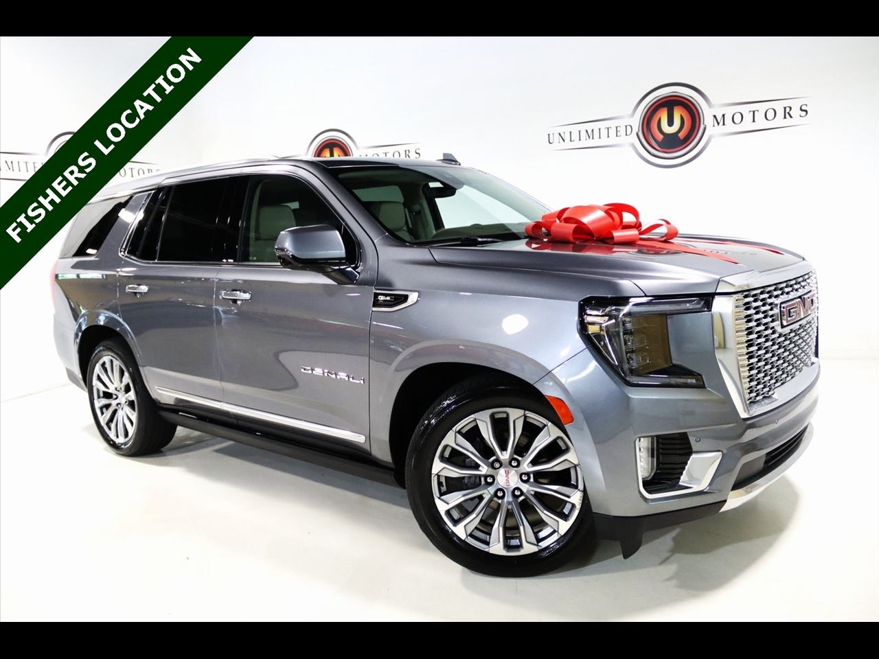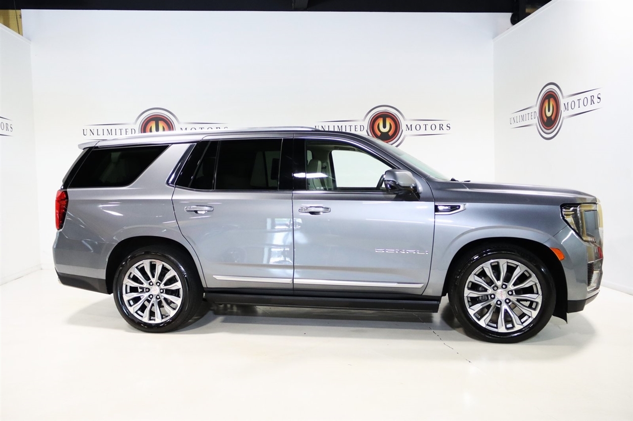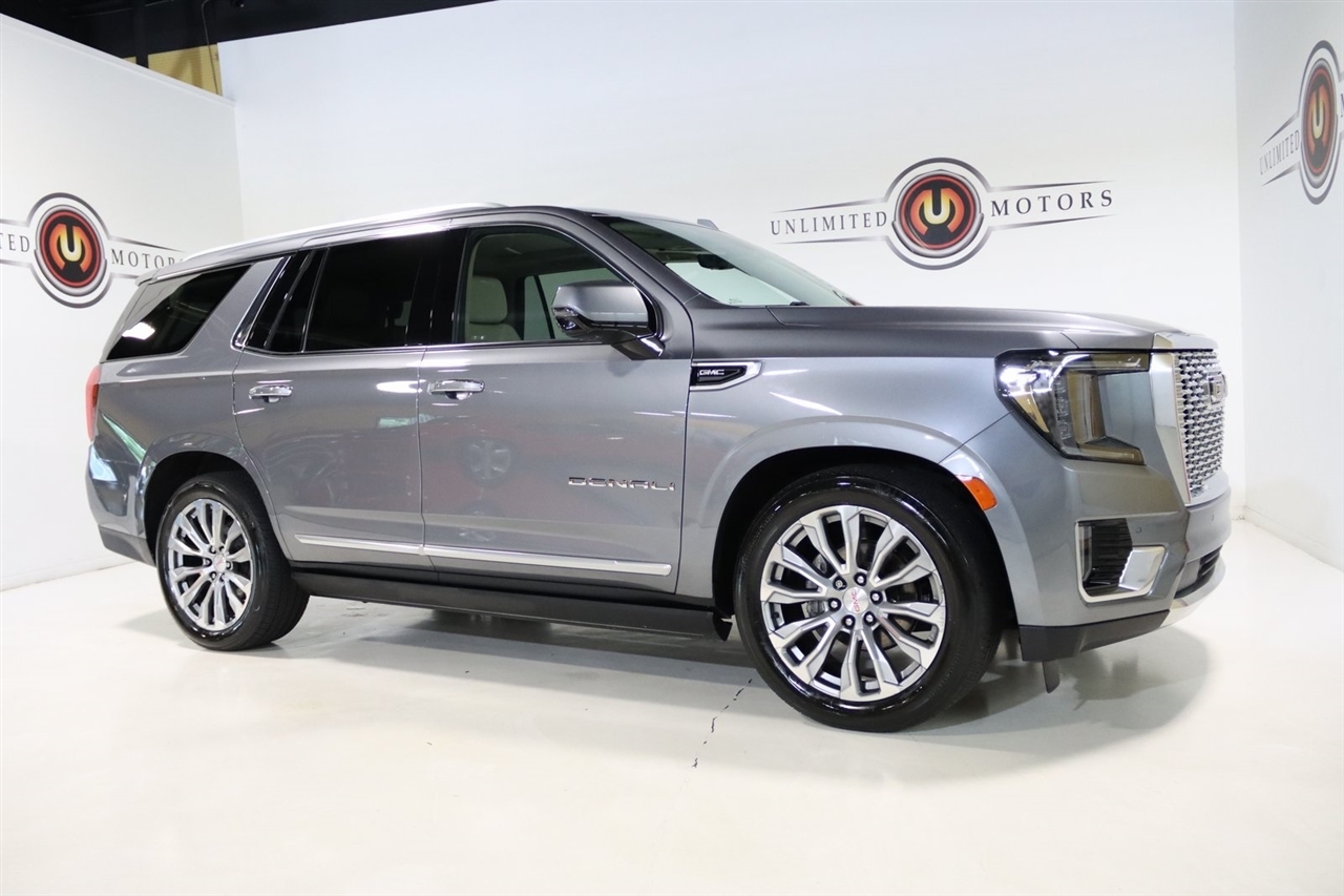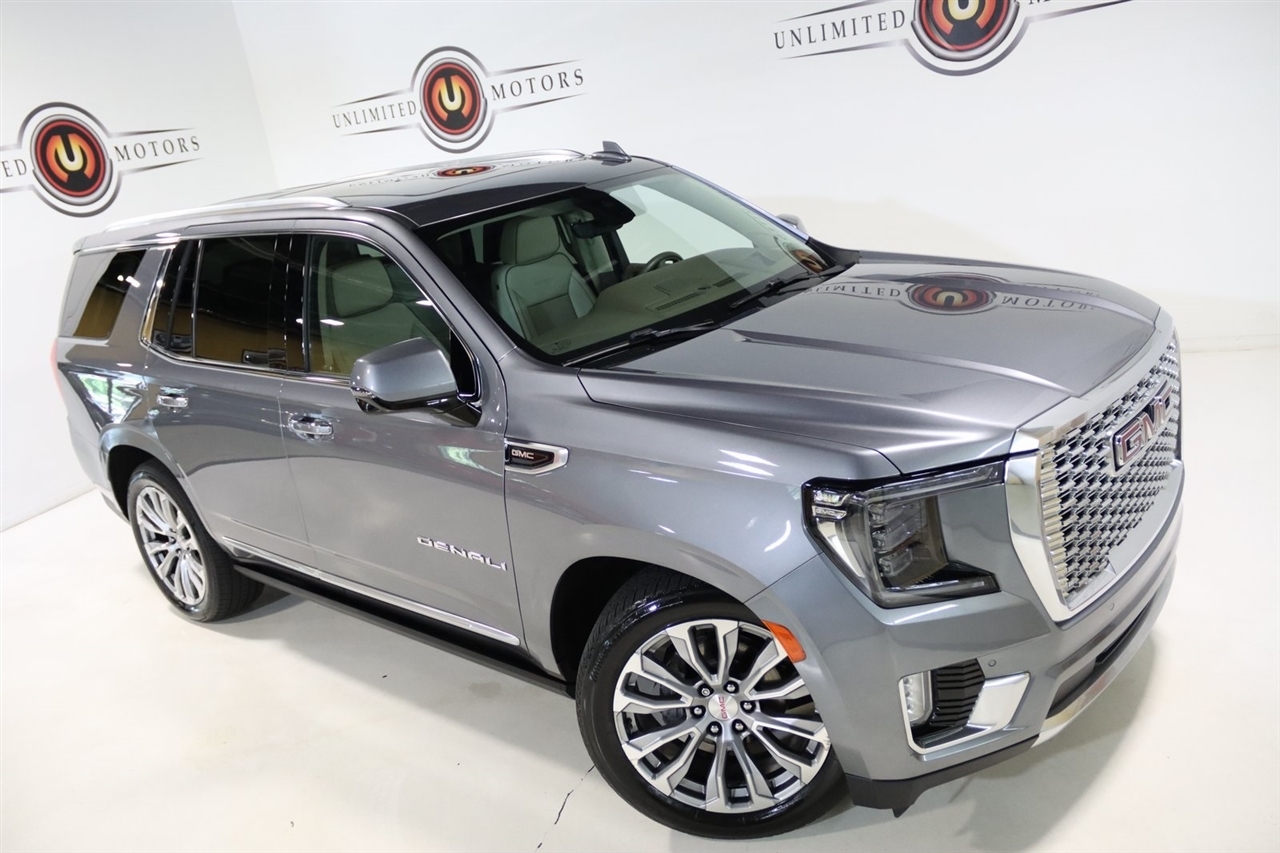Navigation, Bluetooth, Back Up Camera, Entertainment, Panoramic Roof, 3rd Row, Heated Seats, Touch Screen, 12-Way Power Seat Adjusters, 14 Speakers, 15 Diagonal Multi-Color Head-Up Display, 2 Presets For Outside Rearview Mirrors, 3.23 Rear Axle Ratio, 3rd Row 60/40 Power-Folding Split-Bench Seat, 3rd row seats: split-bench, 4-Wheel Disc Brakes, ABS brakes, Adaptive suspension, Advanced Technology Package, Air Conditioning, Alloy wheels, AM/FM radio: SiriusXM with 360L, Apple CarPlay/Android Auto, Auto High-beam Headlights, Auto-dimming door mirrors, Auto-dimming Rear-View mirror, Auto-leveling suspension, Automatic Emergency Braking, Automatic temperature control, Bodyside moldings, Bose 14-Speaker Surround w/CenterPoint, Brake assist, Bright Front & Rear Door Sill Plates, Bumpers: body-color, Chrome Door Handles w/Body-Color Strip, Compass, Delay-off headlights, Denali Ultimate Package, Driver door bin, Driver vanity mirror, Dual Exhaust System, Dual front impact airbags, Dual front side impact airbags, Dual-Pane Panoramic Power Sunroof, Electronic Stability Control, Emergency communication system: OnStar and GMC connected services capable, Following Distance Indicator, Forward Collision Alert, Four wheel independent suspension, Front anti-roll bar, Front Bucket Seats, Front Center Armrest, Front dual zone A/C, Front fog lights, Front Pedestrian Braking, Front reading lights, Fully automatic headlights, Galvano Bodyside Moldings, Garage door transmitter, Hands-Free Power Programmable Rear Liftgate, HD Radio, HD Surround Vision, Heads-Up Display, Heated & Ventilated Driver & Front Passenger Seats, Heated 2nd Row Outboard Position Seats, Heated Automatic Steering Wheel, Heated door mirrors, Heated Driver & Front Passenger Seats, Heated front seats, Heated rear seats, Heated steering wheel, Hill Descent Control, Illuminated entry, Inside Rear-View Auto-Dimming Mirror, IntelliBeam Automatic High Beam On/Off, Lane Change Alert w/Side Blind Zone Alert, Lane Keep Assist w/Lane Departure Warning, Leather steering wheel, Low tire pressure warning, Magnetic Ride Control Suspension, Memory seat, Navigation System, Occupant sensing airbag, Outside Heated Power-Adjustable Mirrors, Outside temperature display, Overhead airbag, Overhead console, Panic alarm, Passenger door bin, Passenger vanity mirror, Perforated Leather Seating Surfaces, Power door mirrors, Power driver seat, Power Liftgate, Power passenger seat, Power Release 2nd Row Bucket Seats, Power steering, Power Tilt & Telescopic Steering Column, Power windows, Power-Retractable Assist Steps, Premium Capability Package w/Active Response 4WD, Radio: AM/FM/SiriusXM w/Navigation, Rain sensing wipers, Rear air conditioning, Rear anti-roll bar, Rear Cross Traffic Alert, Rear Pedestrian Alert, Rear reading lights, Rear Seat Media System, Rear window defroster, Rear window wiper, Remote keyless entry, Roof rack: rails only, Security system, SiriusXM w/360L, Speed control, Speed-sensing steering, Split folding rear seat, Spoiler, Steering wheel memory, Steering wheel mounted audio controls, Tachometer, Telescoping steering wheel, Tilt steering wheel, Traction control, Trip computer, Turn signal indicator mirrors, Universal Home Remote, Variably intermittent wipers, Ventilated front seats, Voltmeter, Wheel Locks, Wheels: 22 x 9 Bright Machined Aluminum. CARFAX One-Owner.2021 Satin Steel Metallic GMC 4D Sport Utility Yukon Denali 4WD 10-Speed Automatic with Overdrive EcoTec3 6.2L V8Visit our website www.iumotors.com to view 100s of newer vehicles, more pictures and info, or to apply for financing. Rates are incredibly low for approved credit. We offer extended warranties, protection packages, and insurance. We assure you the best experience at any of our 4 locations and unbeatable prices and quality. At Unlimited Motors we believe in MARKET VALUE PRICING. We use real-time Internet price comparisons to constantly adjust prices to provide ALL BUYERS The BEST PRICE