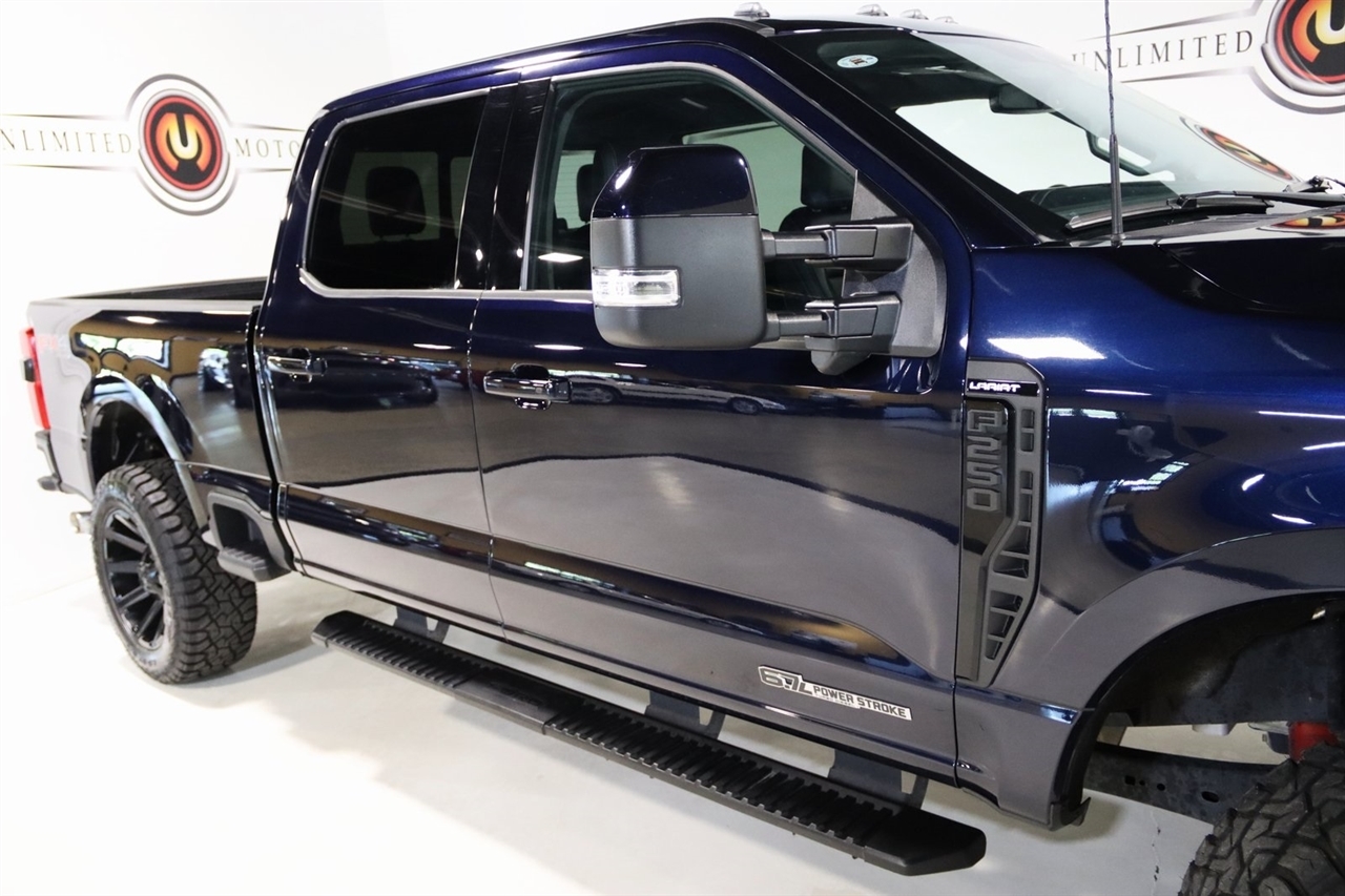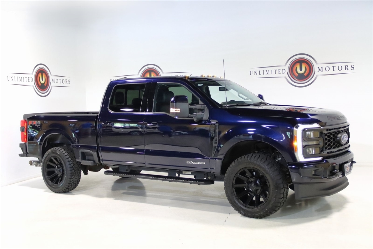 Navigation, Bluetooth, Back Up Camera, Heated Seats, 4-Way Adjustable Headrests, 4-Wheel Disc Brakes, 8 Speakers, ABS brakes, Adjustable pedals, Air Conditioning, Alloy wheels, AM/FM radio: SiriusXM with 360L, Auto High-beam Headlights, Auto tilt-away steering wheel, Auto-dimming Rear-View mirror, Automatic temperature control, Brake assist, Bumpers: chrome, Compass, Delay-off headlights, Driver door bin, Driver vanity mirror, Dual front impact airbags, Dual front side impact airbags, Electronic Stability Control, Electronic-Locking w/3.31 Axle Ratio, Emergency communication system: SYNC 4 911 Assist, Exterior Parking Camera Rear, F-250 >10K GVWR Package, Flow-Through Console, Front anti-roll bar, Front Bucket Seats, Front Center Armrest, Front dual zone A/C, Front fog lights, Front Leather-Trimmed 40/Console/40 Seats, Front reading lights, Front Sensing System, Fully automatic headlights, FX4 Off-Road Package, Garage door transmitter, Head-Up Display, Heated door mirrors, Heated front seats, Heated rear seats, Heated steering wheel, Hill Descent Control, Illuminated entry, Intelligent Adaptive Cruise Control w/Stop-and-Go, Lane Keeping Assist, Lariat Ultimate Package, Leather steering wheel, Low tire pressure warning, Memory seat, Navigation System, Navigation system: Connected Navigation, Off-Road Specifically Tuned Shock Absorbers, Order Code 608A, Outside temperature display, Overhead airbag, Overhead console, Panic alarm, Passenger door bin, Passenger vanity mirror, Pedal memory, Power door mirrors, Power driver seat, Power passenger seat, Power steering, Power windows, Power-Deployable Running Boards, Pro Trailer Backup Assist, Pro Trailer Hitch Assist, Radio: B&O Sound System by Bang & Olufsen, Radio: B&O Unleashed Sound System by Bang & Olufsen, Rain sensing wipers, Rear reading lights, Rear seat center armrest, Rear step bumper, Rear window defroster, Remote keyless entry, Security system, SiriusXM Radio w/360L, Speed control, Split folding rear seat, Steering wheel memory, Steering wheel mounted audio controls, SYNC 4 w/Enhanced Voice Recognition, Tachometer, Tailgate Step & Handle, Telescoping steering wheel, Tilt steering wheel, Tow Technology Package, Traction control, Trip computer, Turn signal indicator mirrors, Unique FX4 Off-Road Box Decal, Upfitter Switches (6), Variably intermittent wipers, Ventilated front seats, Wheels: 18 Bright Machined & Carbonized Gray Alum, Wireless Charging Pad. CARFAX One-Owner. Clean CARFAX. Odometer is 15964 miles below market average!2023 Antimatter Blue Metallic Ford 4D Crew Cab F-250SD Lariat 4WD 10-Speed Automatic Power Stroke 6.7L V8 DI 32V OHV TurbodieselVisit our website www.iumotors.com to view 100s of newer vehicles, more pictures and info, or to apply for financing. Rates are incredibly low for approved credit. We offer extended warranties, protection packages, and insurance. We assure you the best experience at any of our 4 locations and unbeatable prices and quality. At Unlimited Motors we believe in MARKET VALUE PRICING. We use real-time Internet price comparisons to constantly adjust prices to provide ALL BUYERS The BEST PRICE possible. We do not mark them up, to mark them down! Our entire team is committed to helping you buy a car the way we would want to buy a car! We utilize state-of-the-art technology to constantly monitor pricing trends to offer our shoppers the best competitive pricing, value, and experience. We sell and service all makes and models of Pre-owned / Used Vehicles Used Cars, Used Trucks, Used Sport Utility, Lamborghini, Ferrari, Bentley, Rolls Royce, McLaren, Maserati, Ford, Chevrolet/Chevy, Honda, Toyota, Porsche, Land Rover, Jaguar, INFINITI, Audi, Nissan, Mazda, Hyundai, Chrysler, Jeep, Dodge, Ram, SRT, Mitsubishi, Lexus, Kia, Volkswagen, Mini, BMW, Mercedes, Fiat, Volvo, GMC, Cadillac, Lincoln as well as other brands. Proudly serving these areas of Indianapolis, Fishers, Carmel, Noblesville, Greenwood, Avon, Plainfi