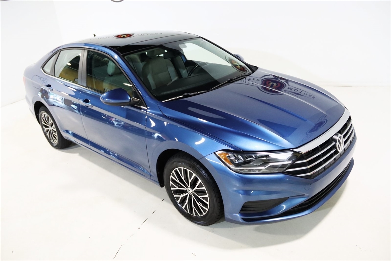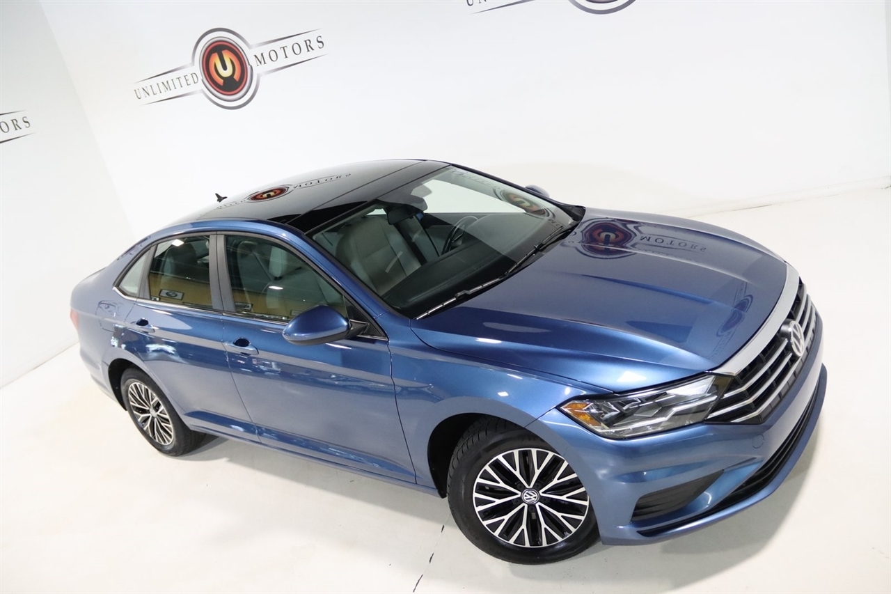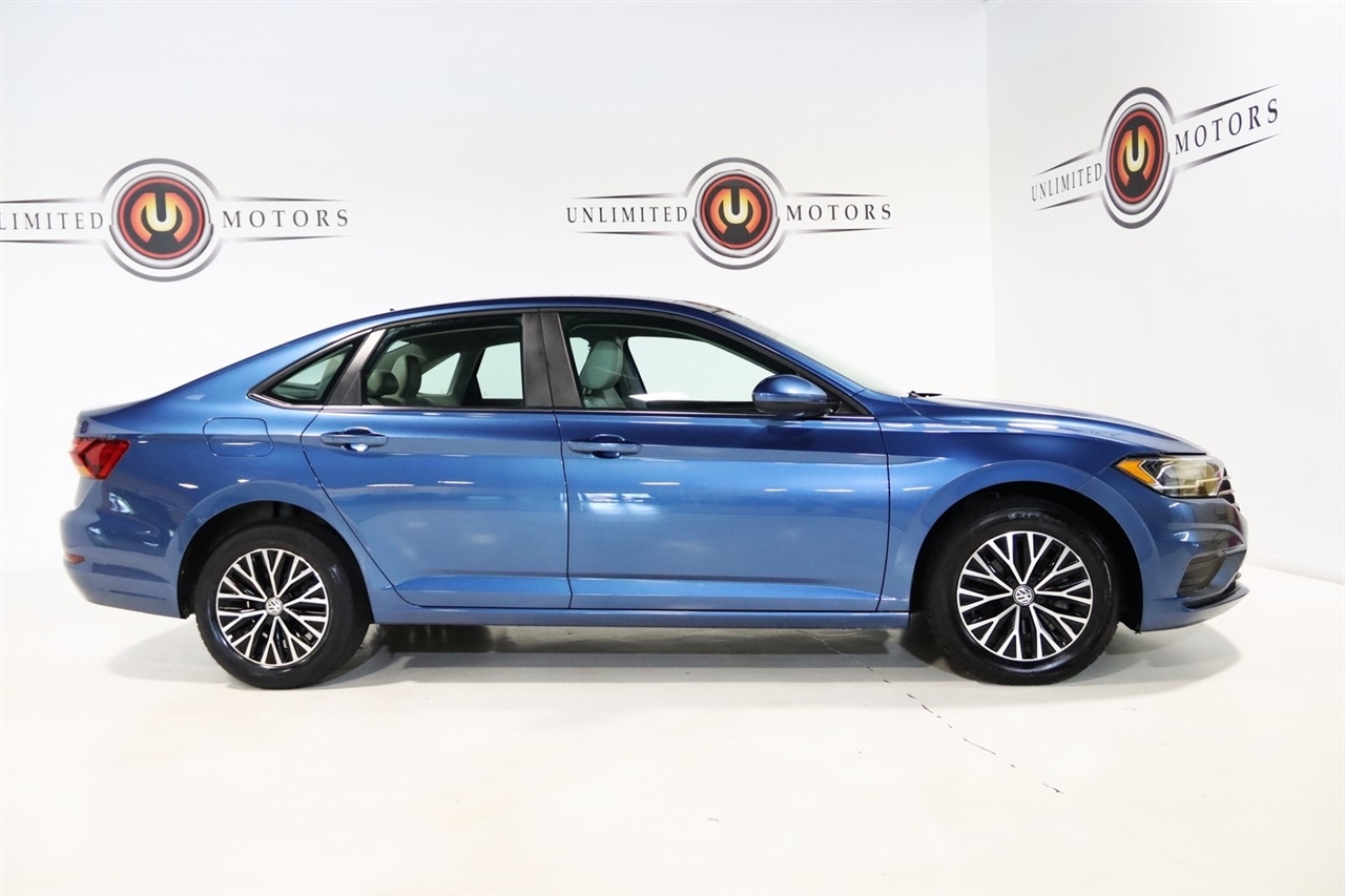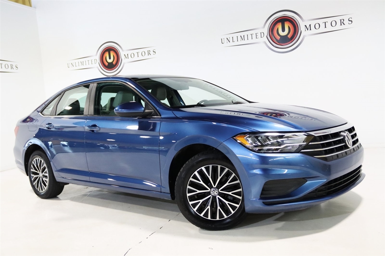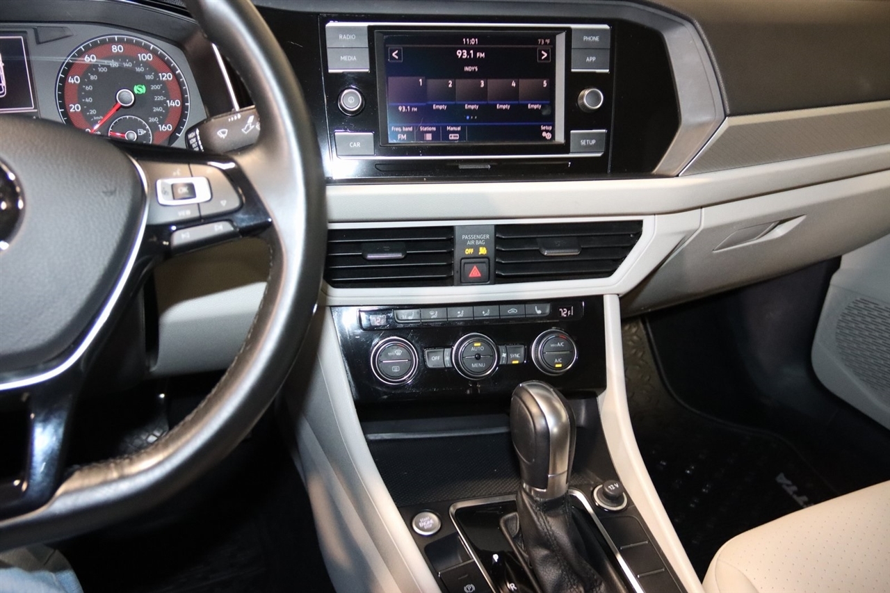 Bluetooth, Back Up Camera, Sun/Moon Roof, Touch Screen, 4 Speakers, 4-Wheel Disc Brakes, ABS brakes, Air Conditioning, Alloy wheels, AM/FM radio, Automatic temperature control, Brake assist, Bumpers: body-color, Cold Weather Package, Delay-off headlights, Driver door bin, Driver vanity mirror, Dual front impact airbags, Dual front side impact airbags, Electronic Stability Control, Exterior Parking Camera Rear, Front anti-roll bar, Front Bucket Seats, Front Center Armrest, Front dual zone A/C, Front reading lights, Front wheel independent suspension, Fully automatic headlights, Heated door mirrors, Heated Front Comfort Seats, Heated front seats, Heated Front Washer Nozzles, Heated Rear Outboard Seating Positions, Heated Steering Wheel, Heavy Duty Trunk Liner w/VW CarGo Blocks, Illuminated entry, Leather Shift Knob, Low tire pressure warning, Lower Windshield Heated Wiper Area, Monster Mats w/Logo Rubber Mats Kit (Set of 4), Occupant sensing airbag, Outside temperature display, Overhead airbag, Overhead console, Panic alarm, Passenger door bin, Passenger vanity mirror, Perforated V-Tex Leatherette Seat Trim, Power door mirrors, Power moonroof, Power steering, Power windows, Radio data system, Radio: Composition Color w/6.5 Touchscreen, Rear anti-roll bar, Rear reading lights, Rear seat center armrest, Rear window defroster, Remote Engine Start w/Remote Key Fob, Remote keyless entry, Speed control, Speed-sensing steering, Split folding rear seat, Steering wheel mounted audio controls, Tachometer, Telescoping steering wheel, Tilt steering wheel, Traction control, Trip computer, Variably intermittent wipers, VW Care, Washer Fluid Level Indicator, Wheels: 16 Two-Tone Rama Black. Clean CARFAX. 30/40 City/Highway MPG Odometer is 41470 miles below market average!2019 Silk Volkswagen 4D Sedan Jetta 1.4T SE FWD 8-Speed Automatic with Tiptronic 1.4L TSIAwards: * 2019 KBB.com 10 Coolest New Cars Under $20,000 * 2019 KBB.com 10 Best Sedans Under $30,000Visit our website www.iumotors.com to view 100s of newer vehicles, more pictures and info, or to apply for financing. Rates are incredibly low for approved credit. We offer extended warranties, protection packages, and insurance. We assure you the best experience at any of our 4 locations and unbeatable prices and quality. At Unlimited Motors we believe in MARKET VALUE PRICING. We use real-time Internet price comparisons to constantly adjust prices to provide ALL BUYERS The BEST PRICE possible. We do not mark them up, to mark them down! Our entire team is committed to helping you buy a car the way we would want to buy a car! We utilize state-of-the-art technology to constantly monitor pricing trends to offer our shoppers the best competitive pricing, value, and experience. We sell and service all makes and models of Pre-owned / Used Vehicles Used Cars, Used Trucks, Used Sport Utility, Lamborghini, Ferrari, Bentley, Rolls Royce, McLaren, Maserati, Ford, Chevrolet/Chevy, Honda, Toyota, Porsche, Land Rover, Jaguar, INFINITI, Audi, Nissan, Mazda, Hyundai, Chrysler, Jeep, Dodge, Ram, SRT, Mitsubishi, Lexus, Kia, Volkswagen, Mini, BMW, Mercedes, Fiat, Volvo, GMC, Cadillac, Lincoln as well as other brands. Proudly serving these areas of Indianapolis, Fishers, Carmel, Noblesville, Greenwood, Avon, Plainfield, Zionsville, & Brownsburg, Indiana, Midwest. We also serve the entire nation with our seamless and easy online purchasing process, and offer shipping nationwide.Advertised prices DO NOT include Sales Tax, Dealer Fees, Title Processing Charges, and Dealer Pre-installed Products.