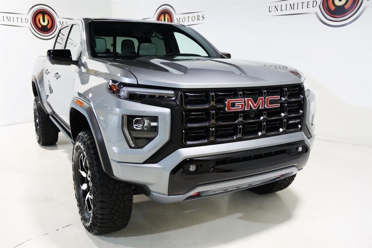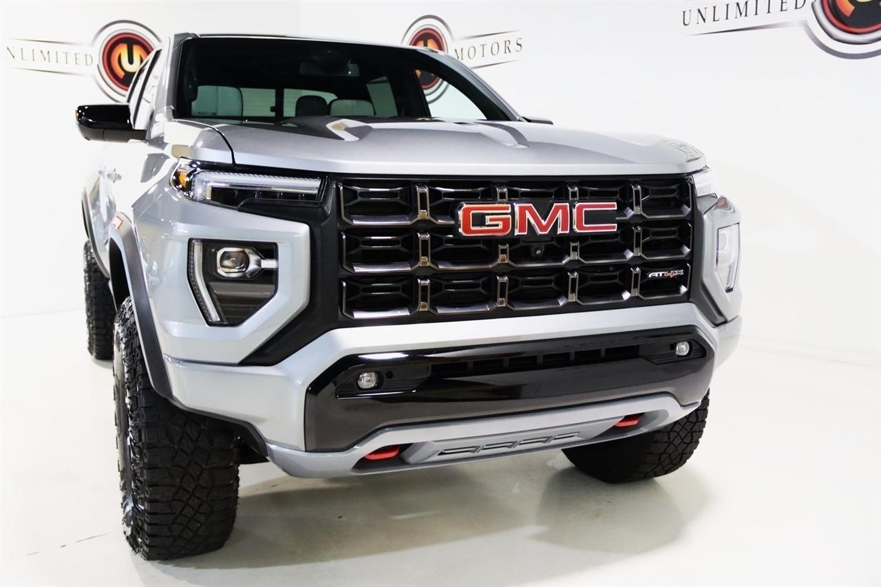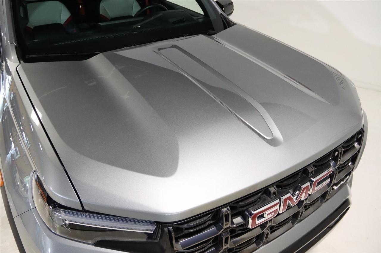 Navigation, Bluetooth, Back Up Camera, Sun/Moon Roof, Heated Seats, Touch Screen, 120-Volt Bed Mounted Power Outlet, 2 1st Row USB Charge/Data Ports, 2 Rear USB Ports in Center Console (Charge-Only), 220 Amps Alternator, 3.42 Rear Axle Ratio, 4-Wheel Disc Brakes, 6-Way Power Passenger Seat Adjuster, 7 Speakers, 8-Way Power Driver Seat Adjuster, ABS brakes, Adaptive Cruise Control, Air Conditioning, Alloy wheels, AM/FM radio: SiriusXM, Apple CarPlay/Android Auto, Auto High-beam Headlights, Auto-dimming Rear-View mirror, Automatic Emergency Braking, Automatic Stop/Start, Automatic temperature control, Blind Zone Steering Assist, Brake assist, Bumpers: body-color, Canyon Pro Safety, Compass, Delay-off headlights, Driver & Front Passenger Illuminated Visors, Driver & Front Passenger Ventilated Seats, Driver door bin, Driver Memory, Driver Mode Selector, Driver Seatback Map Pocket, Driver vanity mirror, Driver-Selectable Full-Locking Front Differential, Driver-Selectable Full-Locking Rear Differential, Dual front impact airbags, Dual front side impact airbags, Dual-Zone Automatic Air Conditioning, Electronic Stability Control, Engine Block Heater, EZ-Lift & Lower Tailgate, Following Distance Indicator, Forward Collision Alert, Front anti-roll bar, Front Bucket Seats, Front Center Armrest, Front dual zone A/C, Front fog lights, Front LED Fog Lamps, Front License Plate Kit, Front Passenger Seatback Map Pocket, Front Pedestrian & Bicyclist Braking, Front reading lights, Front wheel independent suspension, HD Surround Vision, Heads-Up Display, Heated door mirrors, Heated Driver & Front Passenger Seats, Heated front seats, Heated Power-Adjustable Outside Mirrors, Heated Steering Wheel, Heated steering wheel, Illuminated entry, Inside Rear-View Auto-Dimming Mirror, Integrated Trailer Brake Controller, IntelliBeam Automatic High Beam On/Off, Interior Overhead Courtesy Light w/Dual Reading Lamp, Lane Keep Assist w/Lane Departure Warning, Low tire pressure warning, Manual Rear-Sliding Window, Memory seat, Multicolor 6.3 Diagonal Head-Up Display, MultiStow Tailgate, Navigation System, Occupant sensing airbag, Outside temperature display, Overhead airbag, Overhead console, Panic alarm, Passenger door bin, Passenger vanity mirror, Perforated Leather-Appointed Seat Trim, Power door mirrors, Power Driver Lumbar Control Seat Adjuster, Power driver seat, Power Inner Sliding Glass Sunroof w/Manual Shade, Power Passenger Lumbar Control Seat Adjuster, Power passenger seat, Power steering, Power windows, Preferred Equipment Group 4TX, Premium 7-Speaker Bose Sound System, Radio data system, Radio: 11.3 Diagonal Premium GMC Infotainment Sys, Rear Center Fold-Down Armrest w/2 Cupholders, Rear Cross Traffic Braking, Rear of Console 120-Volt Power Outlet, Rear Pedestrian Alert, Rear reading lights, Rear seat center armrest, Rear step bumper, Rear window defroster, Rear-Window Electric Defogger, Red Seat Belt Color, Remote keyless entry, Remote Vehicle Starter System, Safety Alert Seat, Security system, SiriusXM w/360L, Speed control, Speed-sensing steering, Split folding rear seat, Spray-On Bedliner, Steering wheel mounted audio controls, Stop/Start System Disable Button Engine Control, Tachometer, Tailgate Keyed Cylinder Lock, Telescoping steering wheel, Tilt & Telescopic Manual Steering Column, Tilt steering wheel, Traction control, Trailering App System, Trailering Package, Trip computer, Ultrasonic Rear Park Assist, Variably intermittent wipers, Ventilated front seats, Wheels: 17 x 8 Black High Gloss Machined Finish, Wireless Apple CarPlay/Wireless Android Auto, Wireless Charging. Clean CARFAX. Priced below KBB Fair Purchase Price!2023 Sterling Metallic GMC 4D Crew Cab Canyon AT4X 4WD 8-Speed Automatic 2.7L TurboVisit our website www.iumotors.com to view 100s of newer vehicles, more pictures and info, or to apply for financing. Rates are incredibly low for approved credit. We offer extended warranties, protection packages, and i