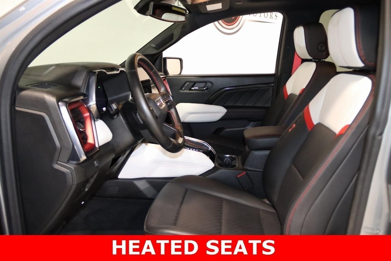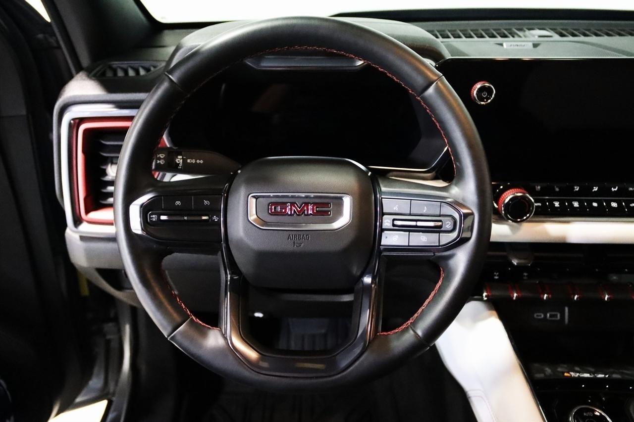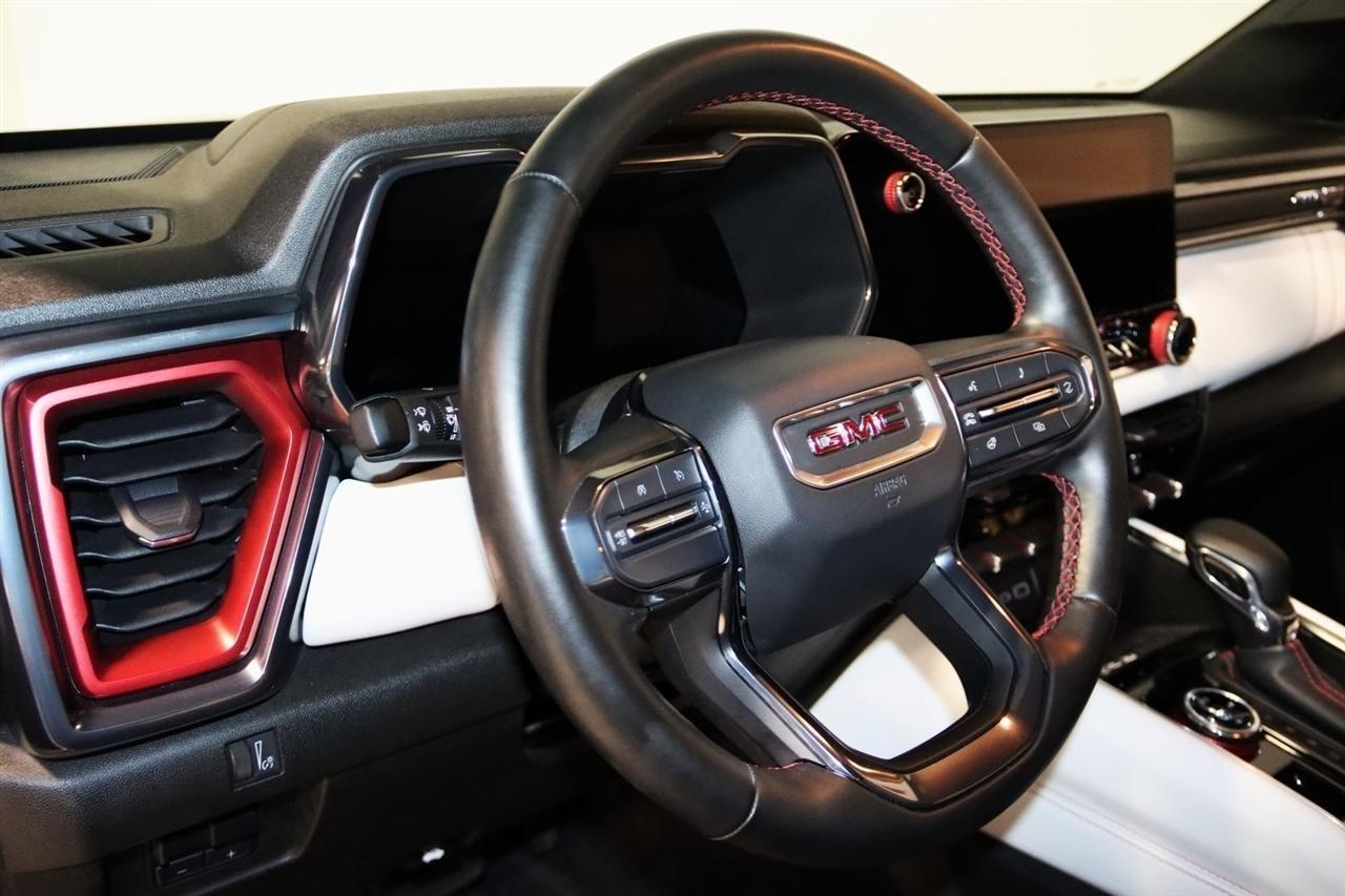 Navigation, Bluetooth, Back Up Camera, Sun/Moon Roof, Heated Seats, Touch Screen, 120-Volt Bed Mounted Power Outlet, 2 1st Row USB Charge/Data Ports, 2 Rear USB Ports in Center Console (Charge-Only), 220 Amps Alternator, 3.42 Rear Axle Ratio, 4-Wheel Disc Brakes, 6-Way Power Passenger Seat Adjuster, 7 Speakers, 8-Way Power Driver Seat Adjuster, ABS brakes, Adaptive Cruise Control, Air Conditioning, Alloy wheels, AM/FM radio: SiriusXM, Apple CarPlay/Android Auto, Auto High-beam Headlights, Auto-dimming Rear-View mirror, Automatic Emergency Braking, Automatic Stop/Start, Automatic temperature control, Blind Zone Steering Assist, Brake assist, Bumpers: body-color, Canyon Pro Safety, Compass, Delay-off headlights, Driver & Front Passenger Illuminated Visors, Driver & Front Passenger Ventilated Seats, Driver door bin, Driver Memory, Driver Mode Selector, Driver Seatback Map Pocket, Driver vanity mirror, Driver-Selectable Full-Locking Front Differential, Driver-Selectable Full-Locking Rear Differential, Dual front impact airbags, Dual front side impact airbags, Dual-Zone Automatic Air Conditioning, Electronic Stability Control, Engine Block Heater, EZ-Lift & Lower Tailgate, Following Distance Indicator, Forward Collision Alert, Front anti-roll bar, Front Bucket Seats, Front Center Armrest, Front dual zone A/C, Front fog lights, Front LED Fog Lamps, Front License Plate Kit, Front Passenger Seatback Map Pocket, Front Pedestrian & Bicyclist Braking, Front reading lights, Front wheel independent suspension, HD Surround Vision, Heads-Up Display, Heated door mirrors, Heated Driver & Front Passenger Seats, Heated front seats, Heated Power-Adjustable Outside Mirrors, Heated Steering Wheel, Heated steering wheel, Illuminated entry, Inside Rear-View Auto-Dimming Mirror, Integrated Trailer Brake Controller, IntelliBeam Automatic High Beam On/Off, Interior Overhead Courtesy Light w/Dual Reading Lamp, Lane Keep Assist w/Lane Departure Warning, Low tire pressure warning, Manual Rear-Sliding Window, Memory seat, Multicolor 6.3 Diagonal Head-Up Display, MultiStow Tailgate, Navigation System, Occupant sensing airbag, Outside temperature display, Overhead airbag, Overhead console, Panic alarm, Passenger door bin, Passenger vanity mirror, Perforated Leather-Appointed Seat Trim, Power door mirrors, Power Driver Lumbar Control Seat Adjuster, Power driver seat, Power Inner Sliding Glass Sunroof w/Manual Shade, Power Passenger Lumbar Control Seat Adjuster, Power passenger seat, Power steering, Power windows, Preferred Equipment Group 4TX, Premium 7-Speaker Bose Sound System, Radio data system, Radio: 11.3 Diagonal Premium GMC Infotainment Sys, Rear Center Fold-Down Armrest w/2 Cupholders, Rear Cross Traffic Braking, Rear of Console 120-Volt Power Outlet, Rear Pedestrian Alert, Rear reading lights, Rear seat center armrest, Rear step bumper, Rear window defroster, Rear-Window Electric Defogger, Red Seat Belt Color, Remote keyless entry, Remote Vehicle Starter System, Safety Alert Seat, Security system, SiriusXM w/360L, Speed control, Speed-sensing steering, Split folding rear seat, Spray-On Bedliner, Steering wheel mounted audio controls, Stop/Start System Disable Button Engine Control, Tachometer, Tailgate Keyed Cylinder Lock, Telescoping steering wheel, Tilt & Telescopic Manual Steering Column, Tilt steering wheel, Traction control, Trailering App System, Trailering Package, Trip computer, Ultrasonic Rear Park Assist, Variably intermittent wipers, Ventilated front seats, Wheels: 17 x 8 Black High Gloss Machined Finish, Wireless Apple CarPlay/Wireless Android Auto, Wireless Charging. Clean CARFAX. Priced below KBB Fair Purchase Price!2023 Sterling Metallic GMC 4D Crew Cab Canyon AT4X 4WD 8-Speed Automatic 2.7L TurboVisit our website www.iumotors.com to view 100s of newer vehicles, more pictures and info, or to apply for financing. Rates are incredibly low for approved credit. We offer extended warranties, protection packages, and i