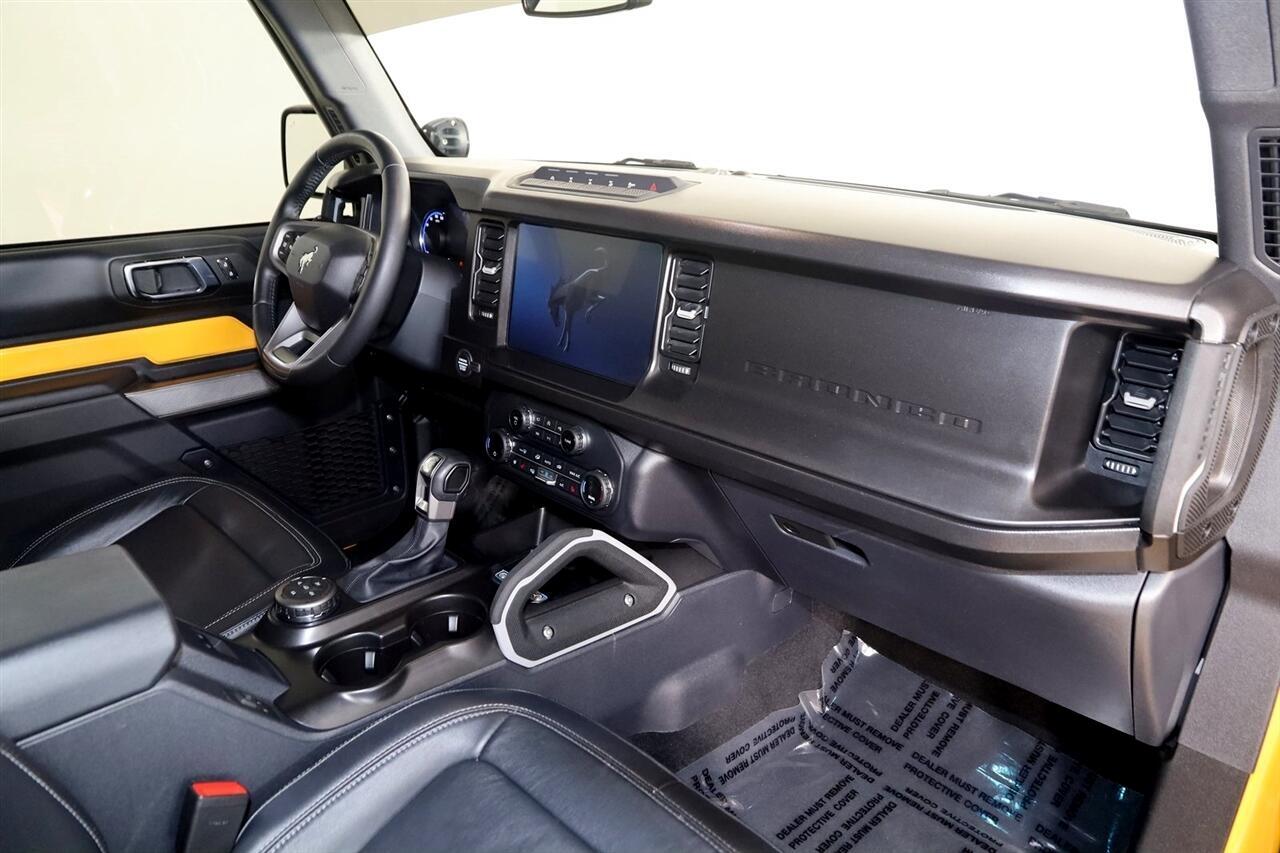 Navigation, Back Up Camera, Bluetooth, Power Running Boards, Heated Seats, Hard Top, Touch Screen, Blind Spot, Heated Steering Wheel, Apple Play, 4WD, Bronco First Edition, 2D Sport Utility, 2.7L EcoBoost V6, 10-Speed Automatic, 4WD, Orange, Black Onyx Leather, Convertible HardTop, Equipment Group 954A Lux Package, Navigation System, Navigation system: Connected Navigation. Priced below KBB Fair Purchase Price! Odometer is 9606 miles below market average!2021 Orange Ford 2D Sport Utility Bronco First Edition 4WD 10-Speed Automatic 2.7L EcoBoost V6Visit our website www.iumotors.com to view 100s of newer vehicles, more pictures and info, or to apply for financing. Rates are incredibly low for approved credit. We offer extended warranties, protection packages, and insurance. We assure you the best experience at any of our 4 locations and unbeatable prices and quality. At Unlimited Motors we believe in MARKET VALUE PRICING. We use real-time Internet price comparisons to constantly adjust prices to provide ALL BUYERS The BEST PRICE possible. We do not mark them up, to mark them down! Our entire team is committed to helping you buy a car the way we would want to buy a car! We utilize state-of-the-art technology to constantly monitor pricing trends to offer our shoppers the best competitive pricing, value, and experience. We sell and service all makes and models of Pre-owned / Used Vehicles Used Cars, Used Trucks, Used Sport Utility, Lamborghini, Ferrari, Bentley, Rolls Royce, McLaren, Maserati, Ford, Chevrolet/Chevy, Honda, Toyota, Porsche, Land Rover, Jaguar, INFINITI, Audi, Nissan, Mazda, Hyundai, Chrysler, Jeep, Dodge, Ram, SRT, Mitsubishi, Lexus, Kia, Volkswagen, Mini, BMW, Mercedes, Fiat, Volvo, GMC, Cadillac, Lincoln as well as other brands. Proudly serving these areas of Indianapolis, Fishers, Carmel, Noblesville, Greenwood, Avon, Plainfield, Zionsville, & Brownsburg, Indiana, Midwest. We also serve the entire nation with our seamless and easy online purchasing process, and offer shipping nationwide.Advertised prices DO NOT include Sales Tax, Dealer Fees, Title Processing Charges, and Dealer Pre-installed Products.