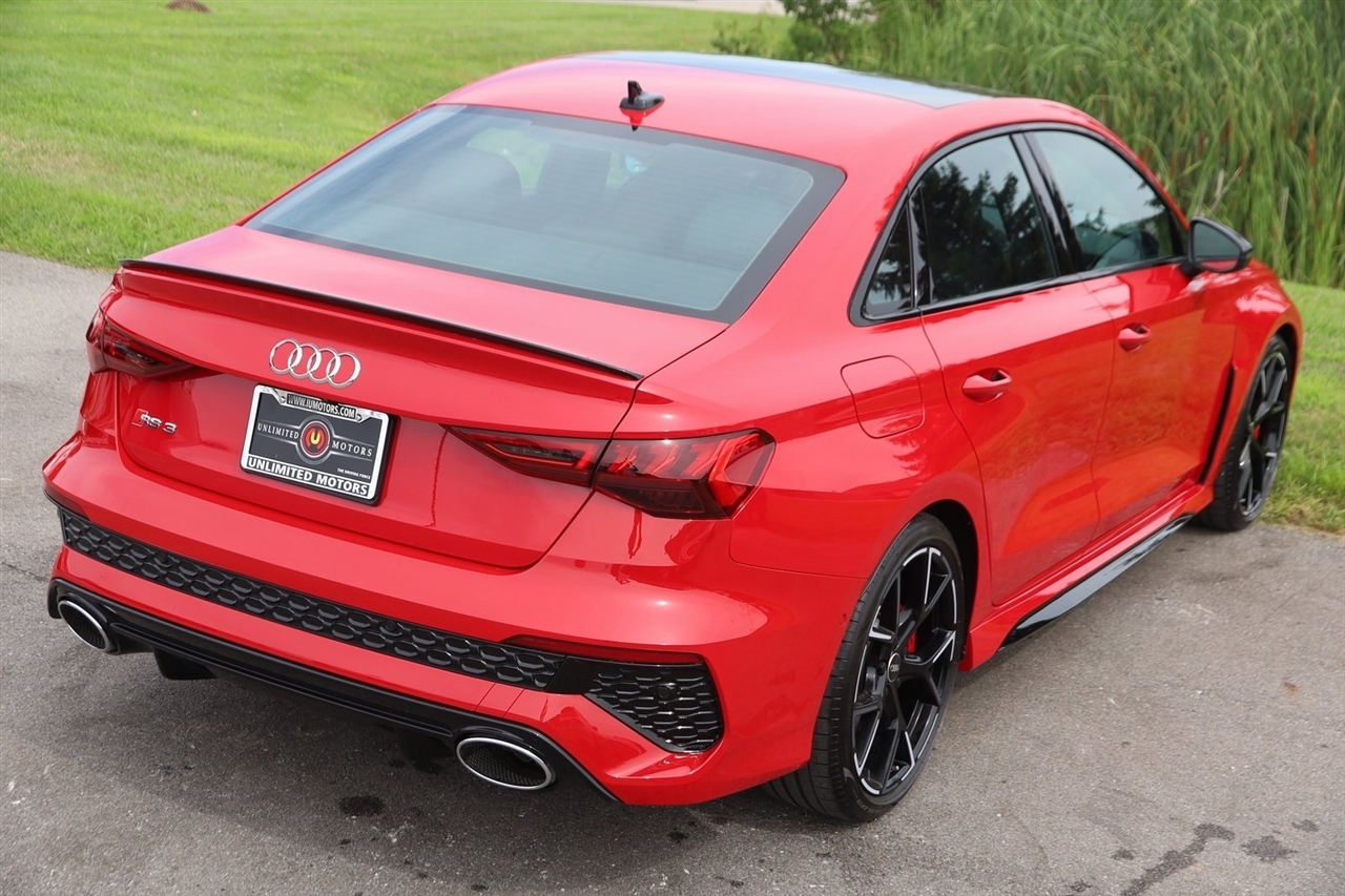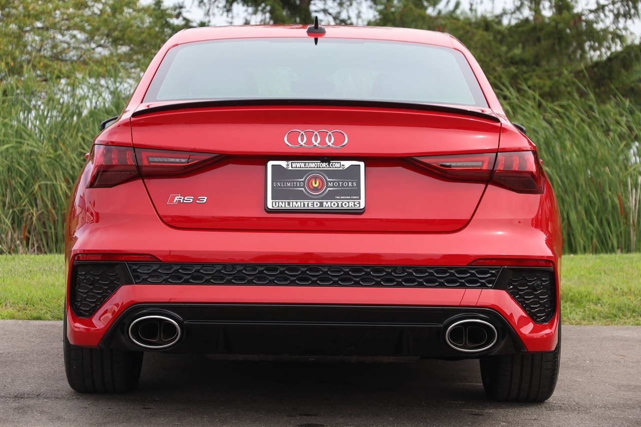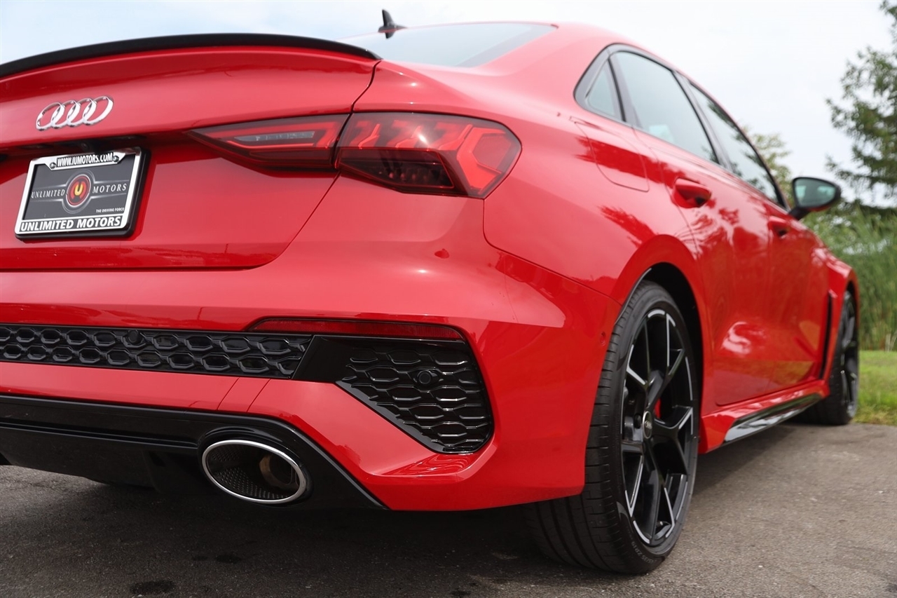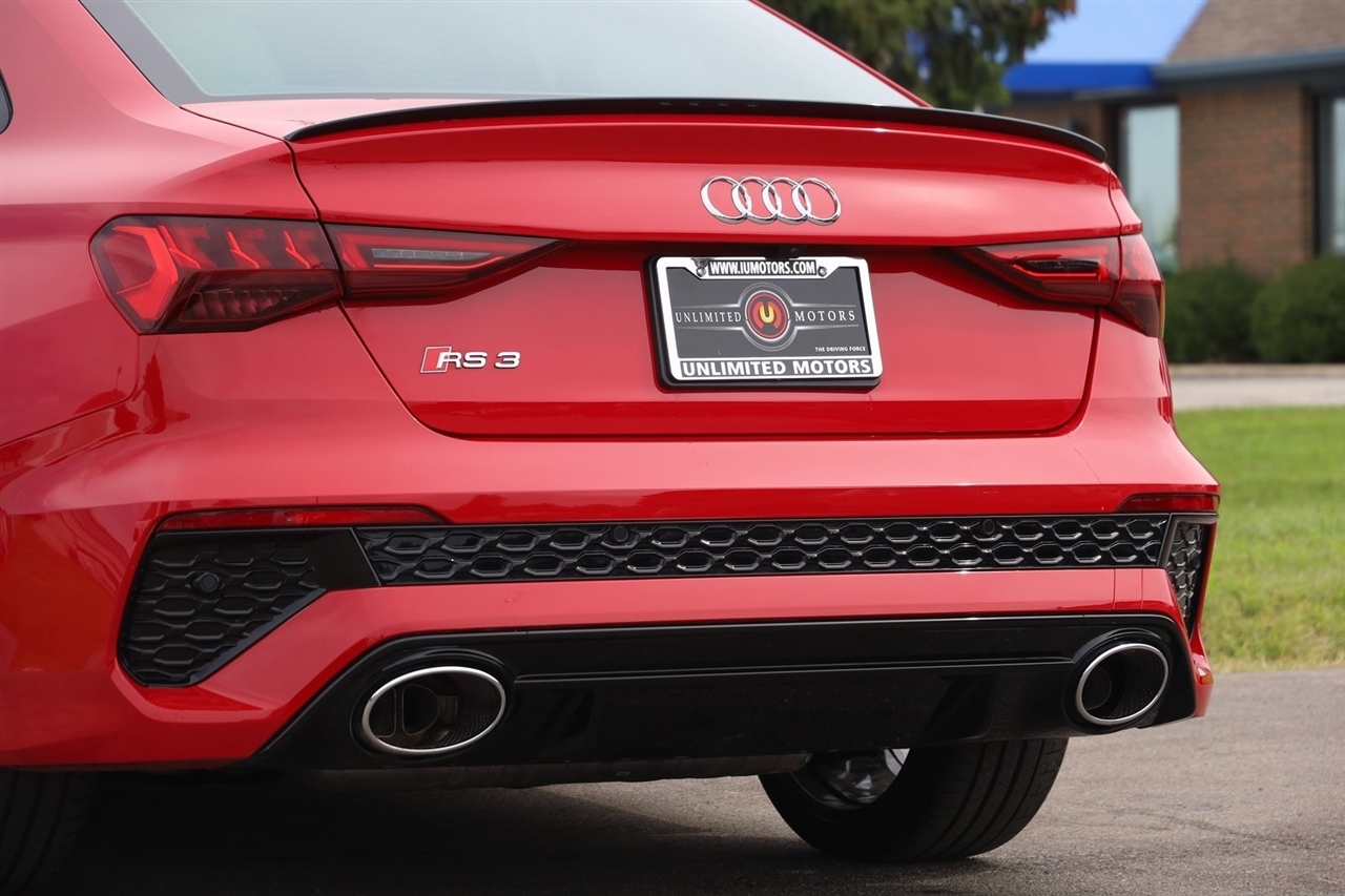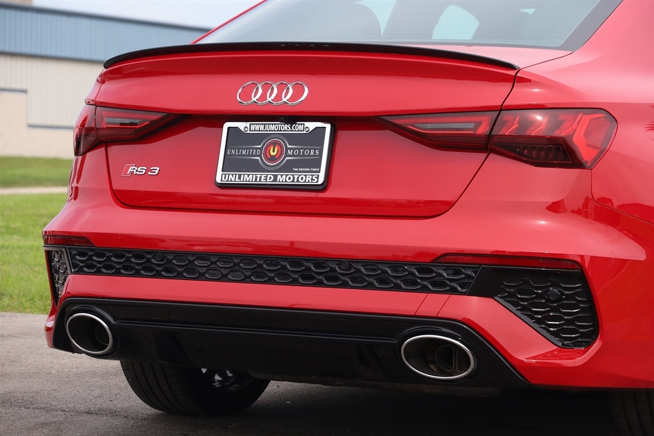 Navigation, Back Up Camera, Bluetooth, Sun/Moon Roof, Heated Seats, Touch Screen, Apple Play, RS 3 2.5T quattro, 4D Sedan, 2.5L I5 Turbocharged DOHC 20V LEV3-ULEV125 401hp, 7-Speed Automatic S tronic, quattro, Tango Red Metallic, Black Leather, Navigation System. Clean CARFAX. Odometer is 29668 miles below market average! 20/29 City/Highway MPG2022 Tango Red Metallic Audi 4D Sedan RS 3 2.5T quattro quattro 7-Speed Automatic S tronic 2.5L I5 Turbocharged DOHC 20V LEV3-ULEV125 401hpVisit our website www.iumotors.com to view 100s of newer vehicles, more pictures and info, or to apply for financing. Rates are incredibly low for approved credit. We offer extended warranties, protection packages, and insurance. We assure you the best experience at any of our 4 locations and unbeatable prices and quality. At Unlimited Motors we believe in MARKET VALUE PRICING. We use real-time Internet price comparisons to constantly adjust prices to provide ALL BUYERS The BEST PRICE possible. We do not mark them up, to mark them down! Our entire team is committed to helping you buy a car the way we would want to buy a car! We utilize state-of-the-art technology to constantly monitor pricing trends to offer our shoppers the best competitive pricing, value, and experience. We sell and service all makes and models of Pre-owned / Used Vehicles Used Cars, Used Trucks, Used Sport Utility, Lamborghini, Ferrari, Bentley, Rolls Royce, McLaren, Maserati, Ford, Chevrolet/Chevy, Honda, Toyota, Porsche, Land Rover, Jaguar, INFINITI, Audi, Nissan, Mazda, Hyundai, Chrysler, Jeep, Dodge, Ram, SRT, Mitsubishi, Lexus, Kia, Volkswagen, Mini, BMW, Mercedes, Fiat, Volvo, GMC, Cadillac, Lincoln as well as other brands. Proudly serving these areas of Indianapolis, Fishers, Carmel, Noblesville, Greenwood, Avon, Plainfield, Zionsville, & Brownsburg, Indiana, Midwest. We also serve the entire nation with our seamless and easy online purchasing process, and offer shipping nationwide.Advertised prices DO NOT include Sales Tax, Dealer Fees, Title Processing Charges, and Dealer Pre-installed Products.