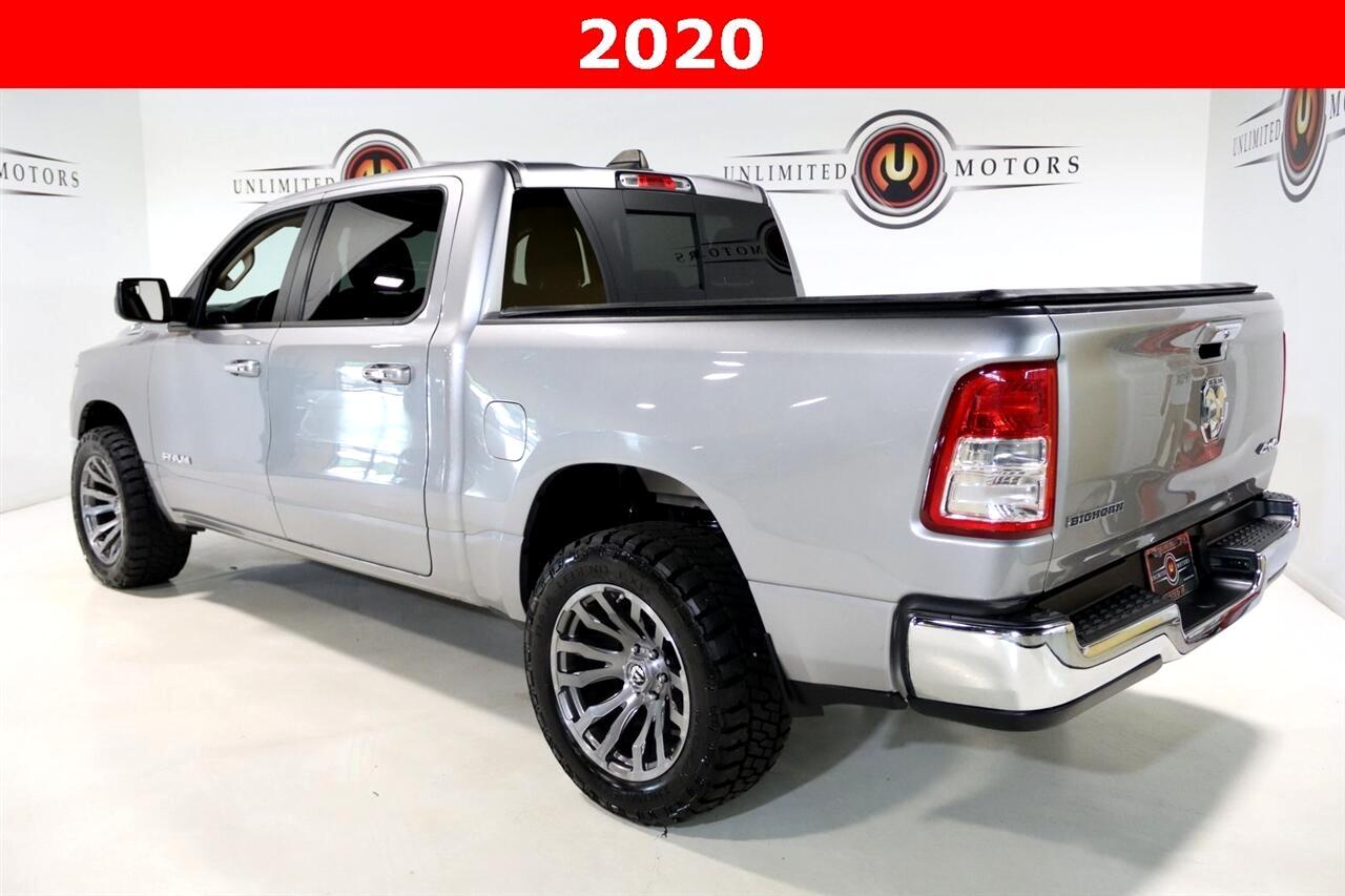 Bluetooth, Back Up Camera, Touch Screen, 26 Gal. Fuel Tank (Replace 23 Gal.), 3 Rear Seat Head Restraints, 3.21 Rear Axle Ratio, 4 Way Front Headrests, 4-Wheel Disc Brakes, 48V Belt Starter Generator, 6 Speakers, ABS brakes, Air Conditioning, Alloy wheels, AM/FM radio, Big Horn Badge, Brake assist, Bumpers: chrome, Cloth Bench Seat, Compass, Delay-off headlights, Driver door bin, Dual front impact airbags, Dual front side impact airbags, Electronic Stability Control, Front anti-roll bar, Front Center Armrest w/Storage, Front fog lights, Front reading lights, Front Seat Back Map Pockets, Front wheel independent suspension, Fully automatic headlights, GPS Antenna Input, Heated door mirrors, Illuminated entry, Leather steering wheel, Low tire pressure warning, Occupant sensing airbag, Outside temperature display, Overhead airbag, Overhead console, Panic alarm, ParkView Rear Back-Up Camera, Passenger door bin, Passenger vanity mirror, Power door mirrors, Power steering, Power windows, Quick Order Package 23Z Big Horn, Radio data system, Radio: Uconnect 3 w/5 Display, Rear 60/40 Folding Seat, Rear anti-roll bar, Rear seat center armrest, Rear step bumper, Remote keyless entry, Remote Start System, Speed control, Split folding rear seat, Steering wheel mounted audio controls, Tachometer, Telescoping steering wheel, Tilt steering wheel, Traction control, Trip computer, Variably intermittent wipers, Voltmeter, Wheels: 18 x 8 Cast-Aluminum Painted. Odometer is 15634 miles below market average! Priced below KBB Fair Purchase Price!2020 Billet Silver Metallic Clearcoat Ram 4D Crew Cab 1500 Big Horn/Lone Star 4WD 8-Speed Automatic 3.6L V6 24V VVTVisit our website www.iumotors.com to view 100s of newer vehicles, more pictures and info, or to apply for financing. Rates are incredibly low for approved credit. We offer extended warranties, protection packages, and insurance. We assure you the best experience at any of our 4 locations and unbeatable prices and quality. At Unlimited Motors we believe in MARKET VALUE PRICING. We use real-time Internet price comparisons to constantly adjust prices to provide ALL BUYERS The BEST PRICE possible. We do not mark them up, to mark them down! Our entire team is committed to helping you buy a car the way we would want to buy a car! We utilize state-of-the-art technology to constantly monitor pricing trends to offer our shoppers the best competitive pricing, value, and experience. We sell and service all makes and models of Pre-owned / Used Vehicles Used Cars, Used Trucks, Used Sport Utility, Lamborghini, Ferrari, Bentley, Rolls Royce, McLaren, Maserati, Ford, Chevrolet/Chevy, Honda, Toyota, Porsche, Land Rover, Jaguar, INFINITI, Audi, Nissan, Mazda, Hyundai, Chrysler, Jeep, Dodge, Ram, SRT, Mitsubishi, Lexus, Kia, Volkswagen, Mini, BMW, Mercedes, Fiat, Volvo, GMC, Cadillac, Lincoln as well as other brands. Proudly serving these areas of Indianapolis, Fishers, Carmel, Noblesville, Greenwood, Avon, Plainfield, Zionsville, & Brownsburg, Indiana, Midwest. We also serve the entire nation with our seamless and easy online purchasing process, and offer shipping nationwide.Advertised prices DO NOT include Sales Tax, Dealer Fees, Title Processing Charges, and Dealer Pre-installed Products.