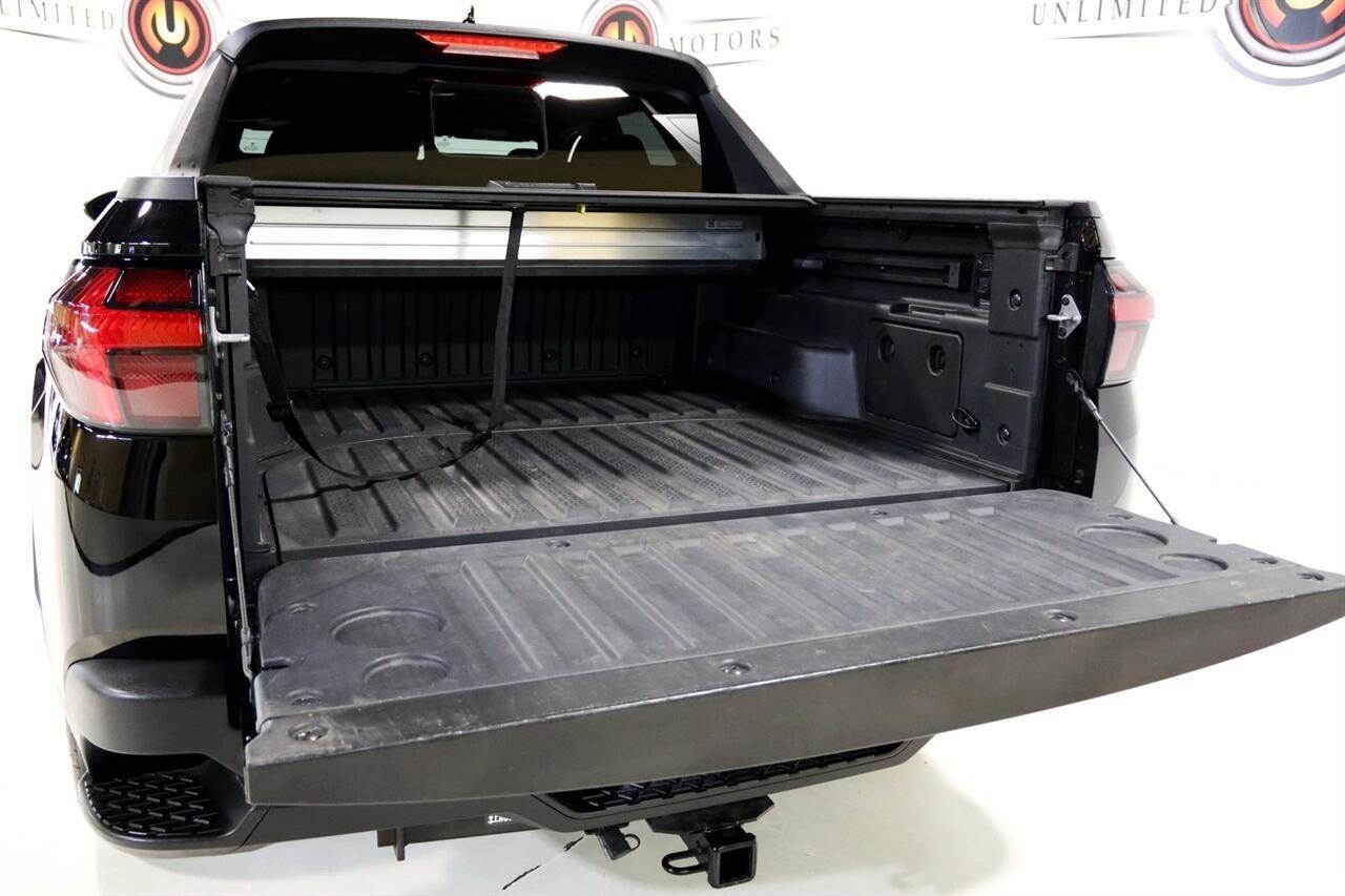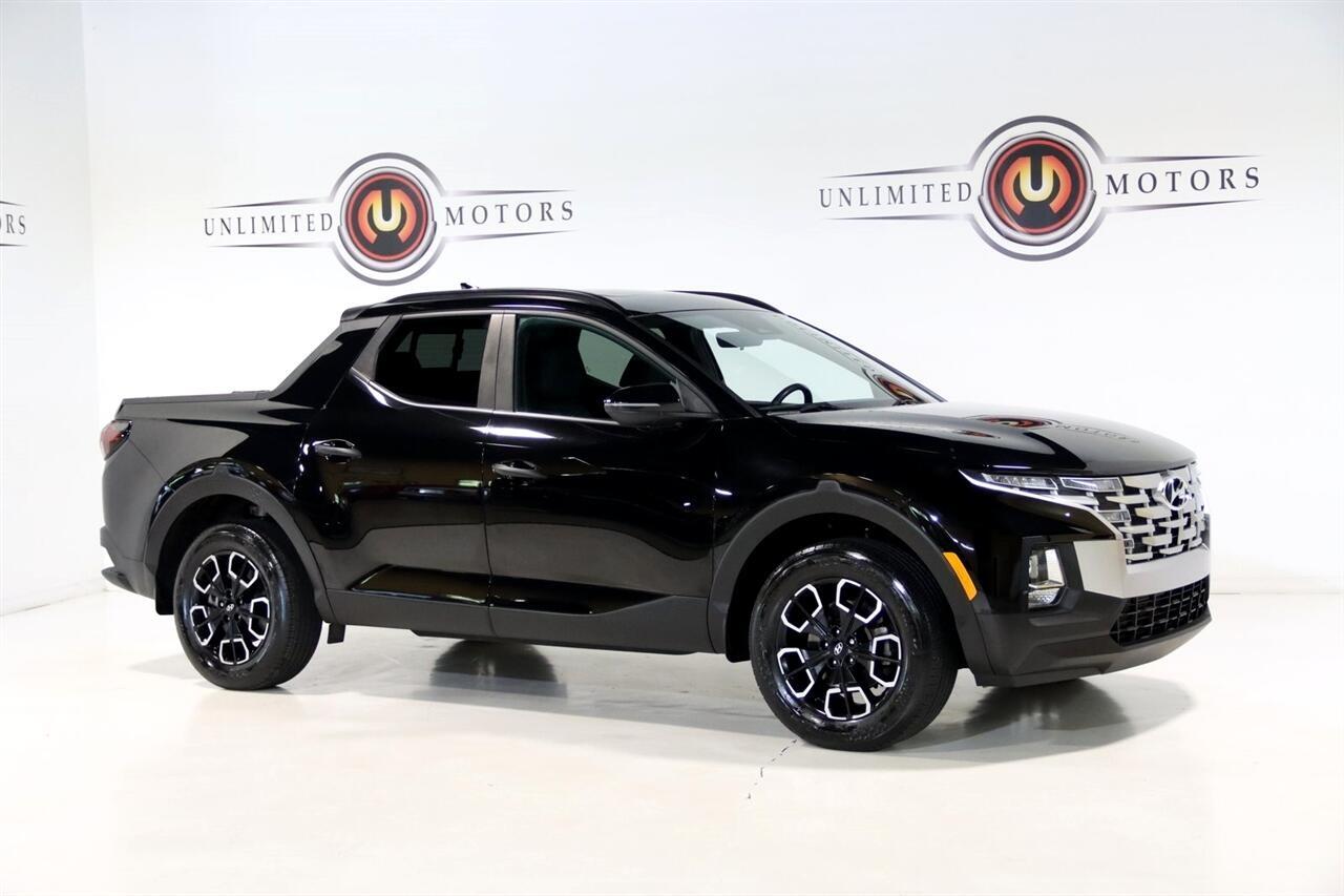 Bluetooth, Back Up Camera, Sun/Moon Roof, Touch Screen, 10.25 Digital Instrument Cluster, 115V AC Power Inverter in Bed, 18 x 7.5J Alloy Wheels, 2 LED Bed Lighting, 4-Wheel Disc Brakes, 4.081 Axle Ratio, 6 Speakers, ABS brakes, Activity Package, Air Conditioning, Alloy wheels, AM/FM radio: SiriusXM, Apple CarPlay & Android Auto, Auto High-beam Headlights, Auto-leveling suspension, Brake assist, Bumpers: body-color, Carpeted Floor Mats, Conventional Power Sunroof, Delay-off headlights, Driver door bin, Driver vanity mirror, Dual C-Channel Utility Tracks on Bed Side, Dual front impact airbags, Dual front side impact airbags, Electronic Stability Control, Emergency communication system: Blue Link Connected Car Service (3-year complimentary subscription), Exterior Parking Camera Rear, First Aid Kit, Four wheel independent suspension, Front anti-roll bar, Front Bucket Seats, Front Center Armrest, Front reading lights, Fully automatic headlights, Heated door mirrors, Heated Front Bucket Seats, Heated front seats, Illuminated entry, Integrated Tonneau Cover, LED Front & Rear Maplights, Low tire pressure warning, Mudguards, Occupant sensing airbag, Option Group 02, Outside temperature display, Overhead airbag, Overhead console, Panic alarm, Passenger door bin, Passenger vanity mirror, Power door mirrors, Power driver seat, Power steering, Power windows, Radio data system, Radio: AM/FM/HD Audio System, Rear anti-roll bar, Rear Sliding Glass Window w/Rear Defroster, Rear step bumper, Rear window defroster, Remote keyless entry, Roof Side Rails, Security system, Speed control, Speed-sensing steering, Split folding rear seat, Spoiler, Stain & Odor Resistant Cloth Seat Trim, Steering wheel mounted audio controls, Tachometer, Telescoping steering wheel, Tilt steering wheel, Traction control, Trip computer, Turn signal indicator mirrors, Variably intermittent wipers, Wireless Phone Charger (15W). CARFAX One-Owner. Clean CARFAX. 22/26 City/Highway MPG2023 Phantom Black Hyundai 4D Crew Cab Santa Cruz SEL FWD 8-Speed Automatic with SHIFTRONIC 2.5L I4Visit our website www.iumotors.com to view 100s of newer vehicles, more pictures and info, or to apply for financing. Rates are incredibly low for approved credit. We offer extended warranties, protection packages, and insurance. We assure you the best experience at any of our 4 locations and unbeatable prices and quality. At Unlimited Motors we believe in MARKET VALUE PRICING. We use real-time Internet price comparisons to constantly adjust prices to provide ALL BUYERS The BEST PRICE possible. We do not mark them up, to mark them down! Our entire team is committed to helping you buy a car the way we would want to buy a car! We utilize state-of-the-art technology to constantly monitor pricing trends to offer our shoppers the best competitive pricing, value, and experience. We sell and service all makes and models of Pre-owned / Used Vehicles Used Cars, Used Trucks, Used Sport Utility, Lamborghini, Ferrari, Bentley, Rolls Royce, McLaren, Maserati, Ford, Chevrolet/Chevy, Honda, Toyota, Porsche, Land Rover, Jaguar, INFINITI, Audi, Nissan, Mazda, Hyundai, Chrysler, Jeep, Dodge, Ram, SRT, Mitsubishi, Lexus, Kia, Volkswagen, Mini, BMW, Mercedes, Fiat, Volvo, GMC, Cadillac, Lincoln as well as other brands. Proudly serving these areas of Indianapolis, Fishers, Carmel, Noblesville, Greenwood, Avon, Plainfield, Zionsville, & Brownsburg, Indiana, Midwest. We also serve the entire nation with our seamless and easy online purchasing process, and offer shipping nationwide.Advertised prices DO NOT include Sales Tax, Dealer Fees, Title Processing Charges, and Dealer Pre-installed Products.