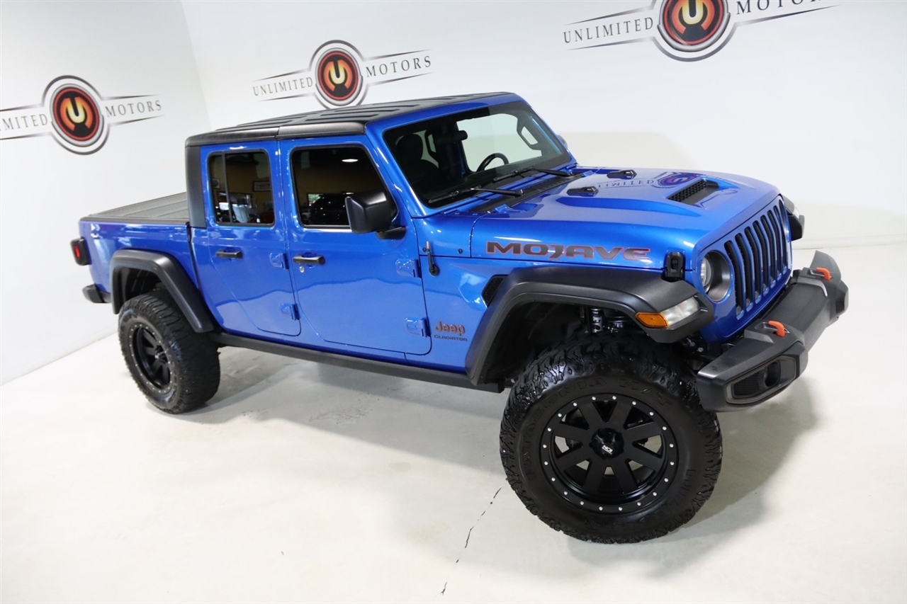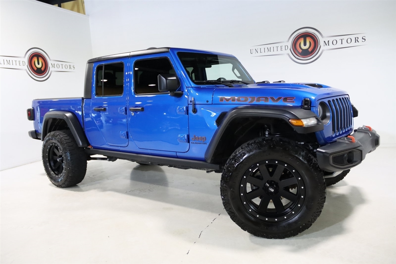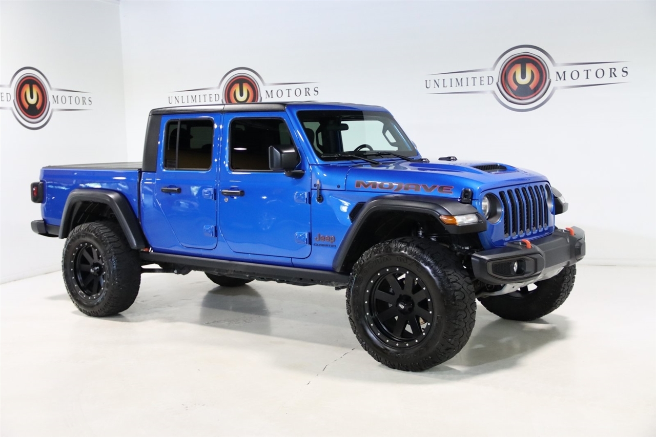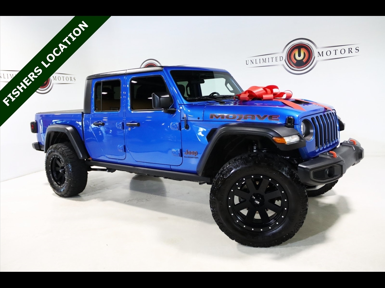 Bluetooth, Back Up Camera, Towing, Hard Top, Heated Seats, Touch Screen, 240 Amp Alternator, 4-Wheel Disc Brakes, 4.10 Rear Axle Ratio, 8 Speakers, 97 mph Maximum Speed Calibration, ABS brakes, Air Conditioning, Alloy wheels, AM/FM radio: SiriusXM, Apple CarPlay/Android Auto, Automatic temperature control, Black 3-Piece Hard Top, Brake assist, Class IV Hitch Receiver, Cold Weather Group, Compass, Delay-off headlights, Driver door bin, Driver vanity mirror, Dual front impact airbags, Dual front side impact airbags, Electronic Stability Control, Freedom Panel Storage Bag, Front anti-roll bar, Front Bucket Seats, Front Center Armrest w/Storage, Front dual zone A/C, Front fog lights, Front reading lights, Fully automatic headlights, Garage door transmitter, Heated door mirrors, Heated Front Seats, Heated Steering Wheel, Heavy Duty Suspension w/Gas Shocks, Heavy-Duty Engine Cooling, Illuminated entry, Integrated roll-over protection, Leather steering wheel, Low tire pressure warning, Manufacturer's Statement of Origin, Occupant sensing airbag, Outside temperature display, Panic alarm, ParkView Rear Back-Up Camera, Passenger door bin, Passenger vanity mirror, Power door mirrors, Power steering, Power windows, Premium Cloth Seats w/Sport Bolsters, Quick Order Package 24D, Radio data system, Radio: Uconnect 4 w/7 Display, Rear anti-roll bar, Rear reading lights, Rear Sliding Window, Rear Window Defroster, Remote keyless entry, Remote Start System, Security system, Speed control, Split folding rear seat, Steering wheel mounted audio controls, Tachometer, Telescoping steering wheel, Tilt steering wheel, Traction control, Trailer Hitch Zoom, Trailer Tow Package, Trip computer, Variably intermittent wipers, Voltmeter, Wheels: 17 x 7.5 Low Gloss Black Aluminum. CARFAX One-Owner. Clean CARFAX. Odometer is 2896 miles below market average!2021 Hydro Blue Pearlcoat Jeep 4D Crew Cab Gladiator Mojave 4WD 8-Speed Automatic 3.6L V6 24V VVTAwards: * JD Power Initial Quality Study (IQS)Visit our website www.iumotors.com to view 100s of newer vehicles, more pictures and info, or to apply for financing. Rates are incredibly low for approved credit. We offer extended warranties, protection packages, and insurance. We assure you the best experience at any of our 4 locations and unbeatable prices and quality. At Unlimited Motors we believe in MARKET VALUE PRICING. We use real-time Internet price comparisons to constantly adjust prices to provide ALL BUYERS The BEST PRICE possible. We do not mark them up, to mark them down! Our entire team is committed to helping you buy a car the way we would want to buy a car! We utilize state-of-the-art technology to constantly monitor pricing trends to offer our shoppers the best competitive pricing, value, and experience. We sell and service all makes and models of Pre-owned / Used Vehicles Used Cars, Used Trucks, Used Sport Utility, Lamborghini, Ferrari, Bentley, Rolls Royce, McLaren, Maserati, Ford, Chevrolet/Chevy, Honda, Toyota, Porsche, Land Rover, Jaguar, INFINITI, Audi, Nissan, Mazda, Hyundai, Chrysler, Jeep, Dodge, Ram, SRT, Mitsubishi, Lexus, Kia, Volkswagen, Mini, BMW, Mercedes, Fiat, Volvo, GMC, Cadillac, Lincoln as well as other brands. Proudly serving these areas of Indianapolis, Fishers, Carmel, Noblesville, Greenwood, Avon, Plainfield, Zionsville, & Brownsburg, Indiana, Midwest. We also serve the entire nation with our seamless and easy online purchasing process, and offer shipping nationwide.Advertised prices DO NOT include Sales Tax, Dealer Fees, Title Processing Charges, and Dealer Pre-installed Products.