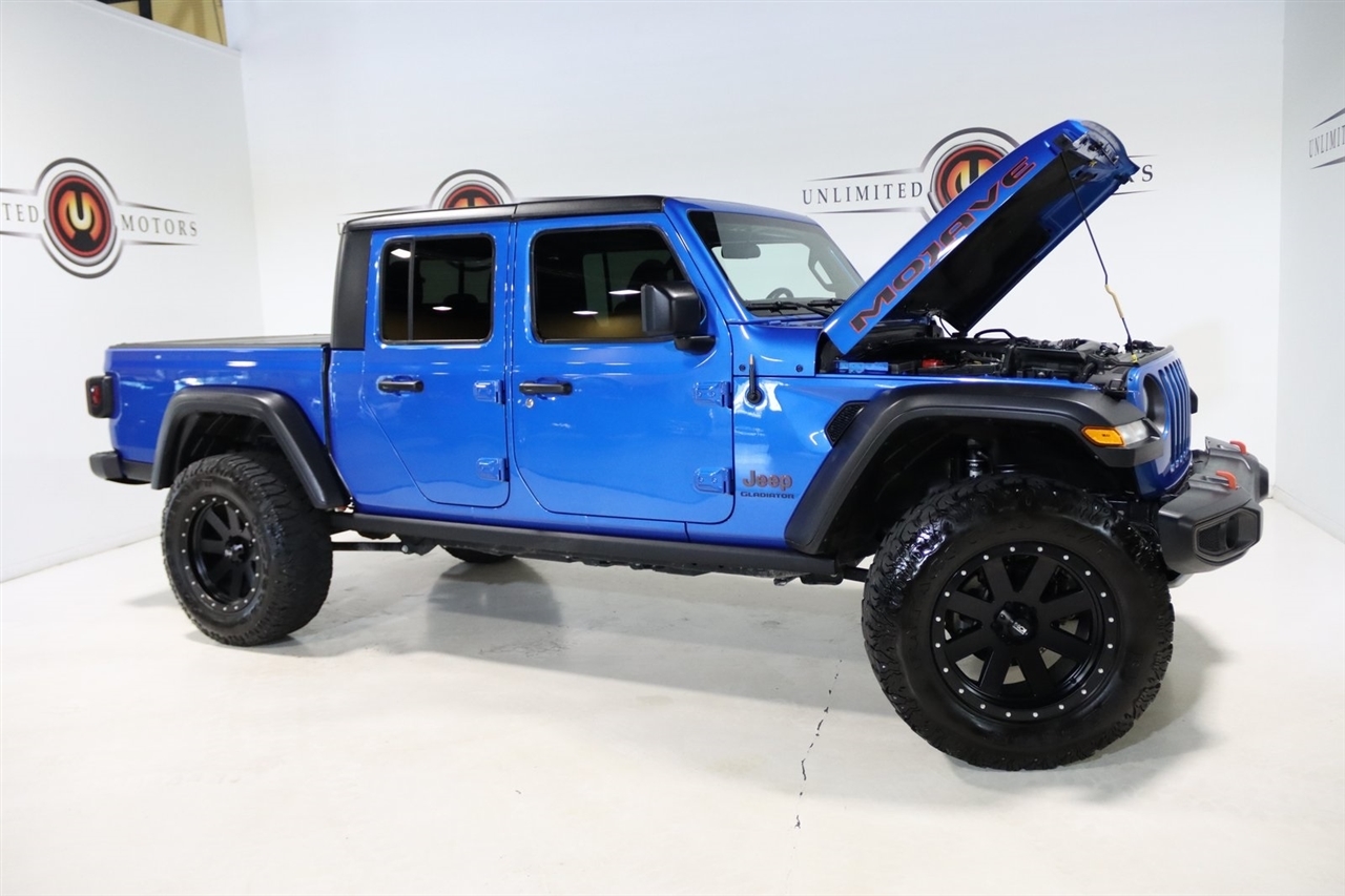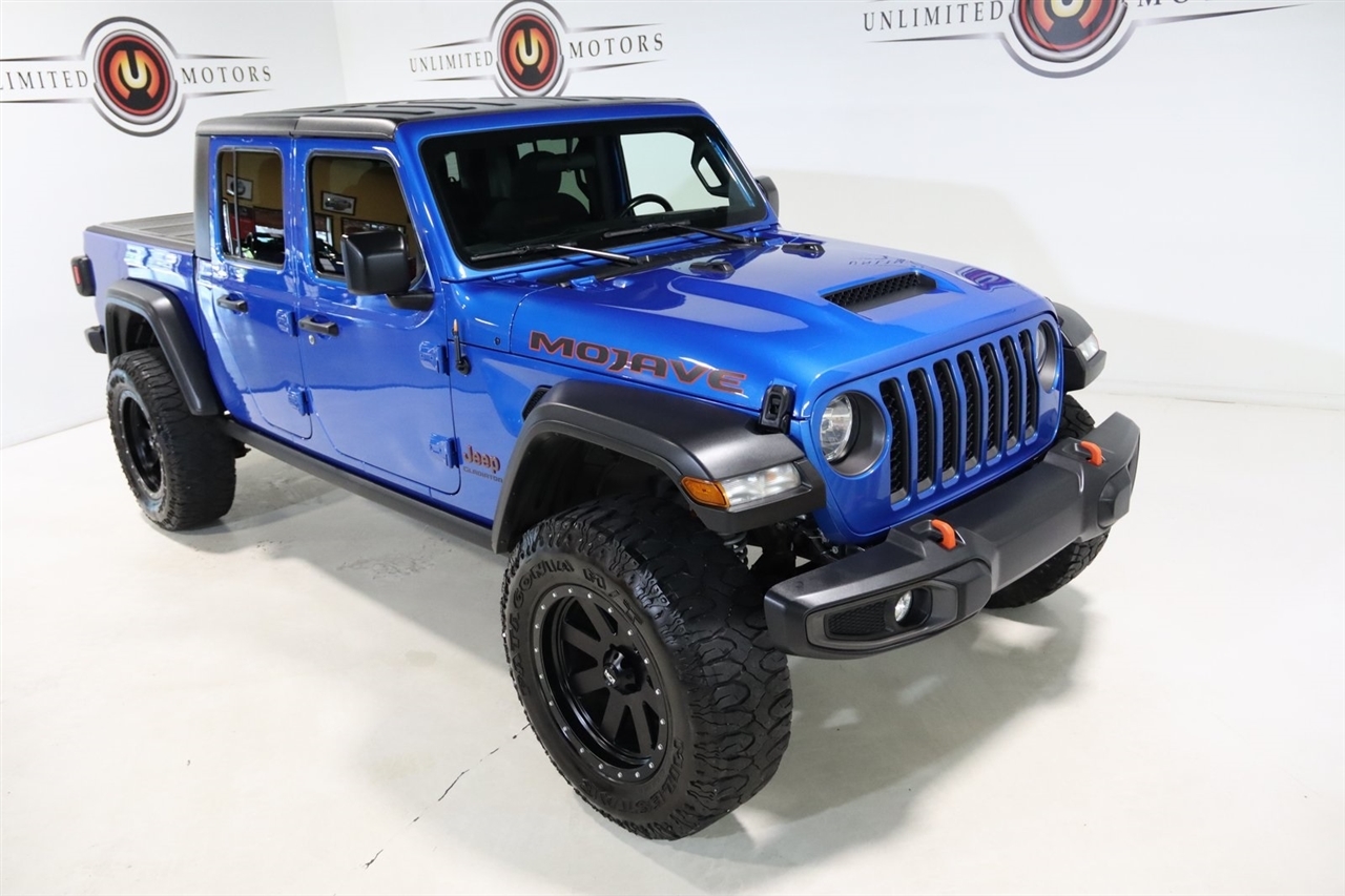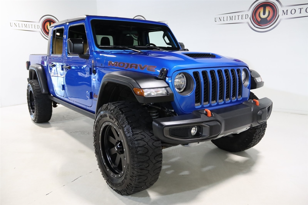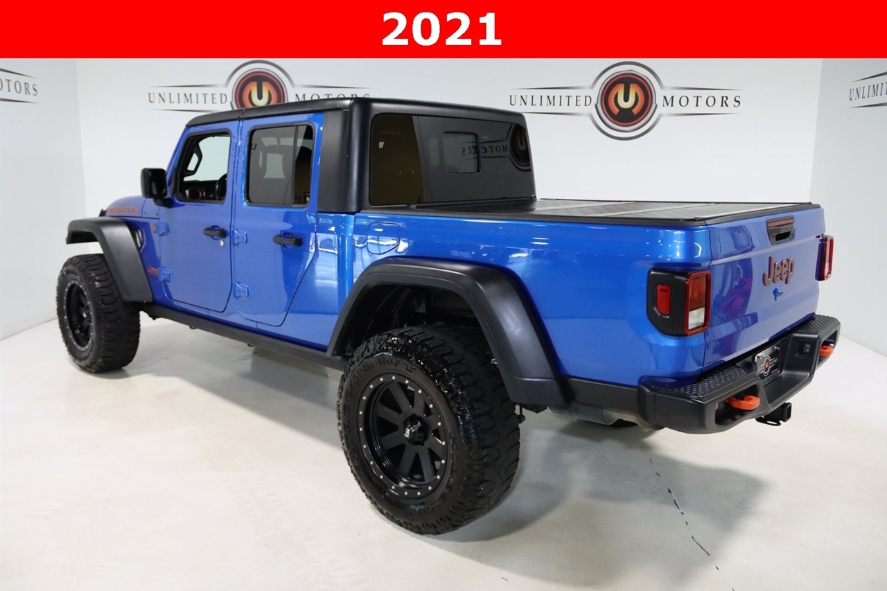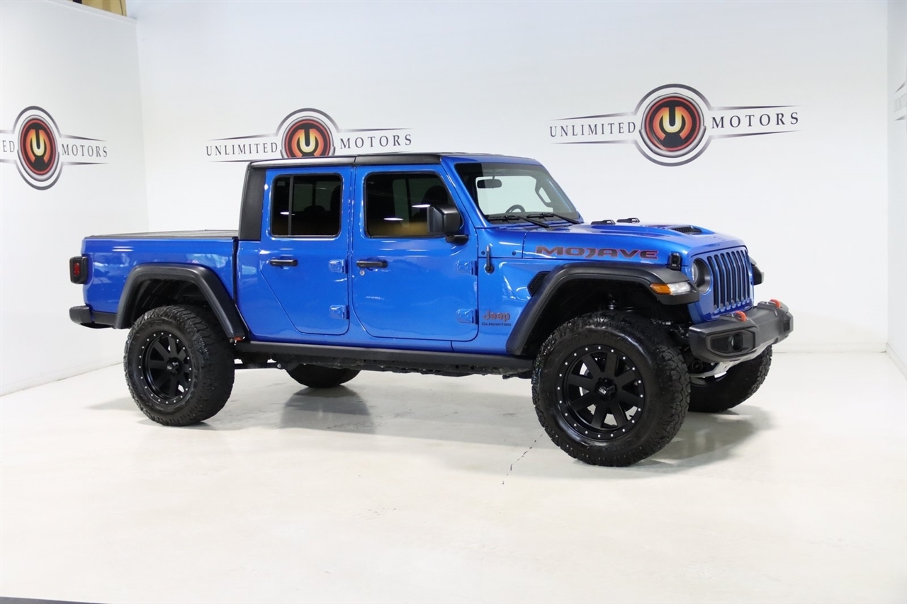 Bluetooth, Back Up Camera, Towing, Hard Top, Heated Seats, Touch Screen, 240 Amp Alternator, 4-Wheel Disc Brakes, 4.10 Rear Axle Ratio, 8 Speakers, 97 mph Maximum Speed Calibration, ABS brakes, Air Conditioning, Alloy wheels, AM/FM radio: SiriusXM, Apple CarPlay/Android Auto, Automatic temperature control, Black 3-Piece Hard Top, Brake assist, Class IV Hitch Receiver, Cold Weather Group, Compass, Delay-off headlights, Driver door bin, Driver vanity mirror, Dual front impact airbags, Dual front side impact airbags, Electronic Stability Control, Freedom Panel Storage Bag, Front anti-roll bar, Front Bucket Seats, Front Center Armrest w/Storage, Front dual zone A/C, Front fog lights, Front reading lights, Fully automatic headlights, Garage door transmitter, Heated door mirrors, Heated Front Seats, Heated Steering Wheel, Heavy Duty Suspension w/Gas Shocks, Heavy-Duty Engine Cooling, Illuminated entry, Integrated roll-over protection, Leather steering wheel, Low tire pressure warning, Manufacturer's Statement of Origin, Occupant sensing airbag, Outside temperature display, Panic alarm, ParkView Rear Back-Up Camera, Passenger door bin, Passenger vanity mirror, Power door mirrors, Power steering, Power windows, Premium Cloth Seats w/Sport Bolsters, Quick Order Package 24D, Radio data system, Radio: Uconnect 4 w/7 Display, Rear anti-roll bar, Rear reading lights, Rear Sliding Window, Rear Window Defroster, Remote keyless entry, Remote Start System, Security system, Speed control, Split folding rear seat, Steering wheel mounted audio controls, Tachometer, Telescoping steering wheel, Tilt steering wheel, Traction control, Trailer Hitch Zoom, Trailer Tow Package, Trip computer, Variably intermittent wipers, Voltmeter, Wheels: 17 x 7.5 Low Gloss Black Aluminum. CARFAX One-Owner. Clean CARFAX. Odometer is 2896 miles below market average!2021 Hydro Blue Pearlcoat Jeep 4D Crew Cab Gladiator Mojave 4WD 8-Speed Automatic 3.6L V6 24V VVTAwards: * JD Power Initial Quality Study (IQS)Visit our website www.iumotors.com to view 100s of newer vehicles, more pictures and info, or to apply for financing. Rates are incredibly low for approved credit. We offer extended warranties, protection packages, and insurance. We assure you the best experience at any of our 4 locations and unbeatable prices and quality. At Unlimited Motors we believe in MARKET VALUE PRICING. We use real-time Internet price comparisons to constantly adjust prices to provide ALL BUYERS The BEST PRICE possible. We do not mark them up, to mark them down! Our entire team is committed to helping you buy a car the way we would want to buy a car! We utilize state-of-the-art technology to constantly monitor pricing trends to offer our shoppers the best competitive pricing, value, and experience. We sell and service all makes and models of Pre-owned / Used Vehicles Used Cars, Used Trucks, Used Sport Utility, Lamborghini, Ferrari, Bentley, Rolls Royce, McLaren, Maserati, Ford, Chevrolet/Chevy, Honda, Toyota, Porsche, Land Rover, Jaguar, INFINITI, Audi, Nissan, Mazda, Hyundai, Chrysler, Jeep, Dodge, Ram, SRT, Mitsubishi, Lexus, Kia, Volkswagen, Mini, BMW, Mercedes, Fiat, Volvo, GMC, Cadillac, Lincoln as well as other brands. Proudly serving these areas of Indianapolis, Fishers, Carmel, Noblesville, Greenwood, Avon, Plainfield, Zionsville, & Brownsburg, Indiana, Midwest. We also serve the entire nation with our seamless and easy online purchasing process, and offer shipping nationwide.Advertised prices DO NOT include Sales Tax, Dealer Fees, Title Processing Charges, and Dealer Pre-installed Products.