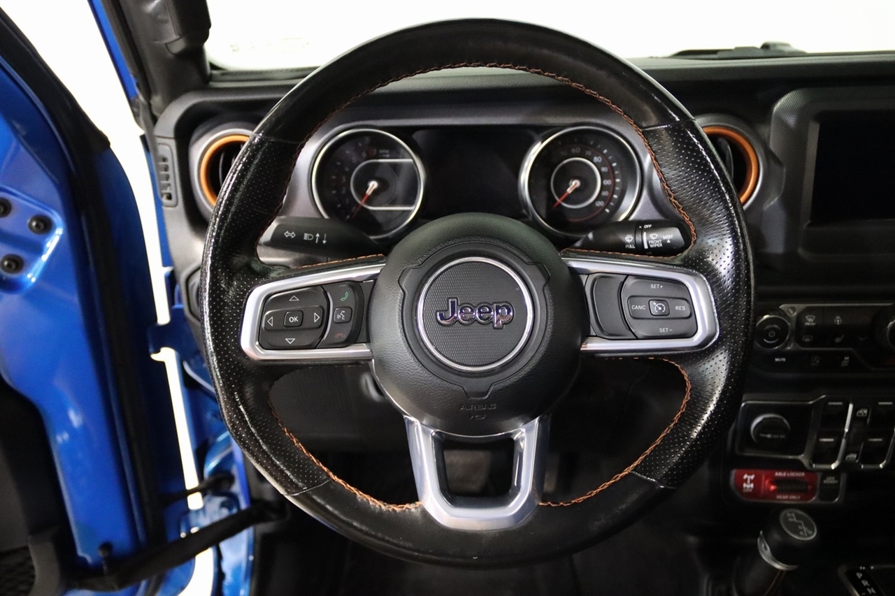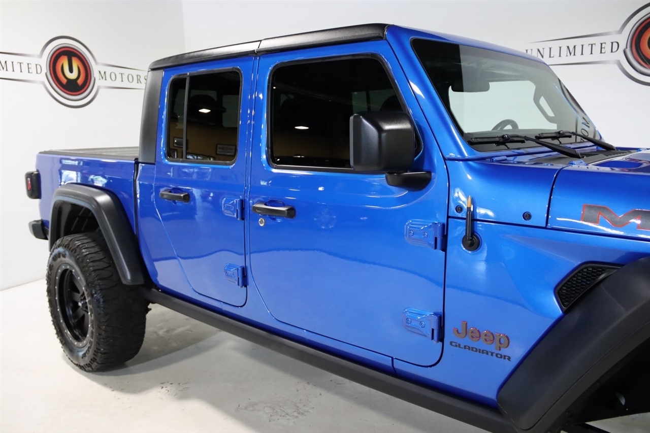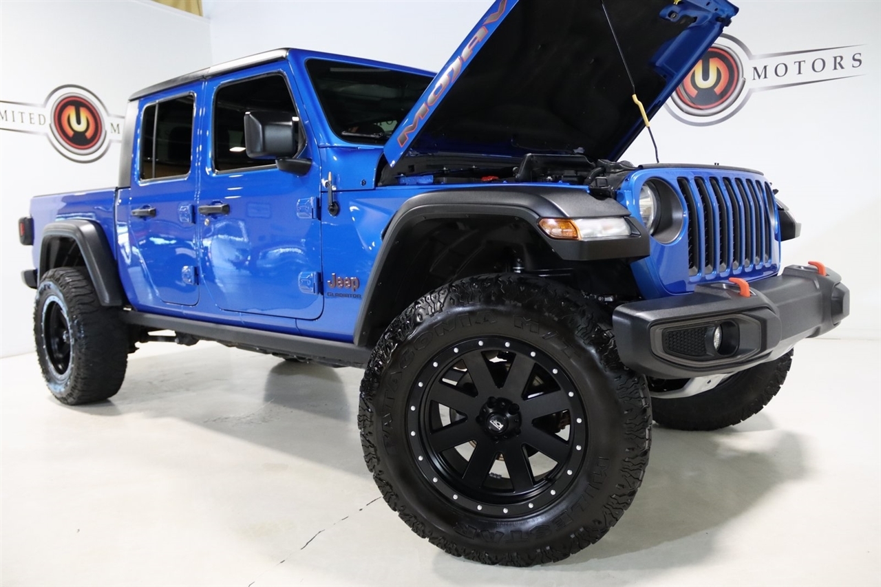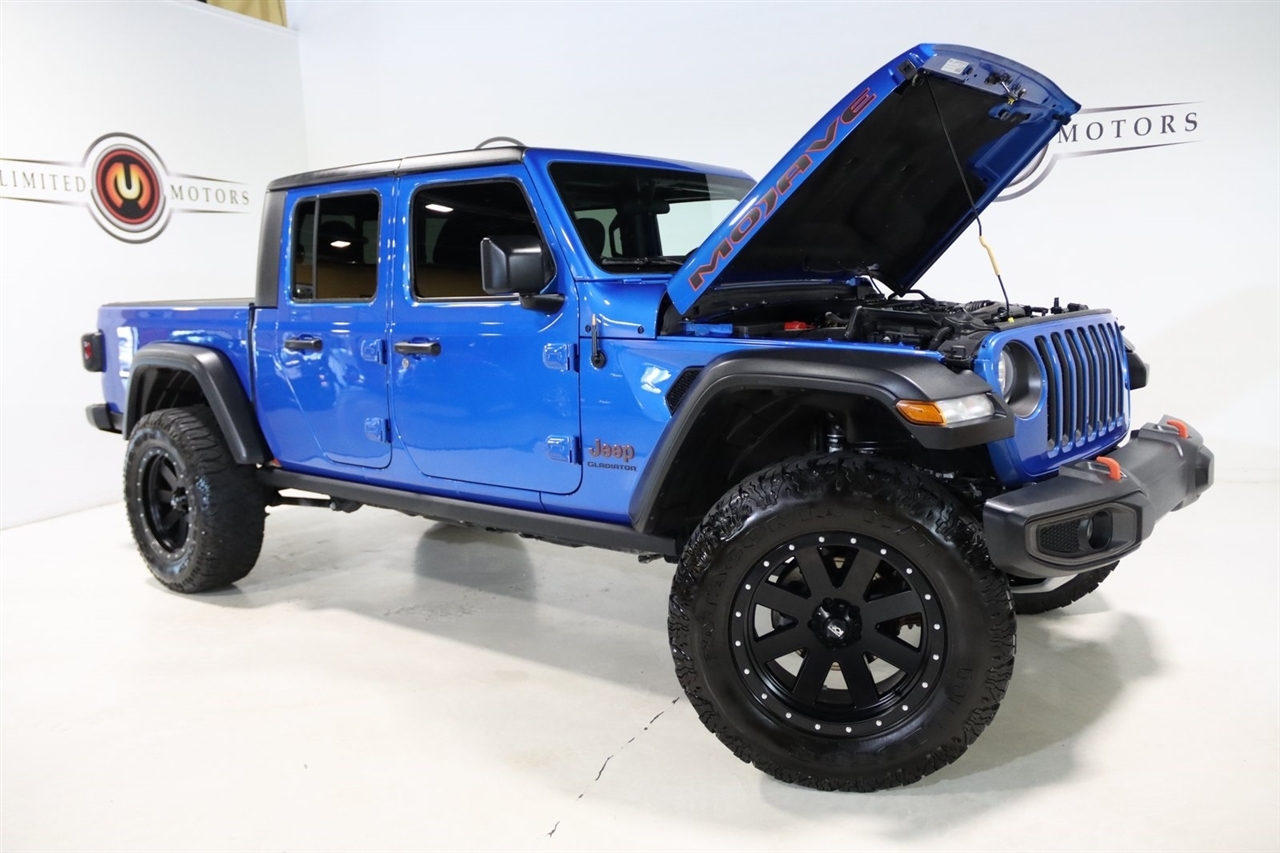Bluetooth, Back Up Camera, Towing, Hard Top, Heated Seats, Touch Screen, 240 Amp Alternator, 4-Wheel Disc Brakes, 4.10 Rear Axle Ratio, 8 Speakers, 97 mph Maximum Speed Calibration, ABS brakes, Air Conditioning, Alloy wheels, AM/FM radio: SiriusXM, Apple CarPlay/Android Auto, Automatic temperature control, Black 3-Piece Hard Top, Brake assist, Class IV Hitch Receiver, Cold Weather Group, Compass, Delay-off headlights, Driver door bin, Driver vanity mirror, Dual front impact airbags, Dual front side impact airbags, Electronic Stability Control, Freedom Panel Storage Bag, Front anti-roll bar, Front Bucket Seats, Front Center Armrest w/Storage, Front dual zone A/C, Front fog lights, Front reading lights, Fully automatic headlights, Garage door transmitter, Heated door mirrors, Heated Front Seats, Heated Steering Wheel, Heavy Duty Suspension w/Gas Shocks, Heavy-Duty Engine Cooling, Illuminated entry, Integrated roll-over protection, Leather steering wheel, Low tire pressure warning, Manufacturer's Statement of Origin, Occupant sensing airbag, Outside temperature display, Panic alarm, ParkView Rear Back-Up Camera, Passenger door bin, Passenger vanity mirror, Power door mirrors, Power steering, Power windows, Premium Cloth Seats w/Sport Bolsters, Quick Order Package 24D, Radio data system, Radio: Uconnect 4 w/7 Display, Rear anti-roll bar, Rear reading lights, Rear Sliding Window, Rear Window Defroster, Remote keyless entry, Remote Start System, Security system, Speed control, Split folding rear seat, Steering wheel mounted audio controls, Tachometer, Telescoping steering wheel, Tilt steering wheel, Traction control, Trailer Hitch Zoom, Trailer Tow Package, Trip computer, Variably intermittent wipers, Voltmeter, Wheels: 17 x 7.5 Low Gloss Black Aluminum. CARFAX One-Owner. Clean CARFAX. Odometer is 2896 miles below market average!2021 Hydro Blue Pearlcoat Jeep 4D Crew Cab Gladiator Mojave 4WD 8-Speed Automatic 3.6L V6 24V VVTAwards: * JD Power Initial Quality Study (IQS)Visit our website www.iumotors.com to view 100s of newer vehicles, more pictures and info, or to apply for financing. Rates are incredibly low for approved credit. We offer extended warranties, protection packages, and insurance. We assure you the best experience at any of our 4 locations and unbeatable prices and quality. At Unlimited Motors we believe in MARKET VALUE PRICING. We use real-time Internet price comparisons to constantly adjust prices to provide ALL BUYERS The BEST PRICE possible. We do not mark them up, to mark them down! Our entire team is committed to helping you buy a car the way we would want to buy a car! We utilize state-of-the-art technology to constantly monitor pricing trends to offer our shoppers the best competitive pricing, value, and experience. We sell and service all makes and models of Pre-owned / Used Vehicles Used Cars, Used Trucks, Used Sport Utility, Lamborghini, Ferrari, Bentley, Rolls Royce, McLaren, Maserati, Ford, Chevrolet/Chevy, Honda, Toyota, Porsche, Land Rover, Jaguar, INFINITI, Audi, Nissan, Mazda, Hyundai, Chrysler, Jeep, Dodge, Ram, SRT, Mitsubishi, Lexus, Kia, Volkswagen, Mini, BMW, Mercedes, Fiat, Volvo, GMC, Cadillac, Lincoln as well as other brands. Proudly serving these areas of Indianapolis, Fishers, Carmel, Noblesville, Greenwood, Avon, Plainfield, Zionsville, & Brownsburg, Indiana, Midwest. We also serve the entire nation with our seamless and easy online purchasing process, and offer shipping nationwide.Advertised prices DO NOT include Sales Tax, Dealer Fees, Title Processing Charges, and Dealer Pre-installed Products.