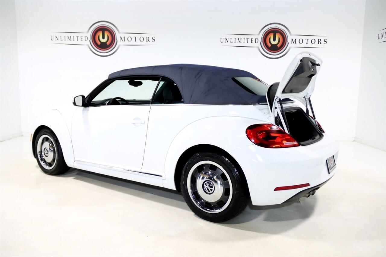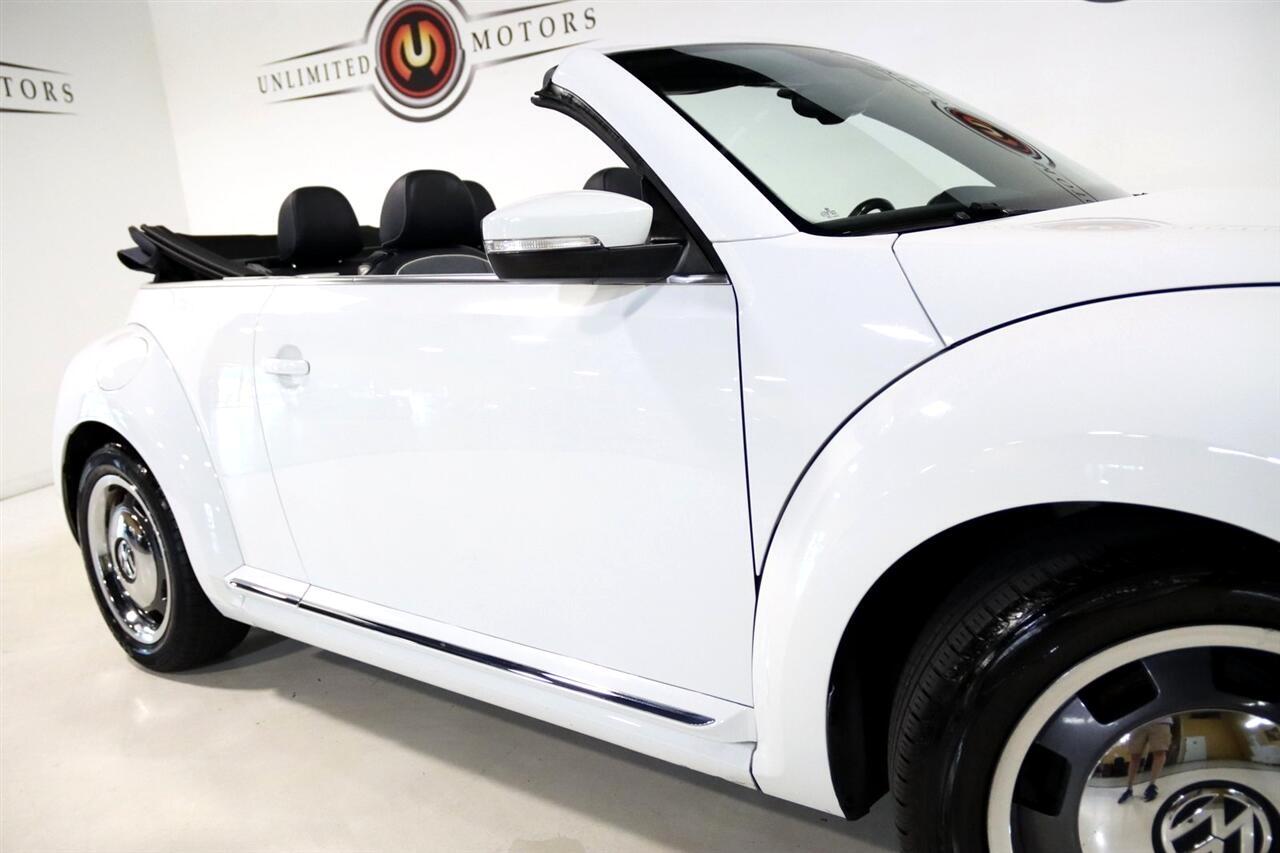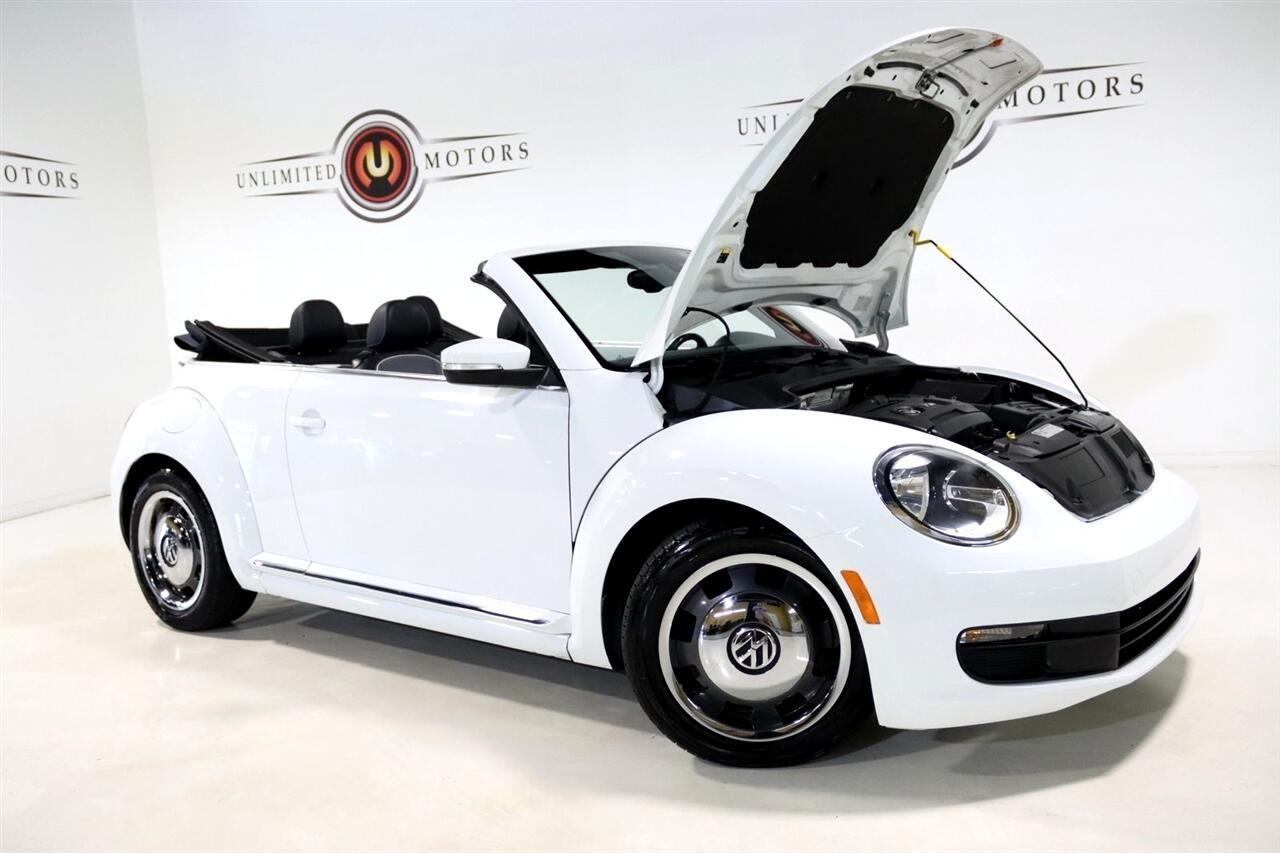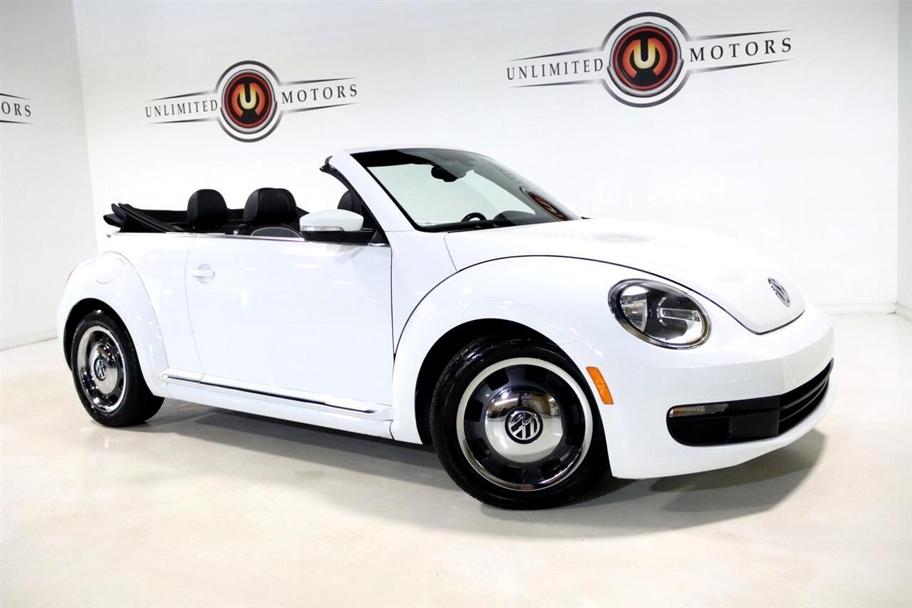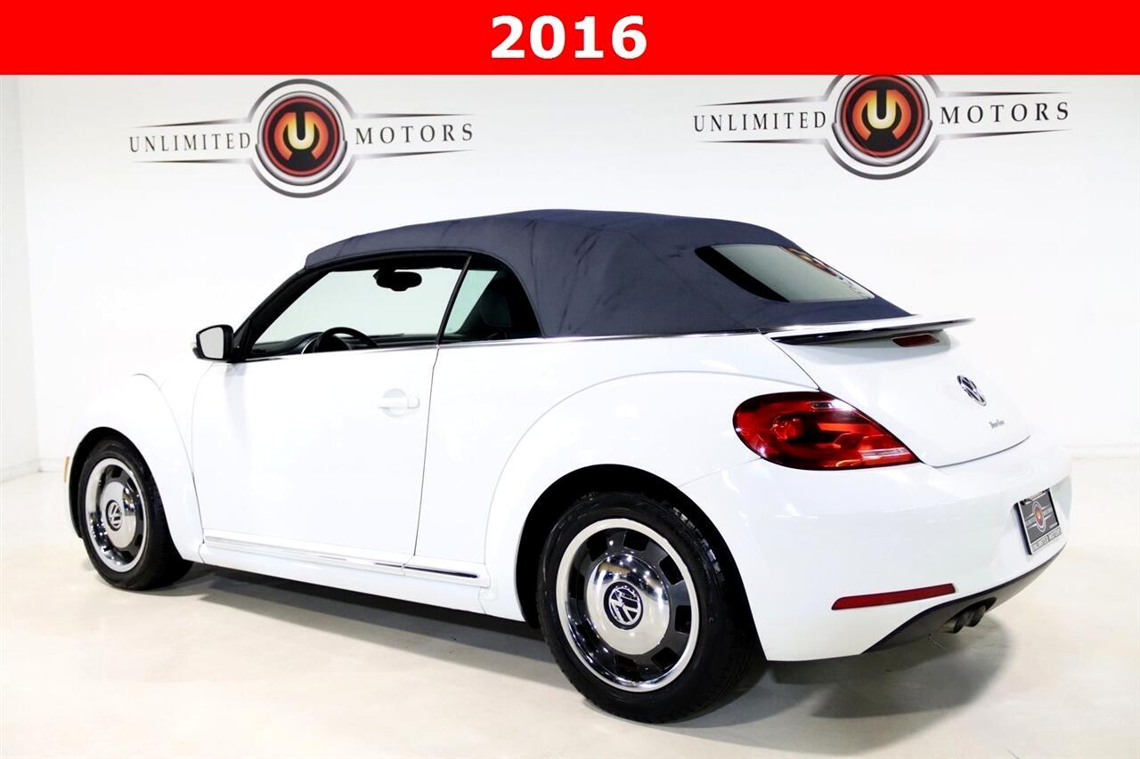 Bluetooth, Back Up Camera, Soft Top, 4-Wheel Disc Brakes, 8 Speakers, ABS brakes, Air Conditioning, Alloy wheels, AM/FM radio, Bodyside moldings, Brake assist, Bumpers: body-color, CD player, Convertible roof lining, Driver door bin, Driver vanity mirror, Dual front impact airbags, Dual front side impact airbags, Electronic Stability Control, Four wheel independent suspension, Front anti-roll bar, Front Bucket Seats, Front Center Armrest w/Storage, Front reading lights, Fully automatic headlights, Glass rear window, Heated door mirrors, Heated Front Comfort Seats, Heated front seats, Illuminated entry, Integrated roll-over protection, Leather Shift Knob, Leather steering wheel, Low tire pressure warning, Occupant sensing airbag, Outside temperature display, Overhead console, Panic alarm, Passenger door bin, Passenger vanity mirror, Power convertible roof, Power door mirrors, Power steering, Power windows, Radio data system, Radio: AM/FM 5 Touchscreen w/CD Player, Rear anti-roll bar, Rear reading lights, Rear window defroster, Remote keyless entry, Speed control, Speed-sensing steering, Split folding rear seat, Spoiler, Steering wheel mounted audio controls, Tachometer, Telescoping steering wheel, Tilt steering wheel, Traction control, Trip computer, Turn signal indicator mirrors, V-Tex Leatherette Seating Surfaces, Variably intermittent wipers, Wheels: 17 Turbine Alloy. 25/34 City/Highway MPG Priced below KBB Fair Purchase Price!2016 Pure White Volkswagen 2D Convertible Beetle 1.8T S FWD 6-Speed Automatic 1.8L I4 Turbocharged DOHC 16V ULEV II 170hpVisit our website www.iumotors.com to view 100s of newer vehicles, more pictures and info, or to apply for financing. Rates are incredibly low for approved credit. We offer extended warranties, protection packages, and insurance. We assure you the best experience at any of our 4 locations and unbeatable prices and quality. At Unlimited Motors we believe in MARKET VALUE PRICING. We use real-time Internet price comparisons to constantly adjust prices to provide ALL BUYERS The BEST PRICE possible. We do not mark them up, to mark them down! Our entire team is committed to helping you buy a car the way we would want to buy a car! We utilize state-of-the-art technology to constantly monitor pricing trends to offer our shoppers the best competitive pricing, value, and experience. We sell and service all makes and models of Pre-owned / Used Vehicles Used Cars, Used Trucks, Used Sport Utility, Lamborghini, Ferrari, Bentley, Rolls Royce, McLaren, Maserati, Ford, Chevrolet/Chevy, Honda, Toyota, Porsche, Land Rover, Jaguar, INFINITI, Audi, Nissan, Mazda, Hyundai, Chrysler, Jeep, Dodge, Ram, SRT, Mitsubishi, Lexus, Kia, Volkswagen, Mini, BMW, Mercedes, Fiat, Volvo, GMC, Cadillac, Lincoln as well as other brands. Proudly serving these areas of Indianapolis, Fishers, Carmel, Noblesville, Greenwood, Avon, Plainfield, Zionsville, & Brownsburg, Indiana, Midwest. We also serve the entire nation with our seamless and easy online purchasing process, and offer shipping nationwide.Advertised prices DO NOT include Sales Tax, Dealer Fees, Title Processing Charges, and Dealer Pre-installed Products.