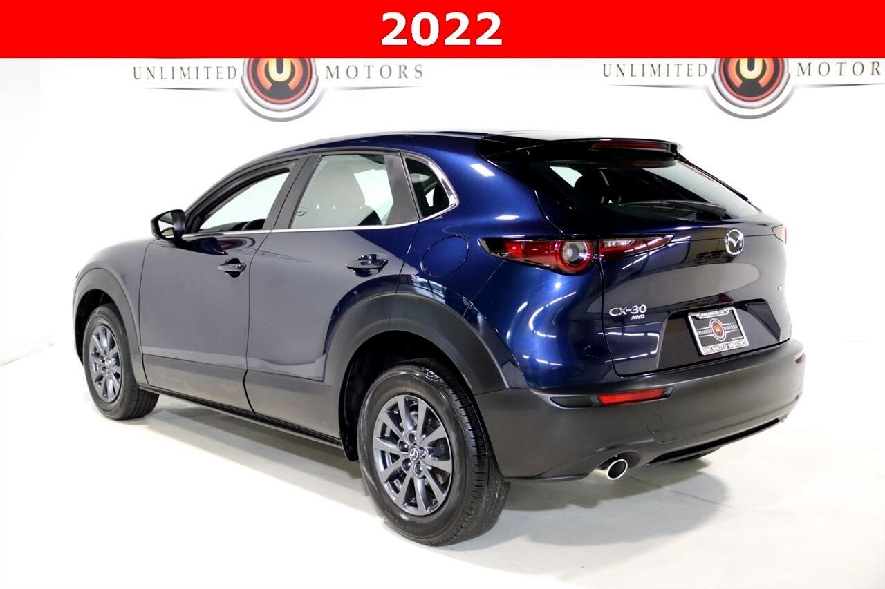 Bluetooth, Back Up Camera, Touch Screen, 16 x 6.5J Aluminum Alloy Wheels, 3.850 Axle Ratio, 4-Wheel Disc Brakes, 8 Speakers, ABS brakes, Air Conditioning, Alloy wheels, AM/FM radio, AppLink/Apple CarPlay and Android Auto, Auto High-beam Headlights, Brake assist, Bumpers: body-color, Cloth Seat Trim, Compass, Delay-off headlights, Driver door bin, Driver vanity mirror, Dual front impact airbags, Dual front side impact airbags, Electronic Stability Control, Emergency communication system: Mazda Connected Services (Automatic 911 Dialing), Exterior Parking Camera Rear, Front anti-roll bar, Front Bucket Seats, Front Center Armrest, Front reading lights, Front wheel independent suspension, Fully automatic headlights, Illuminated entry, Knee airbag, Low tire pressure warning, MAZDA CONNECT Infotainment System, Occupant sensing airbag, Outside temperature display, Overhead airbag, Panic alarm, Passenger door bin, Passenger vanity mirror, Power door mirrors, Power steering, Power windows, Radio data system, Radio: AM/FM/HD Audio System, Rain sensing wipers, Rear window defroster, Rear window wiper, Remote keyless entry, Speed control, Speed-sensing steering, Split folding rear seat, Spoiler, Steering wheel mounted audio controls, Tachometer, Telescoping steering wheel, Tilt steering wheel, Traction control, Trip computer, Variably intermittent wipers. CARFAX One-Owner. 24/31 City/Highway MPG2022 Deep Crystal Blue Mica Mazda 4D Sport Utility CX-30 2.5 S AWD 6-Speed Automatic SKYACTIV 2.5L 4-Cylinder DOHC 16VVisit our website www.iumotors.com to view 100s of newer vehicles, more pictures and info, or to apply for financing. Rates are incredibly low for approved credit. We offer extended warranties, protection packages, and insurance. We assure you the best experience at any of our 4 locations and unbeatable prices and quality. At Unlimited Motors we believe in MARKET VALUE PRICING. We use real-time Internet price comparisons to constantly adjust prices to provide ALL BUYERS The BEST PRICE possible. We do not mark them up, to mark them down! Our entire team is committed to helping you buy a car the way we would want to buy a car! We utilize state-of-the-art technology to constantly monitor pricing trends to offer our shoppers the best competitive pricing, value, and experience. We sell and service all makes and models of Pre-owned / Used Vehicles Used Cars, Used Trucks, Used Sport Utility, Lamborghini, Ferrari, Bentley, Rolls Royce, McLaren, Maserati, Ford, Chevrolet/Chevy, Honda, Toyota, Porsche, Land Rover, Jaguar, INFINITI, Audi, Nissan, Mazda, Hyundai, Chrysler, Jeep, Dodge, Ram, SRT, Mitsubishi, Lexus, Kia, Volkswagen, Mini, BMW, Mercedes, Fiat, Volvo, GMC, Cadillac, Lincoln as well as other brands. Proudly serving these areas of Indianapolis, Fishers, Carmel, Noblesville, Greenwood, Avon, Plainfield, Zionsville, & Brownsburg, Indiana, Midwest. We also serve the entire nation with our seamless and easy online purchasing process, and offer shipping nationwide.Advertised prices DO NOT include Sales Tax, Dealer Fees, Title Processing Charges, and Dealer Pre-installed Products.