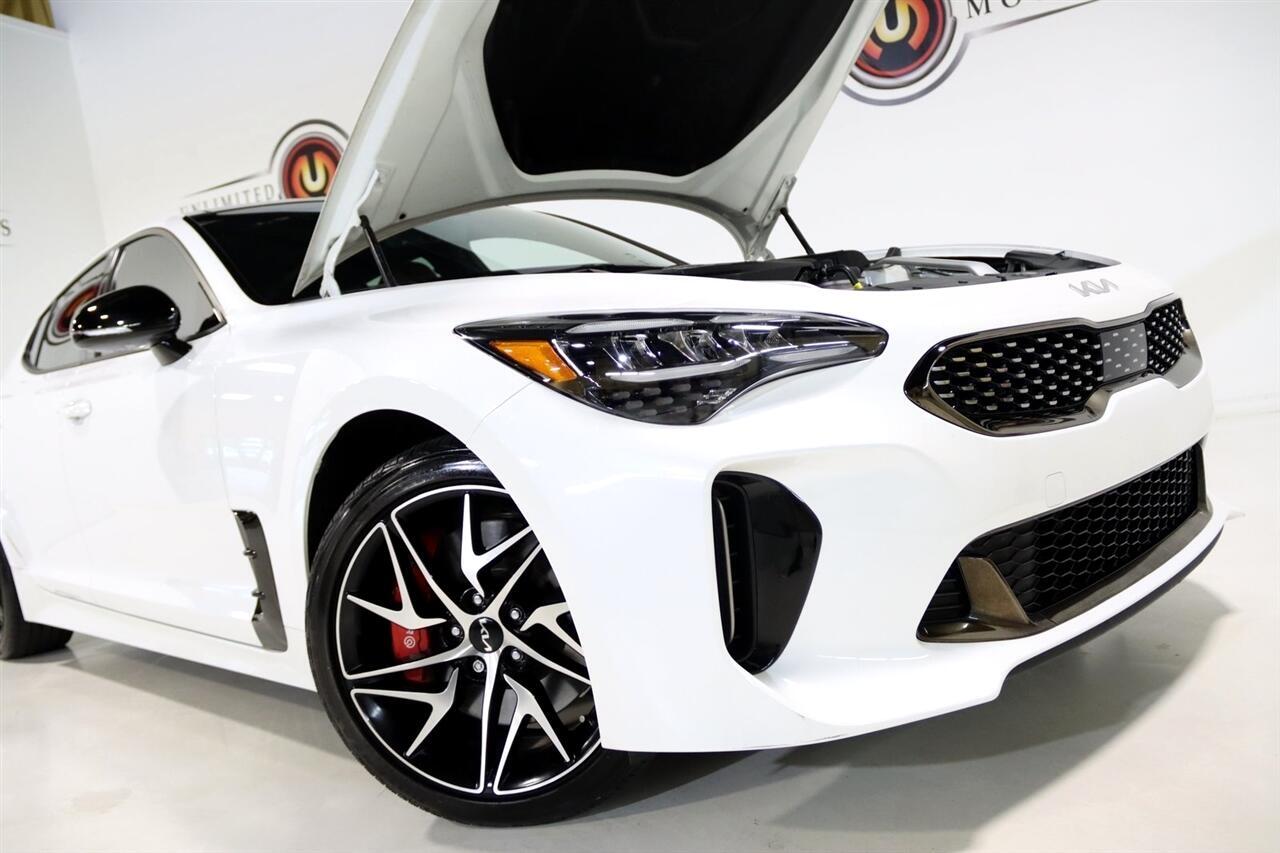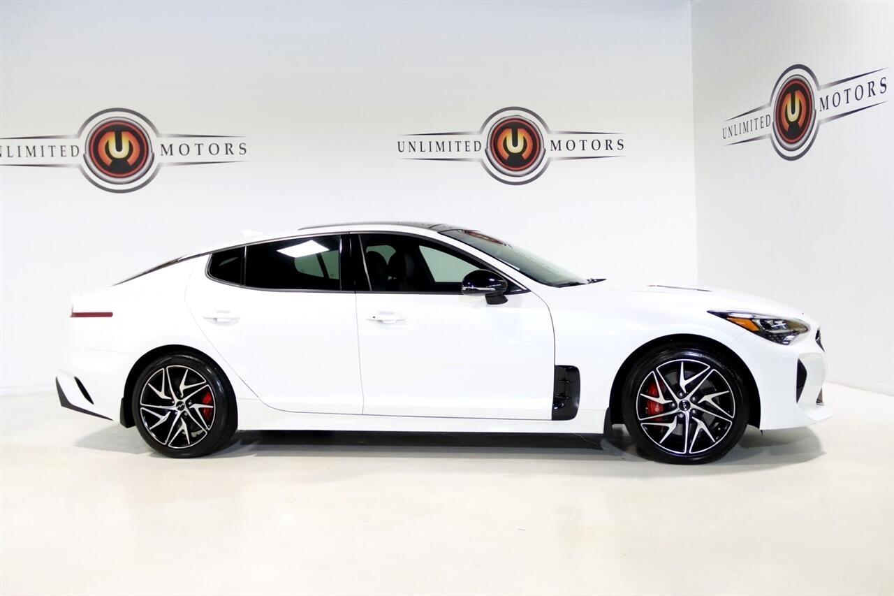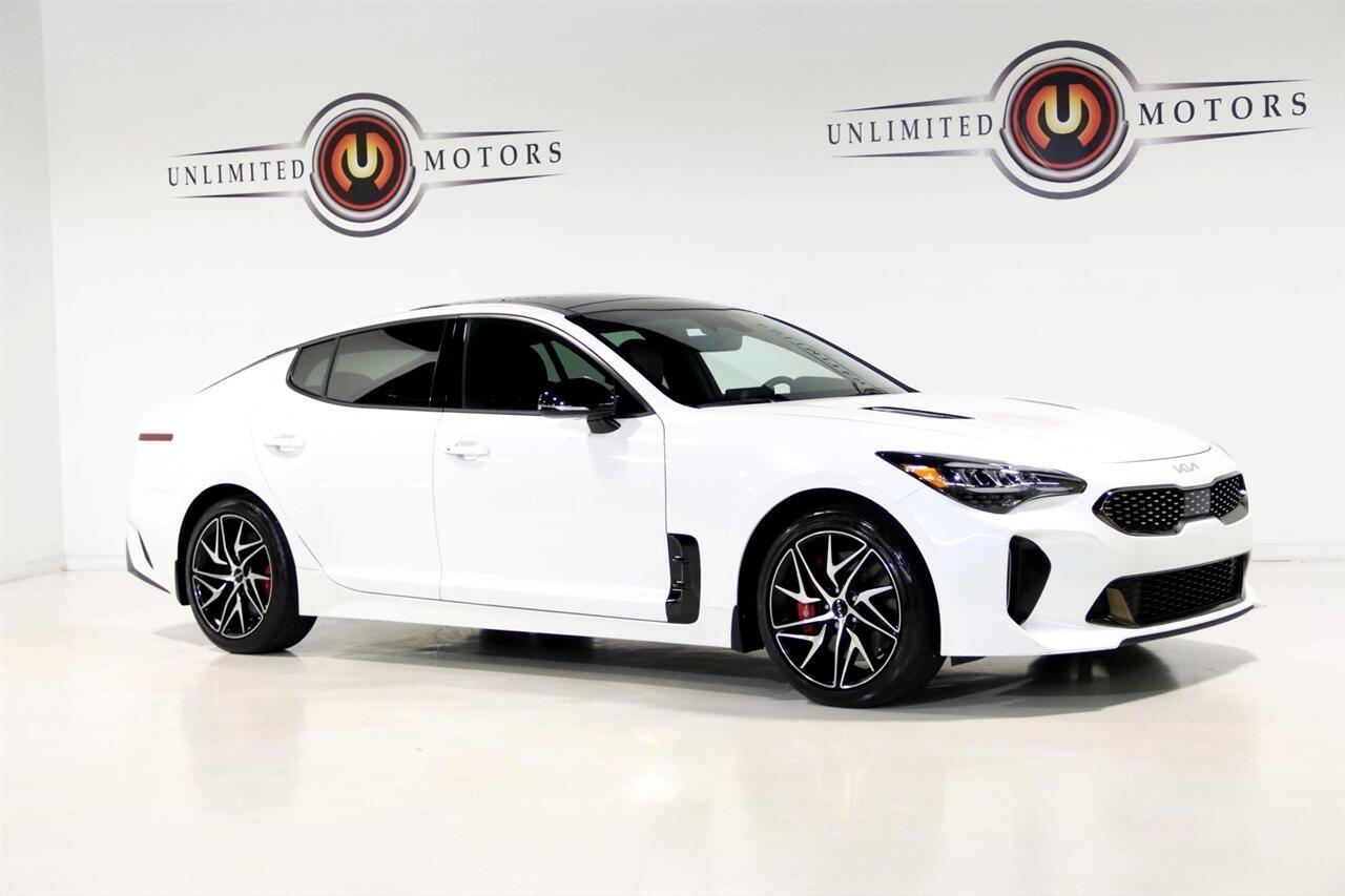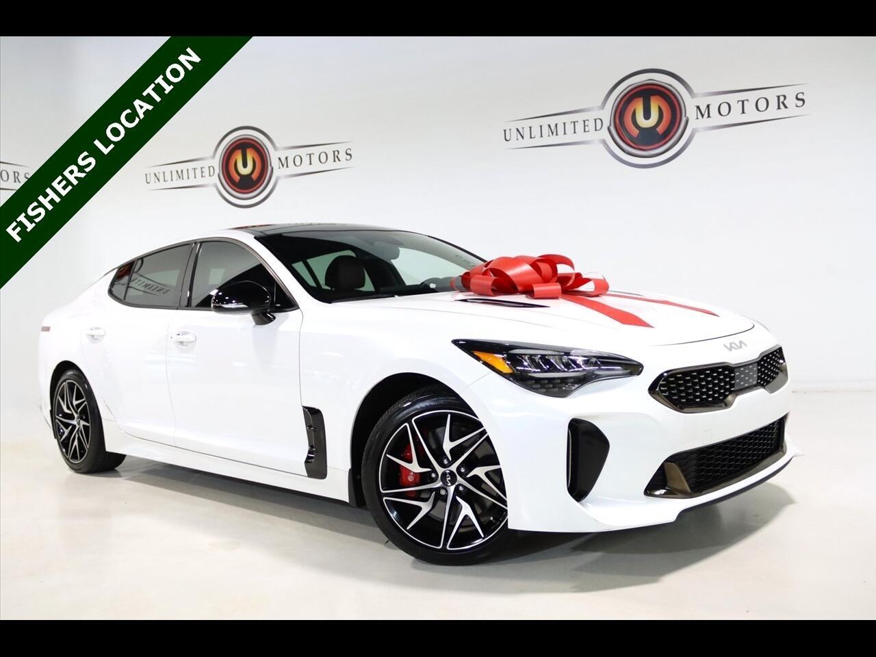 Navigation, Bluetooth, Back Up Camera, Sun/Moon Roof, Touch Screen, 4-Wheel Disc Brakes, 8-Way Power Adjustable Passenger Seat, 9 Speakers, ABS brakes, Air Conditioning, Alloy wheels, AM/FM radio: SiriusXM, Anti-whiplash front head restraints, Apple CarPlay & Android Auto, Auto High-beam Headlights, Auto-dimming Rear-View mirror, Automatic temperature control, Black Exhaust Tips, Black Exterior Mirrors, Black Fender Garnish, Brake assist, Brembo Brakes, Bumpers: body-color, Carbon Fiber Interior Trim, Carpeted Floor Mat, Delay-off headlights, Driver door bin, Driver vanity mirror, Dual front impact airbags, Dual front side impact airbags, Electronic Stability Control, Emergency communication system, Exterior Parking Camera Rear, Four wheel independent suspension, Front anti-roll bar, Front Bucket Seats, Front Center Armrest, Front dual zone A/C, Front reading lights, Fully automatic headlights, GT-Line Apex Special Edition Package, Heated door mirrors, Heated Front Bucket Seats, Heated front seats, Illuminated entry, Knee airbag, Leather Seat Trim, Low tire pressure warning, Navigation System, Occupant sensing airbag, Outside temperature display, Overhead airbag, Overhead console, Panic alarm, Passenger door bin, Passenger vanity mirror, Power door mirrors, Power driver seat, Power steering, Power Tilt & Slide Sunroof w/One-Touch, Power windows, Radio: AM/FM/MP3/HD Audio System, Radio: harmon/kardon AM/FM/MP3/HD Audio System, Rain sensing wipers, Rear air conditioning, Rear anti-roll bar, Rear seat center armrest, Rear window defroster, Red Interior Color Package, Red Leather Seat Trim, Remote keyless entry, Seat Back Cargo Tray, Security system, Smart Key w/ Push Button and Remote Start, Speed control, Speed-Sensitive Wipers, Split folding rear seat, Sport steering wheel, Steering wheel mounted audio controls, Sun & Sound Package, Tachometer, Telescoping steering wheel, Tilt steering wheel, Traction control, Trip computer, Turn signal indicator mirrors, Variably intermittent wipers, Wheels: 8.0J x 18 Vertex Alloy. CARFAX One-Owner. Clean CARFAX. 22/32 City/Highway MPG Odometer is 21573 miles below market average! Priced below KBB Fair Purchase Price!2023 Snow White Pearl Kia 4D Sedan Stinger GT-Line RWD 8-Speed Automatic I4Visit our website www.iumotors.com to view 100s of newer vehicles, more pictures and info, or to apply for financing. Rates are incredibly low for approved credit. We offer extended warranties, protection packages, and insurance. We assure you the best experience at any of our 4 locations and unbeatable prices and quality. At Unlimited Motors we believe in MARKET VALUE PRICING. We use real-time Internet price comparisons to constantly adjust prices to provide ALL BUYERS The BEST PRICE possible. We do not mark them up, to mark them down! Our entire team is committed to helping you buy a car the way we would want to buy a car! We utilize state-of-the-art technology to constantly monitor pricing trends to offer our shoppers the best competitive pricing, value, and experience. We sell and service all makes and models of Pre-owned / Used Vehicles Used Cars, Used Trucks, Used Sport Utility, Lamborghini, Ferrari, Bentley, Rolls Royce, McLaren, Maserati, Ford, Chevrolet/Chevy, Honda, Toyota, Porsche, Land Rover, Jaguar, INFINITI, Audi, Nissan, Mazda, Hyundai, Chrysler, Jeep, Dodge, Ram, SRT, Mitsubishi, Lexus, Kia, Volkswagen, Mini, BMW, Mercedes, Fiat, Volvo, GMC, Cadillac, Lincoln as well as other brands. Proudly serving these areas of Indianapolis, Fishers, Carmel, Noblesville, Greenwood, Avon, Plainfield, Zionsville, & Brownsburg, Indiana, Midwest. We also serve the entire nation with our seamless and easy online purchasing process, and offer shipping nationwide.Advertised prices DO NOT include Sales Tax, Dealer Fees, Title Processing Charges, and Dealer Pre-installed Products.