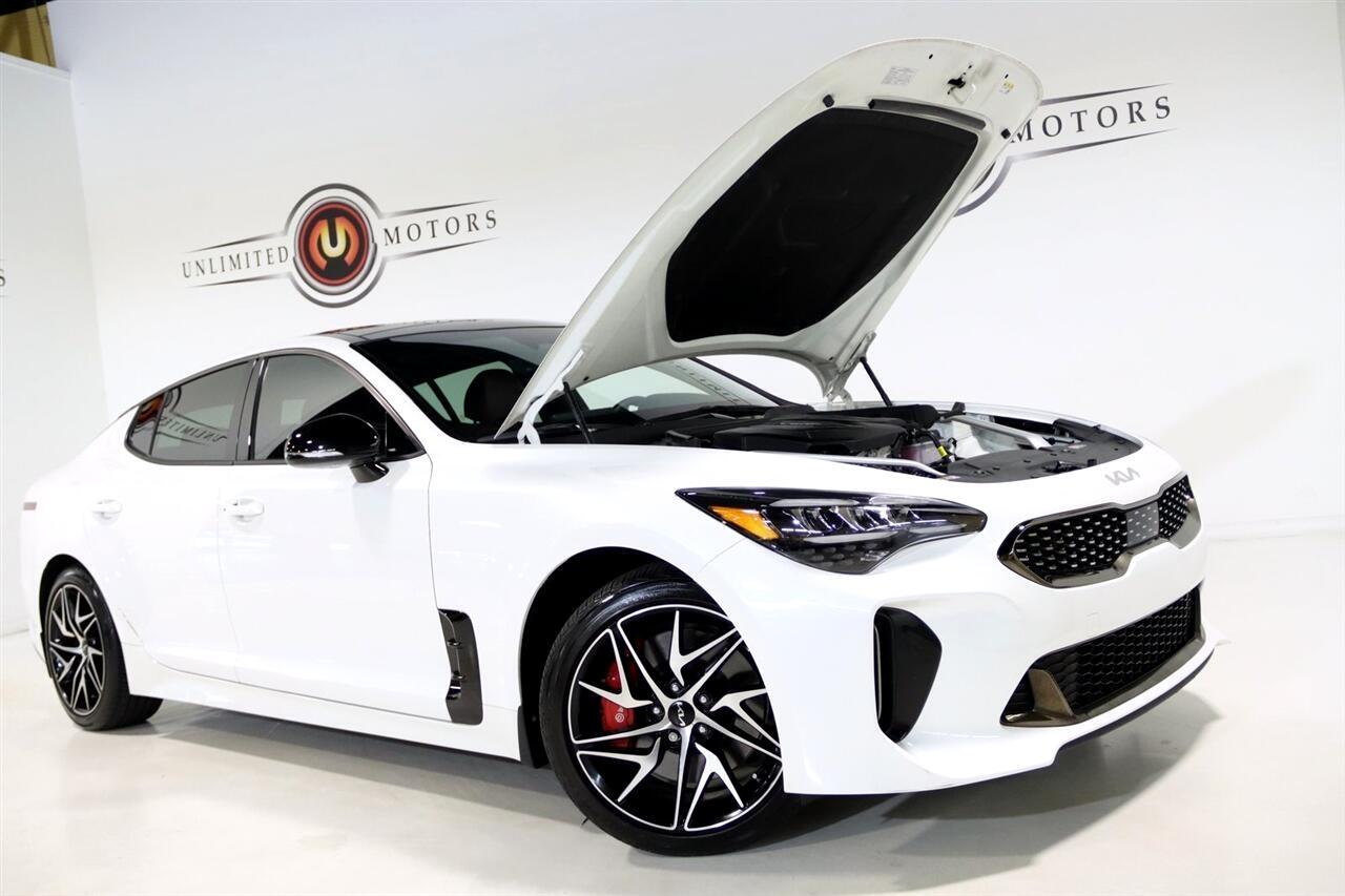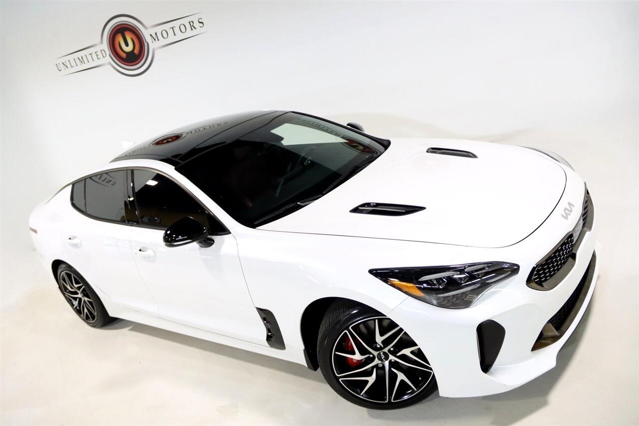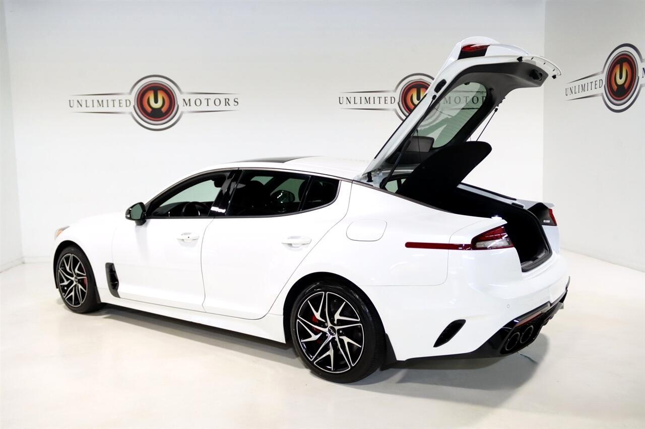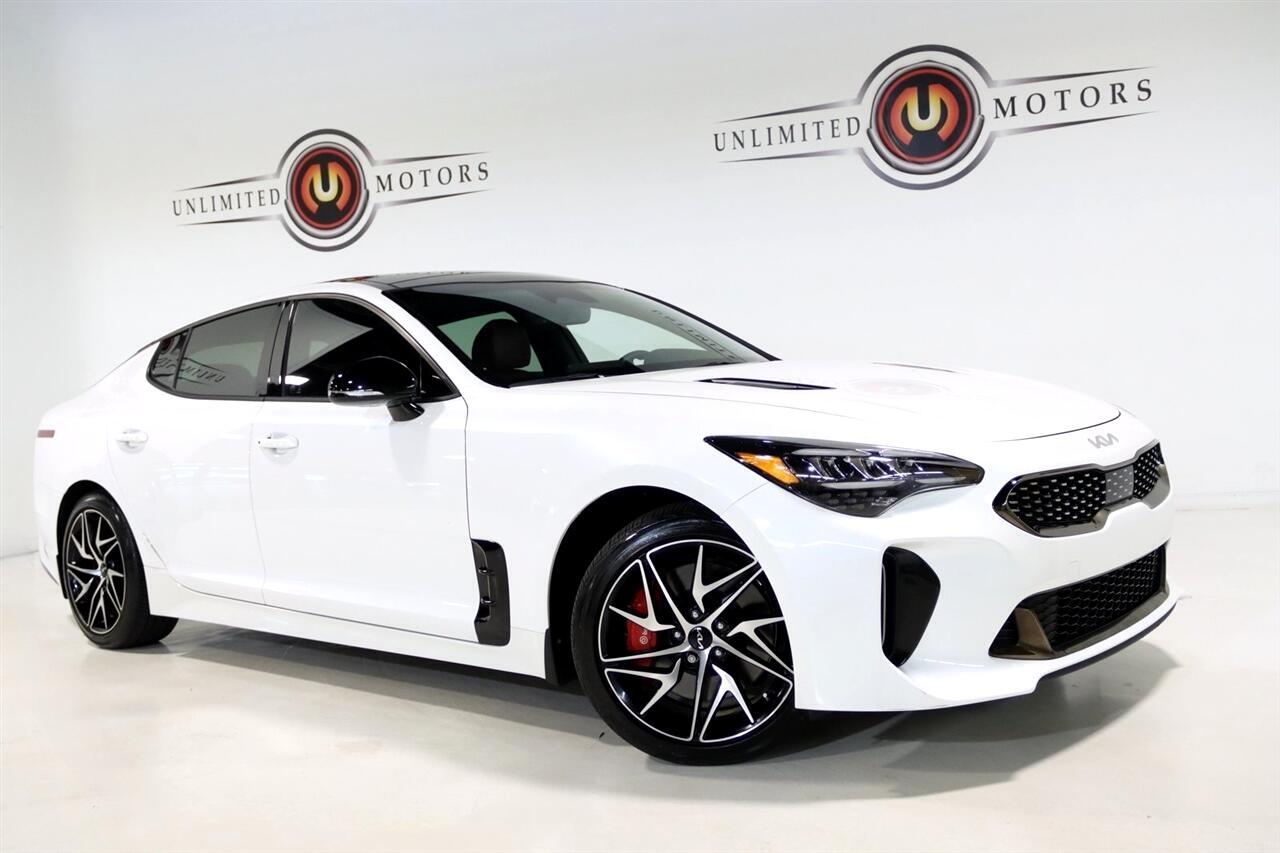 Navigation, Bluetooth, Back Up Camera, Sun/Moon Roof, Touch Screen, 4-Wheel Disc Brakes, 8-Way Power Adjustable Passenger Seat, 9 Speakers, ABS brakes, Air Conditioning, Alloy wheels, AM/FM radio: SiriusXM, Anti-whiplash front head restraints, Apple CarPlay & Android Auto, Auto High-beam Headlights, Auto-dimming Rear-View mirror, Automatic temperature control, Black Exhaust Tips, Black Exterior Mirrors, Black Fender Garnish, Brake assist, Brembo Brakes, Bumpers: body-color, Carbon Fiber Interior Trim, Carpeted Floor Mat, Delay-off headlights, Driver door bin, Driver vanity mirror, Dual front impact airbags, Dual front side impact airbags, Electronic Stability Control, Emergency communication system, Exterior Parking Camera Rear, Four wheel independent suspension, Front anti-roll bar, Front Bucket Seats, Front Center Armrest, Front dual zone A/C, Front reading lights, Fully automatic headlights, GT-Line Apex Special Edition Package, Heated door mirrors, Heated Front Bucket Seats, Heated front seats, Illuminated entry, Knee airbag, Leather Seat Trim, Low tire pressure warning, Navigation System, Occupant sensing airbag, Outside temperature display, Overhead airbag, Overhead console, Panic alarm, Passenger door bin, Passenger vanity mirror, Power door mirrors, Power driver seat, Power steering, Power Tilt & Slide Sunroof w/One-Touch, Power windows, Radio: AM/FM/MP3/HD Audio System, Radio: harmon/kardon AM/FM/MP3/HD Audio System, Rain sensing wipers, Rear air conditioning, Rear anti-roll bar, Rear seat center armrest, Rear window defroster, Red Interior Color Package, Red Leather Seat Trim, Remote keyless entry, Seat Back Cargo Tray, Security system, Smart Key w/ Push Button and Remote Start, Speed control, Speed-Sensitive Wipers, Split folding rear seat, Sport steering wheel, Steering wheel mounted audio controls, Sun & Sound Package, Tachometer, Telescoping steering wheel, Tilt steering wheel, Traction control, Trip computer, Turn signal indicator mirrors, Variably intermittent wipers, Wheels: 8.0J x 18 Vertex Alloy. CARFAX One-Owner. Clean CARFAX. 22/32 City/Highway MPG Odometer is 21573 miles below market average! Priced below KBB Fair Purchase Price!2023 Snow White Pearl Kia 4D Sedan Stinger GT-Line RWD 8-Speed Automatic I4Visit our website www.iumotors.com to view 100s of newer vehicles, more pictures and info, or to apply for financing. Rates are incredibly low for approved credit. We offer extended warranties, protection packages, and insurance. We assure you the best experience at any of our 4 locations and unbeatable prices and quality. At Unlimited Motors we believe in MARKET VALUE PRICING. We use real-time Internet price comparisons to constantly adjust prices to provide ALL BUYERS The BEST PRICE possible. We do not mark them up, to mark them down! Our entire team is committed to helping you buy a car the way we would want to buy a car! We utilize state-of-the-art technology to constantly monitor pricing trends to offer our shoppers the best competitive pricing, value, and experience. We sell and service all makes and models of Pre-owned / Used Vehicles Used Cars, Used Trucks, Used Sport Utility, Lamborghini, Ferrari, Bentley, Rolls Royce, McLaren, Maserati, Ford, Chevrolet/Chevy, Honda, Toyota, Porsche, Land Rover, Jaguar, INFINITI, Audi, Nissan, Mazda, Hyundai, Chrysler, Jeep, Dodge, Ram, SRT, Mitsubishi, Lexus, Kia, Volkswagen, Mini, BMW, Mercedes, Fiat, Volvo, GMC, Cadillac, Lincoln as well as other brands. Proudly serving these areas of Indianapolis, Fishers, Carmel, Noblesville, Greenwood, Avon, Plainfield, Zionsville, & Brownsburg, Indiana, Midwest. We also serve the entire nation with our seamless and easy online purchasing process, and offer shipping nationwide.Advertised prices DO NOT include Sales Tax, Dealer Fees, Title Processing Charges, and Dealer Pre-installed Products.