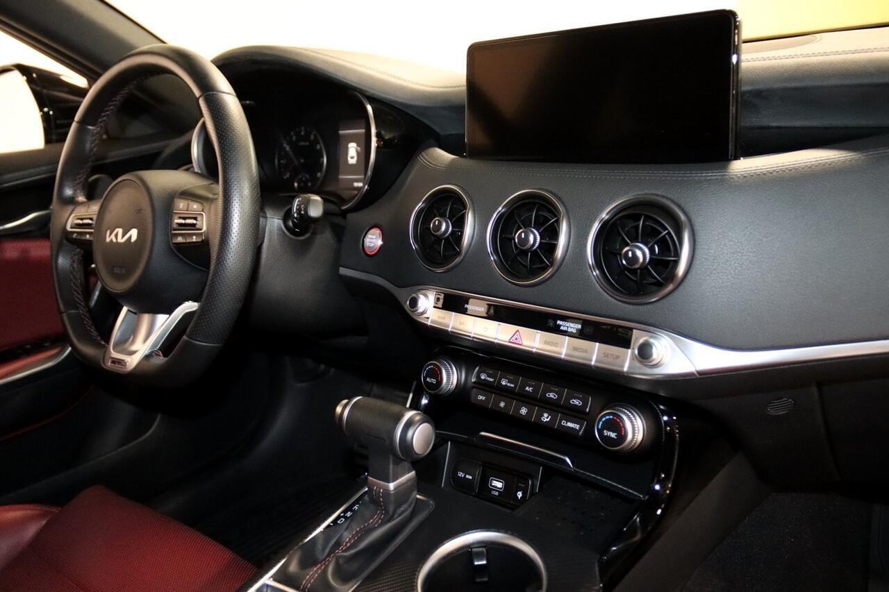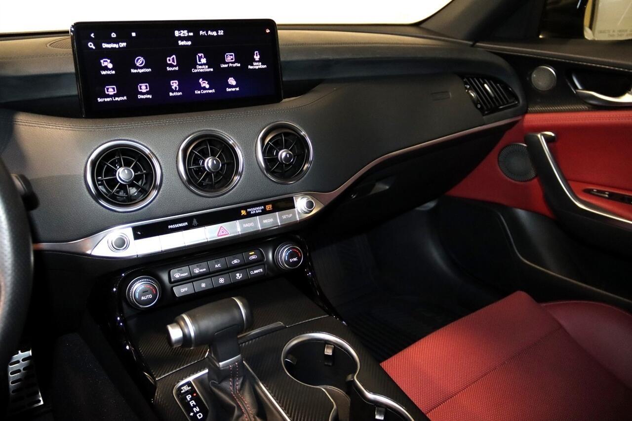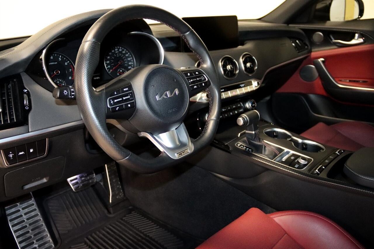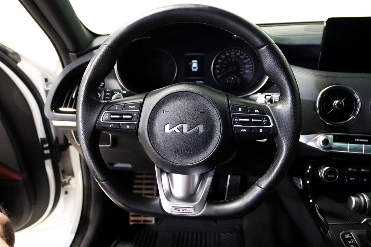 Navigation, Bluetooth, Back Up Camera, Sun/Moon Roof, Touch Screen, 4-Wheel Disc Brakes, 8-Way Power Adjustable Passenger Seat, 9 Speakers, ABS brakes, Air Conditioning, Alloy wheels, AM/FM radio: SiriusXM, Anti-whiplash front head restraints, Apple CarPlay & Android Auto, Auto High-beam Headlights, Auto-dimming Rear-View mirror, Automatic temperature control, Black Exhaust Tips, Black Exterior Mirrors, Black Fender Garnish, Brake assist, Brembo Brakes, Bumpers: body-color, Carbon Fiber Interior Trim, Carpeted Floor Mat, Delay-off headlights, Driver door bin, Driver vanity mirror, Dual front impact airbags, Dual front side impact airbags, Electronic Stability Control, Emergency communication system, Exterior Parking Camera Rear, Four wheel independent suspension, Front anti-roll bar, Front Bucket Seats, Front Center Armrest, Front dual zone A/C, Front reading lights, Fully automatic headlights, GT-Line Apex Special Edition Package, Heated door mirrors, Heated Front Bucket Seats, Heated front seats, Illuminated entry, Knee airbag, Leather Seat Trim, Low tire pressure warning, Navigation System, Occupant sensing airbag, Outside temperature display, Overhead airbag, Overhead console, Panic alarm, Passenger door bin, Passenger vanity mirror, Power door mirrors, Power driver seat, Power steering, Power Tilt & Slide Sunroof w/One-Touch, Power windows, Radio: AM/FM/MP3/HD Audio System, Radio: harmon/kardon AM/FM/MP3/HD Audio System, Rain sensing wipers, Rear air conditioning, Rear anti-roll bar, Rear seat center armrest, Rear window defroster, Red Interior Color Package, Red Leather Seat Trim, Remote keyless entry, Seat Back Cargo Tray, Security system, Smart Key w/ Push Button and Remote Start, Speed control, Speed-Sensitive Wipers, Split folding rear seat, Sport steering wheel, Steering wheel mounted audio controls, Sun & Sound Package, Tachometer, Telescoping steering wheel, Tilt steering wheel, Traction control, Trip computer, Turn signal indicator mirrors, Variably intermittent wipers, Wheels: 8.0J x 18 Vertex Alloy. CARFAX One-Owner. Clean CARFAX. 22/32 City/Highway MPG Odometer is 21573 miles below market average! Priced below KBB Fair Purchase Price!2023 Snow White Pearl Kia 4D Sedan Stinger GT-Line RWD 8-Speed Automatic I4Visit our website www.iumotors.com to view 100s of newer vehicles, more pictures and info, or to apply for financing. Rates are incredibly low for approved credit. We offer extended warranties, protection packages, and insurance. We assure you the best experience at any of our 4 locations and unbeatable prices and quality. At Unlimited Motors we believe in MARKET VALUE PRICING. We use real-time Internet price comparisons to constantly adjust prices to provide ALL BUYERS The BEST PRICE possible. We do not mark them up, to mark them down! Our entire team is committed to helping you buy a car the way we would want to buy a car! We utilize state-of-the-art technology to constantly monitor pricing trends to offer our shoppers the best competitive pricing, value, and experience. We sell and service all makes and models of Pre-owned / Used Vehicles Used Cars, Used Trucks, Used Sport Utility, Lamborghini, Ferrari, Bentley, Rolls Royce, McLaren, Maserati, Ford, Chevrolet/Chevy, Honda, Toyota, Porsche, Land Rover, Jaguar, INFINITI, Audi, Nissan, Mazda, Hyundai, Chrysler, Jeep, Dodge, Ram, SRT, Mitsubishi, Lexus, Kia, Volkswagen, Mini, BMW, Mercedes, Fiat, Volvo, GMC, Cadillac, Lincoln as well as other brands. Proudly serving these areas of Indianapolis, Fishers, Carmel, Noblesville, Greenwood, Avon, Plainfield, Zionsville, & Brownsburg, Indiana, Midwest. We also serve the entire nation with our seamless and easy online purchasing process, and offer shipping nationwide.Advertised prices DO NOT include Sales Tax, Dealer Fees, Title Processing Charges, and Dealer Pre-installed Products.
