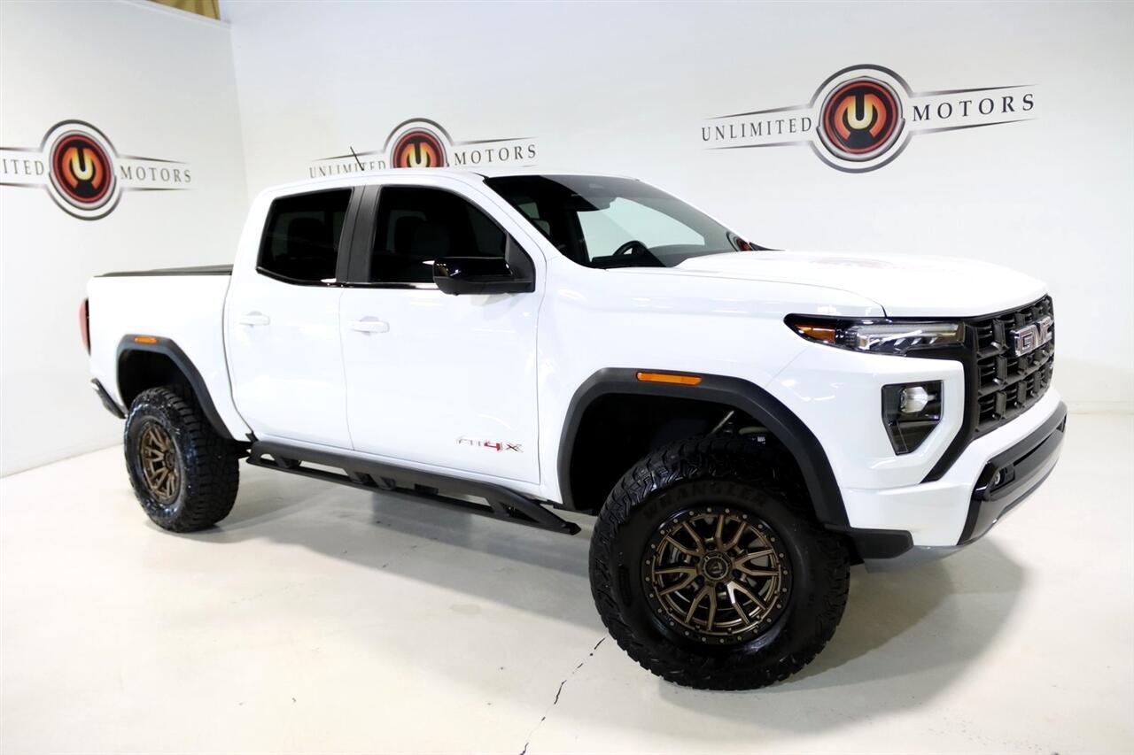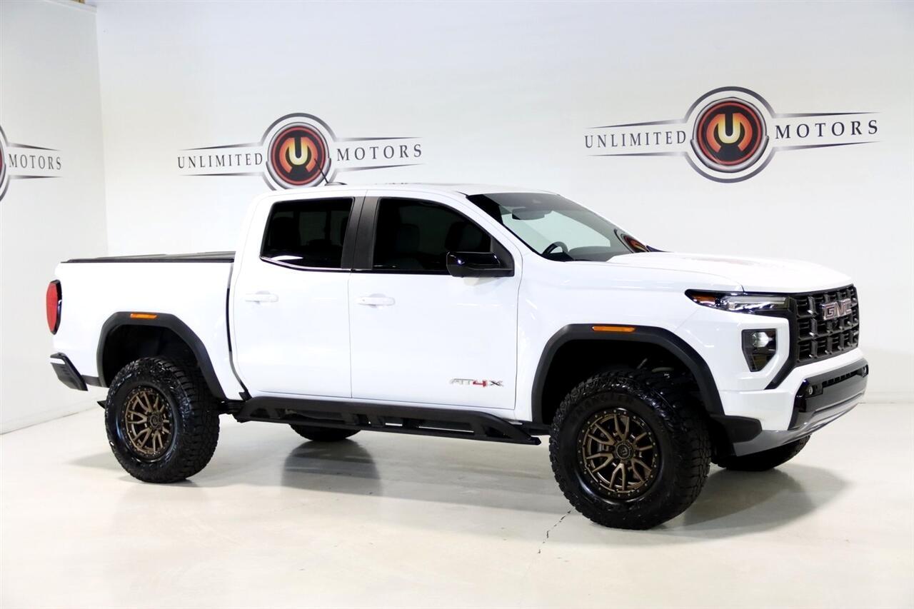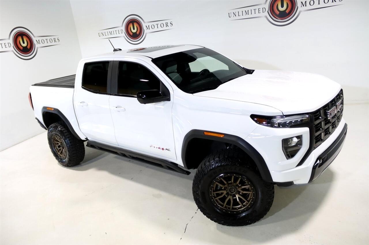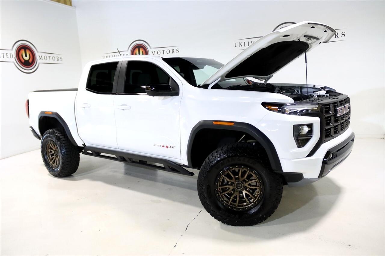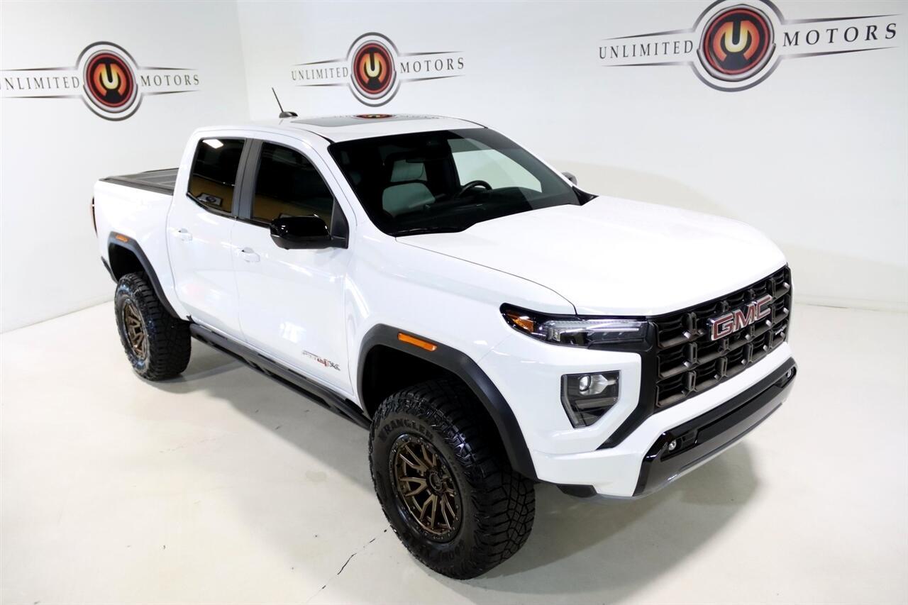 Navigation, Bluetooth, Back Up Camera, Sun/Moon Roof, Towing, Touch Screen, 120-Volt Bed Mounted Power Outlet, 2 1st Row USB Charge/Data Ports, 2 Rear USB Ports in Center Console (Charge-Only), 220 Amps Alternator, 3.42 Rear Axle Ratio, 4-Wheel Disc Brakes, 6-Way Power Passenger Seat Adjuster, 7 Speakers, 8-Way Power Driver Seat Adjuster, ABS brakes, Adaptive Cruise Control, Air Conditioning, Alloy wheels, AM/FM radio: SiriusXM, Apple CarPlay/Android Auto, Auto High-beam Headlights, Auto-dimming Rear-View mirror, Automatic Emergency Braking, Automatic Stop/Start, Automatic temperature control, Black Badges (LPO), Blind Zone Steering Assist, Brake assist, Bumpers: body-color, Canyon Pro Safety, Compass, Delay-off headlights, Driver & Front Passenger Illuminated Visors, Driver & Front Passenger Ventilated Seats, Driver door bin, Driver Memory, Driver Mode Selector, Driver Seatback Map Pocket, Driver vanity mirror, Driver-Selectable Full-Locking Front Differential, Driver-Selectable Full-Locking Rear Differential, Dual front impact airbags, Dual front side impact airbags, Dual-Zone Automatic Air Conditioning, Electronic Stability Control, Engine Block Heater, EZ-Lift & Lower Tailgate, Following Distance Indicator, Forward Collision Alert, Front anti-roll bar, Front Bucket Seats, Front Center Armrest, Front dual zone A/C, Front fog lights, Front LED Fog Lamps, Front Passenger Seatback Map Pocket, Front Pedestrian & Bicyclist Braking, Front reading lights, Front wheel independent suspension, HD Surround Vision, Heads-Up Display, Heated door mirrors, Heated Driver & Front Passenger Seats, Heated front seats, Heated Power-Adjustable Outside Mirrors, Heated Steering Wheel, Heated steering wheel, Illuminated entry, Inside Rear-View Auto-Dimming Mirror, Integrated Trailer Brake Controller, IntelliBeam Automatic High Beam On/Off, Interior Overhead Courtesy Light w/Dual Reading Lamp, Lane Keep Assist w/Lane Departure Warning, Low tire pressure warning, Manual Rear-Sliding Window, Memory seat, Multicolor 6.3 Diagonal Head-Up Display, MultiStow Tailgate, Navigation System, Occupant sensing airbag, Outside temperature display, Overhead airbag, Overhead console, Panic alarm, Passenger door bin, Passenger vanity mirror, Perforated Leather-Appointed Seat Trim, Power door mirrors, Power Driver Lumbar Control Seat Adjuster, Power driver seat, Power Inner Sliding Glass Sunroof w/Manual Shade, Power Passenger Lumbar Control Seat Adjuster, Power passenger seat, Power steering, Power windows, Preferred Equipment Group 4TX, Premium 7-Speaker Bose Sound System, Radio data system, Radio: 11.3 Diagonal Premium GMC Infotainment Sys, Rear Center Fold-Down Armrest w/2 Cupholders, Rear Cross Traffic Braking, Rear of Console 120-Volt Power Outlet, Rear Pedestrian Alert, Rear reading lights, Rear seat center armrest, Rear step bumper, Rear window defroster, Rear-Window Electric Defogger, Remote keyless entry, Remote Vehicle Starter System, Safety Alert Seat, Security system, SiriusXM w/360L, Speed control, Speed-sensing steering, Split folding rear seat, Spray-On Bedliner, Steering wheel mounted audio controls, Stop/Start System Disable Button Engine Control, Tachometer, Tailgate Keyed Cylinder Lock, Telescoping steering wheel, Tilt & Telescopic Manual Steering Column, Tilt steering wheel, Traction control, Trailering App System, Trailering Package, Trip computer, Ultrasonic Rear Park Assist, Variably intermittent wipers, Ventilated front seats, Wheels: 17 x 8 Black High Gloss Machined Finish, Wireless Apple CarPlay/Wireless Android Auto, Wireless Charging. Clean CARFAX.2023 Summit White GMC 4D Crew Cab Canyon AT4X 4WD 8-Speed Automatic 2.7L TurboVisit our website www.iumotors.com to view 100s of newer vehicles, more pictures and info, or to apply for financing. Rates are incredibly low for approved credit. We offer extended warranties, protection packages, and insurance. We assure you the best experience at any of our 4 locations and u