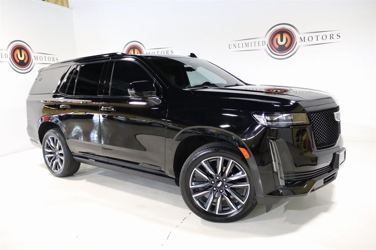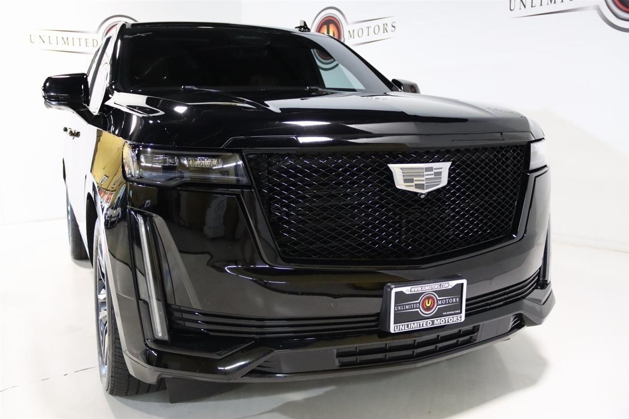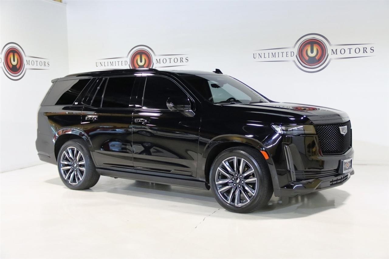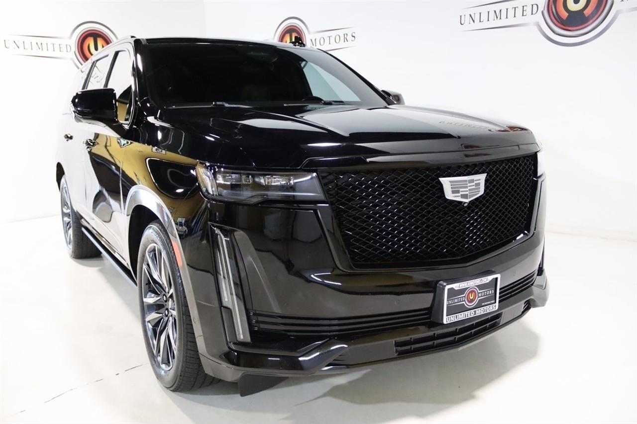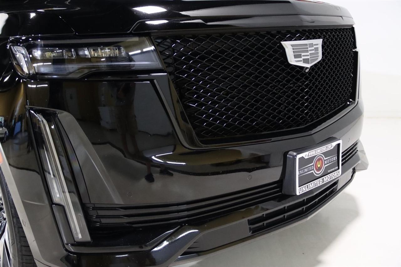 Navigation, Bluetooth, Back Up Camera, Panoramic Roof, 3rd Row, Heated Seats, Touch Screen, 16.9 Diagonal OLED Infotainment Screen, 19 Speakers, 2-Presets Memory For Driver Seat Adjuster, 3.23 Axle Ratio, 3rd row seats: split-bench, 4-Wheel Disc Brakes, 8-Way Power Driver Seat Adjuster, 8-Way Power Front Passenger Seat Adjuster, ABS brakes, Adaptive Cruise Control, Adaptive suspension, Air Conditioning, Air Ride Adaptive Suspension, AKG Studio 19-Speaker Audio System, Alloy wheels, AM/FM radio: SiriusXM with 360L, Apple CarPlay/Android Auto, Audio memory, Auto High-beam Headlights, Auto tilt-away steering wheel, Auto-dimming door mirrors, Auto-dimming Rear-View mirror, Automatic Seat Belt Tightening, Automatic Stop/Start, Automatic temperature control, Body-Color Door Handles, Brake assist, Bumpers: body-color, Compass, Delay-off headlights, Door Lock & Latch Shields, Driver door bin, Driver vanity mirror, Dual front impact airbags, Dual front side impact airbags, Electronic Limited-Slip Differential, Electronic Stability Control, Emergency communication system: OnStar and Cadillac connected services capable, Enhanced Automatic Emergency Braking, Enhanced Automatic Parking Assist, Four wheel independent suspension, Front anti-roll bar, Front Bucket Seats, Front Center Armrest w/Storage, Front dual zone A/C, Front reading lights, Fully automatic headlights, Garage door transmitter, Glass Breakage Sensor, Gloss Black Escalade Nameplate (LPO), HD Radio, Heads-Up Display, Heated & Ventilated Driver & Front Passenger Seats, Heated door mirrors, Heated Driver & Front Passenger Seats, Heated front seats, Heated rear seats, Heated steering wheel, Hitch Guidance w/Hitch View, Illuminated entry, Illuminating Front & Rear Sill Plates, Integrated Trailer Brake Controller, Leather Seating Surfaces w/Precision Perf Inserts, Leather steering wheel, Low tire pressure warning, Magnetic Ride Control Suspension, Memory seat, Navigation System, Not Equipped w/4-Way Driver & Fr Pass Pwr Lumbar, Not Equipped w/Steering Column Lock, Not Equipped w/Super Cruise, Occupant sensing airbag, Outside temperature display, Overhead airbag, Overhead console, Panic alarm, Passenger door bin, Passenger vanity mirror, Power door mirrors, Power driver seat, Power Liftgate, Power moonroof, Power Panoramic Tilt-Sliding Sunroof, Power passenger seat, Power steering, Power windows, Power-Retractable Assist Steps, Preferred Equipment Group 1SC, Radio data system, Radio: AM/FM/SiriusXM w/Navigation, Rain sensing wipers, Rear air conditioning, Rear anti-roll bar, Rear Camera Mirror, Rear Camera Mirror Washer, Rear Cross Traffic Alert, Rear reading lights, Rear window defroster, Rear window wiper, Reconfigurable Full-Color Head-Up Display, Remote keyless entry, Reverse Automatic Braking, Roof rack: rails only, Running Board Assist Steps, Security system, SiriusXM w/360L, Smart Trailer Integration Indicator, Soft Closing Front & Rear Doors, Speed control, Split folding rear seat, Spoiler, Start/Stop System Disable Button, Steering wheel memory, Steering wheel mounted audio controls, Super Cruise, Tachometer, Teen Driver, Telescoping steering wheel, Theft-Deterrent Alarm System, Tilt steering wheel, Touring Package, Traction control, Trailer Side Blind Zone Alert, Trip computer, Turn signal indicator mirrors, Variably intermittent wipers, Vehicle Inclination Sensor, Vehicle Interior Movement Sensor, Ventilated front seats, Voltmeter, Wheels: 22 12-Spoke Polished Alloy, Wireless Apple CarPlay/Wireless Android Auto.2022 Black Raven Cadillac 4D Sport Utility Escalade Sport 4WD 10-Speed Automatic 6.2L V8Visit our website www.iumotors.com to view 100s of newer vehicles, more pictures and info, or to apply for financing. Rates are incredibly low for approved credit. We offer extended warranties, protection packages, and insurance. We assure you the best experience at any of our 4 locations and unbeatable prices and quality. At Unlimited Motors we believe in