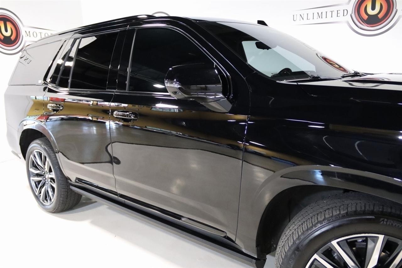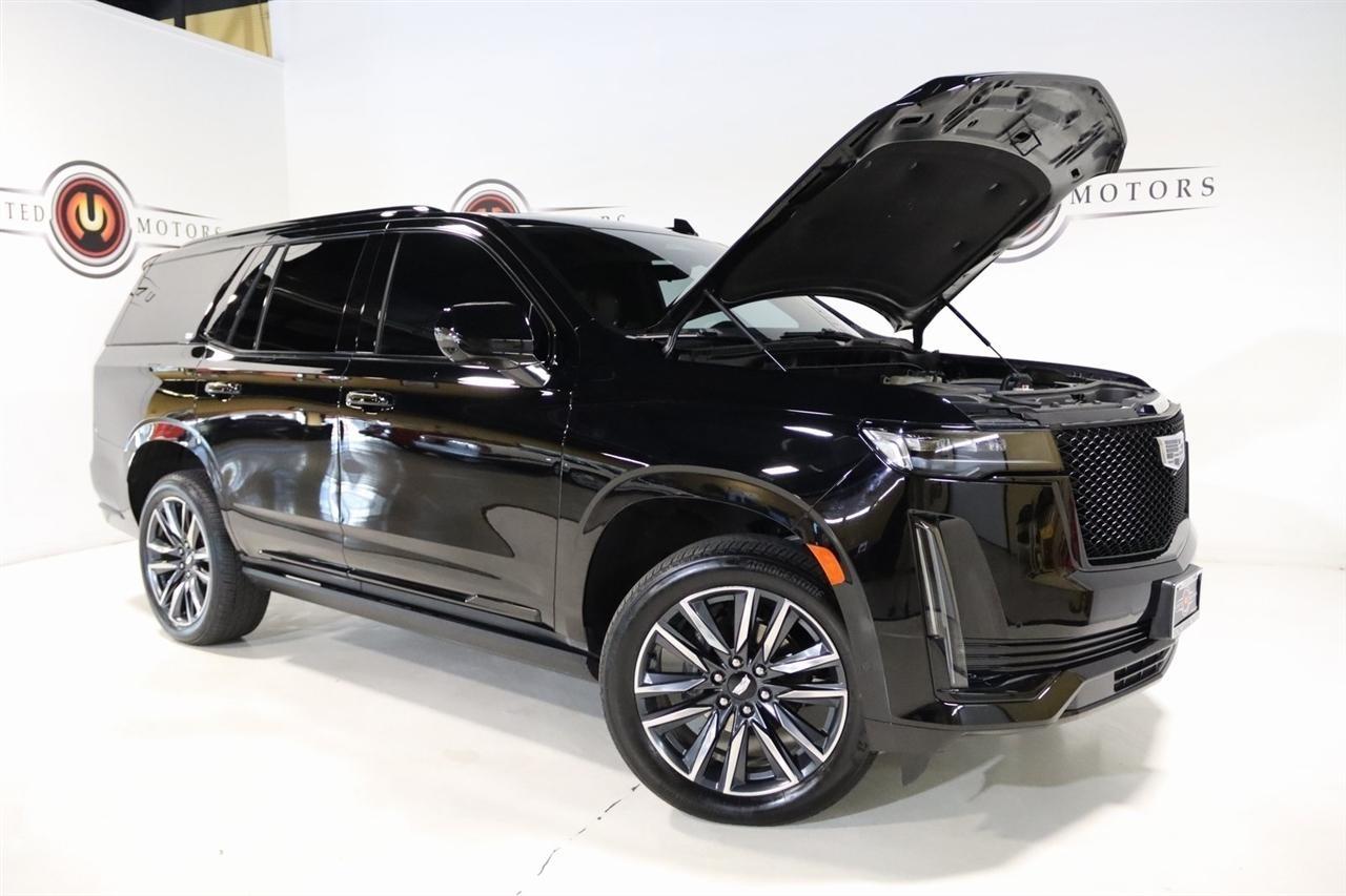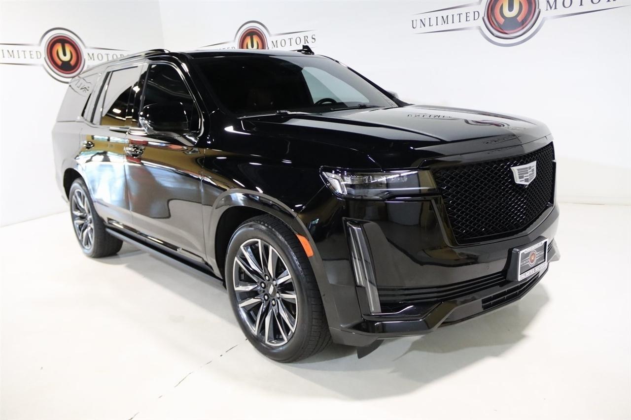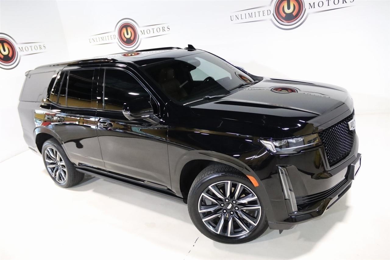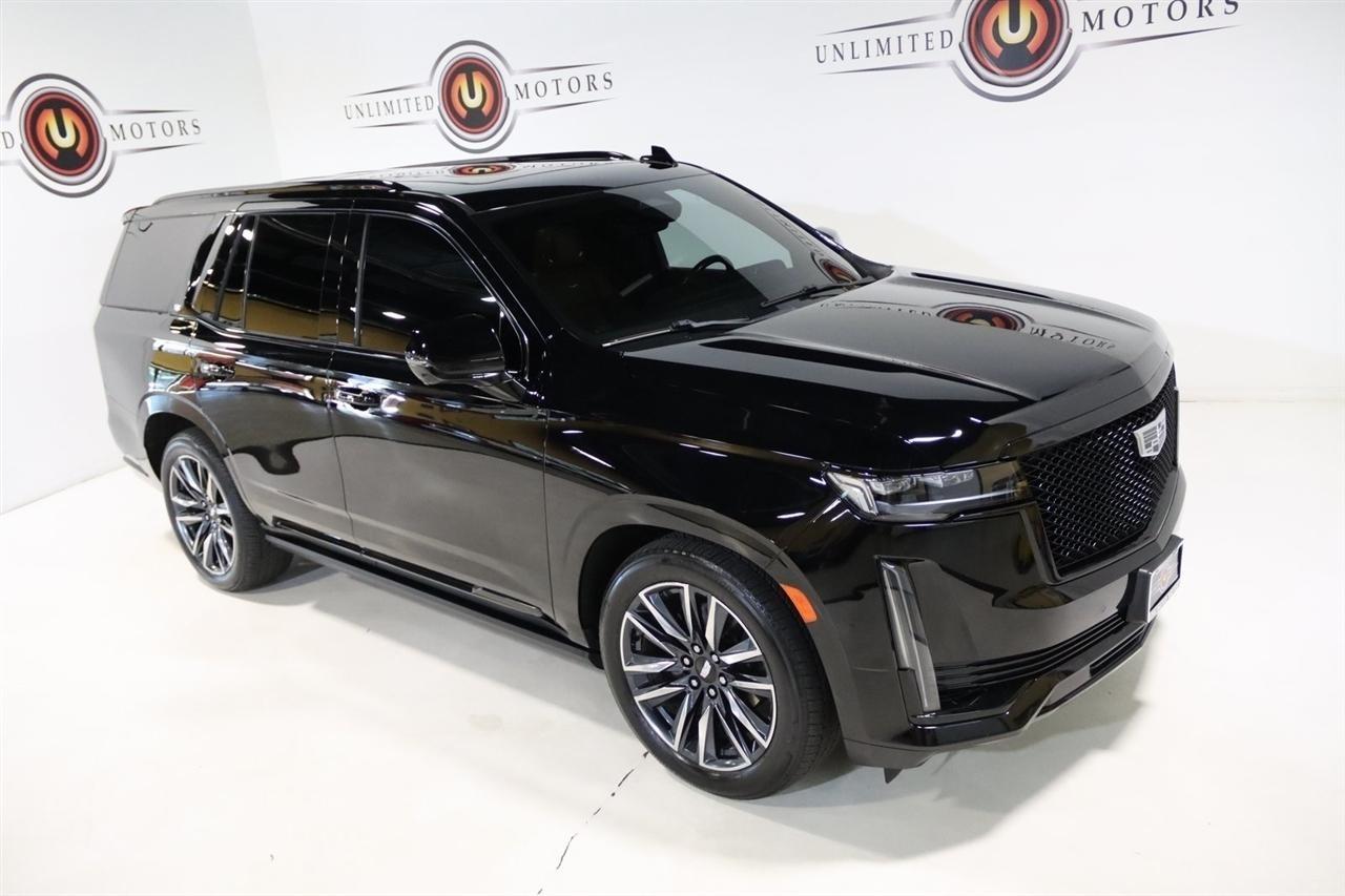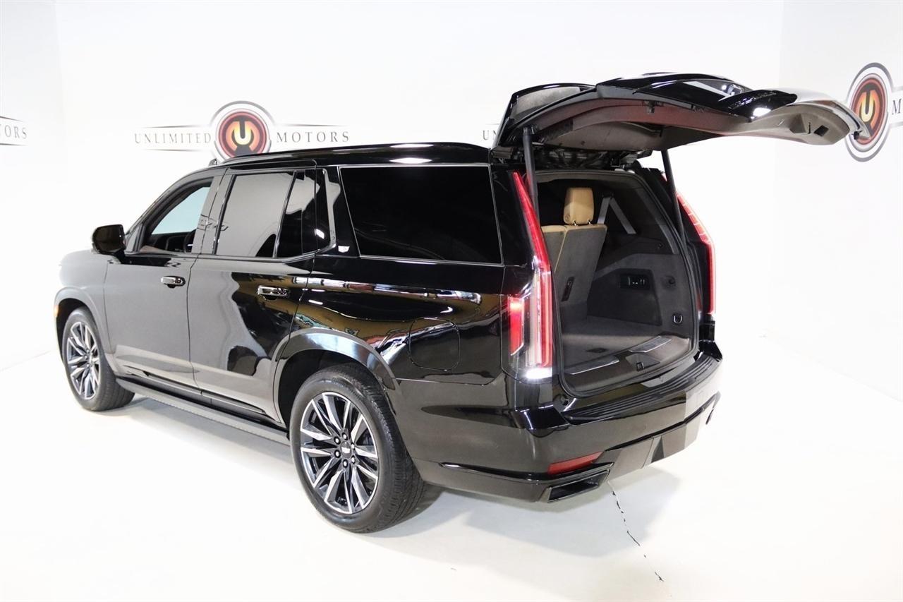 Navigation, Bluetooth, Back Up Camera, Panoramic Roof, 3rd Row, Heated Seats, Touch Screen, 16.9 Diagonal OLED Infotainment Screen, 19 Speakers, 2-Presets Memory For Driver Seat Adjuster, 3.23 Axle Ratio, 3rd row seats: split-bench, 4-Wheel Disc Brakes, 8-Way Power Driver Seat Adjuster, 8-Way Power Front Passenger Seat Adjuster, ABS brakes, Adaptive Cruise Control, Adaptive suspension, Air Conditioning, Air Ride Adaptive Suspension, AKG Studio 19-Speaker Audio System, Alloy wheels, AM/FM radio: SiriusXM with 360L, Apple CarPlay/Android Auto, Audio memory, Auto High-beam Headlights, Auto tilt-away steering wheel, Auto-dimming door mirrors, Auto-dimming Rear-View mirror, Automatic Seat Belt Tightening, Automatic Stop/Start, Automatic temperature control, Body-Color Door Handles, Brake assist, Bumpers: body-color, Compass, Delay-off headlights, Door Lock & Latch Shields, Driver door bin, Driver vanity mirror, Dual front impact airbags, Dual front side impact airbags, Electronic Limited-Slip Differential, Electronic Stability Control, Emergency communication system: OnStar and Cadillac connected services capable, Enhanced Automatic Emergency Braking, Enhanced Automatic Parking Assist, Four wheel independent suspension, Front anti-roll bar, Front Bucket Seats, Front Center Armrest w/Storage, Front dual zone A/C, Front reading lights, Fully automatic headlights, Garage door transmitter, Glass Breakage Sensor, Gloss Black Escalade Nameplate (LPO), HD Radio, Heads-Up Display, Heated & Ventilated Driver & Front Passenger Seats, Heated door mirrors, Heated Driver & Front Passenger Seats, Heated front seats, Heated rear seats, Heated steering wheel, Hitch Guidance w/Hitch View, Illuminated entry, Illuminating Front & Rear Sill Plates, Integrated Trailer Brake Controller, Leather Seating Surfaces w/Precision Perf Inserts, Leather steering wheel, Low tire pressure warning, Magnetic Ride Control Suspension, Memory seat, Navigation System, Not Equipped w/4-Way Driver & Fr Pass Pwr Lumbar, Not Equipped w/Steering Column Lock, Not Equipped w/Super Cruise, Occupant sensing airbag, Outside temperature display, Overhead airbag, Overhead console, Panic alarm, Passenger door bin, Passenger vanity mirror, Power door mirrors, Power driver seat, Power Liftgate, Power moonroof, Power Panoramic Tilt-Sliding Sunroof, Power passenger seat, Power steering, Power windows, Power-Retractable Assist Steps, Preferred Equipment Group 1SC, Radio data system, Radio: AM/FM/SiriusXM w/Navigation, Rain sensing wipers, Rear air conditioning, Rear anti-roll bar, Rear Camera Mirror, Rear Camera Mirror Washer, Rear Cross Traffic Alert, Rear reading lights, Rear window defroster, Rear window wiper, Reconfigurable Full-Color Head-Up Display, Remote keyless entry, Reverse Automatic Braking, Roof rack: rails only, Running Board Assist Steps, Security system, SiriusXM w/360L, Smart Trailer Integration Indicator, Soft Closing Front & Rear Doors, Speed control, Split folding rear seat, Spoiler, Start/Stop System Disable Button, Steering wheel memory, Steering wheel mounted audio controls, Super Cruise, Tachometer, Teen Driver, Telescoping steering wheel, Theft-Deterrent Alarm System, Tilt steering wheel, Touring Package, Traction control, Trailer Side Blind Zone Alert, Trip computer, Turn signal indicator mirrors, Variably intermittent wipers, Vehicle Inclination Sensor, Vehicle Interior Movement Sensor, Ventilated front seats, Voltmeter, Wheels: 22 12-Spoke Polished Alloy, Wireless Apple CarPlay/Wireless Android Auto.2022 Black Raven Cadillac 4D Sport Utility Escalade Sport 4WD 10-Speed Automatic 6.2L V8Visit our website www.iumotors.com to view 100s of newer vehicles, more pictures and info, or to apply for financing. Rates are incredibly low for approved credit. We offer extended warranties, protection packages, and insurance. We assure you the best experience at any of our 4 locations and unbeatable prices and quality. At Unlimited Motors we believe in
