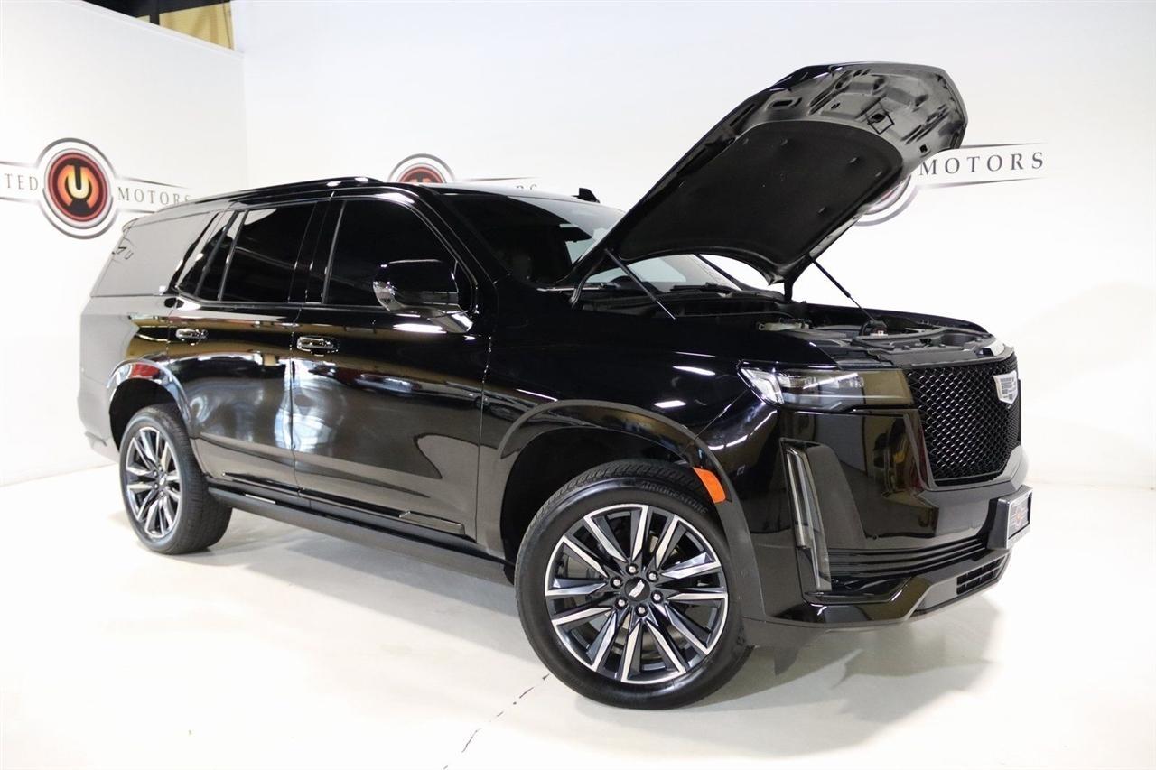 Navigation, Bluetooth, Back Up Camera, Panoramic Roof, 3rd Row, Heated Seats, Touch Screen, 16.9 Diagonal OLED Infotainment Screen, 19 Speakers, 2-Presets Memory For Driver Seat Adjuster, 3.23 Axle Ratio, 3rd row seats: split-bench, 4-Wheel Disc Brakes, 8-Way Power Driver Seat Adjuster, 8-Way Power Front Passenger Seat Adjuster, ABS brakes, Adaptive Cruise Control, Adaptive suspension, Air Conditioning, Air Ride Adaptive Suspension, AKG Studio 19-Speaker Audio System, Alloy wheels, AM/FM radio: SiriusXM with 360L, Apple CarPlay/Android Auto, Audio memory, Auto High-beam Headlights, Auto tilt-away steering wheel, Auto-dimming door mirrors, Auto-dimming Rear-View mirror, Automatic Seat Belt Tightening, Automatic Stop/Start, Automatic temperature control, Body-Color Door Handles, Brake assist, Bumpers: body-color, Compass, Delay-off headlights, Door Lock & Latch Shields, Driver door bin, Driver vanity mirror, Dual front impact airbags, Dual front side impact airbags, Electronic Limited-Slip Differential, Electronic Stability Control, Emergency communication system: OnStar and Cadillac connected services capable, Enhanced Automatic Emergency Braking, Enhanced Automatic Parking Assist, Four wheel independent suspension, Front anti-roll bar, Front Bucket Seats, Front Center Armrest w/Storage, Front dual zone A/C, Front reading lights, Fully automatic headlights, Garage door transmitter, Glass Breakage Sensor, Gloss Black Escalade Nameplate (LPO), HD Radio, Heads-Up Display, Heated & Ventilated Driver & Front Passenger Seats, Heated door mirrors, Heated Driver & Front Passenger Seats, Heated front seats, Heated rear seats, Heated steering wheel, Hitch Guidance w/Hitch View, Illuminated entry, Illuminating Front & Rear Sill Plates, Integrated Trailer Brake Controller, Leather Seating Surfaces w/Precision Perf Inserts, Leather steering wheel, Low tire pressure warning, Magnetic Ride Control Suspension, Memory seat, Navigation System, Not Equipped w/4-Way Driver & Fr Pass Pwr Lumbar, Not Equipped w/Steering Column Lock, Not Equipped w/Super Cruise, Occupant sensing airbag, Outside temperature display, Overhead airbag, Overhead console, Panic alarm, Passenger door bin, Passenger vanity mirror, Power door mirrors, Power driver seat, Power Liftgate, Power moonroof, Power Panoramic Tilt-Sliding Sunroof, Power passenger seat, Power steering, Power windows, Power-Retractable Assist Steps, Preferred Equipment Group 1SC, Radio data system, Radio: AM/FM/SiriusXM w/Navigation, Rain sensing wipers, Rear air conditioning, Rear anti-roll bar, Rear Camera Mirror, Rear Camera Mirror Washer, Rear Cross Traffic Alert, Rear reading lights, Rear window defroster, Rear window wiper, Reconfigurable Full-Color Head-Up Display, Remote keyless entry, Reverse Automatic Braking, Roof rack: rails only, Running Board Assist Steps, Security system, SiriusXM w/360L, Smart Trailer Integration Indicator, Soft Closing Front & Rear Doors, Speed control, Split folding rear seat, Spoiler, Start/Stop System Disable Button, Steering wheel memory, Steering wheel mounted audio controls, Super Cruise, Tachometer, Teen Driver, Telescoping steering wheel, Theft-Deterrent Alarm System, Tilt steering wheel, Touring Package, Traction control, Trailer Side Blind Zone Alert, Trip computer, Turn signal indicator mirrors, Variably intermittent wipers, Vehicle Inclination Sensor, Vehicle Interior Movement Sensor, Ventilated front seats, Voltmeter, Wheels: 22 12-Spoke Polished Alloy, Wireless Apple CarPlay/Wireless Android Auto. Priced below KBB Fair Purchase Price!2022 Black Raven Cadillac 4D Sport Utility Escalade Sport 4WD 10-Speed Automatic 6.2L V8Visit our website www.iumotors.com to view 100s of newer vehicles, more pictures and info, or to apply for financing. Rates are incredibly low for approved credit. We offer extended warranties, protection packages, and insurance. We assure you the best experience at any of our 4 locations and unbeatable prices and qual