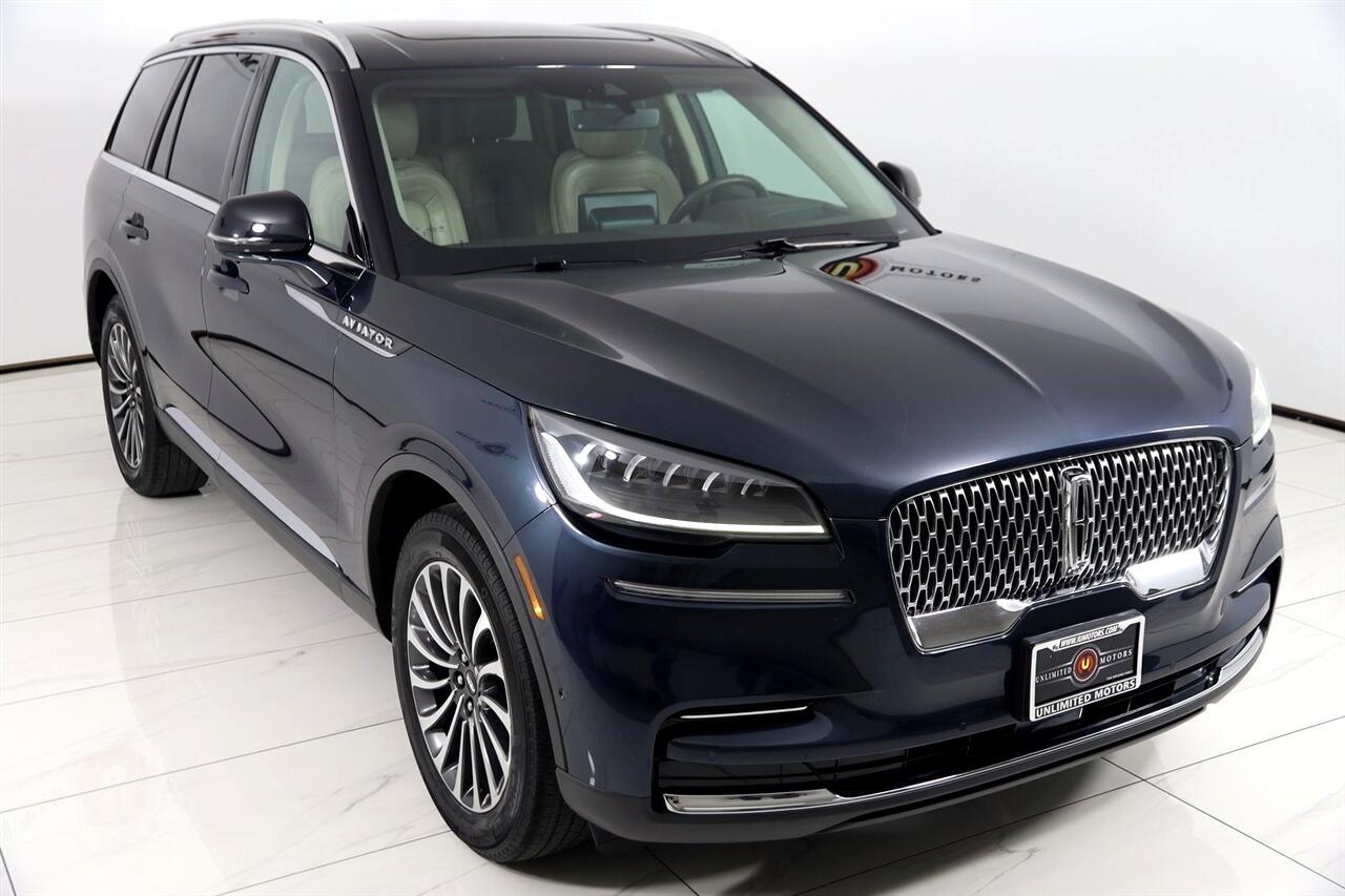 Navigation, Back Up Camera, Bluetooth, Panoramic Roof, Heated Seats, Touch Screen, Cooled Heats, Blind Spot, Heated Steering Wheel, Apple Play, Aviator Reserve, 4D Sport Utility, 3.0L V6, 10-Speed Automatic, AWD, Flight Blue Metallic Clearcoat, Sandstone Leather, Navigation System. CARFAX One-Owner. Priced below KBB Fair Purchase Price!2022 Flight Blue Metallic Clearcoat Lincoln 4D Sport Utility Aviator Reserve AWD 10-Speed Automatic 3.0L V6Visit our website www.iumotors.com to view 100s of newer vehicles, more pictures and info, or to apply for financing. Rates are incredibly low for approved credit. We offer extended warranties, protection packages, and insurance. We assure you the best experience at any of our 4 locations and unbeatable prices and quality. At Unlimited Motors we believe in MARKET VALUE PRICING. We use real-time Internet price comparisons to constantly adjust prices to provide ALL BUYERS The BEST PRICE possible. We do not mark them up, to mark them down! Our entire team is committed to helping you buy a car the way we would want to buy a car! We utilize state-of-the-art technology to constantly monitor pricing trends to offer our shoppers the best competitive pricing, value, and experience. We sell and service all makes and models of Pre-owned / Used Vehicles Used Cars, Used Trucks, Used Sport Utility, Lamborghini, Ferrari, Bentley, Rolls Royce, McLaren, Maserati, Ford, Chevrolet/Chevy, Honda, Toyota, Porsche, Land Rover, Jaguar, INFINITI, Audi, Nissan, Mazda, Hyundai, Chrysler, Jeep, Dodge, Ram, SRT, Mitsubishi, Lexus, Kia, Volkswagen, Mini, BMW, Mercedes, Fiat, Volvo, GMC, Cadillac, Lincoln as well as other brands. Proudly serving these areas of Indianapolis, Fishers, Carmel, Noblesville, Greenwood, Avon, Plainfield, Zionsville, & Brownsburg, Indiana, Midwest. We also serve the entire nation with our seamless and easy online purchasing process, and offer shipping nationwide.Advertised prices DO NOT include Sales Tax, Dealer Fees, Title Processing Charges, and Dealer Pre-installed Products.