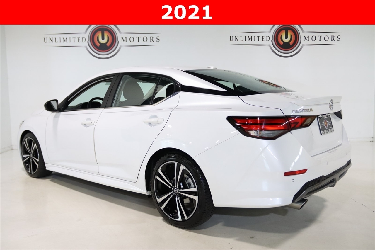 Bluetooth, Back Up Camera, Touch Screen, 18 Alloy Wheels, 4-Wheel Disc Brakes, 6 Speakers, ABS brakes, Air Conditioning, Alloy wheels, AM/FM radio: SiriusXM, Auto High-beam Headlights, Automatic temperature control, Blind Spot Warning, Brake assist, Bumpers: body-color, Carpeted Floor Mats w/Trunk Mat, Clear Rear Bumper Protector, Delay-off headlights, Door Sill Plates, Driver door bin, Driver vanity mirror, Dual front impact airbags, Dual front side impact airbags, Electronic Stability Control, Four wheel independent suspension, Front anti-roll bar, Front Bucket Seats, Front Center Armrest, Front dual zone A/C, Front fog lights, Front reading lights, Fully automatic headlights, Heated door mirrors, Illuminated entry, Knee airbag, Leather Shift Knob, Low tire pressure warning, NissanConnect featuring Apple CarPlay and Android Auto, Occupant sensing airbag, Outside temperature display, Overhead airbag, Overhead console, Panic alarm, Passenger door bin, Passenger vanity mirror, Power door mirrors, Power steering, Power windows, Radio data system, Radio: AM/FM w/RDS/MP3/Aux-In, Rear anti-roll bar, Rear Parking Sensors, Rear seat center armrest, Rear side impact airbag, Rear window defroster, Remote keyless entry, Security system, Speed control, Speed-sensing steering, Split folding rear seat, Spoiler, Sport Cloth Seat Trim, Steering wheel mounted audio controls, Tachometer, Telescoping steering wheel, Tilt steering wheel, Traction control, Trip computer, Turn signal indicator mirrors, Variably intermittent wipers. Clean CARFAX. 28/37 City/Highway MPG2021 Aspen White Tricoat Nissan 4D Sedan Sentra SR FWD CVT with Xtronic 2.0L DOHCAwards: * JD Power Automotive Performance, Execution and Layout (APEAL) StudyVisit our website www.iumotors.com to view 100s of newer vehicles, more pictures and info, or to apply for financing. Rates are incredibly low for approved credit. We offer extended warranties, protection packages, and insurance. We assure you the best experience at any of our 4 locations and unbeatable prices and quality. At Unlimited Motors we believe in MARKET VALUE PRICING. We use real-time Internet price comparisons to constantly adjust prices to provide ALL BUYERS The BEST PRICE possible. We do not mark them up, to mark them down! Our entire team is committed to helping you buy a car the way we would want to buy a car! We utilize state-of-the-art technology to constantly monitor pricing trends to offer our shoppers the best competitive pricing, value, and experience. We sell and service all makes and models of Pre-owned / Used Vehicles Used Cars, Used Trucks, Used Sport Utility, Lamborghini, Ferrari, Bentley, Rolls Royce, McLaren, Maserati, Ford, Chevrolet/Chevy, Honda, Toyota, Porsche, Land Rover, Jaguar, INFINITI, Audi, Nissan, Mazda, Hyundai, Chrysler, Jeep, Dodge, Ram, SRT, Mitsubishi, Lexus, Kia, Volkswagen, Mini, BMW, Mercedes, Fiat, Volvo, GMC, Cadillac, Lincoln as well as other brands. Proudly serving these areas of Indianapolis, Fishers, Carmel, Noblesville, Greenwood, Avon, Plainfield, Zionsville, & Brownsburg, Indiana, Midwest. We also serve the entire nation with our seamless and easy online purchasing process, and offer shipping nationwide.Advertised prices DO NOT include Sales Tax, Dealer Fees, Title Processing Charges, and Dealer Pre-installed Products.
