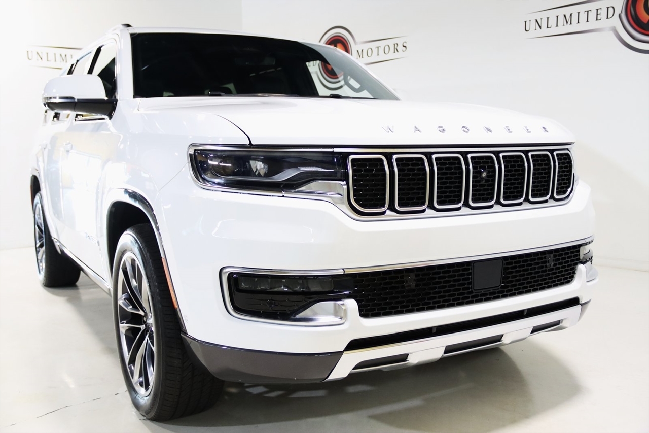 Navigation, Bluetooth, Back Up Camera, Panoramic Roof, 3rd Row, Heated Seats, Touch Screen, 10 Speakers, 19 Speaker McIntosh Audio System, 2nd Row Manual Window Shades, 3 Panel Sunroof, 3.21 Rear Axle Ratio, 3rd row seats: bench, 4-Wheel Disc Brakes, 7-Passenger Seating, ABS brakes, Adjustable pedals, Adjustable Roof Rail Crossbars, Air Conditioning, Alloy wheels, AM/FM radio: SiriusXM with 360L, Anti-whiplash front head restraints, Audio memory, Auto High-beam Headlights, Auto-dimming door mirrors, Auto-dimming Rear-View mirror, Auto-leveling suspension, Automatic temperature control, Brake assist, Bumpers: body-color, Cargo Cover, Compass, Convenience Group I, Delay-off headlights, Driver door bin, Driver vanity mirror, Driver's Seat Mounted Armrest, Drowsy Driver Detection, Dual front impact airbags, Dual front side impact airbags, Electronic Stability Control, Exterior Parking Camera Rear, Flexible Seating Group, Floor Console w/Cupholder, Four wheel independent suspension, Front anti-roll bar, Front Bucket Seats, Front Center Armrest w/Storage, Front dual zone A/C, Front fog lights, Front Passenger Interactive Display, Front reading lights, Fully automatic headlights, Garage door transmitter, Genuine wood console insert, Genuine wood dashboard insert, Genuine wood door panel insert, Heads-Up Display, Heated door mirrors, Heated front seats, Heated rear seats, Heated steering wheel, Illuminated entry, Intersection Collision Assist System, Knee airbag, Leather Trimmed Bucket Seats, Low tire pressure warning, Luxury Front & Rear Floor Mats, Memory seat, Navigation System, Normal Duty Suspension, Occupant sensing airbag, Outside temperature display, Overhead airbag, Overhead console, P&P Park & Unpark Assist w/Stop System, Panic alarm, Passenger door bin, Passenger seat mounted armrest, Passenger vanity mirror, Pedal memory, Power adjustable front head restraints, Power Deployable Running Boards, Power door mirrors, Power driver seat, Power Liftgate, Power passenger seat, Power steering, Power Tip/Slide Recline 2nd Row Buckets, Power windows, Premium Group I (DISC), Quick Order Package 22N, Radio data system, Radio: Uconnect 5 Nav w/10.1 Display, Rain sensing wipers, Rear air conditioning, Rear anti-roll bar, Rear dual zone A/C, Rear reading lights, Rear seat center armrest, Rear window defroster, Rear window wiper, Reclining 3rd row seat, Remote keyless entry, Reversible Carpet/Vinyl Cargo Mat, Security system, Speed control, Speed-sensing steering, Speed-Sensitive Wipers, Split folding rear seat, Steering wheel memory, Steering wheel mounted audio controls, Surround View Camera System, Tachometer, Telescoping steering wheel, Tilt steering wheel, Traction control, Traffic Sign Recognition, Trip computer, Turn signal indicator mirrors, Variably intermittent wipers, Ventilated front seats, Voltmeter, Wheels: 22 x 9.0 Premium 3 Aluminum (DISC). CARFAX One-Owner. Odometer is 27143 miles below market average!2022 Bright White Clearcoat Jeep 4D Sport Utility Wagoneer Series III 4WD 8-Speed Automatic 5.7L V8Visit our website www.iumotors.com to view 100s of newer vehicles, more pictures and info, or to apply for financing. Rates are incredibly low for approved credit. We offer extended warranties, protection packages, and insurance. We assure you the best experience at any of our 4 locations and unbeatable prices and quality. At Unlimited Motors we believe in MARKET VALUE PRICING. We use real-time Internet price comparisons to constantly adjust prices to provide ALL BUYERS The BEST PRICE possible. We do not mark them up, to mark them down! Our entire team is committed to helping you buy a car the way we would want to buy a car! We utilize state-of-the-art technology to constantly monitor pricing trends to offer our shoppers the best competitive pricing, value, and experience. We sell and service all makes and models of Pre-owned / Used Vehicles Used Cars, Used Trucks, Used Sport Utility, Lamborghini, F