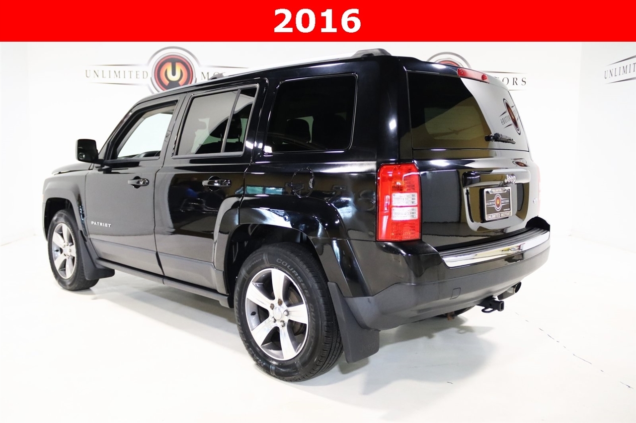 Navigation, Bluetooth, Back Up Camera, Sun/Moon Roof, Towing, Heated Seats, Touch Screen, 4 Speakers, 4.12 Axle Ratio, 40GB Hard Drive w/28GB Available, 5-Year SiriusXM Travel Link Service, 6.5 Touch Screen Display, ABS brakes, Adjustable Roof Rail Crossbars, Air Conditioning, Air Conditioning w/Auto Temperature Control, Alloy wheels, AM/FM radio, Anti-whiplash front head restraints, Audio Jack Input for Mobile Devices, Auto-dimming Rear-View mirror, Body Color Fascias w/Bright Insert, Brake assist, Bright Exhaust Tip, Bright Side Roof Rails, Bumpers: body-color, CD player, Class II Receiver Hitch, Driver door bin, Driver vanity mirror, Dual front impact airbags, Dual front side impact airbags, Electronic Stability Control, Four wheel independent suspension, Front anti-roll bar, Front Bucket Seats, Front Center Armrest w/Storage, Front fog lights, Front reading lights, Fully automatic headlights, Heated door mirrors, Heated front seats, Illuminated entry, Leather Trimmed Bucket Seats, Low tire pressure warning, MOPAR Trailer Tow Group, Occupant sensing airbag, Outside temperature display, Overhead airbag, Panic alarm, ParkView Rear Back-Up Camera, Passenger door bin, Passenger vanity mirror, Power 6-Way Driver Seat, Power door mirrors, Power Express Open/Close Sunroof, Power steering, Power windows, Premium Cloth Bucket Seats, Quick Order Package 24G High Altitude Edition, Radio: 130, Radio: 430N, Rear anti-roll bar, Rear window defroster, Rear window wiper, Remote keyless entry, Remote Start System, Roof rack: rails only, Security & Cargo Convenience Group, Security Alarm, SIRIUS Satellite Radio, SiriusXM Travel Link, Soft Tonneau Cover, Speed control, Split folding rear seat, Steering wheel mounted audio controls, Tachometer, Tilt steering wheel, Tire Pressure Monitoring Display, Traction control, Universal Garage Door Opener, Variably intermittent wipers, Vehicle Information Center, Wheels: 17 x 6.5 Granite Painted Pocket. 22/26 City/Highway MPG Odometer is 3522 miles below market average!2016 Black Clearcoat Jeep 4D Sport Utility Patriot High Altitude FWD CVT 2.0L I4 DOHC 16V Dual VVTVisit our website www.iumotors.com to view 100s of newer vehicles, more pictures and info, or to apply for financing. Rates are incredibly low for approved credit. We offer extended warranties, protection packages, and insurance. We assure you the best experience at any of our 4 locations and unbeatable prices and quality. At Unlimited Motors we believe in MARKET VALUE PRICING. We use real-time Internet price comparisons to constantly adjust prices to provide ALL BUYERS The BEST PRICE possible. We do not mark them up, to mark them down! Our entire team is committed to helping you buy a car the way we would want to buy a car! We utilize state-of-the-art technology to constantly monitor pricing trends to offer our shoppers the best competitive pricing, value, and experience. We sell and service all makes and models of Pre-owned / Used Vehicles Used Cars, Used Trucks, Used Sport Utility, Lamborghini, Ferrari, Bentley, Rolls Royce, McLaren, Maserati, Ford, Chevrolet/Chevy, Honda, Toyota, Porsche, Land Rover, Jaguar, INFINITI, Audi, Nissan, Mazda, Hyundai, Chrysler, Jeep, Dodge, Ram, SRT, Mitsubishi, Lexus, Kia, Volkswagen, Mini, BMW, Mercedes, Fiat, Volvo, GMC, Cadillac, Lincoln as well as other brands. Proudly serving these areas of Indianapolis, Fishers, Carmel, Noblesville, Greenwood, Avon, Plainfield, Zionsville, & Brownsburg, Indiana, Midwest. We also serve the entire nation with our seamless and easy online purchasing process, and offer shipping nationwide.Advertised prices DO NOT include Sales Tax, Dealer Fees, Title Processing Charges, and Dealer Pre-installed Products.