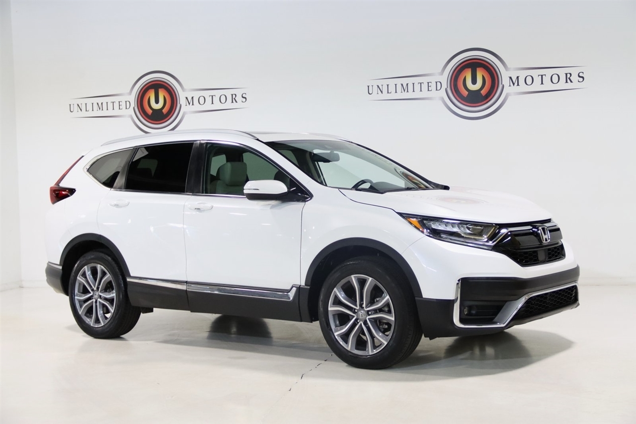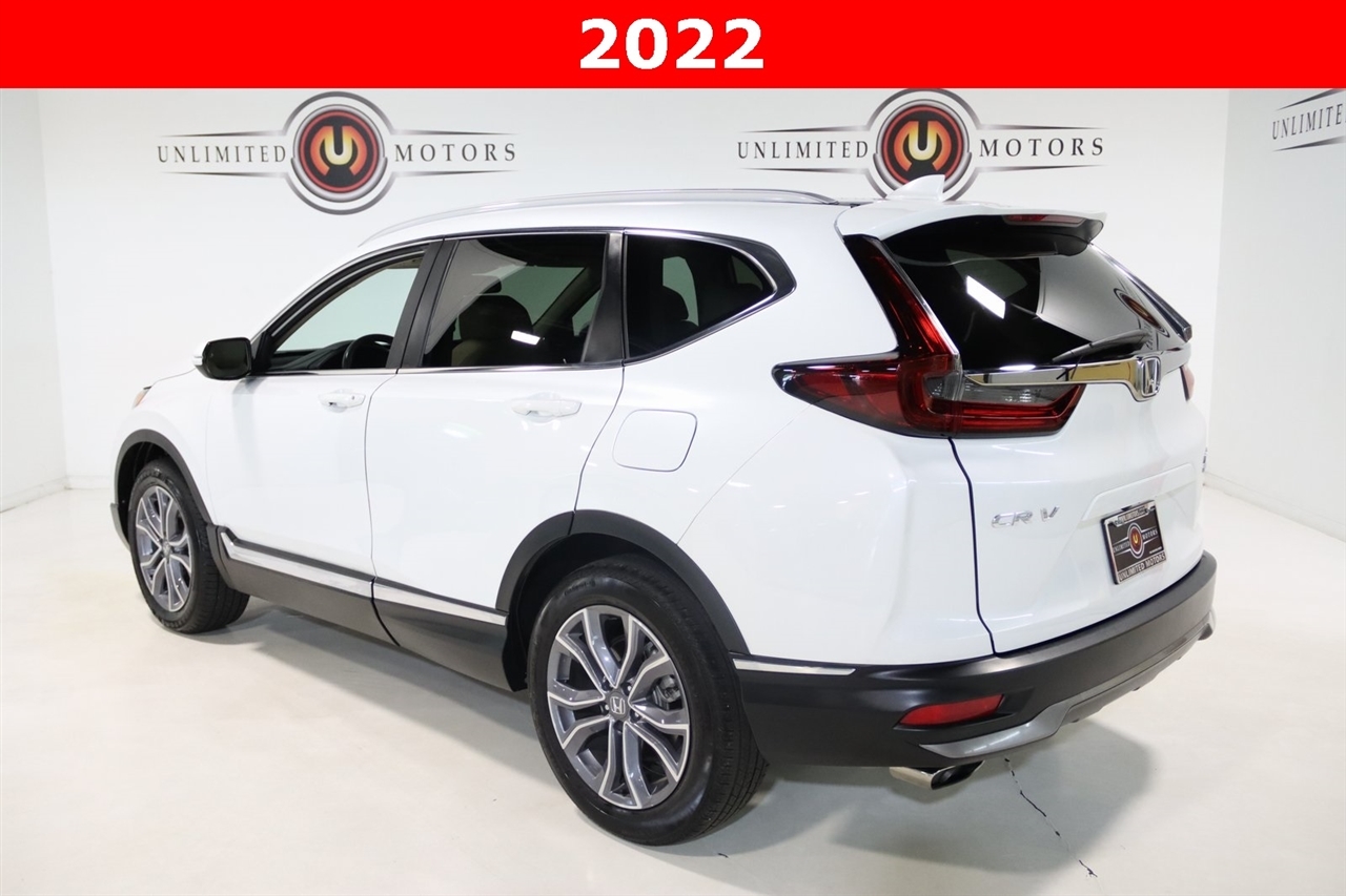 Navigation, Bluetooth, Back Up Camera, Sun/Moon Roof, Touch Screen, 4-Wheel Disc Brakes, 5.64 Axle Ratio, 9 Speakers, ABS brakes, Adaptive Cruise Control: Adaptive Cruise Control (ACC) with Low-Speed Follow, Air Conditioning, Alloy wheels, AM/FM radio: SiriusXM, Apple CarPlay/Android Auto, Auto High-beam Headlights, Auto-dimming Rear-View mirror, Automatic temperature control, Blind Spot Information (BSI) System warning, Brake assist, Bumpers: body-color, Compass, Delay-off headlights, Driver door bin, Driver vanity mirror, Dual front impact airbags, Dual front side impact airbags, Electronic Stability Control, Exterior Parking Camera Rear, Forward collision: Collision Mitigation Braking System (CMBS) + FCW mitigation, Four wheel independent suspension, Front anti-roll bar, Front Bucket Seats, Front Center Armrest, Front dual zone A/C, Front fog lights, Front reading lights, Garage door transmitter: HomeLink, Heated door mirrors, Heated Front Bucket Seats, Heated front seats, Heated steering wheel, Illuminated entry, Leather Seat Trim, Leather Shift Knob, Low tire pressure warning, Memory seat, Navigation System, Navigation system: Honda Satellite-Linked Navigation System, Occupant sensing airbag, Outside temperature display, Overhead airbag, Overhead console, Panic alarm, Passenger door bin, Passenger vanity mirror, Power door mirrors, Power driver seat, Power Liftgate, Power moonroof, Power passenger seat, Power steering, Power windows, Radio data system, Radio: 330-Watt AM/FM/HD/SiriusXM Prem Audio System, Rain sensing wipers, Rear anti-roll bar, Rear seat center armrest, Rear window defroster, Rear window wiper, Remote keyless entry, Roof rack: rails only, Security system, Speed control, Speed-sensing steering, Speed-Sensitive Wipers, Split folding rear seat, Spoiler, Steering wheel mounted audio controls, Tachometer, Telescoping steering wheel, Tilt steering wheel, Traction control, Trip computer, Turn signal indicator mirrors, Variably intermittent wipers, Wheels: 19 Machine-Finished Alloy w/Gray Inserts. 27/32 City/Highway MPG Odometer is 20310 miles below market average! Priced below KBB Fair Purchase Price!2022 Platinum White Pearl Honda 4D Sport Utility CR-V Touring AWD CVT 1.5L I4 DOHC 16VVisit our website www.iumotors.com to view 100s of newer vehicles, more pictures and info, or to apply for financing. Rates are incredibly low for approved credit. We offer extended warranties, protection packages, and insurance. We assure you the best experience at any of our 4 locations and unbeatable prices and quality. At Unlimited Motors we believe in MARKET VALUE PRICING. We use real-time Internet price comparisons to constantly adjust prices to provide ALL BUYERS The BEST PRICE possible. We do not mark them up, to mark them down! Our entire team is committed to helping you buy a car the way we would want to buy a car! We utilize state-of-the-art technology to constantly monitor pricing trends to offer our shoppers the best competitive pricing, value, and experience. We sell and service all makes and models of Pre-owned / Used Vehicles Used Cars, Used Trucks, Used Sport Utility, Lamborghini, Ferrari, Bentley, Rolls Royce, McLaren, Maserati, Ford, Chevrolet/Chevy, Honda, Toyota, Porsche, Land Rover, Jaguar, INFINITI, Audi, Nissan, Mazda, Hyundai, Chrysler, Jeep, Dodge, Ram, SRT, Mitsubishi, Lexus, Kia, Volkswagen, Mini, BMW, Mercedes, Fiat, Volvo, GMC, Cadillac, Lincoln as well as other brands. Proudly serving these areas of Indianapolis, Fishers, Carmel, Noblesville, Greenwood, Avon, Plainfield, Zionsville, & Brownsburg, Indiana, Midwest. We also serve the entire nation with our seamless and easy online purchasing process, and offer shipping nationwide.Advertised prices DO NOT include Sales Tax, Dealer Fees, Title Processing Charges, and Dealer Pre-installed Products.