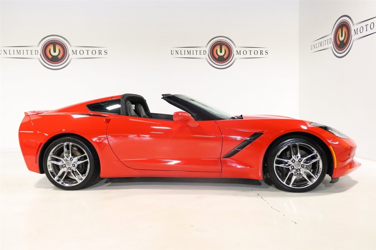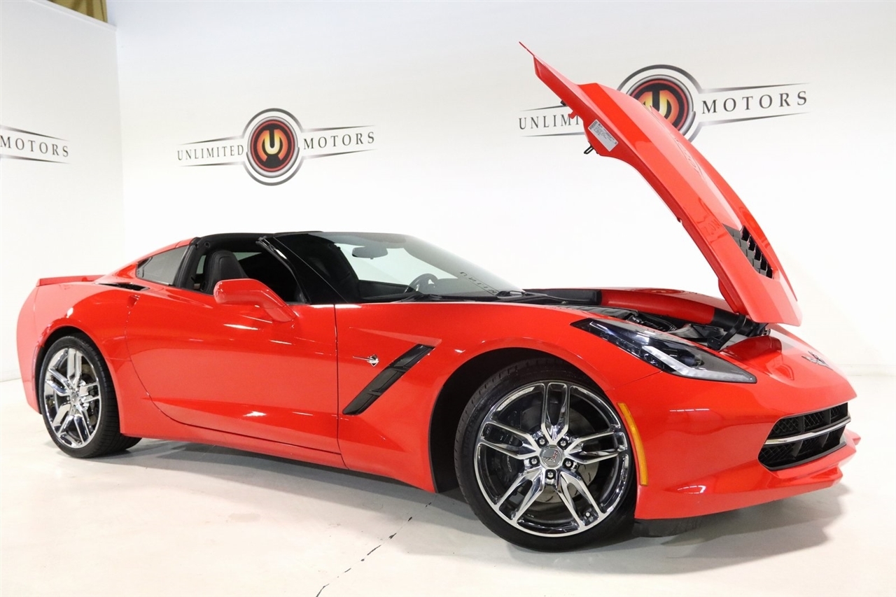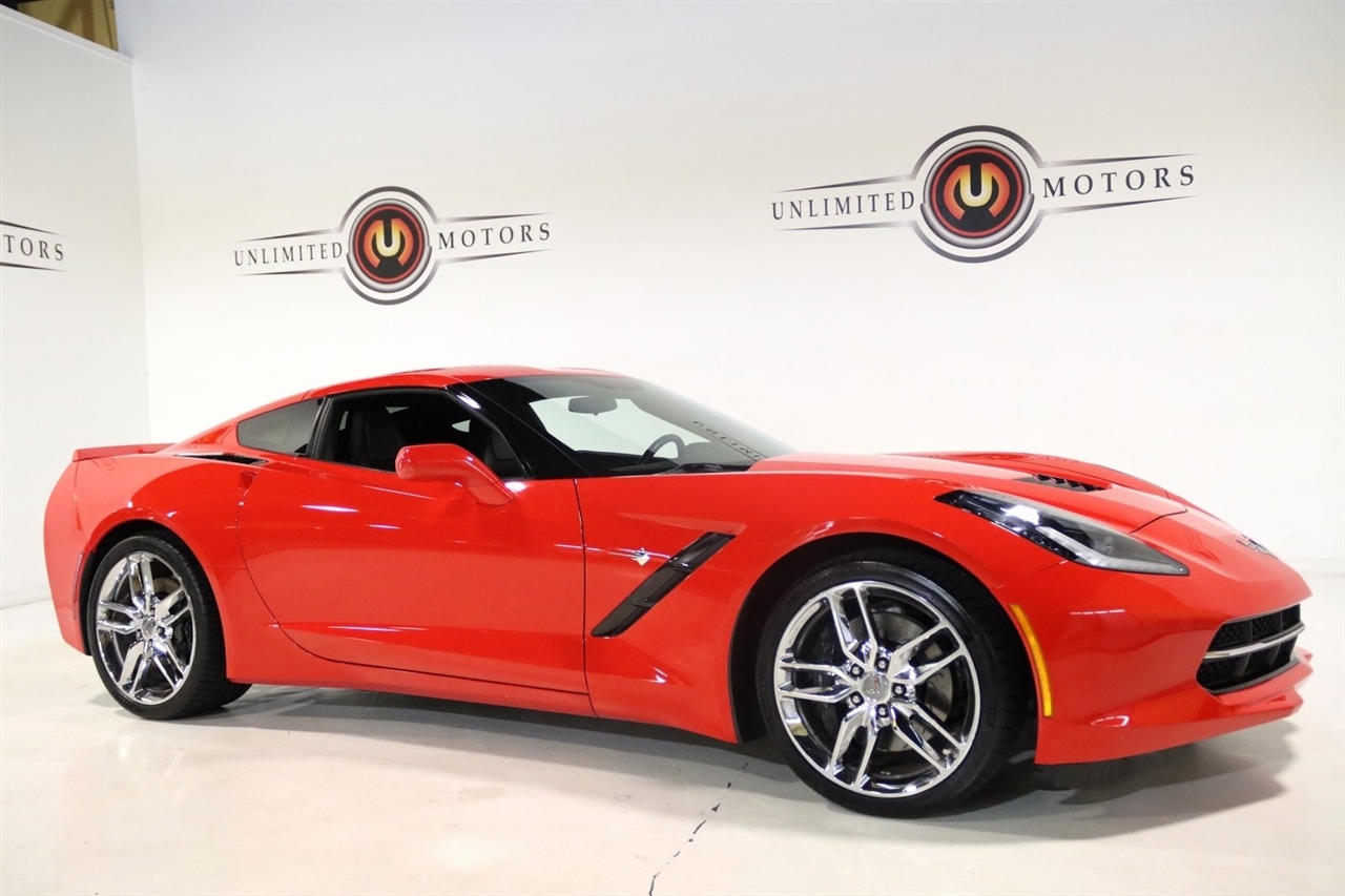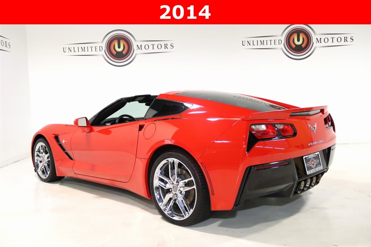 Bluetooth, Back Up Camera, Hard Top, Touch Screen, 4-Wheel Disc Brakes, 8-Way Driver & Passenger Seat Adjusters, 9 Speakers, ABS brakes, Air Conditioning, Alloy wheels, AM/FM radio: SiriusXM, Automatic temperature control, Bose Premium 9-Speaker Audio System Feature, Bumpers: body-color, Compass, Delay-off headlights, Driver door bin, Driver vanity mirror, Dual front impact airbags, Dual front side impact airbags, Electronic Stability Control, Emergency communication system: OnStar Directions & Connections, Exterior Parking Camera Rear, Four wheel independent suspension, Front anti-roll bar, Front Bucket Seats, Front Center Armrest, Front dual zone A/C, Front reading lights, Fully automatic headlights, GT Bucket Seats, Heated door mirrors, High-Intensity Discharge Headlights, Illuminated entry, Leather Shift Knob, Leather steering wheel, Low tire pressure warning, Mulan Perforated Leather Seating Surfaces, Occupant sensing airbag, Outside temperature display, Painted Body-Color Carbon Fiber Removable Roof Panel, Panic alarm, Passenger door bin, Passenger vanity mirror, Performance Exhaust, Power door mirrors, Power driver seat, Power passenger seat, Power steering, Power windows, Preferred Equipment Group 1LT, Premium audio system: Chevrolet MyLink, Radio data system, Radio: Chevrolet MyLink AM/FM Stereo, Rear anti-roll bar, Rear window defroster, Remote keyless entry, SiriusXM Satellite Radio, Speed control, Speed-sensing steering, Spoiler, Sport steering wheel, Steering wheel mounted audio controls, Tachometer, Telescoping steering wheel, Tilt steering wheel, Traction control, Trip computer, Variably intermittent wipers, Voltmeter, Wheels: 19 x 8.5 Fr & 20 x 10 Rr Chrome Alum.. 17/29 City/Highway MPG Odometer is 11149 miles below market average!2014 Torch Red Chevrolet 2D Coupe Corvette Stingray Z51 1LT RWD 7-Speed Manual with Active Rev Matching 6.2L V8Awards: * Car and Driver 10 Best Cars * Ward's 10 Best Engines * NACTOY 2014 North American Car of the Year * 2014 KBB.com Brand Image AwardsCar and Driver, January 2017.Visit our website www.iumotors.com to view 100s of newer vehicles, more pictures and info, or to apply for financing. Rates are incredibly low for approved credit. We offer extended warranties, protection packages, and insurance. We assure you the best experience at any of our 4 locations and unbeatable prices and quality. At Unlimited Motors we believe in MARKET VALUE PRICING. We use real-time Internet price comparisons to constantly adjust prices to provide ALL BUYERS The BEST PRICE possible. We do not mark them up, to mark them down! Our entire team is committed to helping you buy a car the way we would want to buy a car! We utilize state-of-the-art technology to constantly monitor pricing trends to offer our shoppers the best competitive pricing, value, and experience. We sell and service all makes and models of Pre-owned / Used Vehicles Used Cars, Used Trucks, Used Sport Utility, Lamborghini, Ferrari, Bentley, Rolls Royce, McLaren, Maserati, Ford, Chevrolet/Chevy, Honda, Toyota, Porsche, Land Rover, Jaguar, INFINITI, Audi, Nissan, Mazda, Hyundai, Chrysler, Jeep, Dodge, Ram, SRT, Mitsubishi, Lexus, Kia, Volkswagen, Mini, BMW, Mercedes, Fiat, Volvo, GMC, Cadillac, Lincoln as well as other brands. Proudly serving these areas of Indianapolis, Fishers, Carmel, Noblesville, Greenwood, Avon, Plainfield, Zionsville, & Brownsburg, Indiana, Midwest. We also serve the entire nation with our seamless and easy online purchasing process, and offer shipping nationwide.Advertised prices DO NOT include Sales Tax, Dealer Fees, Title Processing Charges, and Dealer Pre-installed Products.