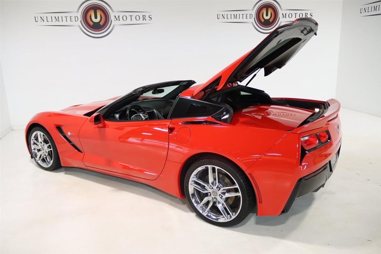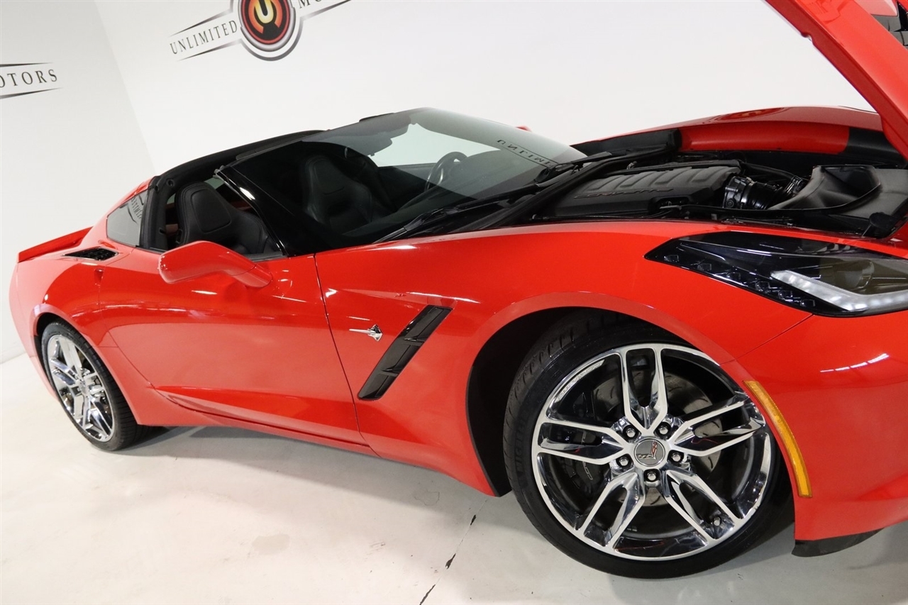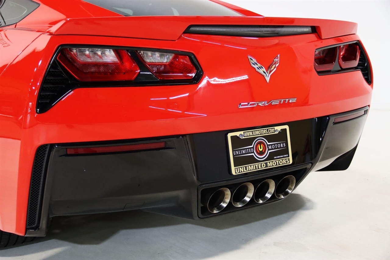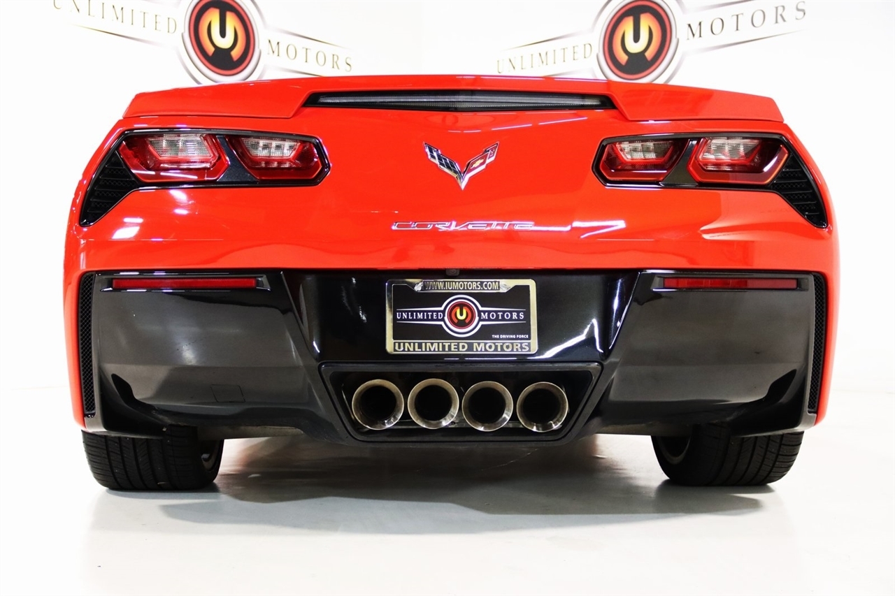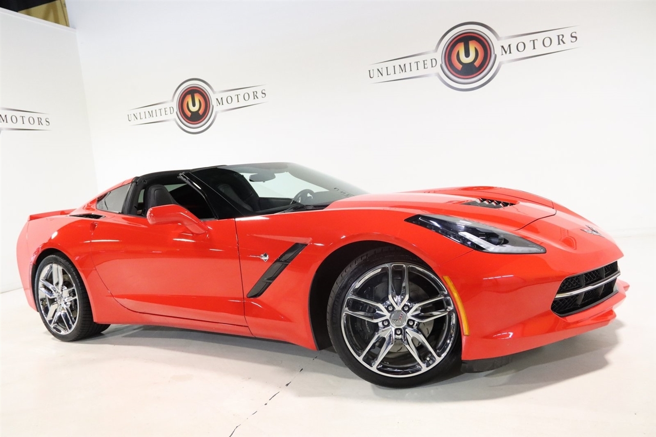 Bluetooth, Back Up Camera, Hard Top, Touch Screen, 4-Wheel Disc Brakes, 8-Way Driver & Passenger Seat Adjusters, 9 Speakers, ABS brakes, Air Conditioning, Alloy wheels, AM/FM radio: SiriusXM, Automatic temperature control, Bose Premium 9-Speaker Audio System Feature, Bumpers: body-color, Compass, Delay-off headlights, Driver door bin, Driver vanity mirror, Dual front impact airbags, Dual front side impact airbags, Electronic Stability Control, Emergency communication system: OnStar Directions & Connections, Exterior Parking Camera Rear, Four wheel independent suspension, Front anti-roll bar, Front Bucket Seats, Front Center Armrest, Front dual zone A/C, Front reading lights, Fully automatic headlights, GT Bucket Seats, Heated door mirrors, High-Intensity Discharge Headlights, Illuminated entry, Leather Shift Knob, Leather steering wheel, Low tire pressure warning, Mulan Perforated Leather Seating Surfaces, Occupant sensing airbag, Outside temperature display, Painted Body-Color Carbon Fiber Removable Roof Panel, Panic alarm, Passenger door bin, Passenger vanity mirror, Performance Exhaust, Power door mirrors, Power driver seat, Power passenger seat, Power steering, Power windows, Preferred Equipment Group 1LT, Premium audio system: Chevrolet MyLink, Radio data system, Radio: Chevrolet MyLink AM/FM Stereo, Rear anti-roll bar, Rear window defroster, Remote keyless entry, SiriusXM Satellite Radio, Speed control, Speed-sensing steering, Spoiler, Sport steering wheel, Steering wheel mounted audio controls, Tachometer, Telescoping steering wheel, Tilt steering wheel, Traction control, Trip computer, Variably intermittent wipers, Voltmeter, Wheels: 19 x 8.5 Fr & 20 x 10 Rr Chrome Alum.. 17/29 City/Highway MPG Odometer is 11149 miles below market average!2014 Torch Red Chevrolet 2D Coupe Corvette Stingray Z51 1LT RWD 7-Speed Manual with Active Rev Matching 6.2L V8Awards: * Car and Driver 10 Best Cars * Ward's 10 Best Engines * NACTOY 2014 North American Car of the Year * 2014 KBB.com Brand Image AwardsCar and Driver, January 2017.Visit our website www.iumotors.com to view 100s of newer vehicles, more pictures and info, or to apply for financing. Rates are incredibly low for approved credit. We offer extended warranties, protection packages, and insurance. We assure you the best experience at any of our 4 locations and unbeatable prices and quality. At Unlimited Motors we believe in MARKET VALUE PRICING. We use real-time Internet price comparisons to constantly adjust prices to provide ALL BUYERS The BEST PRICE possible. We do not mark them up, to mark them down! Our entire team is committed to helping you buy a car the way we would want to buy a car! We utilize state-of-the-art technology to constantly monitor pricing trends to offer our shoppers the best competitive pricing, value, and experience. We sell and service all makes and models of Pre-owned / Used Vehicles Used Cars, Used Trucks, Used Sport Utility, Lamborghini, Ferrari, Bentley, Rolls Royce, McLaren, Maserati, Ford, Chevrolet/Chevy, Honda, Toyota, Porsche, Land Rover, Jaguar, INFINITI, Audi, Nissan, Mazda, Hyundai, Chrysler, Jeep, Dodge, Ram, SRT, Mitsubishi, Lexus, Kia, Volkswagen, Mini, BMW, Mercedes, Fiat, Volvo, GMC, Cadillac, Lincoln as well as other brands. Proudly serving these areas of Indianapolis, Fishers, Carmel, Noblesville, Greenwood, Avon, Plainfield, Zionsville, & Brownsburg, Indiana, Midwest. We also serve the entire nation with our seamless and easy online purchasing process, and offer shipping nationwide.Advertised prices DO NOT include Sales Tax, Dealer Fees, Title Processing Charges, and Dealer Pre-installed Products.