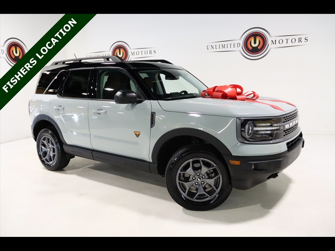 Bluetooth, Back Up Camera, Sun/Moon Roof, Touch Screen, 3.80 Axle Ratio, 4-Wheel Disc Brakes, 6 Speakers, ABS brakes, Air Conditioning, Alloy wheels, AM/FM radio: SiriusXM, AM/FM Stereo, Auto High-beam Headlights, Auto-Dimming Rear-View Mirror, Automatic temperature control, Body-Colored Door Handles, Brake assist, Cargo Management System, Compass, Delay-off headlights, Driver door bin, Driver vanity mirror, Dual front impact airbags, Dual front side impact airbags, Dual-Zone Electronic Automatic Temperature Control, Electronic Stability Control, Emergency communication system: SYNC 3 911 Assist, Equipment Group 400A, Four wheel independent suspension, Front anti-roll bar, Front Bucket Seats, Front Center Armrest, Front fog lights, Front reading lights, Fully automatic headlights, HD Radio, Heated door mirrors, Heated front seats, Heated Steering Wheel, Illuminated entry, Knee airbag, Leather-Trimmed Heated Sport Contour Bucket Seats, Low tire pressure warning, Occupant sensing airbag, Outside temperature display, Overhead airbag, Overhead console, Panic alarm, Passenger door bin, Passenger vanity mirror, Power door mirrors, Power driver seat, Power Moonroof, Power steering, Power windows, Premium Package, Radio data system, Rear anti-roll bar, Rear Parking Sensors, Rear reading lights, Rear seat center armrest, Rear window defroster, Rear window wiper, Remote keyless entry, Remote Start System, Roof rack: rails only, Security system, SiriusXM Radio, Speed control, Speed-sensing steering, Speed-Sensitive Wipers, Split folding rear seat, Steering wheel mounted audio controls, SYNC 3 Communications & Entertainment System, SYNC 3/Apple CarPlay/Android Auto, Tachometer, Telescoping steering wheel, Tilt steering wheel, Traction control, Trip computer, Unique Cloth Heated Sport Contour Bucket Seats, Universal Garage Door Opener (UGDO), Variably intermittent wipers, Wheels: 17 Carbonized Gray-Painted Aluminum, Wireless Charging Pad. CARFAX One-Owner. 21/26 City/Highway MPG2022 Cactus Gray Ford 4D Sport Utility Bronco Sport Badlands 4WD 8-Speed Automatic EcoBoost 2.0L I4 GTDi DOHC Turbocharged VCTVisit our website www.iumotors.com to view 100s of newer vehicles, more pictures and info, or to apply for financing. Rates are incredibly low for approved credit. We offer extended warranties, protection packages, and insurance. We assure you the best experience at any of our 4 locations and unbeatable prices and quality. At Unlimited Motors we believe in MARKET VALUE PRICING. We use real-time Internet price comparisons to constantly adjust prices to provide ALL BUYERS The BEST PRICE possible. We do not mark them up, to mark them down! Our entire team is committed to helping you buy a car the way we would want to buy a car! We utilize state-of-the-art technology to constantly monitor pricing trends to offer our shoppers the best competitive pricing, value, and experience. We sell and service all makes and models of Pre-owned / Used Vehicles Used Cars, Used Trucks, Used Sport Utility, Lamborghini, Ferrari, Bentley, Rolls Royce, McLaren, Maserati, Ford, Chevrolet/Chevy, Honda, Toyota, Porsche, Land Rover, Jaguar, INFINITI, Audi, Nissan, Mazda, Hyundai, Chrysler, Jeep, Dodge, Ram, SRT, Mitsubishi, Lexus, Kia, Volkswagen, Mini, BMW, Mercedes, Fiat, Volvo, GMC, Cadillac, Lincoln as well as other brands. Proudly serving these areas of Indianapolis, Fishers, Carmel, Noblesville, Greenwood, Avon, Plainfield, Zionsville, & Brownsburg, Indiana, Midwest. We also serve the entire nation with our seamless and easy online purchasing process, and offer shipping nationwide.Advertised prices DO NOT include Sales Tax, Dealer Fees, Title Processing Charges, and Dealer Pre-installed Products.