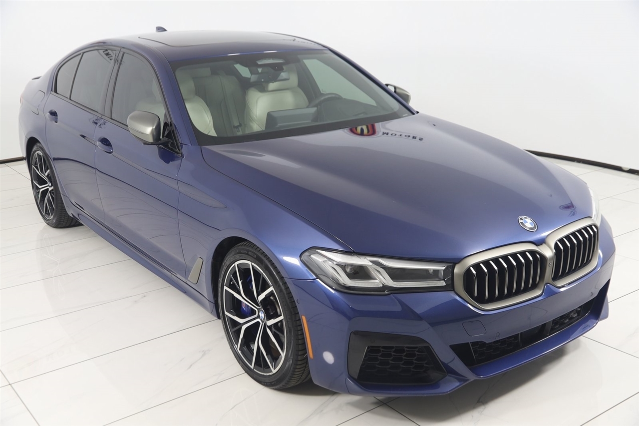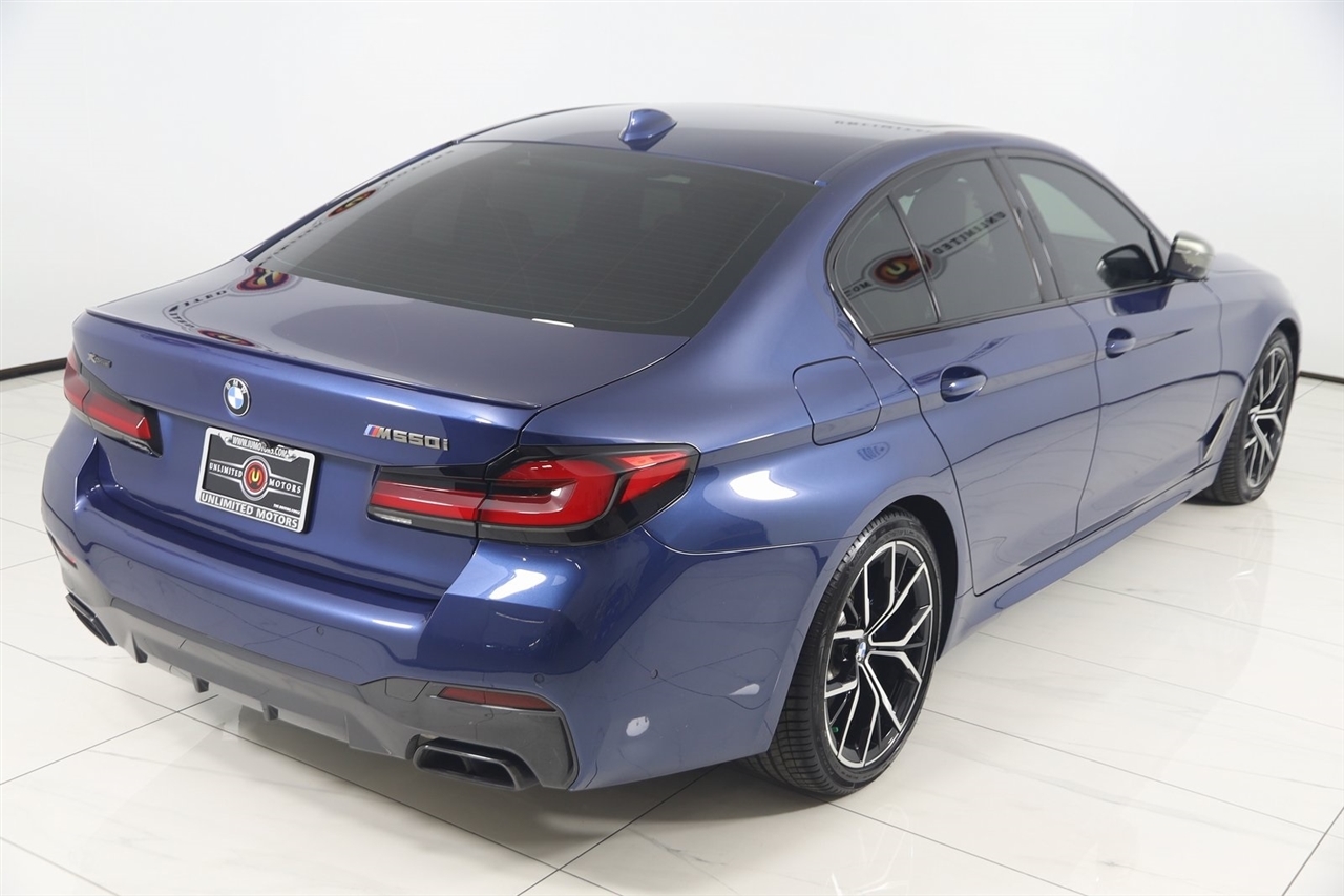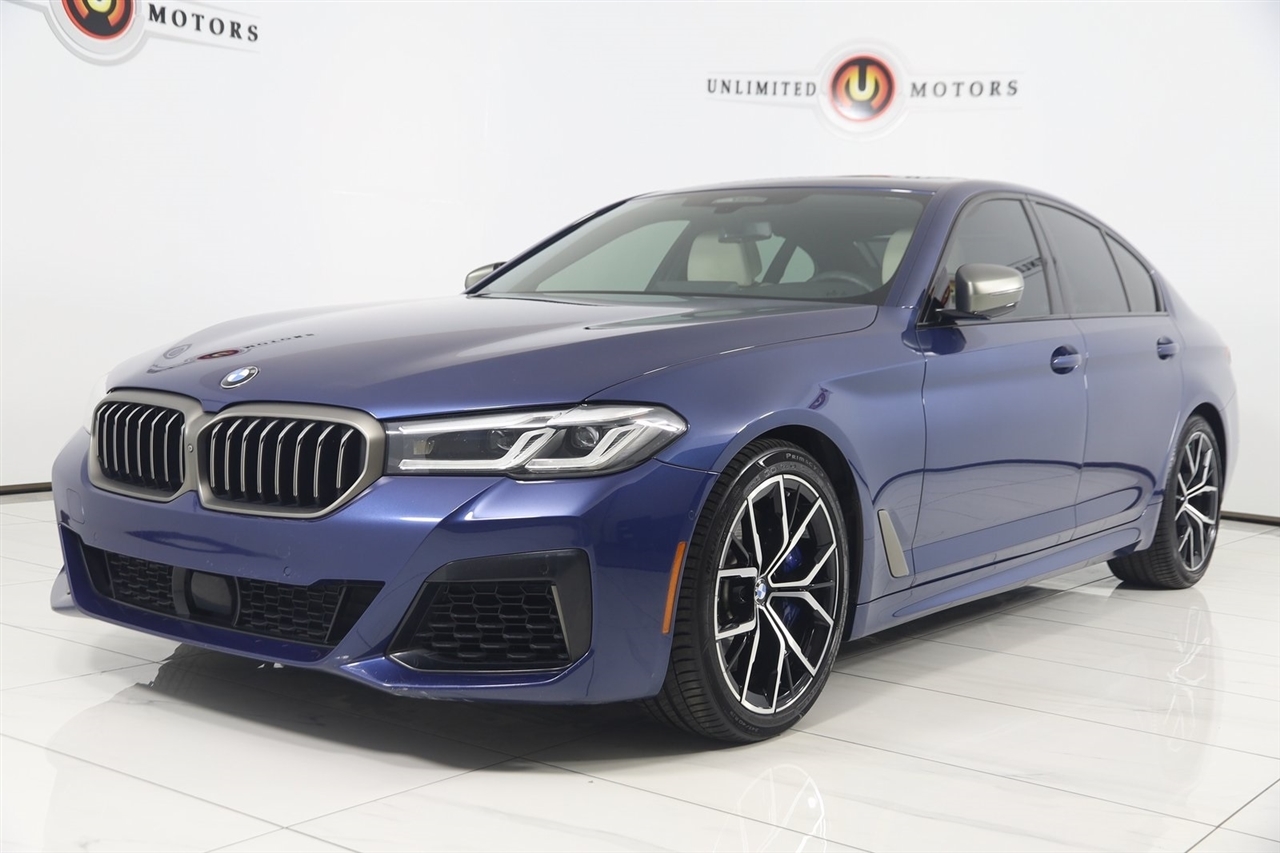 Navigation, Back Up Camera, Bluetooth, Sun/Moon Roof, Heated Seats, Touch Screen, Blind Spot, Apple Play, 5 Series M550i xDrive, 4D Sedan, 4.4L V8 Twin Turbocharged, 8-Speed Automatic Sport, AWD, Phytonic Blue Metallic, Ivory White Leather, Active Driving Assistant Pro, Active Park Distance Control, Ceramic Controls, Connected Package Pro, Drive Recorder, Driving Assistance Plus Package, Enhanced USB & Bluetooth, Executive Package, Extended Traffic Jam Assistant, Gesture Control, Head-Up Display, Parking Assistance Package, Parking Assistant Plus, Power Rear Sunshade, Rear-View Camera, Surround View w/3D View, Wireless Charging. Clean CARFAX. Odometer is 24259 miles below market average!2021 Phytonic Blue Metallic BMW 4D Sedan 5 Series M550i xDrive AWD 8-Speed Automatic Sport 4.4L V8 Twin TurbochargedVisit our website www.iumotors.com to view 100s of newer vehicles, more pictures and info, or to apply for financing. Rates are incredibly low for approved credit. We offer extended warranties, protection packages, and insurance. We assure you the best experience at any of our 4 locations and unbeatable prices and quality. At Unlimited Motors we believe in MARKET VALUE PRICING. We use real-time Internet price comparisons to constantly adjust prices to provide ALL BUYERS The BEST PRICE possible. We do not mark them up, to mark them down! Our entire team is committed to helping you buy a car the way we would want to buy a car! We utilize state-of-the-art technology to constantly monitor pricing trends to offer our shoppers the best competitive pricing, value, and experience. We sell and service all makes and models of Pre-owned / Used Vehicles Used Cars, Used Trucks, Used Sport Utility, Lamborghini, Ferrari, Bentley, Rolls Royce, McLaren, Maserati, Ford, Chevrolet/Chevy, Honda, Toyota, Porsche, Land Rover, Jaguar, INFINITI, Audi, Nissan, Mazda, Hyundai, Chrysler, Jeep, Dodge, Ram, SRT, Mitsubishi, Lexus, Kia, Volkswagen, Mini, BMW, Mercedes, Fiat, Volvo, GMC, Cadillac, Lincoln as well as other brands. Proudly serving these areas of Indianapolis, Fishers, Carmel, Noblesville, Greenwood, Avon, Plainfield, Zionsville, & Brownsburg, Indiana, Midwest. We also serve the entire nation with our seamless and easy online purchasing process, and offer shipping nationwide.Advertised prices DO NOT include Sales Tax, Dealer Fees, Title Processing Charges, and Dealer Pre-installed Products.