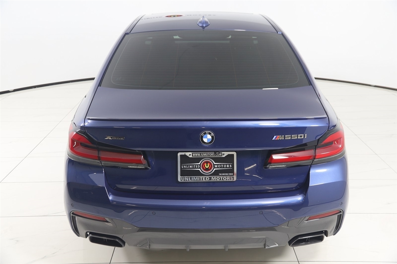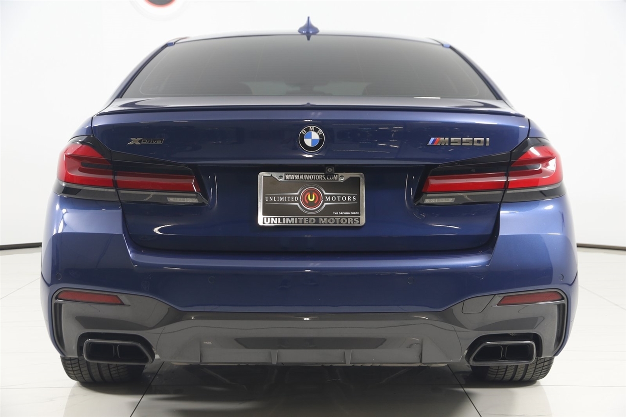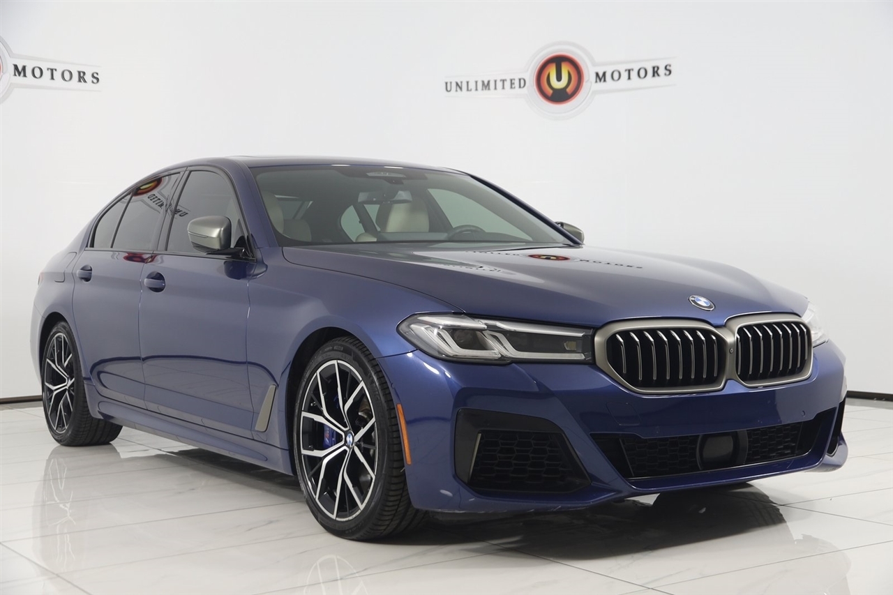 Navigation, Back Up Camera, Bluetooth, Sun/Moon Roof, Heated Seats, Touch Screen, Blind Spot, Apple Play, 5 Series M550i xDrive, 4D Sedan, 4.4L V8 Twin Turbocharged, 8-Speed Automatic Sport, AWD, Phytonic Blue Metallic, Ivory White Leather, Active Driving Assistant Pro, Active Park Distance Control, Ceramic Controls, Connected Package Pro, Drive Recorder, Driving Assistance Plus Package, Enhanced USB & Bluetooth, Executive Package, Extended Traffic Jam Assistant, Gesture Control, Head-Up Display, Parking Assistance Package, Parking Assistant Plus, Power Rear Sunshade, Rear-View Camera, Surround View w/3D View, Wireless Charging. Clean CARFAX. Odometer is 24259 miles below market average!2021 Phytonic Blue Metallic BMW 4D Sedan 5 Series M550i xDrive AWD 8-Speed Automatic Sport 4.4L V8 Twin TurbochargedVisit our website www.iumotors.com to view 100s of newer vehicles, more pictures and info, or to apply for financing. Rates are incredibly low for approved credit. We offer extended warranties, protection packages, and insurance. We assure you the best experience at any of our 4 locations and unbeatable prices and quality. At Unlimited Motors we believe in MARKET VALUE PRICING. We use real-time Internet price comparisons to constantly adjust prices to provide ALL BUYERS The BEST PRICE possible. We do not mark them up, to mark them down! Our entire team is committed to helping you buy a car the way we would want to buy a car! We utilize state-of-the-art technology to constantly monitor pricing trends to offer our shoppers the best competitive pricing, value, and experience. We sell and service all makes and models of Pre-owned / Used Vehicles Used Cars, Used Trucks, Used Sport Utility, Lamborghini, Ferrari, Bentley, Rolls Royce, McLaren, Maserati, Ford, Chevrolet/Chevy, Honda, Toyota, Porsche, Land Rover, Jaguar, INFINITI, Audi, Nissan, Mazda, Hyundai, Chrysler, Jeep, Dodge, Ram, SRT, Mitsubishi, Lexus, Kia, Volkswagen, Mini, BMW, Mercedes, Fiat, Volvo, GMC, Cadillac, Lincoln as well as other brands. Proudly serving these areas of Indianapolis, Fishers, Carmel, Noblesville, Greenwood, Avon, Plainfield, Zionsville, & Brownsburg, Indiana, Midwest. We also serve the entire nation with our seamless and easy online purchasing process, and offer shipping nationwide.Advertised prices DO NOT include Sales Tax, Dealer Fees, Title Processing Charges, and Dealer Pre-installed Products.