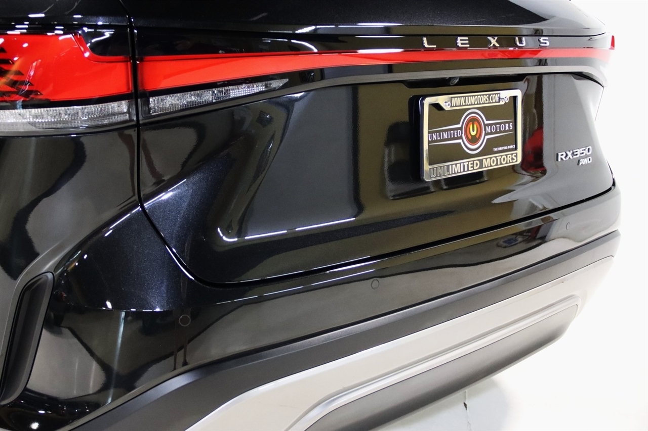 Bluetooth, Back Up Camera, Heated Seats, 12 Speakers, 3.33 Axle Ratio, 4-Wheel Disc Brakes, 8-Way Power Driver & Front Passenger Seat Adjusters, ABS brakes, Active Cruise Control, Air Conditioning, Alloy wheels, AM/FM radio: SiriusXM, Anti-whiplash front head restraints, Auto High-beam Headlights, Auto tilt-away steering wheel, Auto-dimming door mirrors, Auto-dimming Rear-View mirror, Automatic temperature control, Brake assist, Bumpers: body-color, Compass, Convenience Package, Delay-off headlights, Driver door bin, Driver vanity mirror, Dual front impact airbags, Dual front side impact airbags, Electrochromic Heated Outside Rearview Mirror, Electronic Stability Control, Emergency communication system: Safety Connect (10-year trial), Exterior Parking Camera Rear, Four wheel independent suspension, Front anti-roll bar, Front Bucket Seats, Front Center Armrest, Front dual zone A/C, Front fog lights, Front reading lights, Fully automatic headlights, Garage door transmitter: HomeLink, Genuine wood console insert, Heated & Ventilated Front Bucket Seats, Heated door mirrors, Heated front seats, Heated steering wheel, Illuminated entry, Lane Change Assist w/Lane Keeping Assist System, Leather Seat Trim, Leather Shift Knob, Leather steering wheel, Low tire pressure warning, Memory seat, Normal Head Up Display, Occupant sensing airbag, Outside temperature display, Overhead airbag, Overhead console, Panic alarm, Passenger door bin, Passenger vanity mirror, Power door mirrors, Power driver seat, Power Liftgate, Power moonroof, Power passenger seat, Power steering, Power windows, Radio data system, Radio: Lexus Interface w/14 HD Touchscreen Display, Rain sensing wipers, Rear air conditioning, Rear anti-roll bar, Rear reading lights, Rear seat center armrest, Rear side impact airbag, Rear window defroster, Rear window wiper, Remote keyless entry, Security system, Speed control, Speed-sensing steering, Split folding rear seat, Spoiler, Steering wheel memory, Steering wheel mounted audio controls, Tachometer, Technology Package, Telescoping steering wheel, Tilt steering wheel, Traction control, Trip computer, Turn signal indicator mirrors, Variably intermittent wipers, Ventilated front seats, Wheels: 21 20-Spoke Alloy, Wireless Apple CarPlay/Wireless Android Auto. CARFAX One-Owner. 21/28 City/Highway MPG Priced below KBB Fair Purchase Price!2024 Caviar Lexus 4D Sport Utility RX 350 Premium Plus AWD 8-Speed Automatic 2.4L I4 PDI Turbocharged DOHC 16V LEV3-SULEV30 275hpVisit our website www.iumotors.com to view 100s of newer vehicles, more pictures and info, or to apply for financing. Rates are incredibly low for approved credit. We offer extended warranties, protection packages, and insurance. We assure you the best experience at any of our 4 locations and unbeatable prices and quality. At Unlimited Motors we believe in MARKET VALUE PRICING. We use real-time Internet price comparisons to constantly adjust prices to provide ALL BUYERS The BEST PRICE possible. We do not mark them up, to mark them down! Our entire team is committed to helping you buy a car the way we would want to buy a car! We utilize state-of-the-art technology to constantly monitor pricing trends to offer our shoppers the best competitive pricing, value, and experience. We sell and service all makes and models of Pre-owned / Used Vehicles Used Cars, Used Trucks, Used Sport Utility, Lamborghini, Ferrari, Bentley, Rolls Royce, McLaren, Maserati, Ford, Chevrolet/Chevy, Honda, Toyota, Porsche, Land Rover, Jaguar, INFINITI, Audi, Nissan, Mazda, Hyundai, Chrysler, Jeep, Dodge, Ram, SRT, Mitsubishi, Lexus, Kia, Volkswagen, Mini, BMW, Mercedes, Fiat, Volvo, GMC, Cadillac, Lincoln as well as other brands. Proudly serving these areas of Indianapolis, Fishers, Carmel, Noblesville, Greenwood, Avon, Plainfield, Zionsville, & Brownsburg, Indiana, Midwest. We also serve the entire nation with our seamless and easy online purchasing process, and offer shipping n