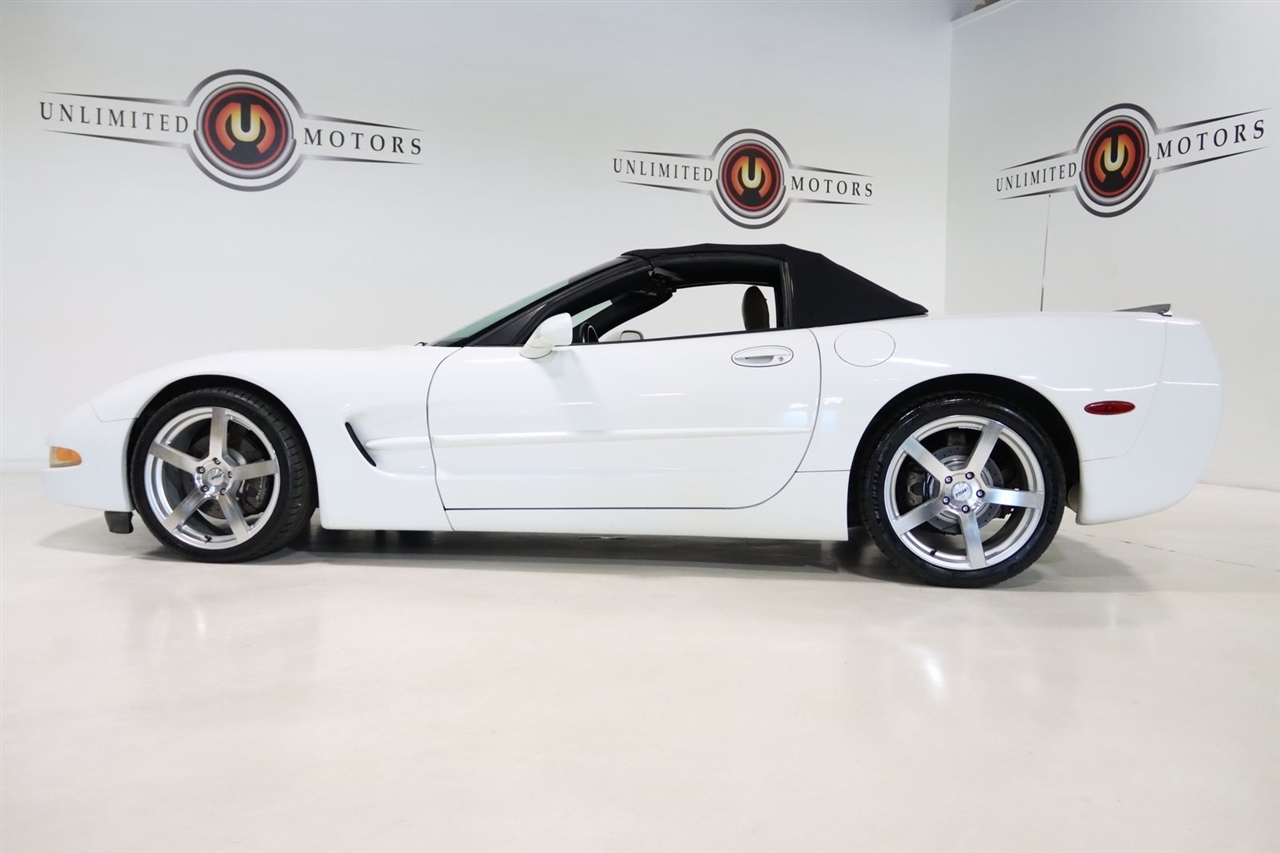 Soft Top, Touch Screen, 3.15 Performance Axle Ratio, 4-Wheel Disc Brakes, 6 Speakers, ABS brakes, Air Conditioning, Alloy wheels, AM/FM radio, Automatic temperature control, Body-Color Bodyside Moldings, Bumpers: body-color, CD player, Convertible roof lining, Delay-off headlights, Driver vanity mirror, Dual front impact airbags, Electrochromic Driver Outside Rear-View Mirror, Electrochromic Inside Rear-View Mirror, Electronic Stability Control, ETR AM/FM Stereo w/CD Player, Four wheel independent suspension, Front 17 x 8.5/Rear 18 x 9.5 High-Polished Wheels, Front anti-roll bar, Front Bucket Seats, Front Center Armrest, Front dual zone A/C, Front fog lights, Front reading lights, Front Sport Bucket Seats, Glass rear window, Head-Up Display, Heated door mirrors, Highwear Nuance Leather Seat Trim, Illuminated entry, Leather Shift Knob, Leather steering wheel, Low tire pressure warning, Memory Package, Outside temperature display, Panic alarm, Passenger cancellable airbag, Passenger vanity mirror, Performance Handling Package, Power door mirrors, Power driver seat, Power passenger seat, Power steering, Power Steering Cooler, Power Telescopic Steering Column, Power windows, Preferred Equipment Group 1, Radio data system, Rear anti-roll bar, Rear window defroster, Remote keyless entry, Security system, Speed control, Speed-sensing steering, Sport steering wheel, Stiffer Springs, Stiffer Stabilizer Bars, Tachometer, Tilt steering wheel, Traction control, Trip computer, Twilight Sentinel Headlamp Control System, Variably intermittent wipers, Voltmeter, Weather band radio. Clean CARFAX.2004 Arctic White Chevrolet 2D Convertible Corvette RWD 4-Speed Automatic with Overdrive 5.7L V8 SFIAwards: * 2004 KBB.com Best Resale Value AwardsVisit our website www.iumotors.com to view 100s of newer vehicles, more pictures and info, or to apply for financing. Rates are incredibly low for approved credit. We offer extended warranties, protection packages, and insurance. We assure you the best experience at any of our 4 locations and unbeatable prices and quality. At Unlimited Motors we believe in MARKET VALUE PRICING. We use real-time Internet price comparisons to constantly adjust prices to provide ALL BUYERS The BEST PRICE possible. We do not mark them up, to mark them down! Our entire team is committed to helping you buy a car the way we would want to buy a car! We utilize state-of-the-art technology to constantly monitor pricing trends to offer our shoppers the best competitive pricing, value, and experience. We sell and service all makes and models of Pre-owned / Used Vehicles Used Cars, Used Trucks, Used Sport Utility, Lamborghini, Ferrari, Bentley, Rolls Royce, McLaren, Maserati, Ford, Chevrolet/Chevy, Honda, Toyota, Porsche, Land Rover, Jaguar, INFINITI, Audi, Nissan, Mazda, Hyundai, Chrysler, Jeep, Dodge, Ram, SRT, Mitsubishi, Lexus, Kia, Volkswagen, Mini, BMW, Mercedes, Fiat, Volvo, GMC, Cadillac, Lincoln as well as other brands. Proudly serving these areas of Indianapolis, Fishers, Carmel, Noblesville, Greenwood, Avon, Plainfield, Zionsville, & Brownsburg, Indiana, Midwest. We also serve the entire nation with our seamless and easy online purchasing process, and offer shipping nationwide.Advertised prices DO NOT include Sales Tax, Dealer Fees, Title Processing Charges, and Dealer Pre-installed Products.