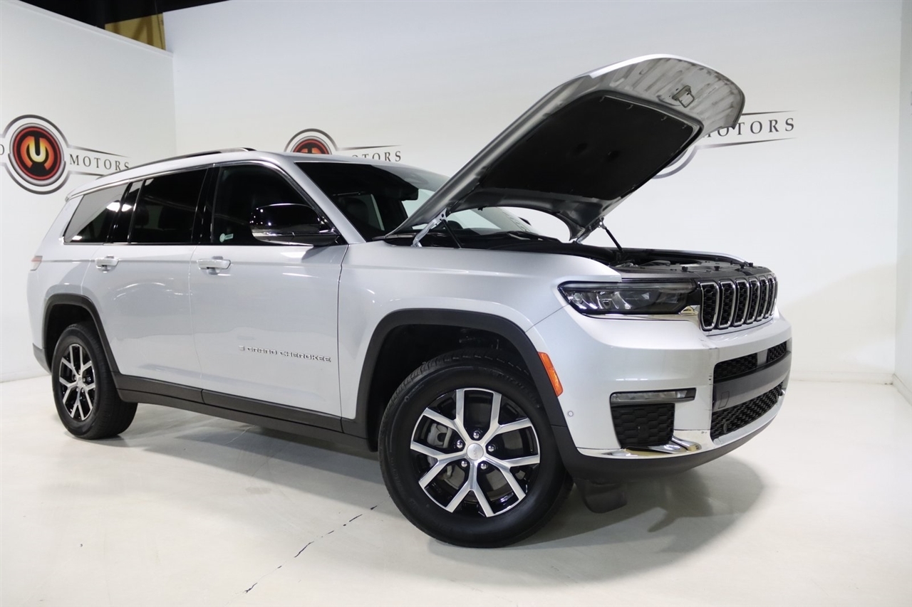 Navigation, Bluetooth, Back Up Camera, Panoramic Roof, Heated Seats, Touch Screen, 2nd Row Manual Window Shades, 3.45 Rear Axle Ratio, 3rd row seats: split-bench, 4-Wheel Disc Brakes, 6 Speakers, ABS brakes, Active Noise Control System, Air Conditioning, Alloy wheels, AM/FM radio: SiriusXM with 360L, Anti-whiplash front head restraints, Audio memory, Auto High-beam Headlights, Auto-Dimming Exterior Driver Mirror, Automatic temperature control, Brake assist, Bumpers: body-color, Capri Leatherette Seats, Capri Leatherette w/Axis II Seats, Compass, Delay-off headlights, Driver door bin, Driver vanity mirror, Dual front impact airbags, Dual front side impact airbags, Dual-Pane Panoramic Sunroof, Electronic Stability Control, Emergency communication system, Four wheel independent suspension, Front anti-roll bar, Front Bucket Seats, Front Center Armrest w/Storage, Front dual zone A/C, Front fog lights, Front reading lights, Fully automatic headlights, Garage door transmitter, Heated door mirrors, Heated front seats, Heated rear seats, Heated steering wheel, Illuminated entry, Integrated Off-Road Camera, Interior Rear Facing Camera, Intersection Collision Assist System, Knee airbag, Low tire pressure warning, Luxury Tech Group II, Manual Fold Seatbacks, Memory seat, Memory Steering Column, Navigation System, Normal Duty Suspension, Occupant sensing airbag, Outside temperature display, Overhead airbag, Overhead console, Panic alarm, ParkSense Front/Rear Park Assist w/Stop, ParkView Rear Back-Up Camera, Passenger door bin, Passenger vanity mirror, Passive Entry - Front/Rear Doors, Liftgate, Power door mirrors, Power driver seat, Power Liftgate, Power passenger seat, Power steering, Power Tilt/Telescope Steering Column, Power windows, Quick Order Package 23E, Radio data system, Radio: Uconnect 5 Nav w/10.1 Display, Rain Sensitive Windshield Wipers, Rear air conditioning, Rear anti-roll bar, Rear Back Up Camera Washer, Rear reading lights, Rear window defroster, Rear window wiper, Rearview Autodim Digital Display Mirror, Reclining 3rd row seat, Remote keyless entry, Security system, Speed control, Speed-Sensitive Wipers, Split folding rear seat, Spoiler, Steering wheel mounted audio controls, Surround View Camera System, Tachometer, Telescoping steering wheel, Tilt steering wheel, Traction control, Trip computer, Turn signal indicator mirrors, Variably intermittent wipers, Ventilated Front Seats, Voltmeter, Wheels: 18 x 8.0 Polished/Painted Aluminum, Wireless Charging Pad. CARFAX One-Owner. Clean CARFAX.2024 Silver Zynith Jeep 4D Sport Utility Grand Cherokee L Limited 4WD 8-Speed Automatic 3.6L V6 24V VVTVisit our website www.iumotors.com to view 100s of newer vehicles, more pictures and info, or to apply for financing. Rates are incredibly low for approved credit. We offer extended warranties, protection packages, and insurance. We assure you the best experience at any of our 4 locations and unbeatable prices and quality. At Unlimited Motors we believe in MARKET VALUE PRICING. We use real-time Internet price comparisons to constantly adjust prices to provide ALL BUYERS The BEST PRICE possible. We do not mark them up, to mark them down! Our entire team is committed to helping you buy a car the way we would want to buy a car! We utilize state-of-the-art technology to constantly monitor pricing trends to offer our shoppers the best competitive pricing, value, and experience. We sell and service all makes and models of Pre-owned / Used Vehicles Used Cars, Used Trucks, Used Sport Utility, Lamborghini, Ferrari, Bentley, Rolls Royce, McLaren, Maserati, Ford, Chevrolet/Chevy, Honda, Toyota, Porsche, Land Rover, Jaguar, INFINITI, Audi, Nissan, Mazda, Hyundai, Chrysler, Jeep, Dodge, Ram, SRT, Mitsubishi, Lexus, Kia, Volkswagen, Mini, BMW, Mercedes, Fiat, Volvo, GMC, Cadillac, Lincoln as well as other brands. Proudly serving these areas of Indianapolis, Fishers, Carmel, Noblesville, Greenwood, Avon, Plainfield, Zionsv