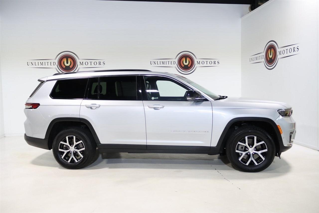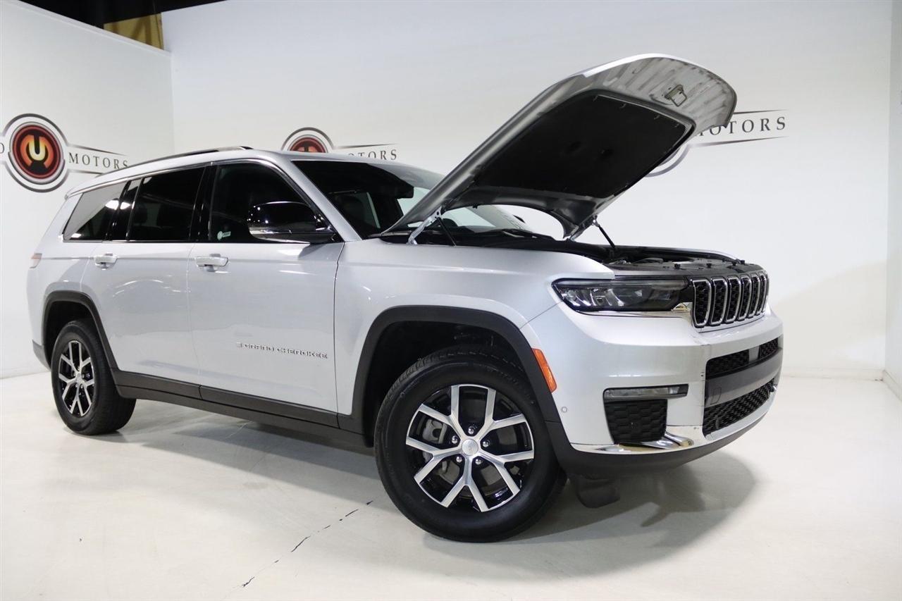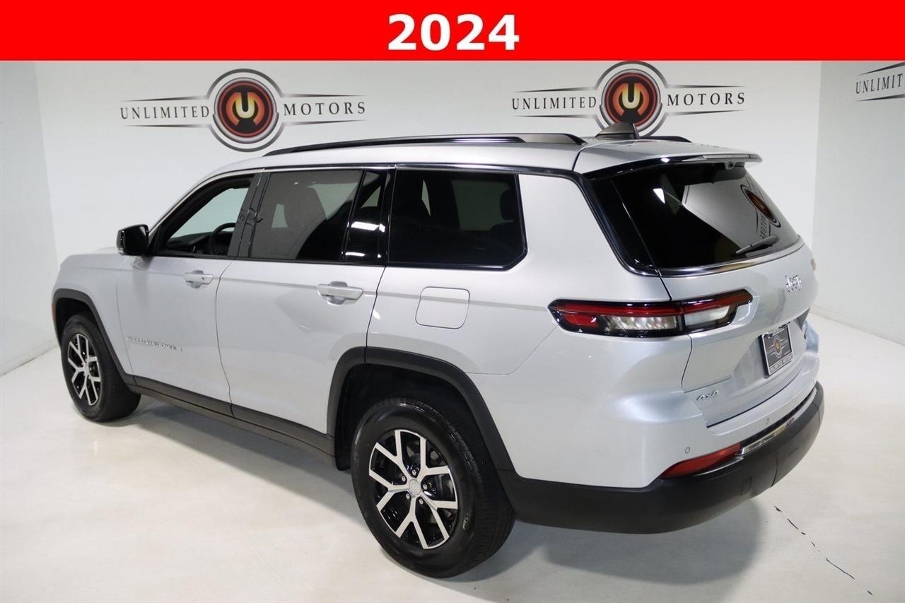 Navigation, Bluetooth, Back Up Camera, Panoramic Roof, Heated Seats, Touch Screen, 2nd Row Manual Window Shades, 3.45 Rear Axle Ratio, 3rd row seats: split-bench, 4-Wheel Disc Brakes, 6 Speakers, ABS brakes, Active Noise Control System, Air Conditioning, Alloy wheels, AM/FM radio: SiriusXM with 360L, Anti-whiplash front head restraints, Audio memory, Auto High-beam Headlights, Auto-Dimming Exterior Driver Mirror, Automatic temperature control, Brake assist, Bumpers: body-color, Capri Leatherette Seats, Capri Leatherette w/Axis II Seats, Compass, Delay-off headlights, Driver door bin, Driver vanity mirror, Dual front impact airbags, Dual front side impact airbags, Dual-Pane Panoramic Sunroof, Electronic Stability Control, Emergency communication system, Four wheel independent suspension, Front anti-roll bar, Front Bucket Seats, Front Center Armrest w/Storage, Front dual zone A/C, Front fog lights, Front reading lights, Fully automatic headlights, Garage door transmitter, Heated door mirrors, Heated front seats, Heated rear seats, Heated steering wheel, Illuminated entry, Integrated Off-Road Camera, Interior Rear Facing Camera, Intersection Collision Assist System, Knee airbag, Low tire pressure warning, Luxury Tech Group II, Manual Fold Seatbacks, Memory seat, Memory Steering Column, Navigation System, Normal Duty Suspension, Occupant sensing airbag, Outside temperature display, Overhead airbag, Overhead console, Panic alarm, ParkSense Front/Rear Park Assist w/Stop, ParkView Rear Back-Up Camera, Passenger door bin, Passenger vanity mirror, Passive Entry - Front/Rear Doors, Liftgate, Power door mirrors, Power driver seat, Power Liftgate, Power passenger seat, Power steering, Power Tilt/Telescope Steering Column, Power windows, Quick Order Package 23E, Radio data system, Radio: Uconnect 5 Nav w/10.1 Display, Rain Sensitive Windshield Wipers, Rear air conditioning, Rear anti-roll bar, Rear Back Up Camera Washer, Rear reading lights, Rear window defroster, Rear window wiper, Rearview Autodim Digital Display Mirror, Reclining 3rd row seat, Remote keyless entry, Security system, Speed control, Speed-Sensitive Wipers, Split folding rear seat, Spoiler, Steering wheel mounted audio controls, Surround View Camera System, Tachometer, Telescoping steering wheel, Tilt steering wheel, Traction control, Trip computer, Turn signal indicator mirrors, Variably intermittent wipers, Ventilated Front Seats, Voltmeter, Wheels: 18 x 8.0 Polished/Painted Aluminum, Wireless Charging Pad. CARFAX One-Owner. Clean CARFAX. Priced below KBB Fair Purchase Price!2024 Silver Zynith Jeep 4D Sport Utility Grand Cherokee L Limited 4WD 8-Speed Automatic 3.6L V6 24V VVTVisit our website www.iumotors.com to view 100s of newer vehicles, more pictures and info, or to apply for financing. Rates are incredibly low for approved credit. We offer extended warranties, protection packages, and insurance. We assure you the best experience at any of our 4 locations and unbeatable prices and quality. At Unlimited Motors we believe in MARKET VALUE PRICING. We use real-time Internet price comparisons to constantly adjust prices to provide ALL BUYERS The BEST PRICE possible. We do not mark them up, to mark them down! Our entire team is committed to helping you buy a car the way we would want to buy a car! We utilize state-of-the-art technology to constantly monitor pricing trends to offer our shoppers the best competitive pricing, value, and experience. We sell and service all makes and models of Pre-owned / Used Vehicles Used Cars, Used Trucks, Used Sport Utility, Lamborghini, Ferrari, Bentley, Rolls Royce, McLaren, Maserati, Ford, Chevrolet/Chevy, Honda, Toyota, Porsche, Land Rover, Jaguar, INFINITI, Audi, Nissan, Mazda, Hyundai, Chrysler, Jeep, Dodge, Ram, SRT, Mitsubishi, Lexus, Kia, Volkswagen, Mini, BMW, Mercedes, Fiat, Volvo, GMC, Cadillac, Lincoln as well as other brands. Proudly serving these areas of Indianapolis, Fishers, Carmel, Noblesvill