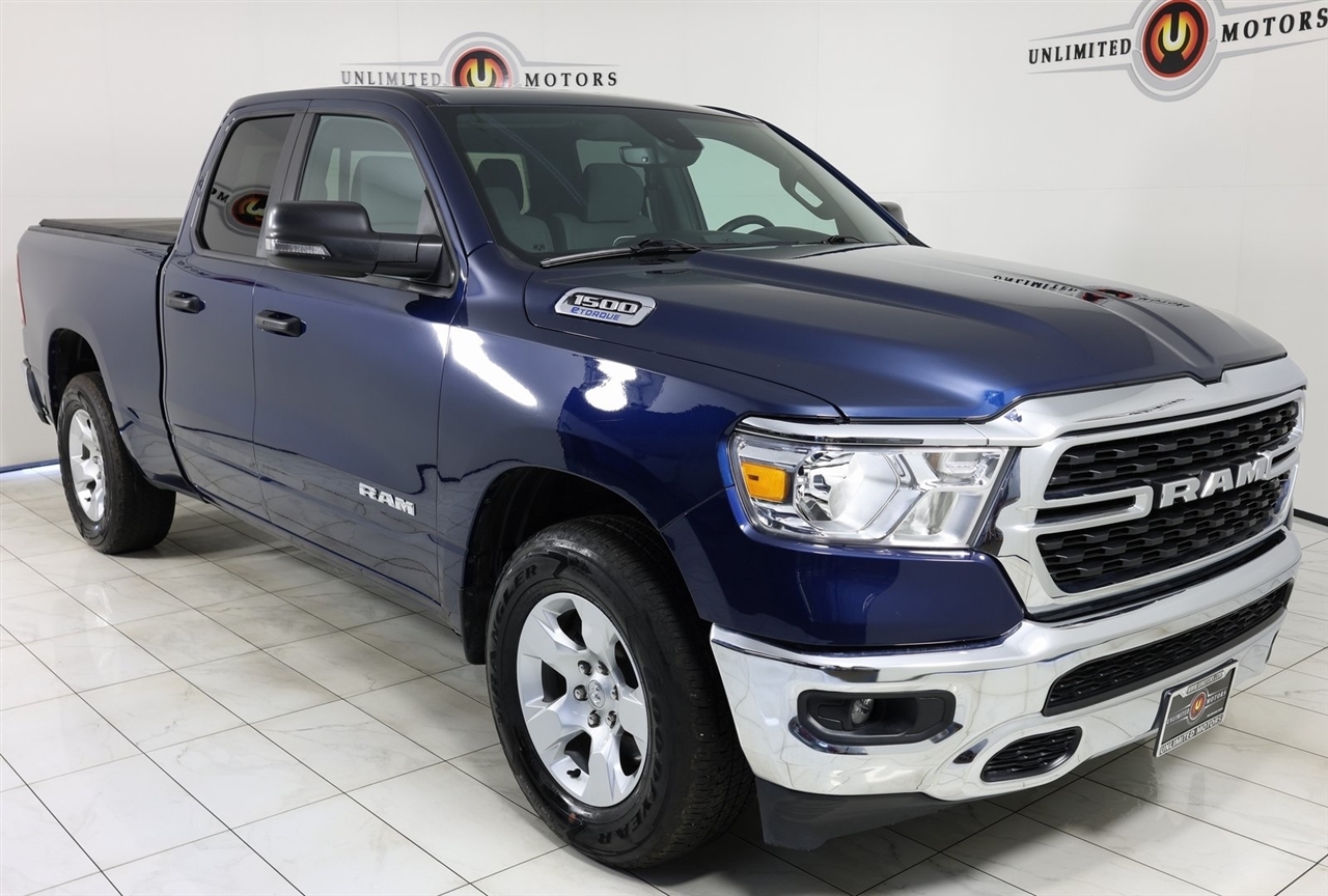 Back Up Camera, Bluetooth, Towing, Touch Screen, Heated Seats, Heated Steering Wheel, Apple Car Play, 1-Owner, Clean Carfax. Odometer is 15106 miles below market average! Priced below KBB Fair Purchase Price!2023 Patriot Blue Pearlcoat Ram 4D Quad Cab 1500 Big Horn/Lone Star 4WD 8-Speed Automatic 3.6L V6 24V VVTVisit our website www.iumotors.com to view 100s of newer vehicles, more pictures and info, or to apply for financing. Rates are incredibly low for approved credit. We offer extended warranties, protection packages, and insurance. We assure you the best experience at any of our 4 locations and unbeatable prices and quality. At Unlimited Motors we believe in MARKET VALUE PRICING. We use real-time Internet price comparisons to constantly adjust prices to provide ALL BUYERS The BEST PRICE possible. We do not mark them up, to mark them down! Our entire team is committed to helping you buy a car the way we would want to buy a car! We utilize state-of-the-art technology to constantly monitor pricing trends to offer our shoppers the best competitive pricing, value, and experience. We sell and service all makes and models of Pre-owned / Used Vehicles Used Cars, Used Trucks, Used Sport Utility, Lamborghini, Ferrari, Bentley, Rolls Royce, McLaren, Maserati, Ford, Chevrolet/Chevy, Honda, Toyota, Porsche, Land Rover, Jaguar, INFINITI, Audi, Nissan, Mazda, Hyundai, Chrysler, Jeep, Dodge, Ram, SRT, Mitsubishi, Lexus, Kia, Volkswagen, Mini, BMW, Mercedes, Fiat, Volvo, GMC, Cadillac, Lincoln as well as other brands. Proudly serving these areas of Indianapolis, Fishers, Carmel, Noblesville, Greenwood, Avon, Plainfield, Zionsville, & Brownsburg, Indiana, Midwest. We also serve the entire nation with our seamless and easy online purchasing process, and offer shipping nationwide.Advertised prices DO NOT include Sales Tax, Dealer Fees, Title Processing Charges, and Dealer Pre-installed Products.